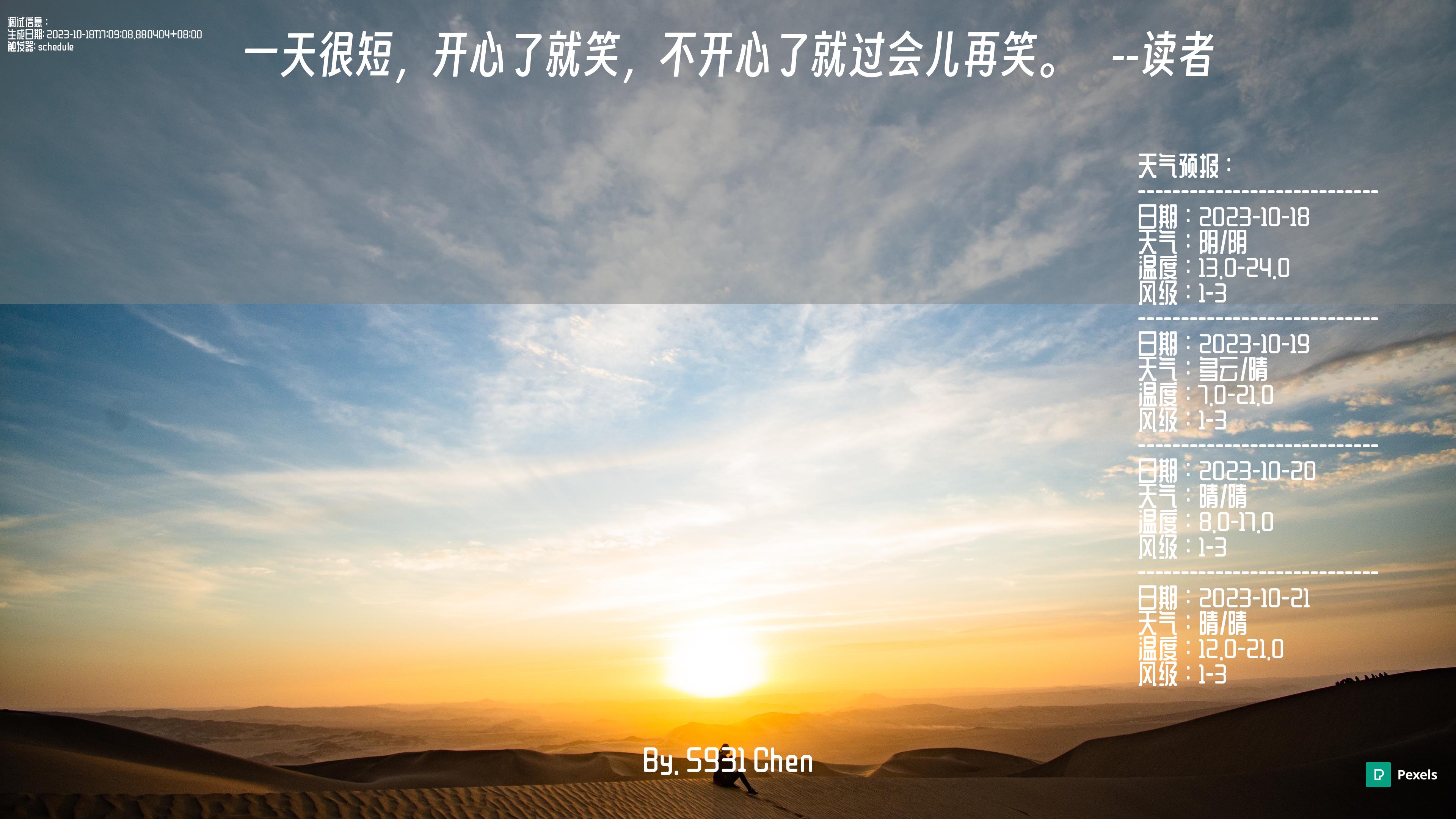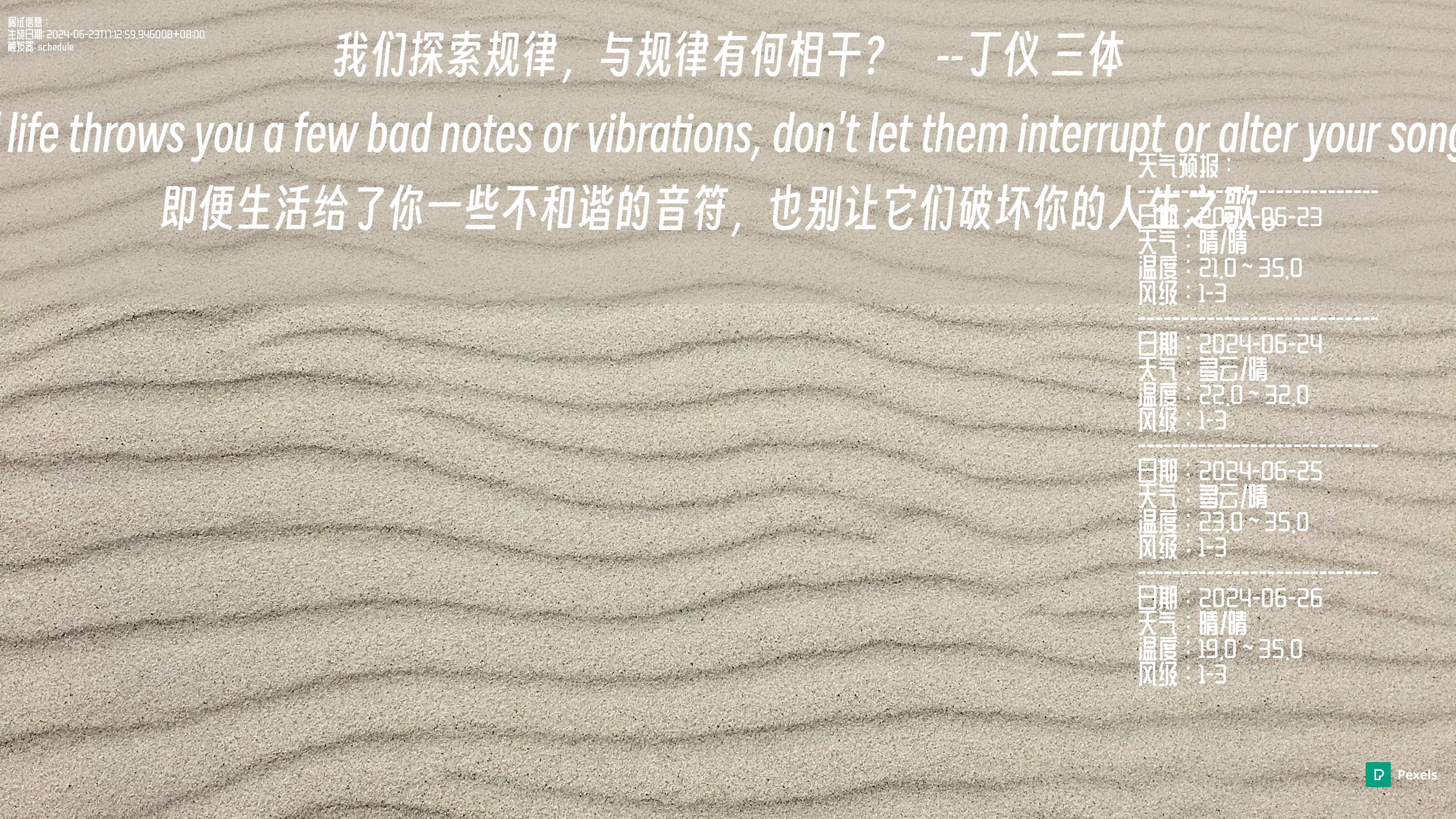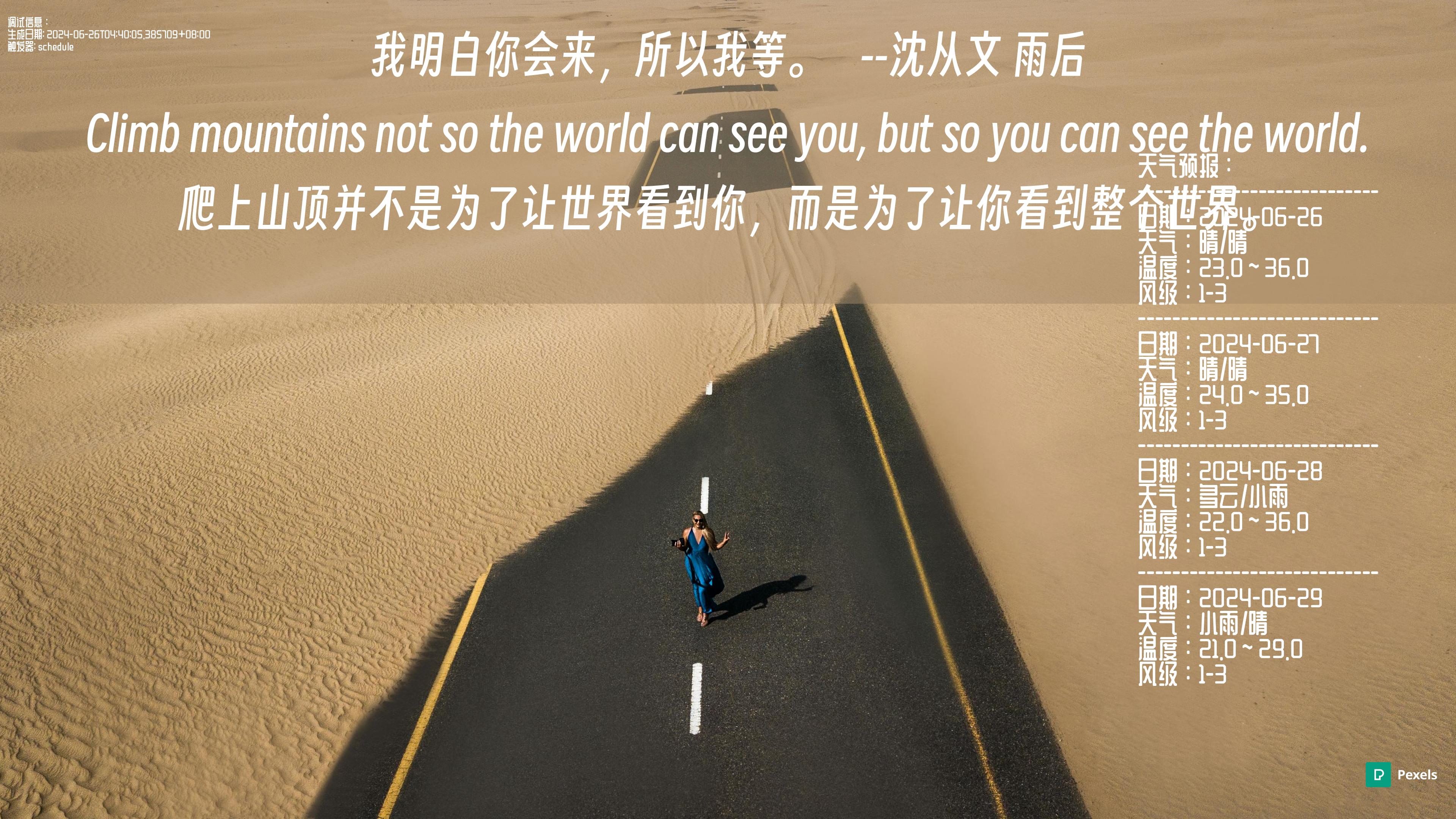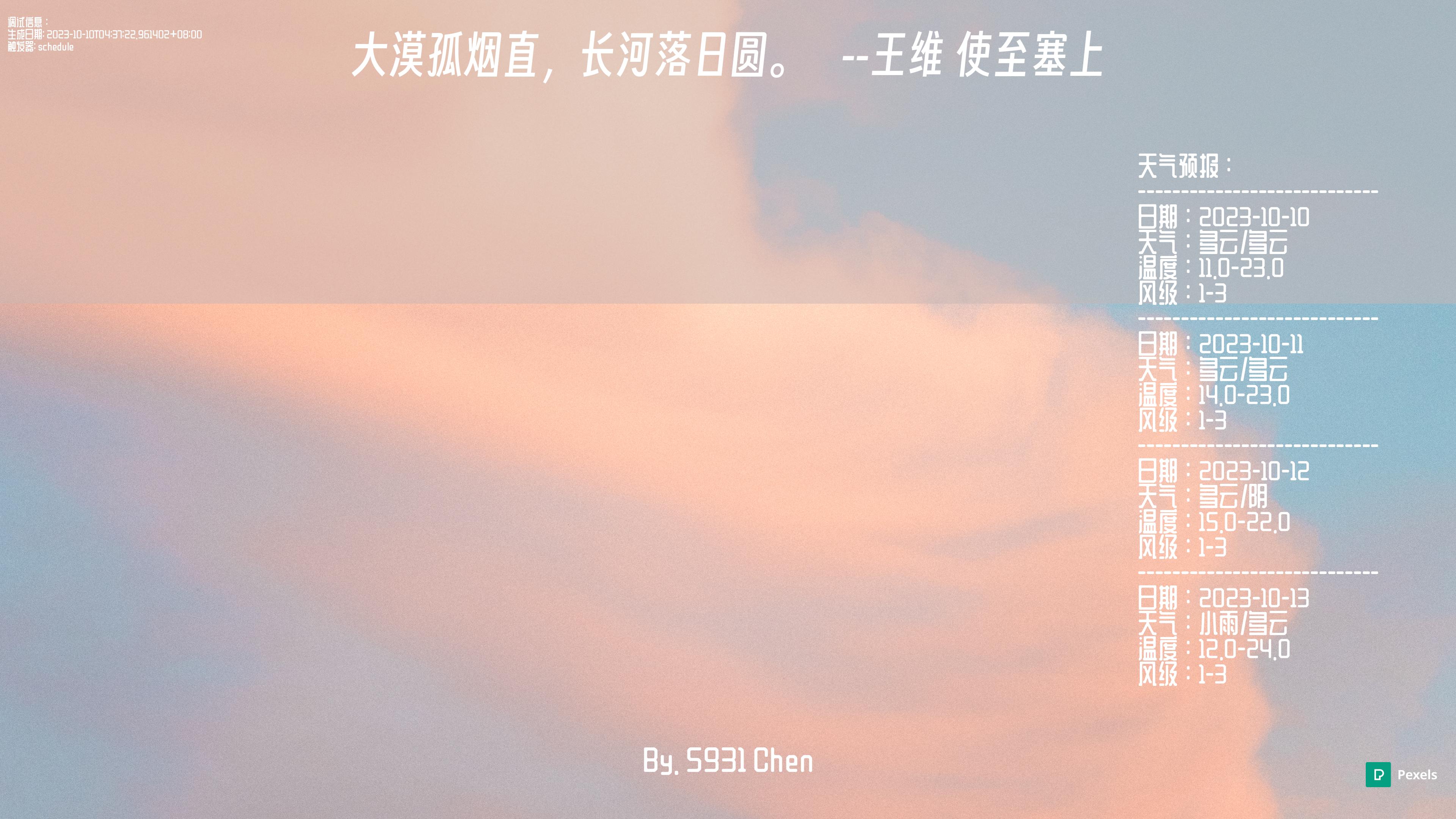 | 2023-06-26 | 957010 | 大漠孤烟直,长河落日圆。 | 图片链接 | schedule |