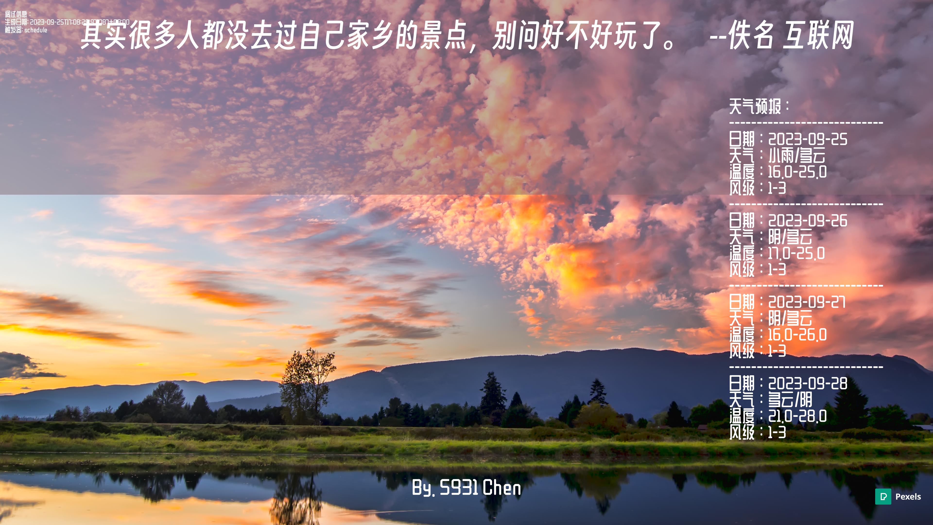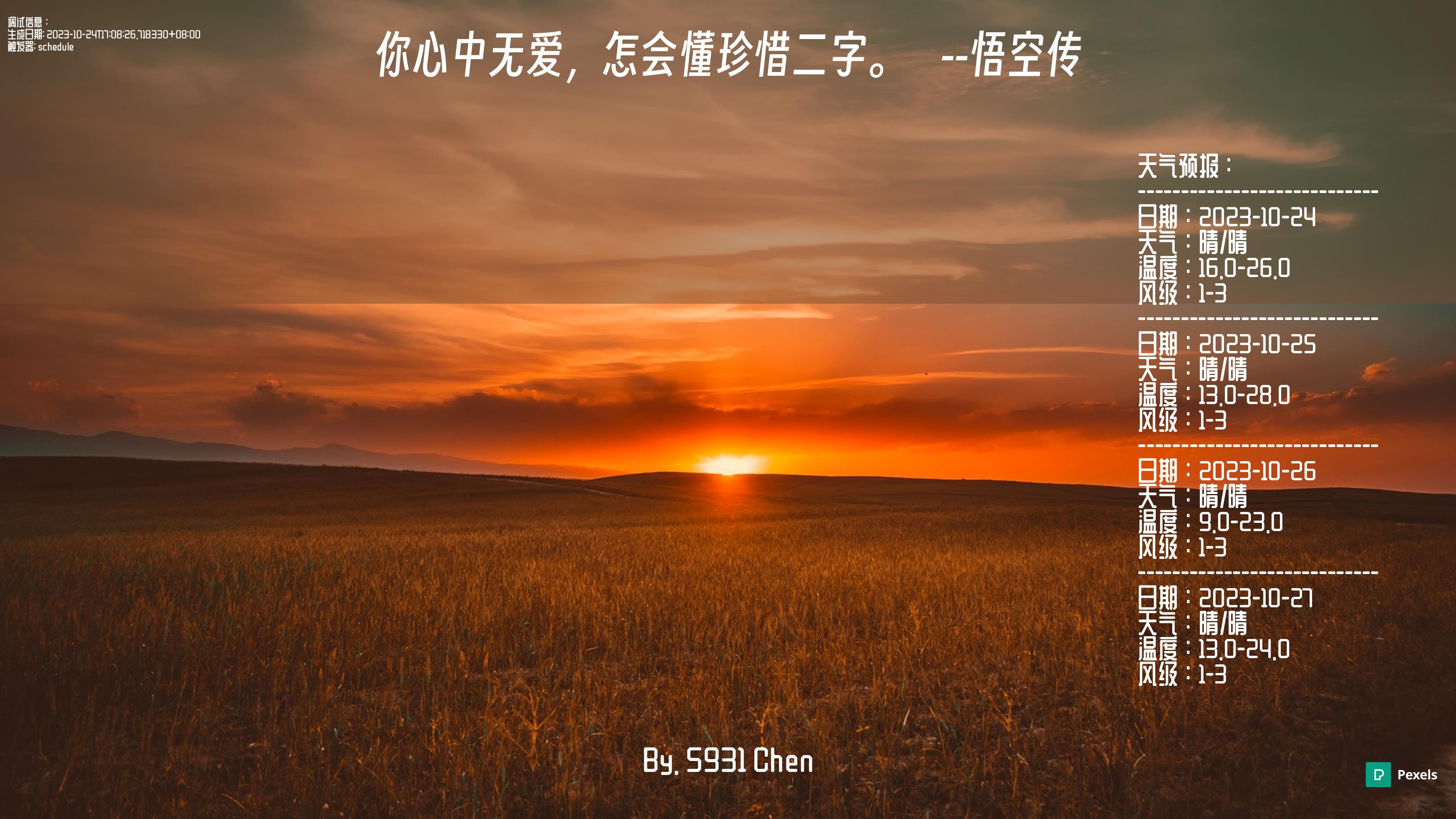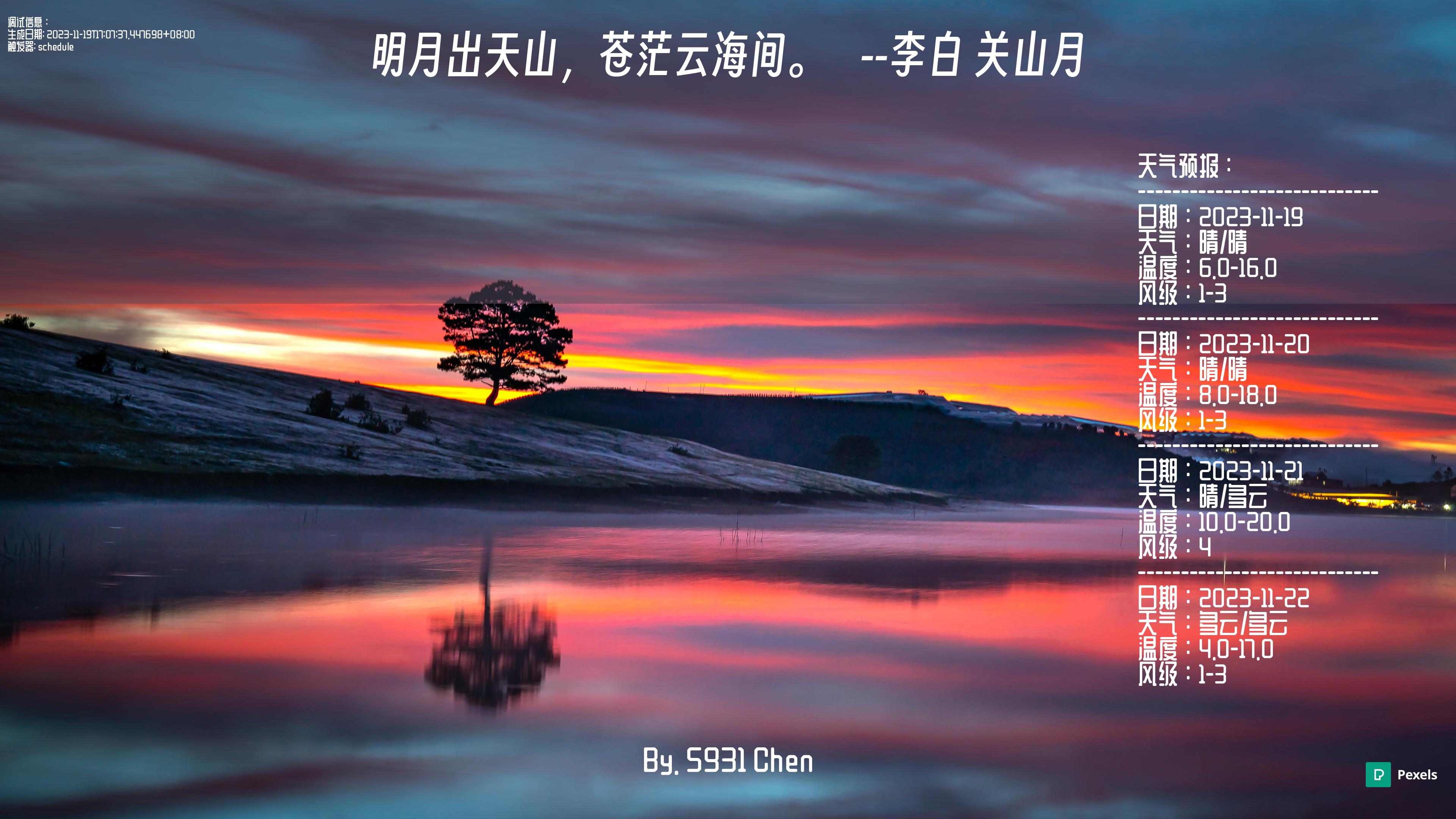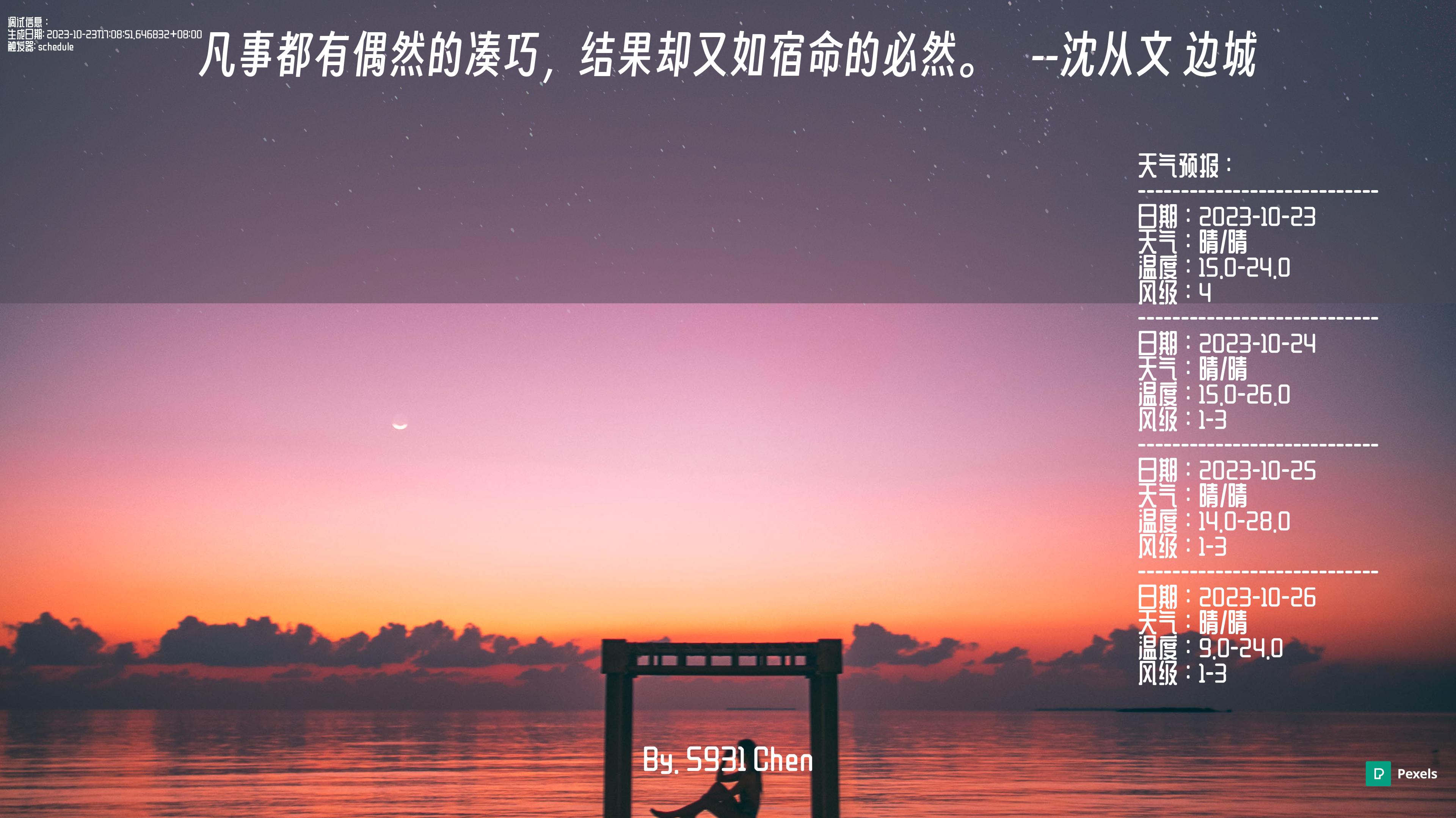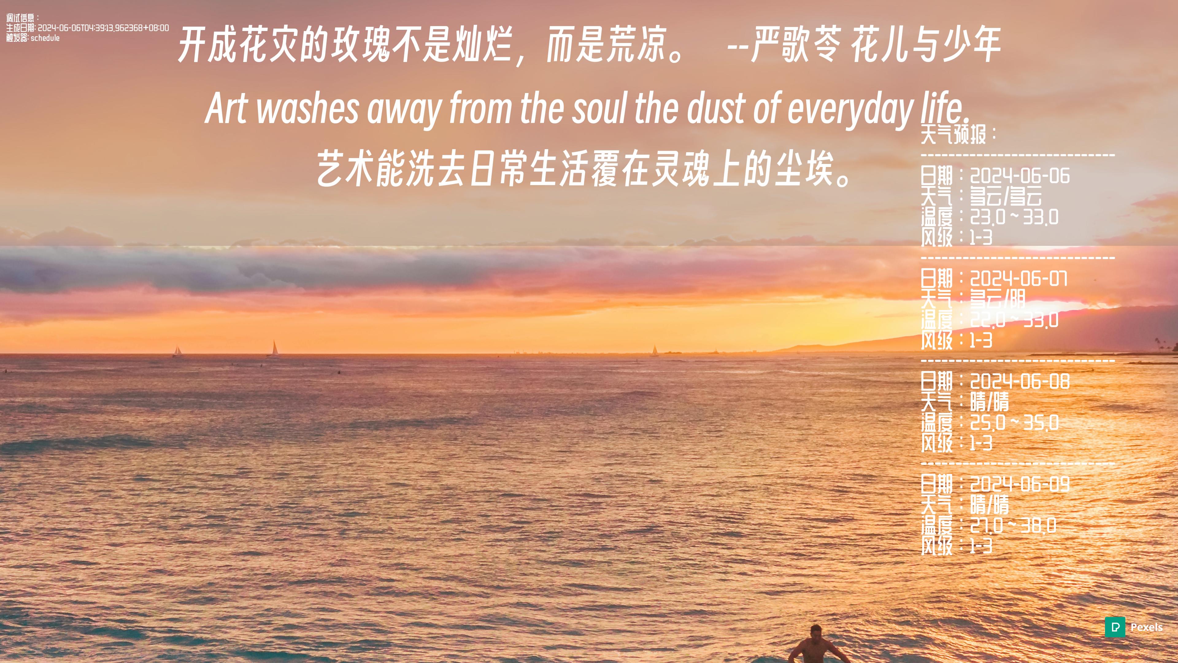 | 2023-06-26 | 957010 | 大漠孤烟直,长河落日圆。 | 图片链接 | schedule |