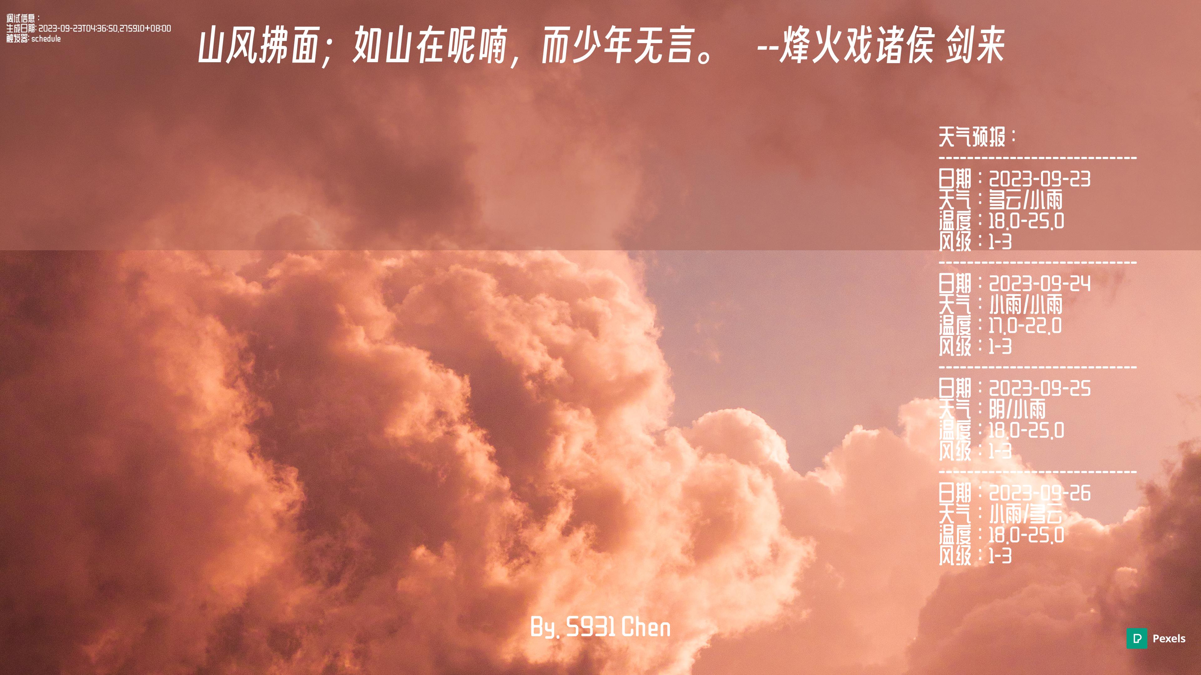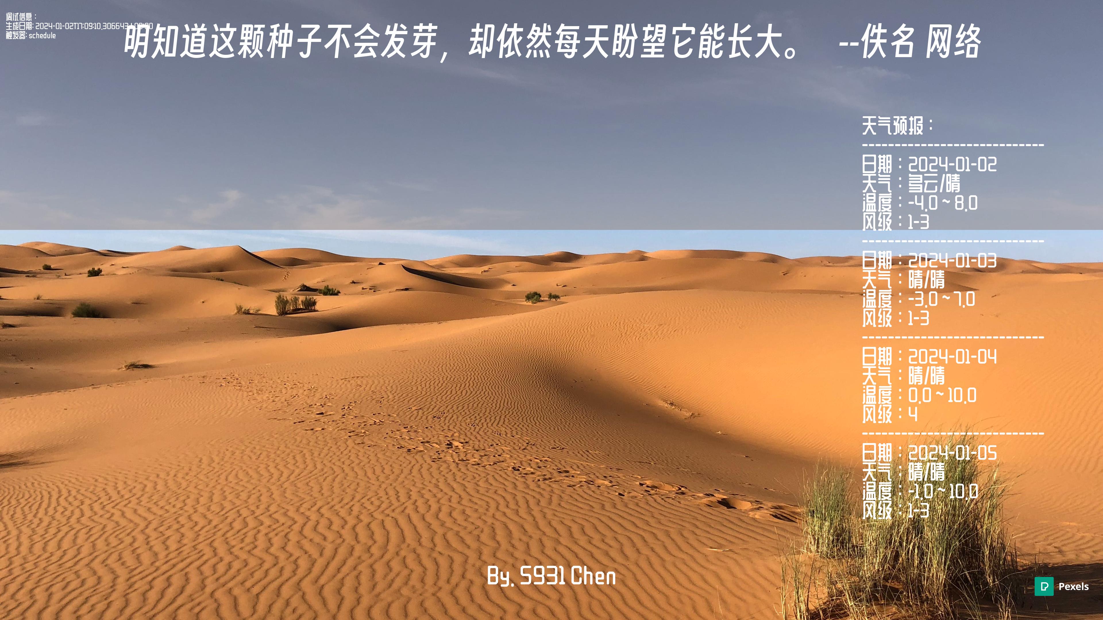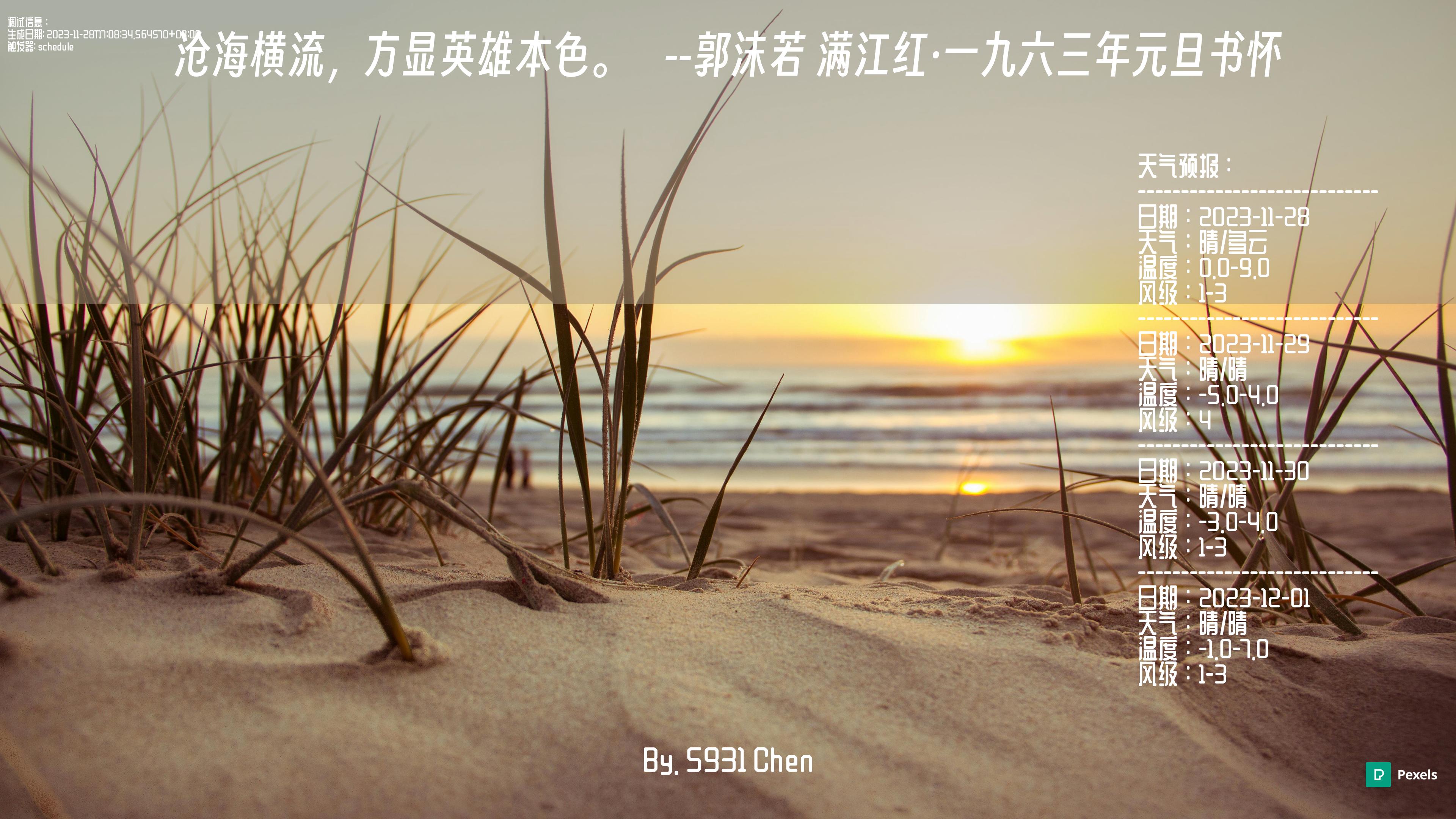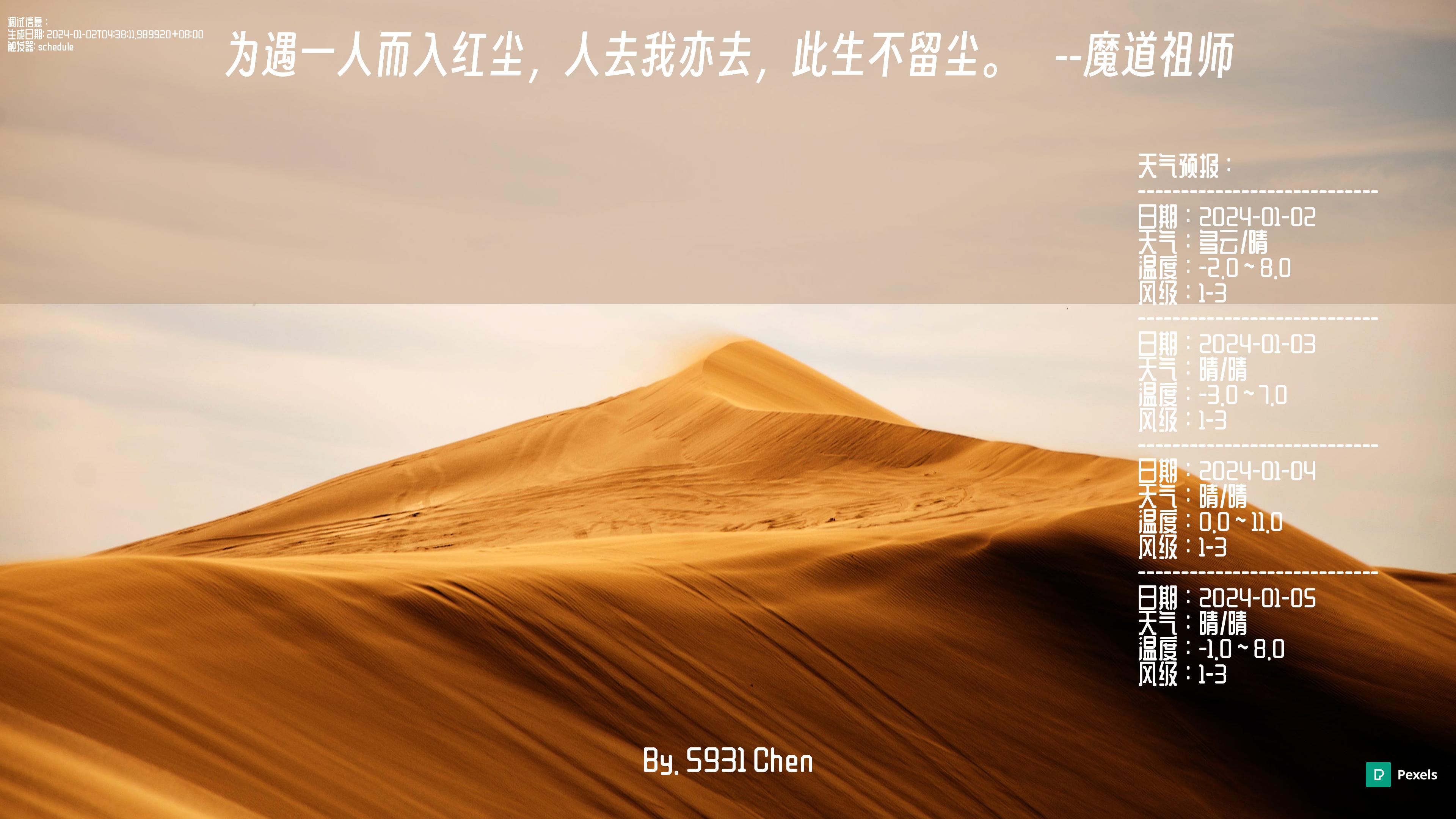 | 2023-06-26 | 957010 | 大漠孤烟直,长河落日圆。 | 图片链接 | schedule |