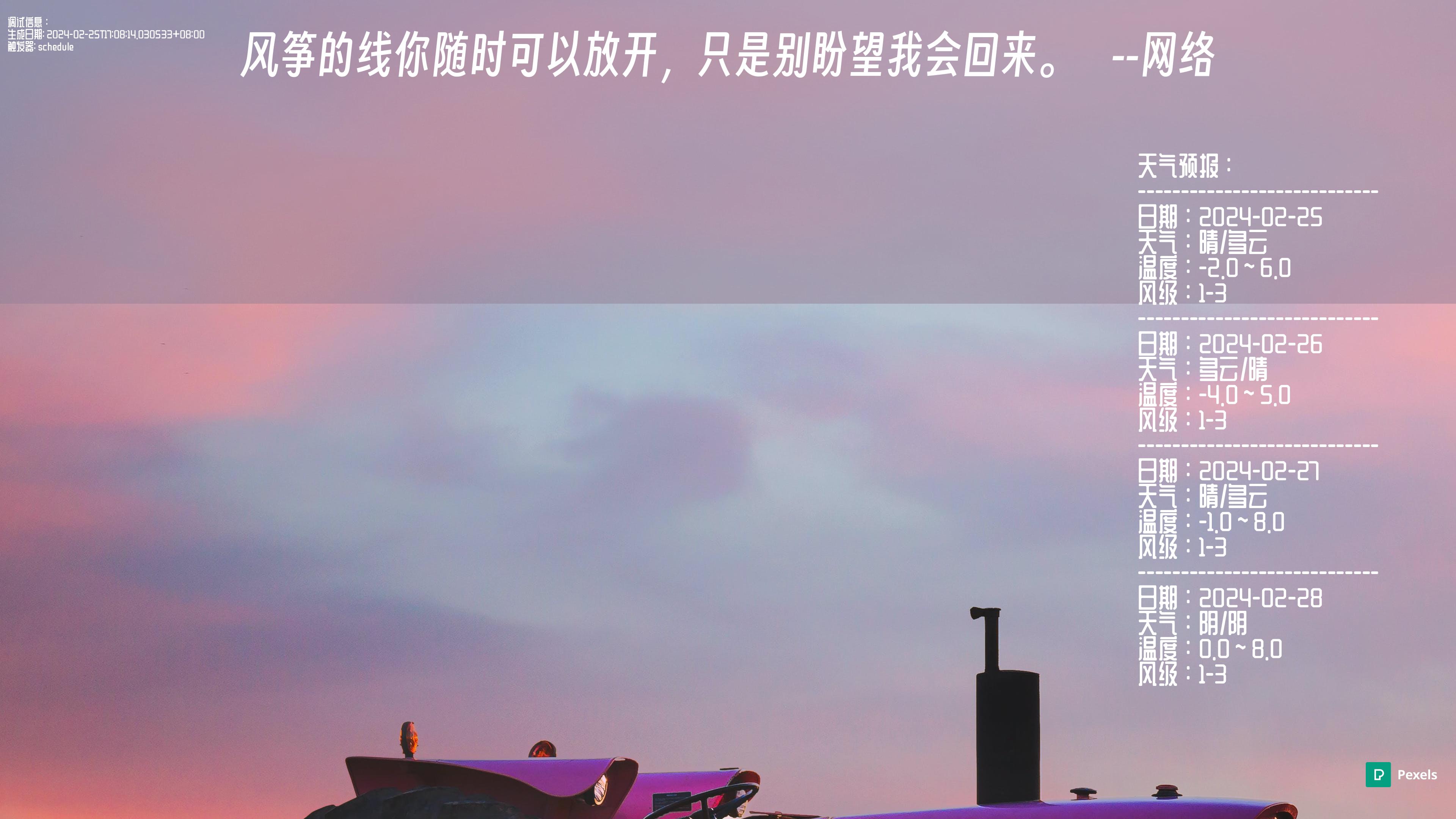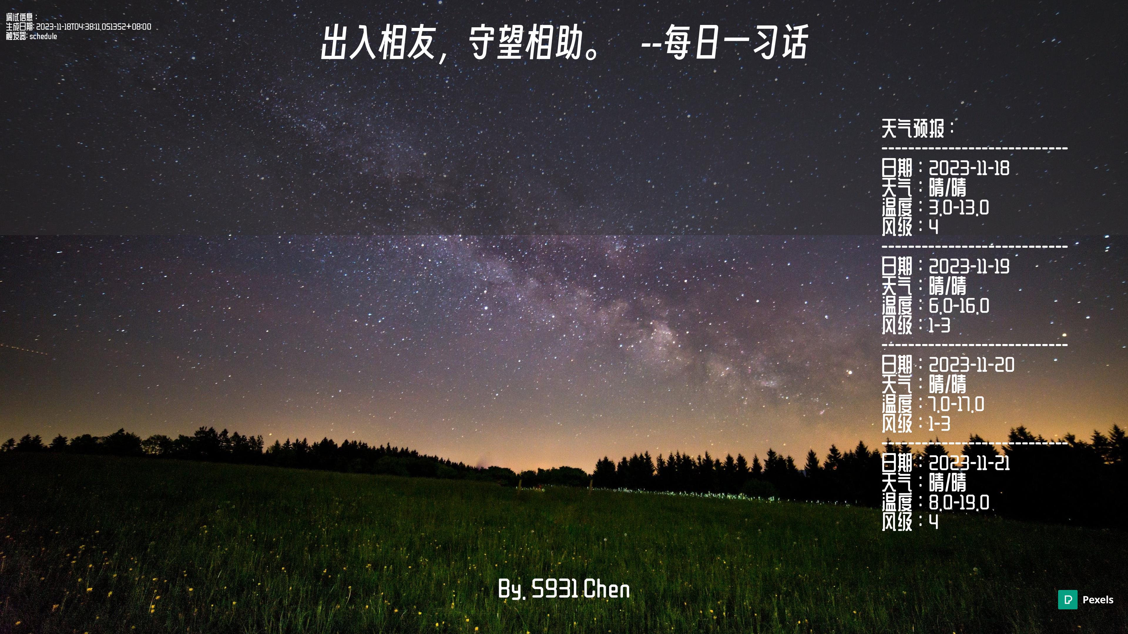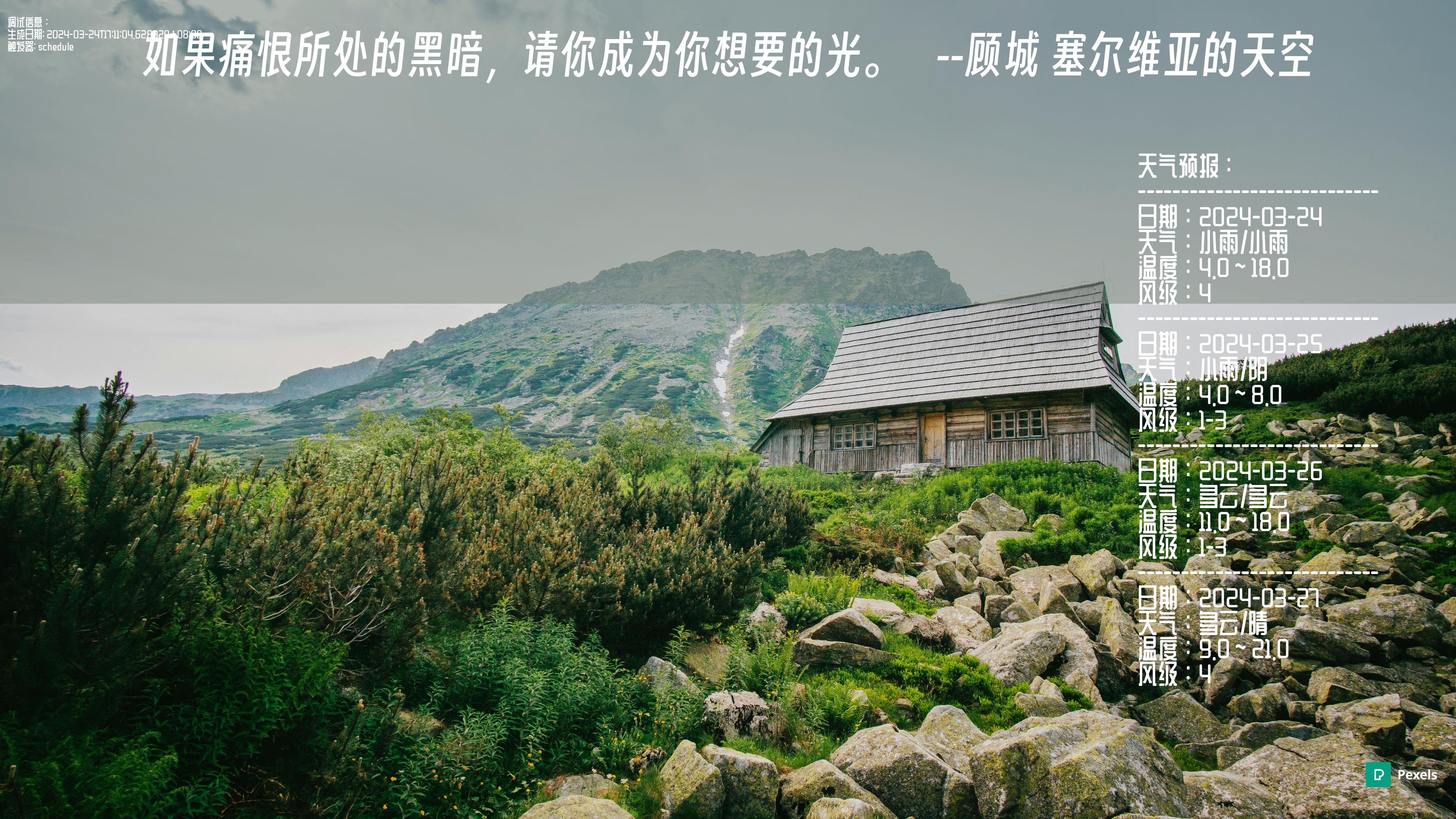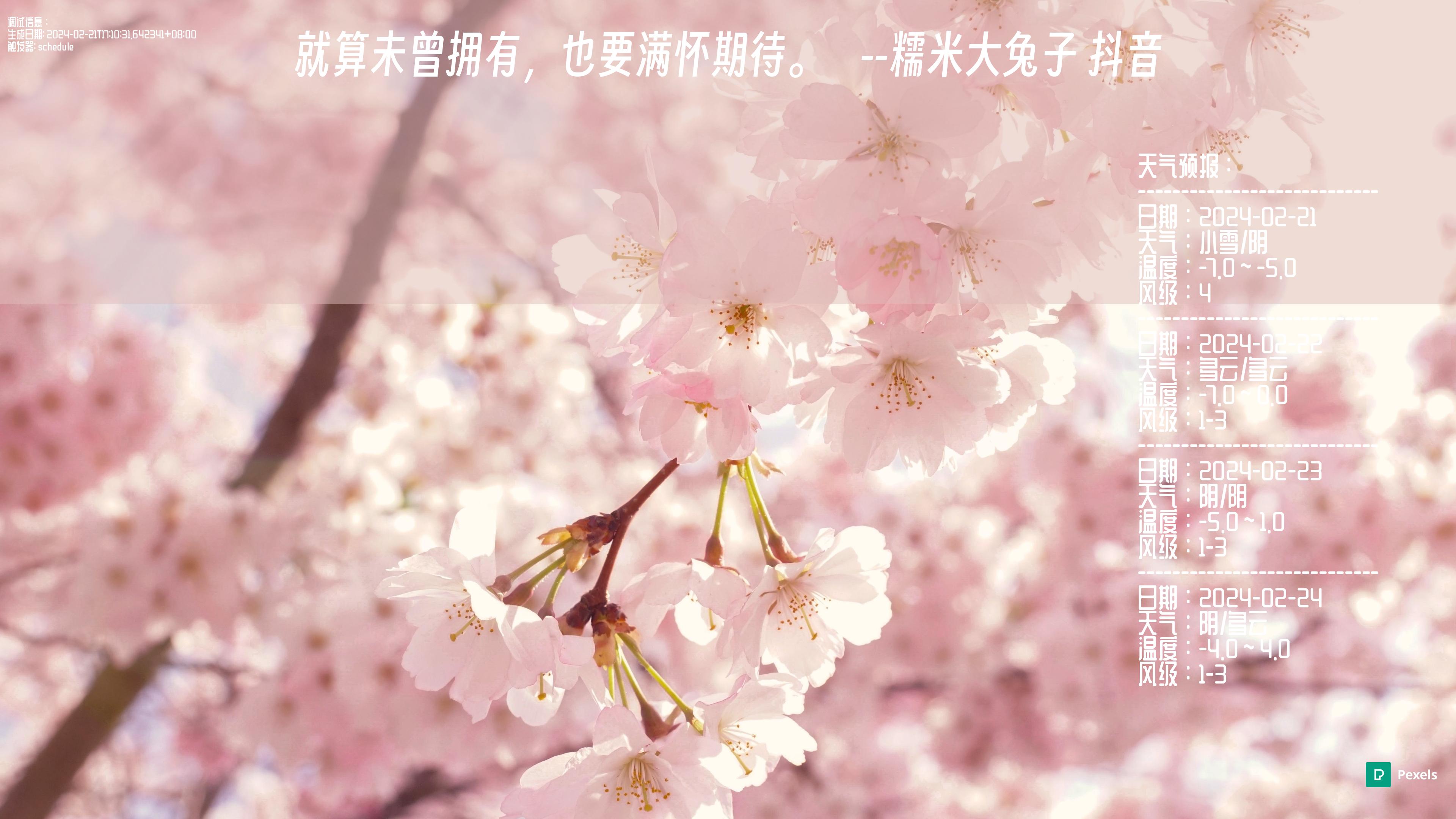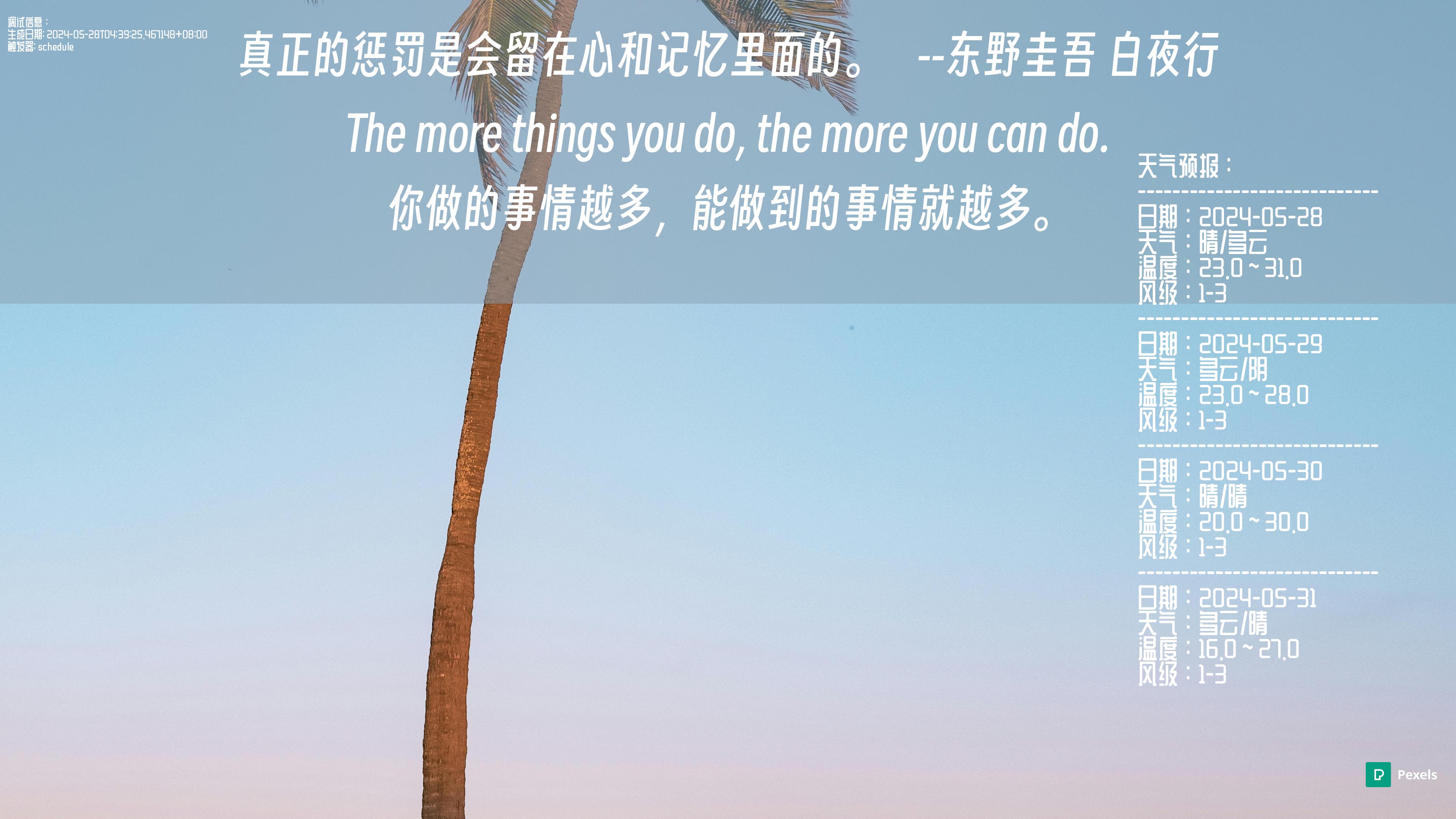 | Date / 日期 | Pexels ID | Quotes / 每日一言 | Image / 图片 | 触发器 |