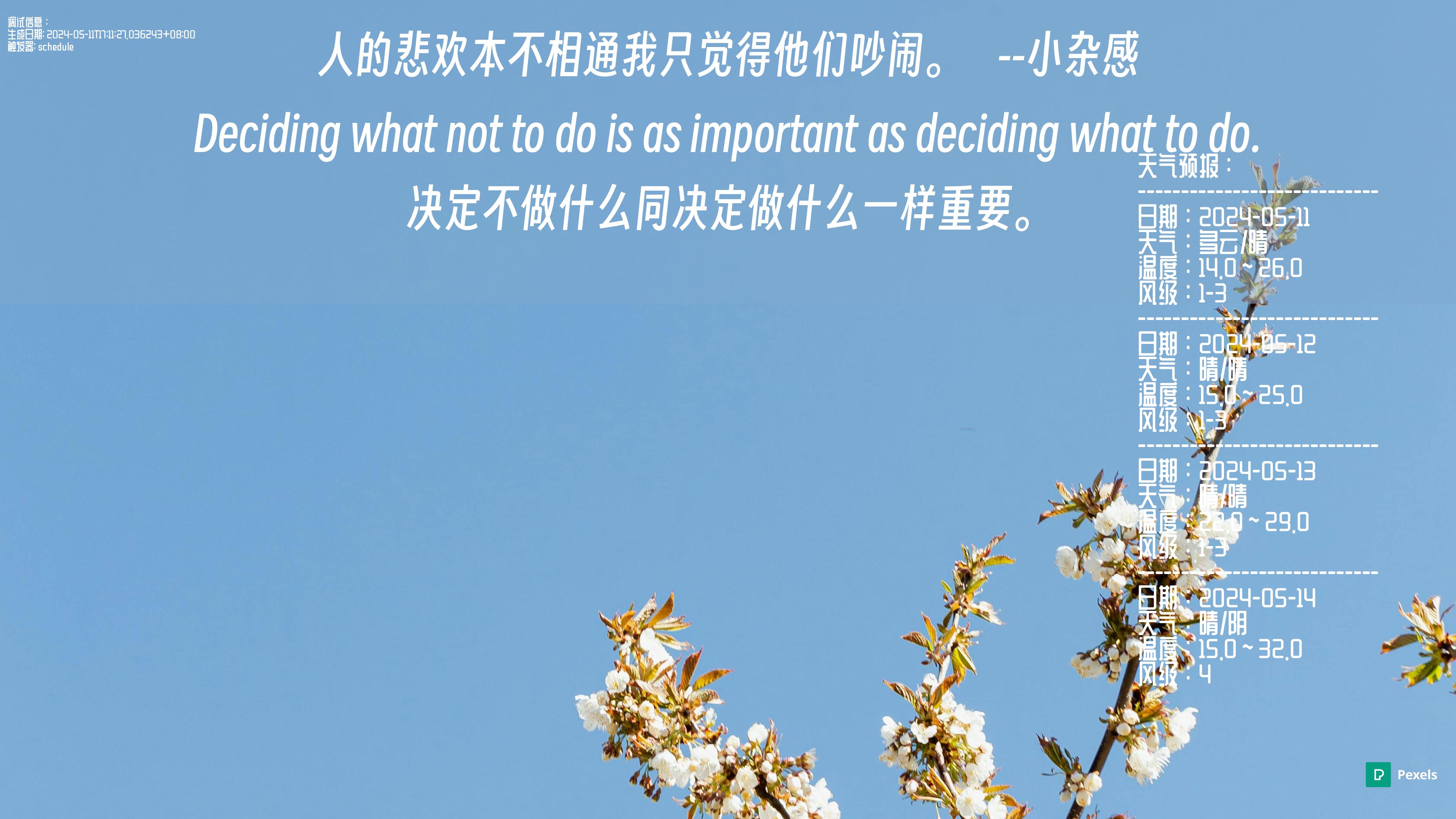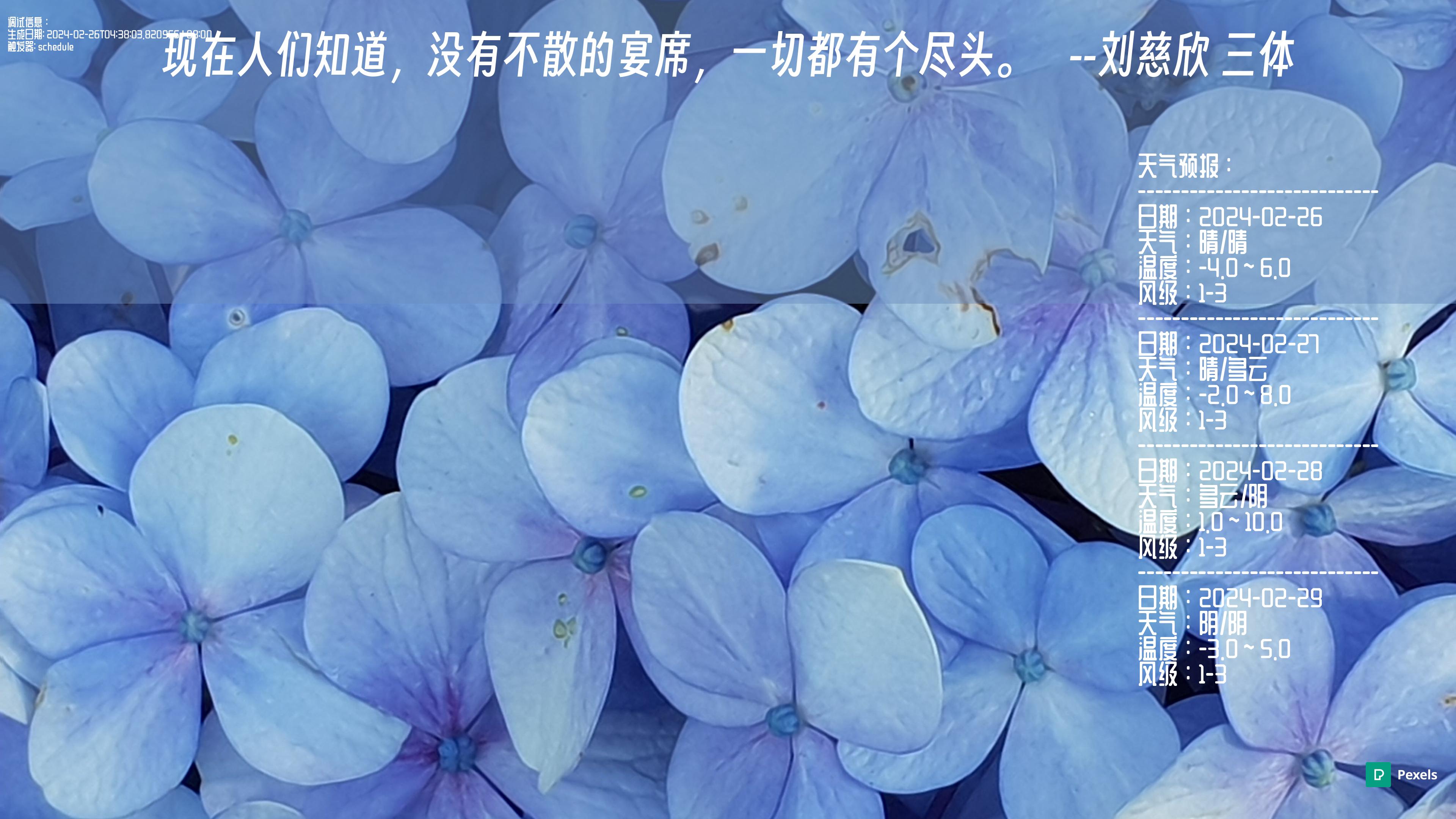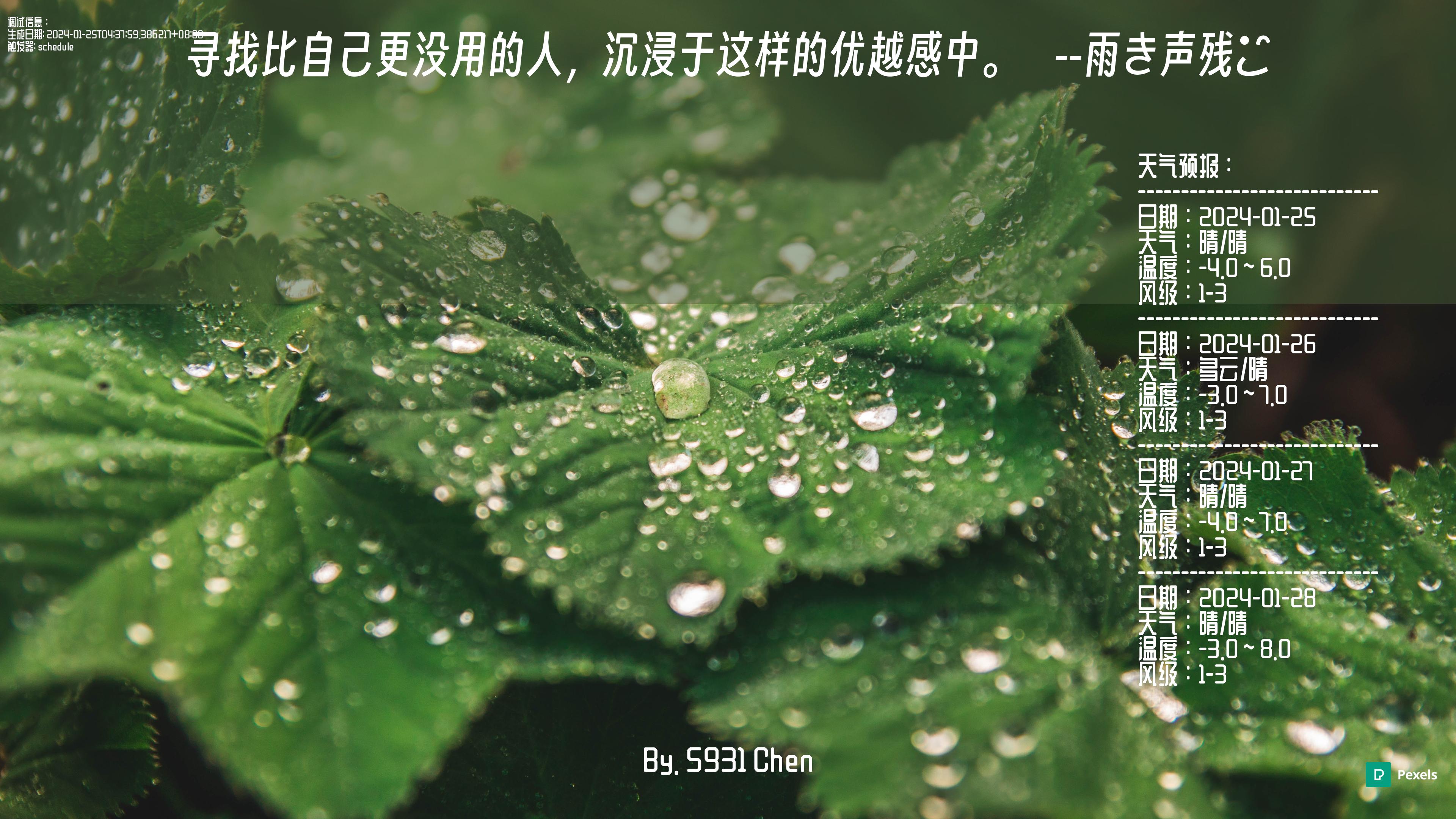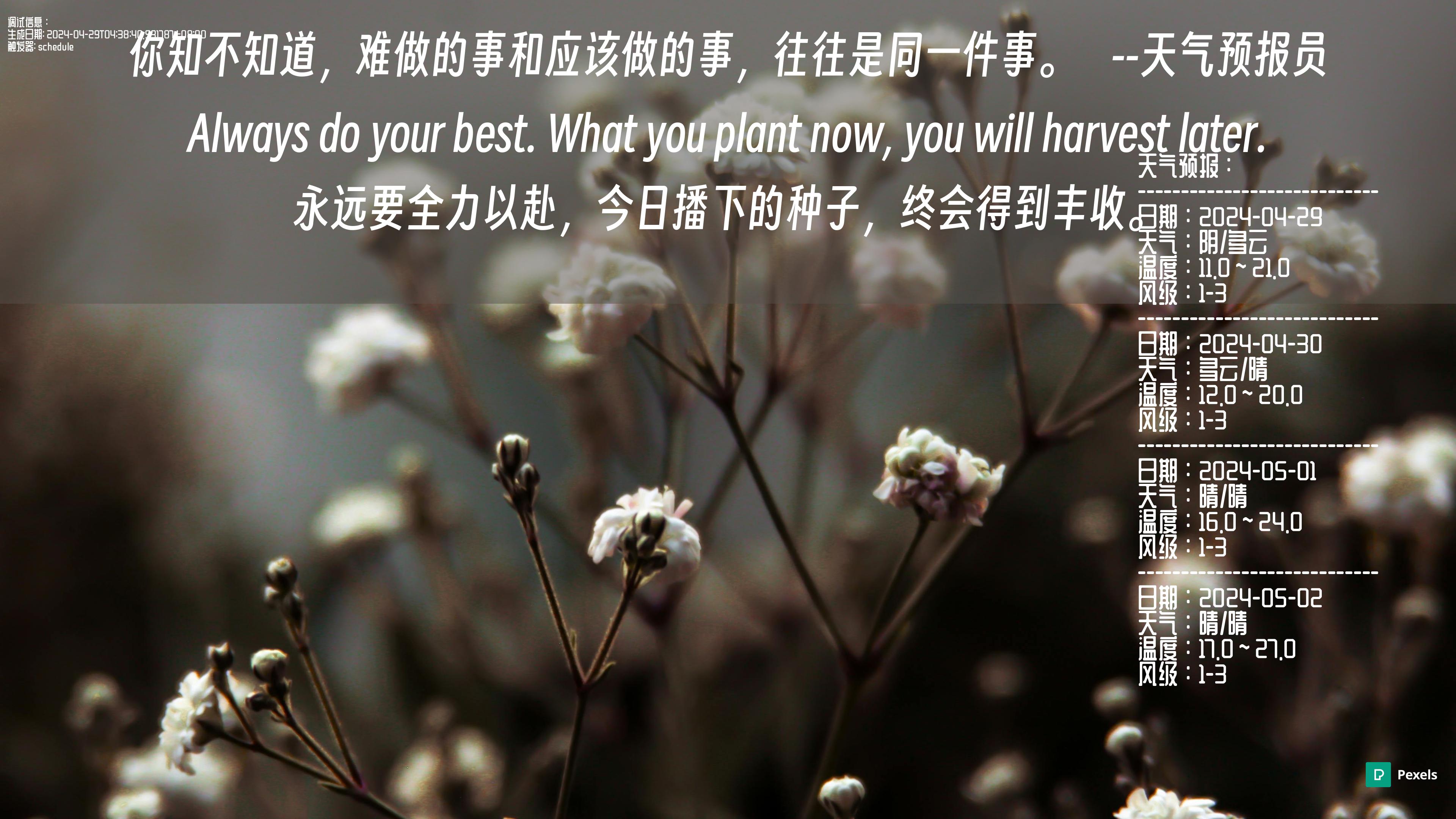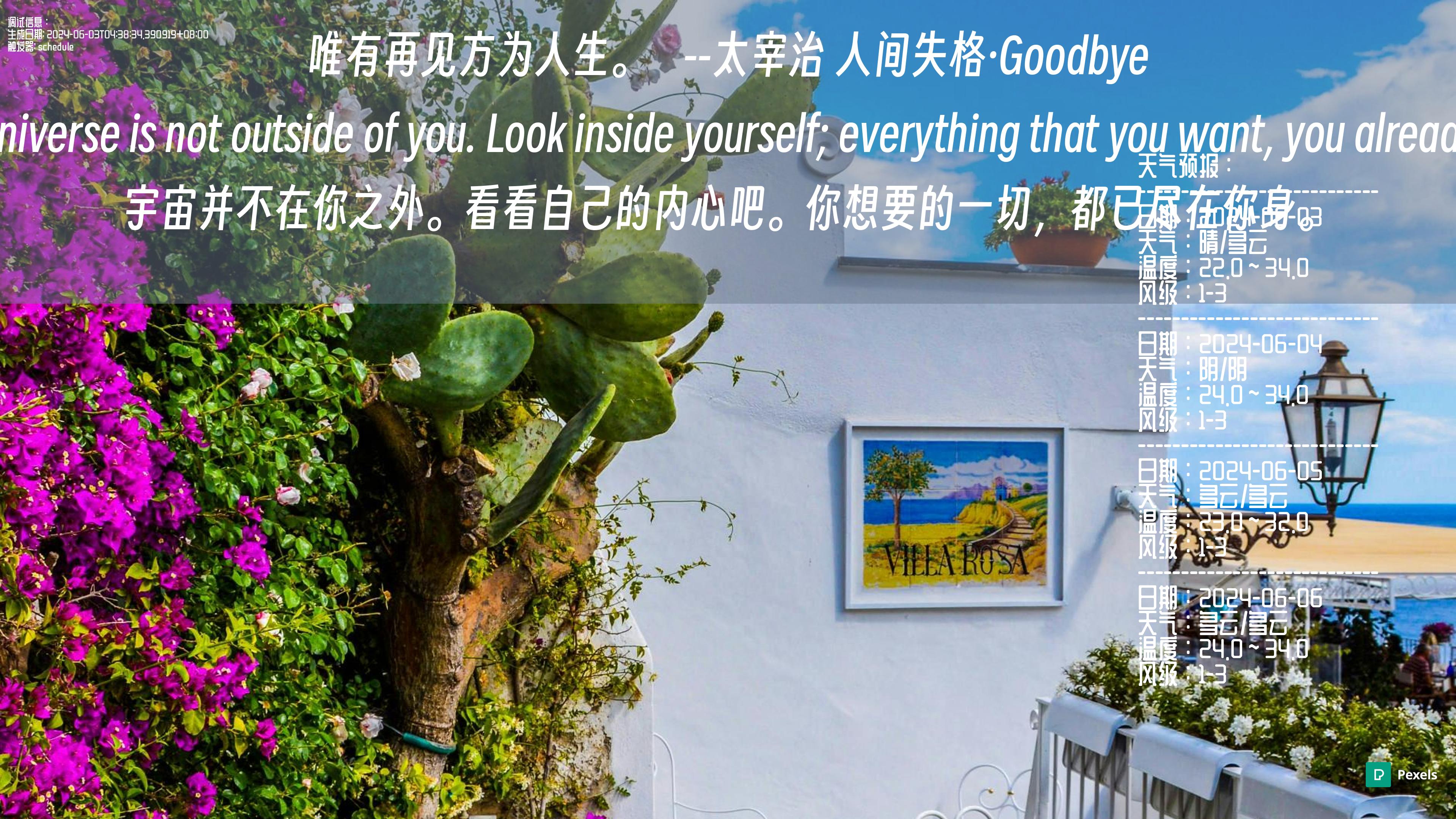 | Date / 日期 | Pexels ID | Quotes / 每日一言 | Image / 图片 | 触发器 |