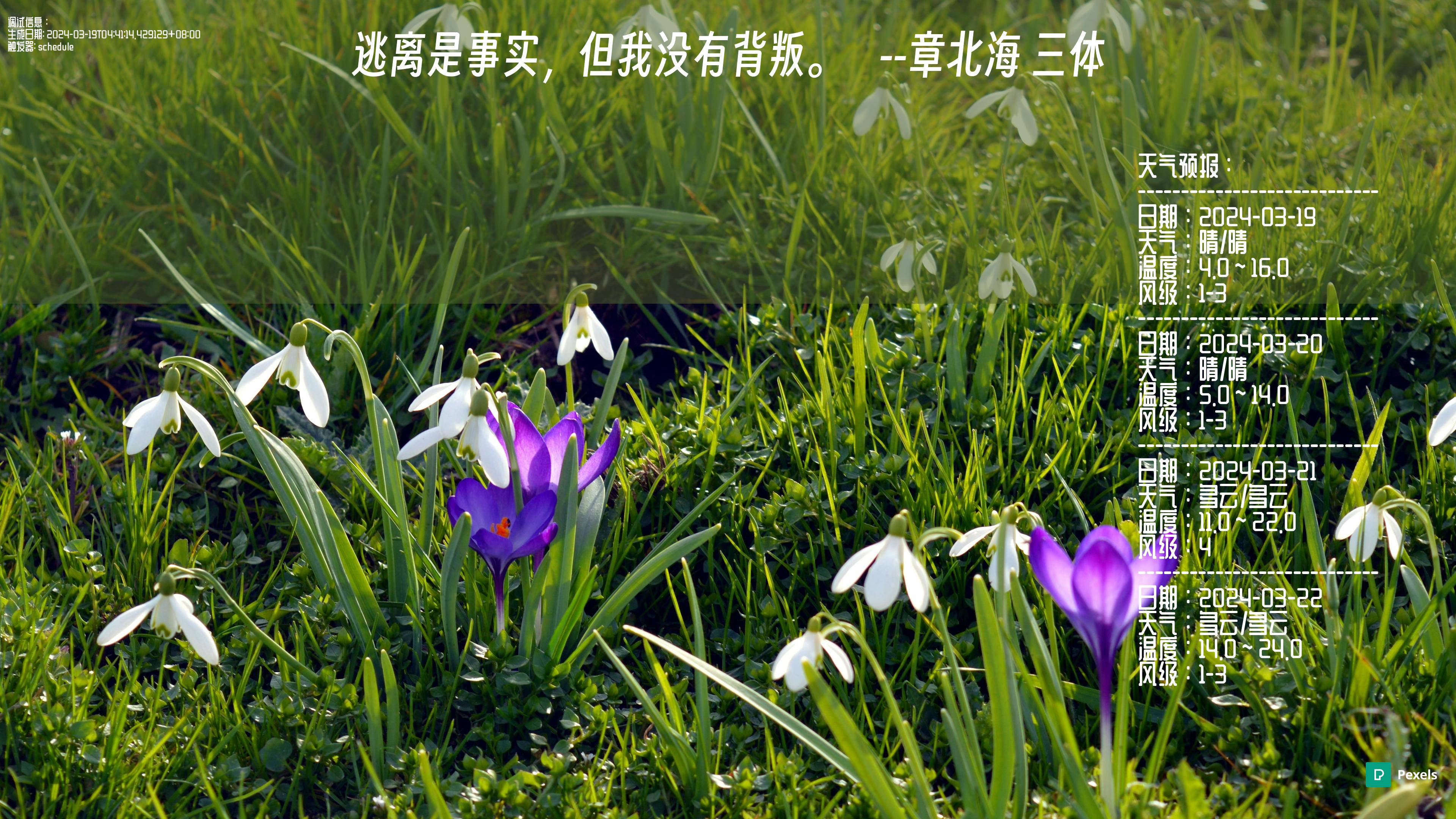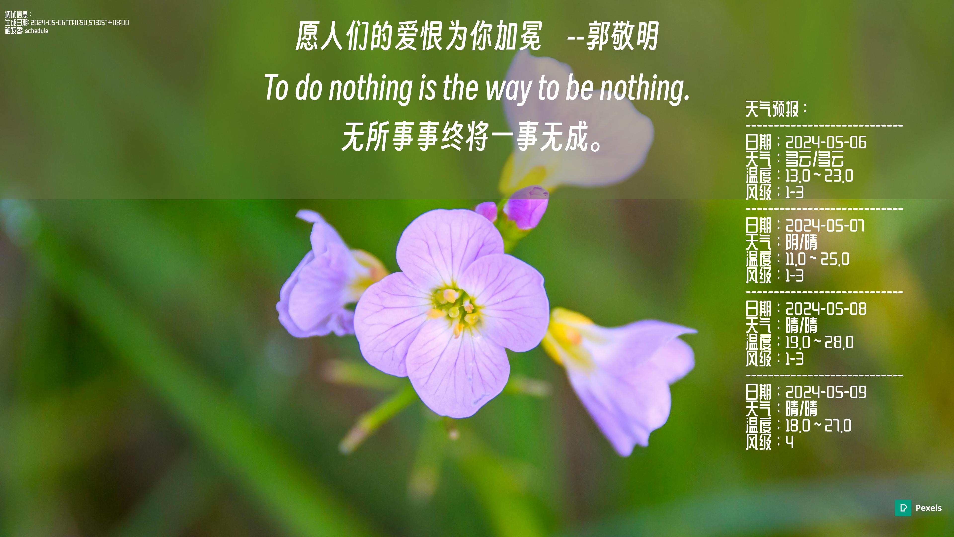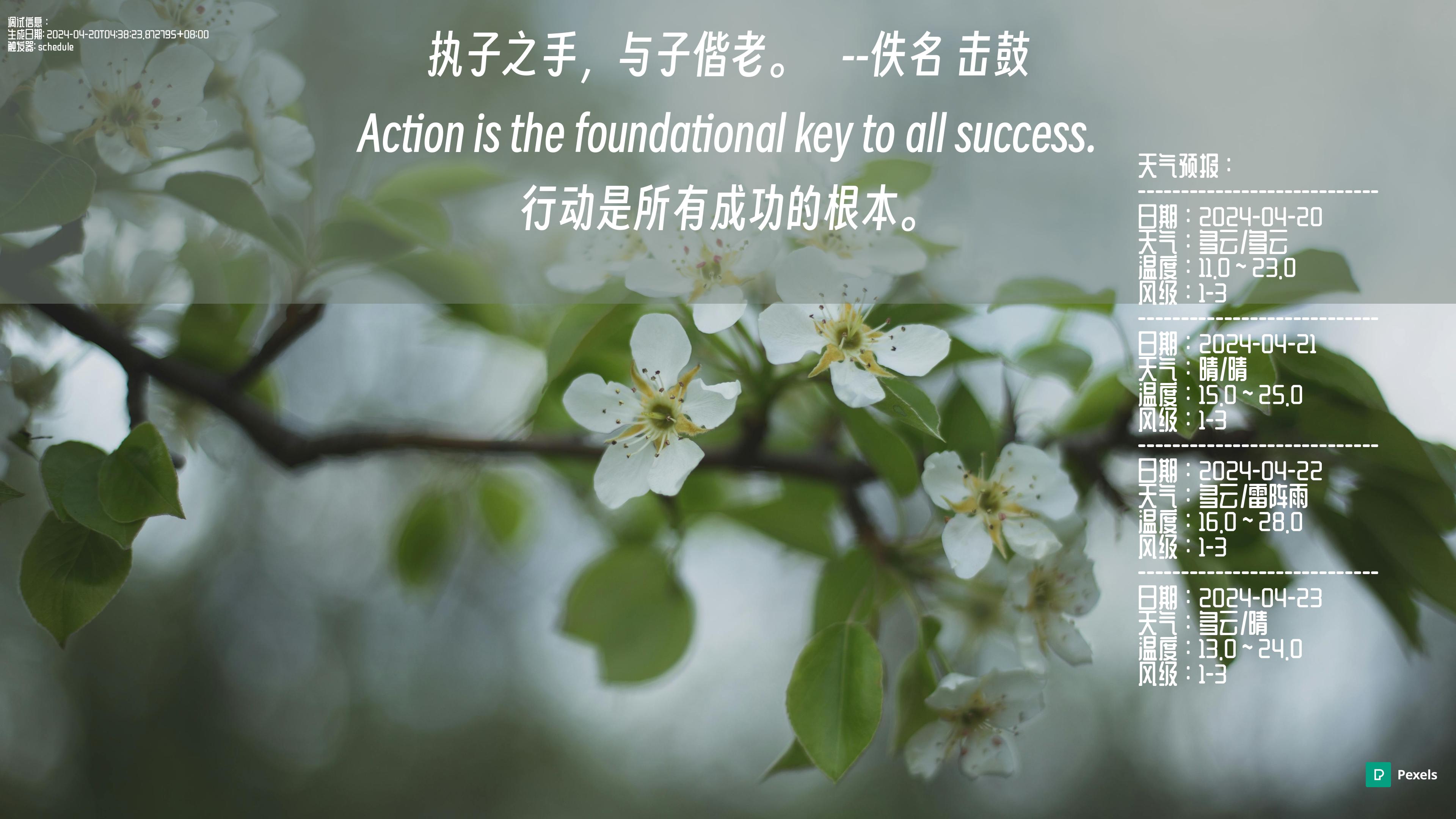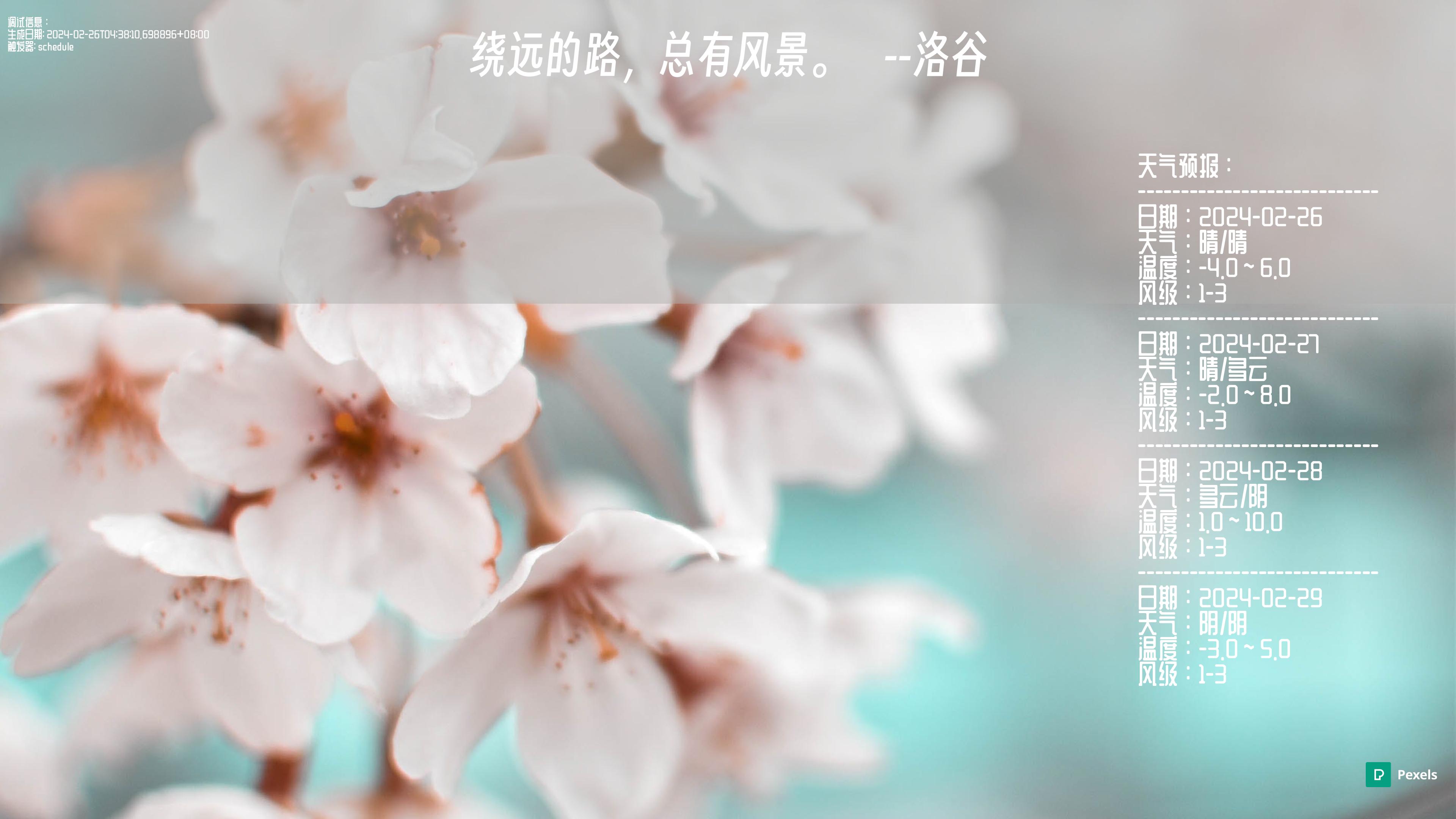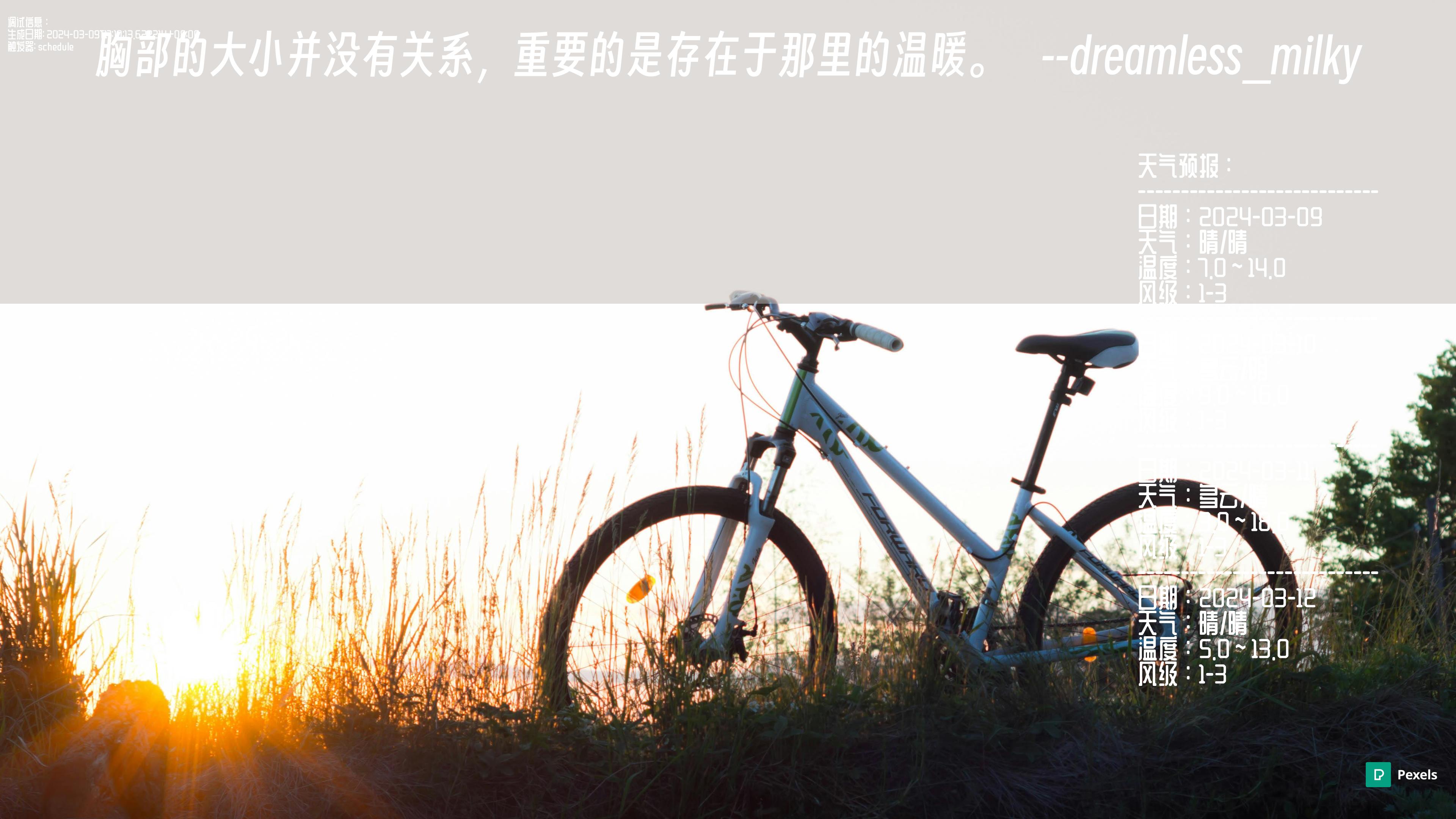 | Date / 日期 | Pexels ID | Quotes / 每日一言 | Image / 图片 | 触发器 |