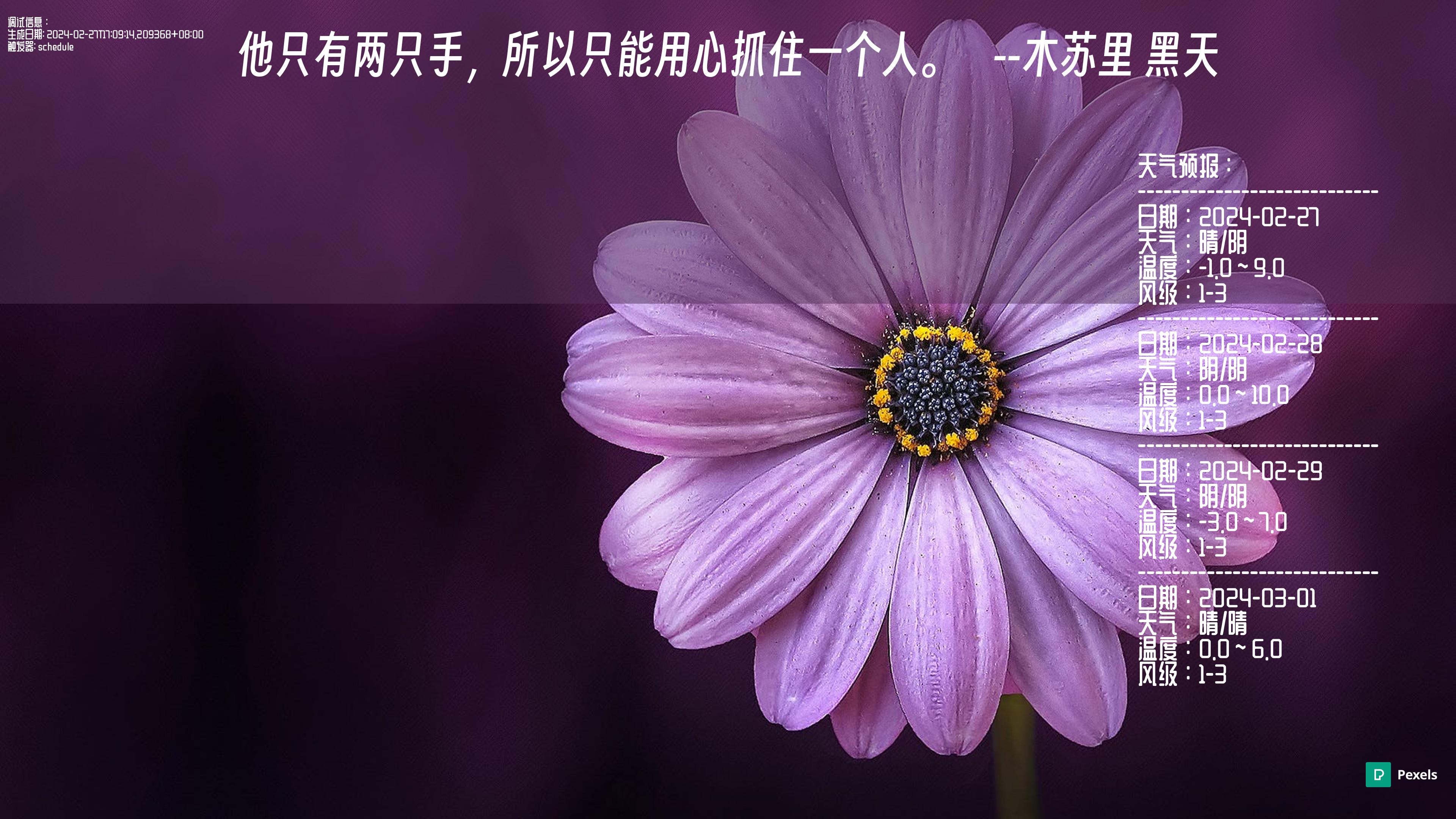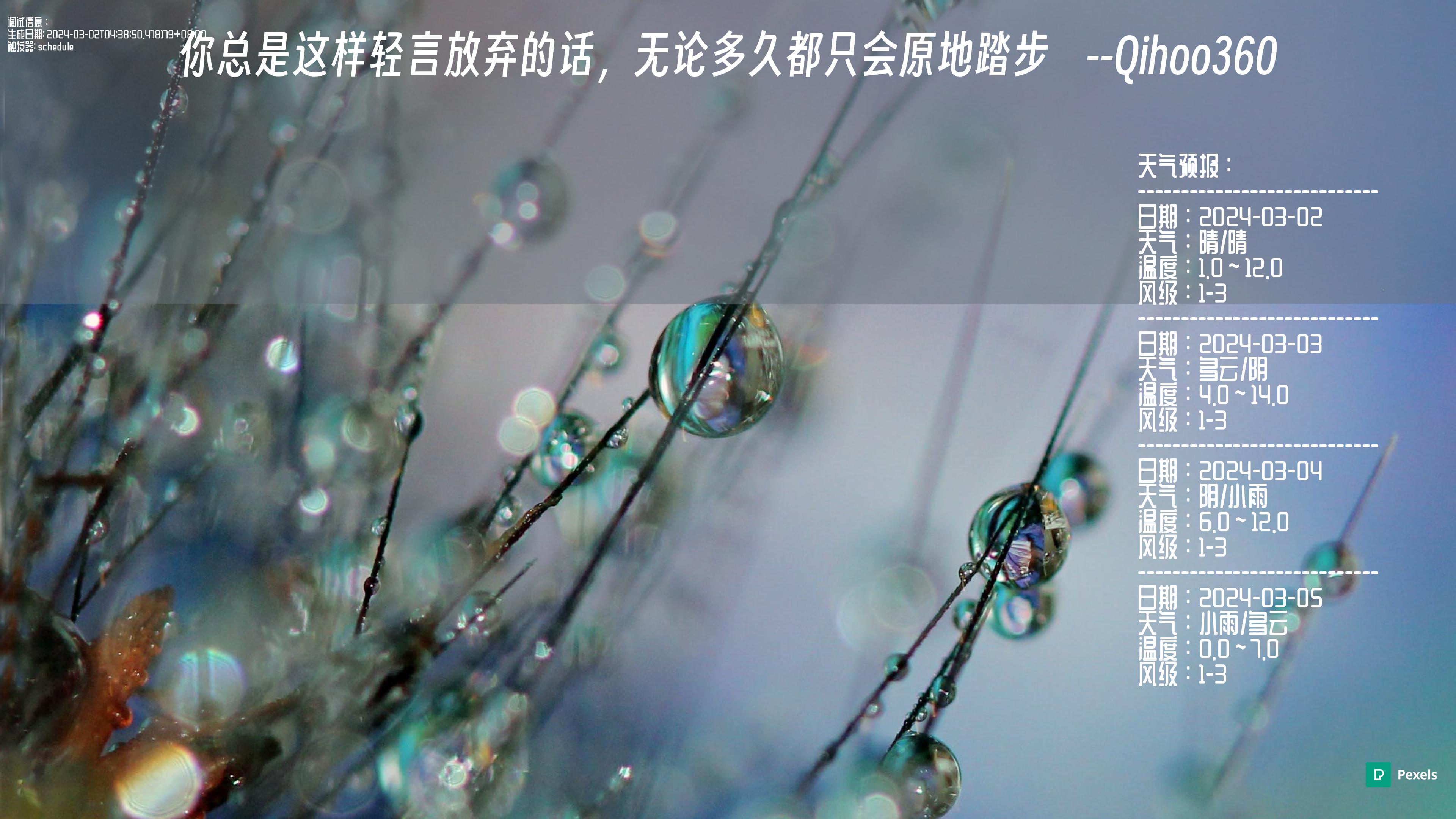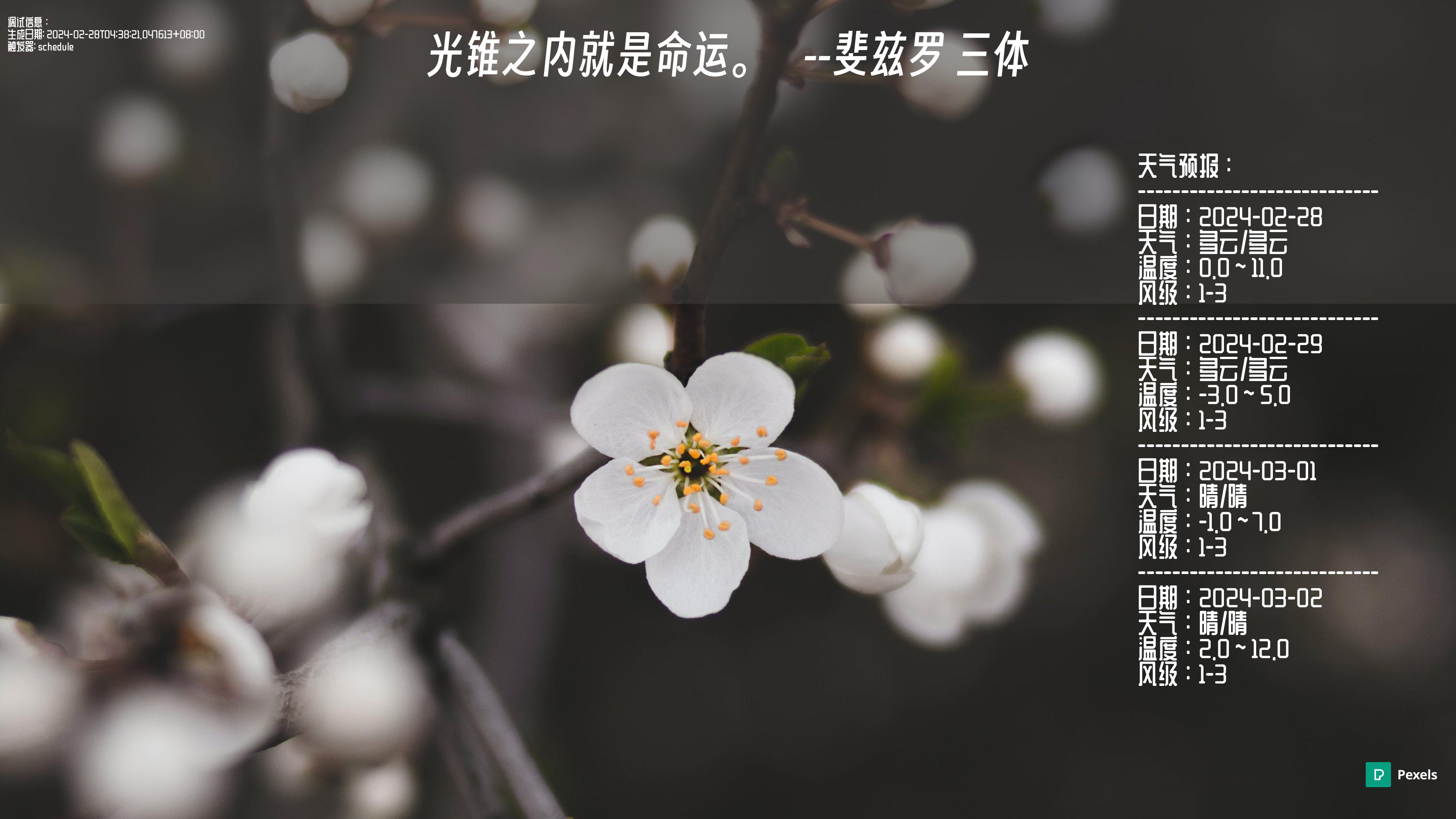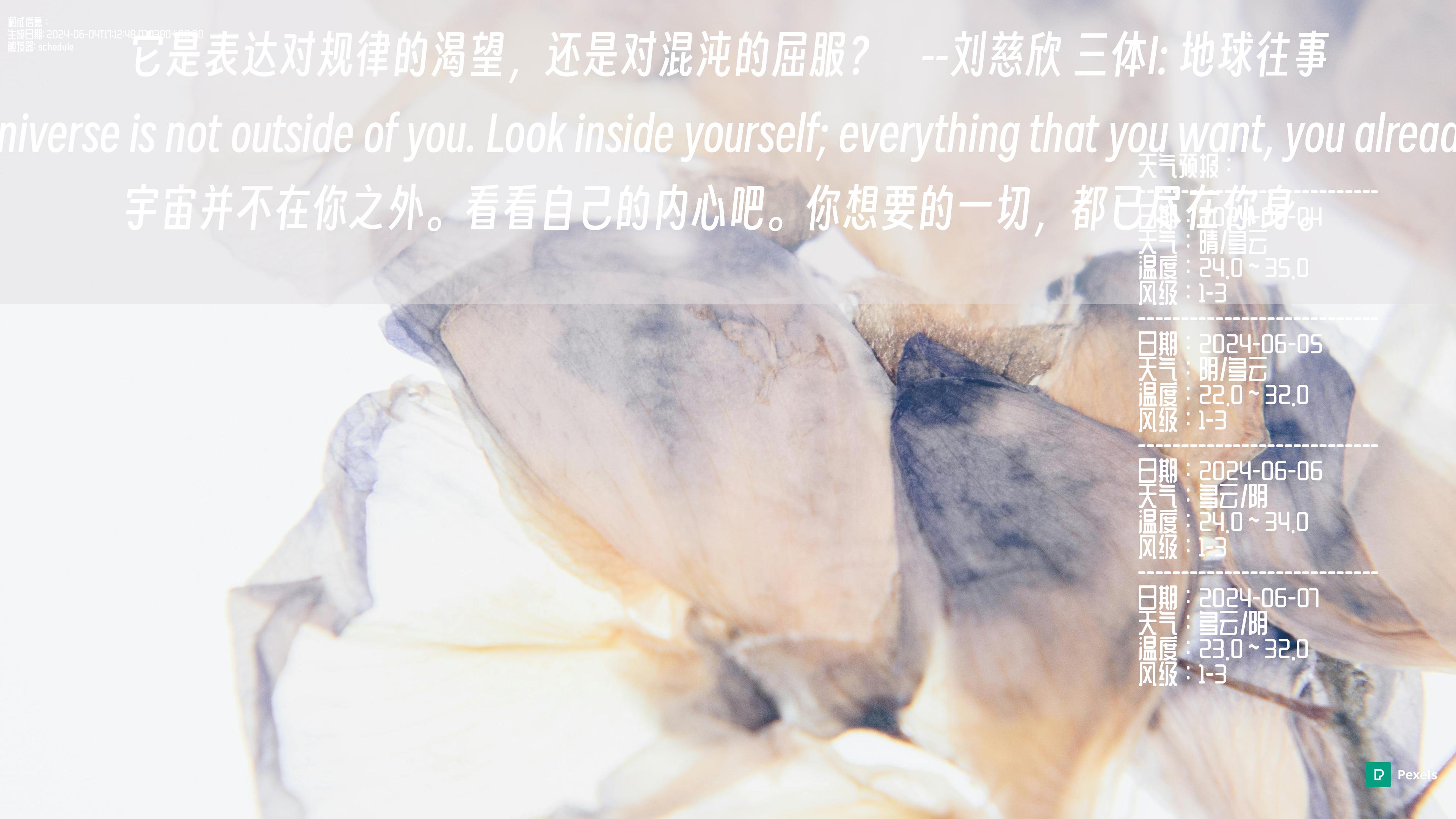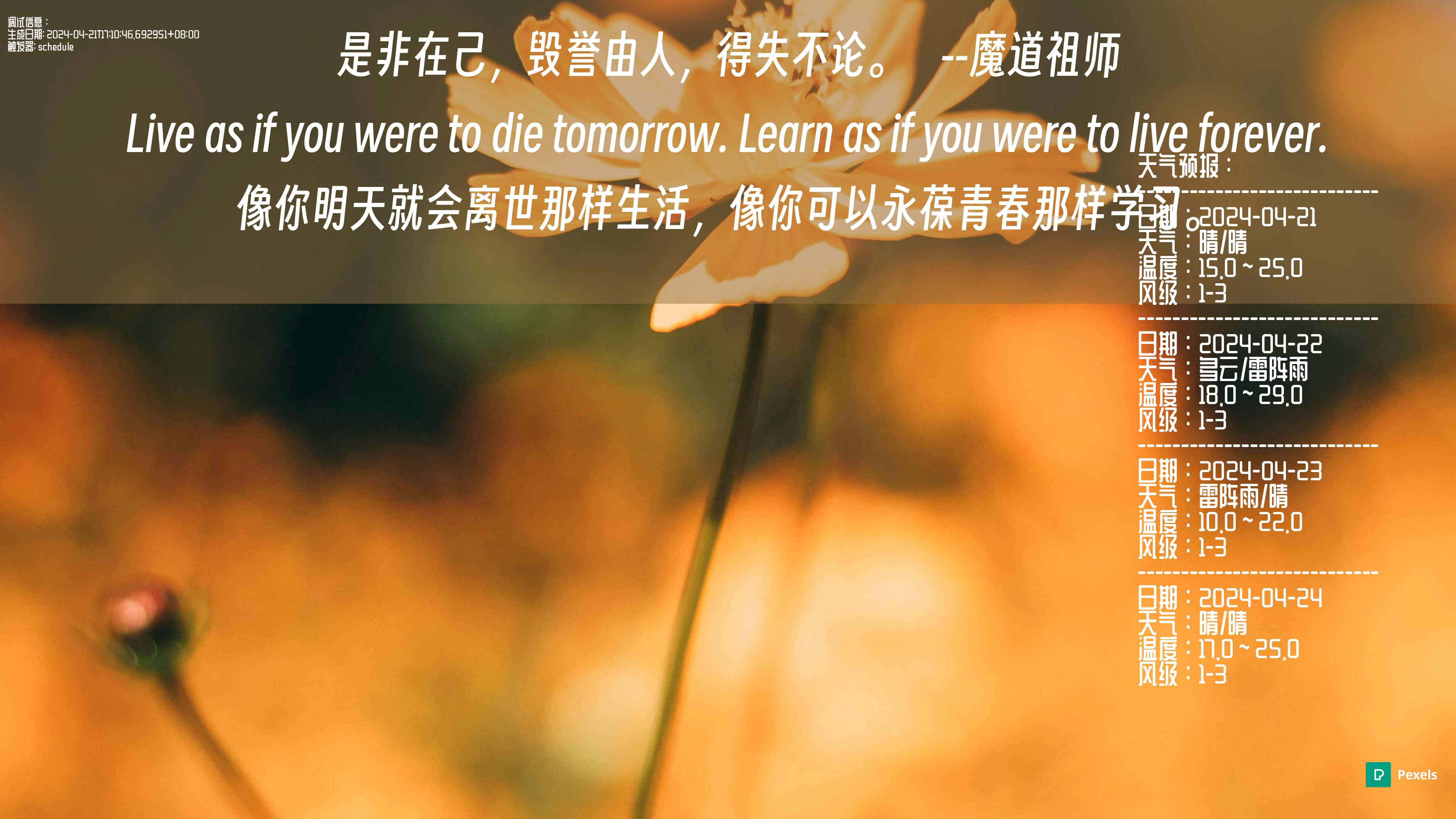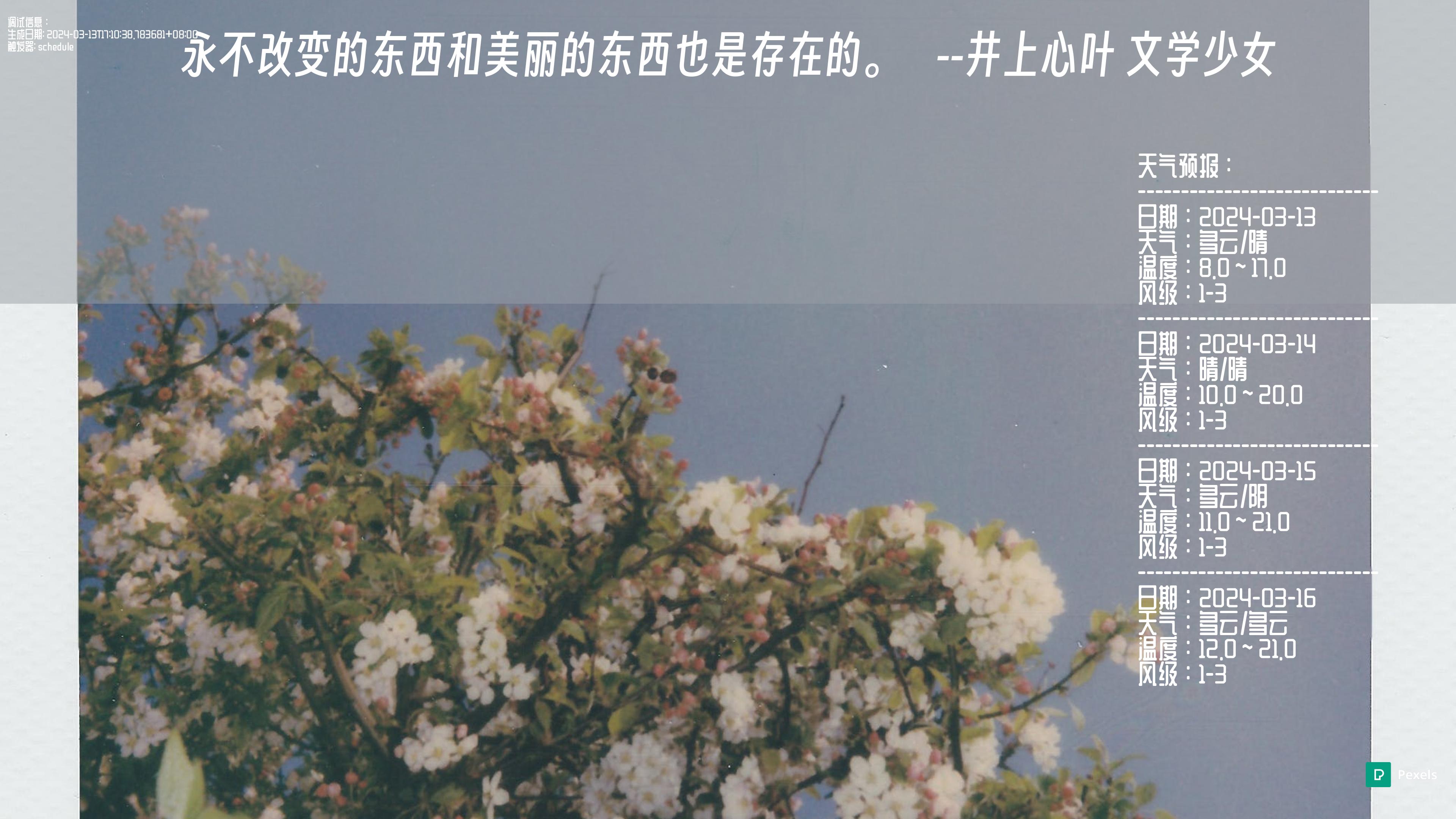 | Date / 日期 | Pexels ID | Quotes / 每日一言 | Image / 图片 | 触发器 |