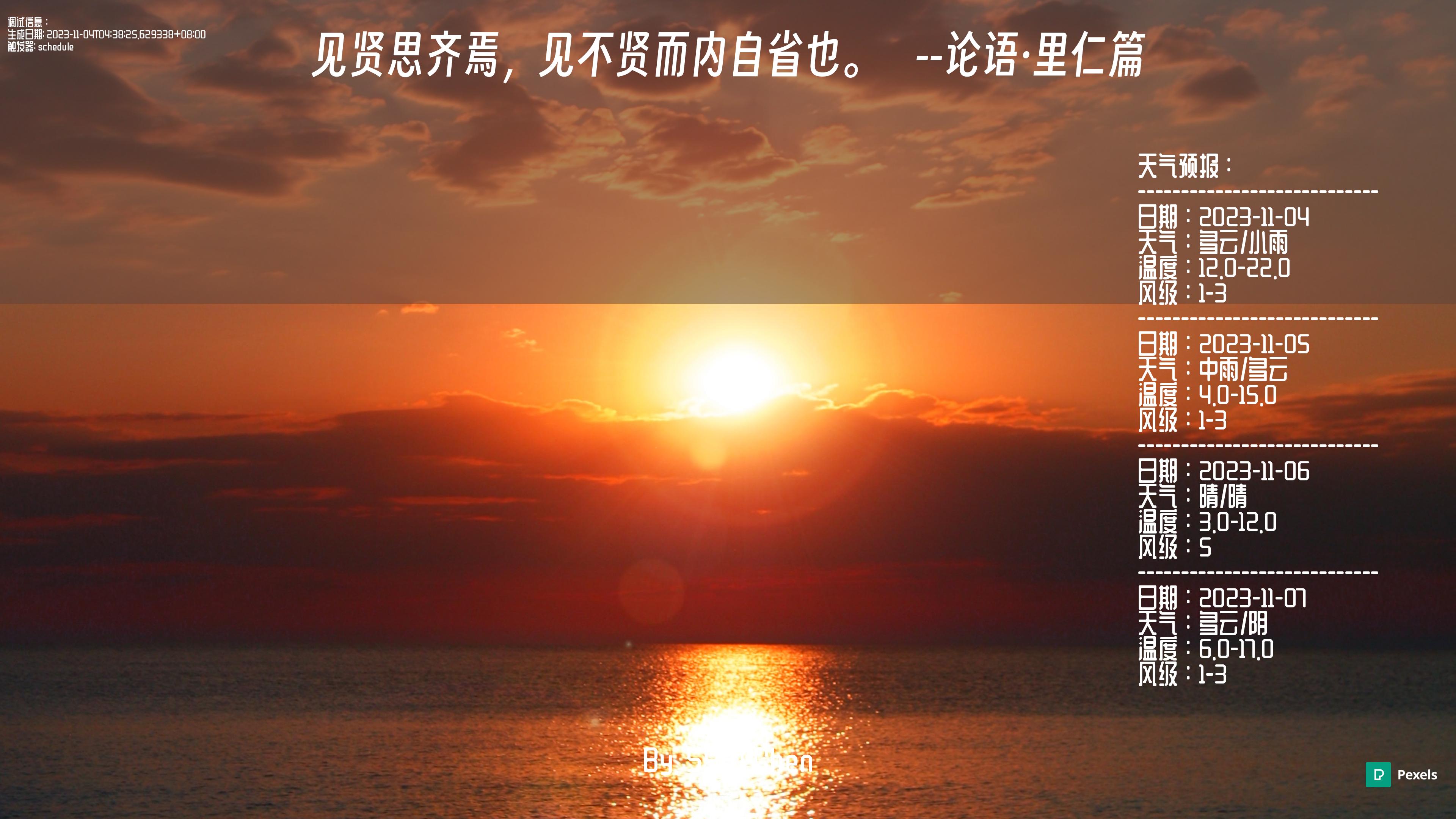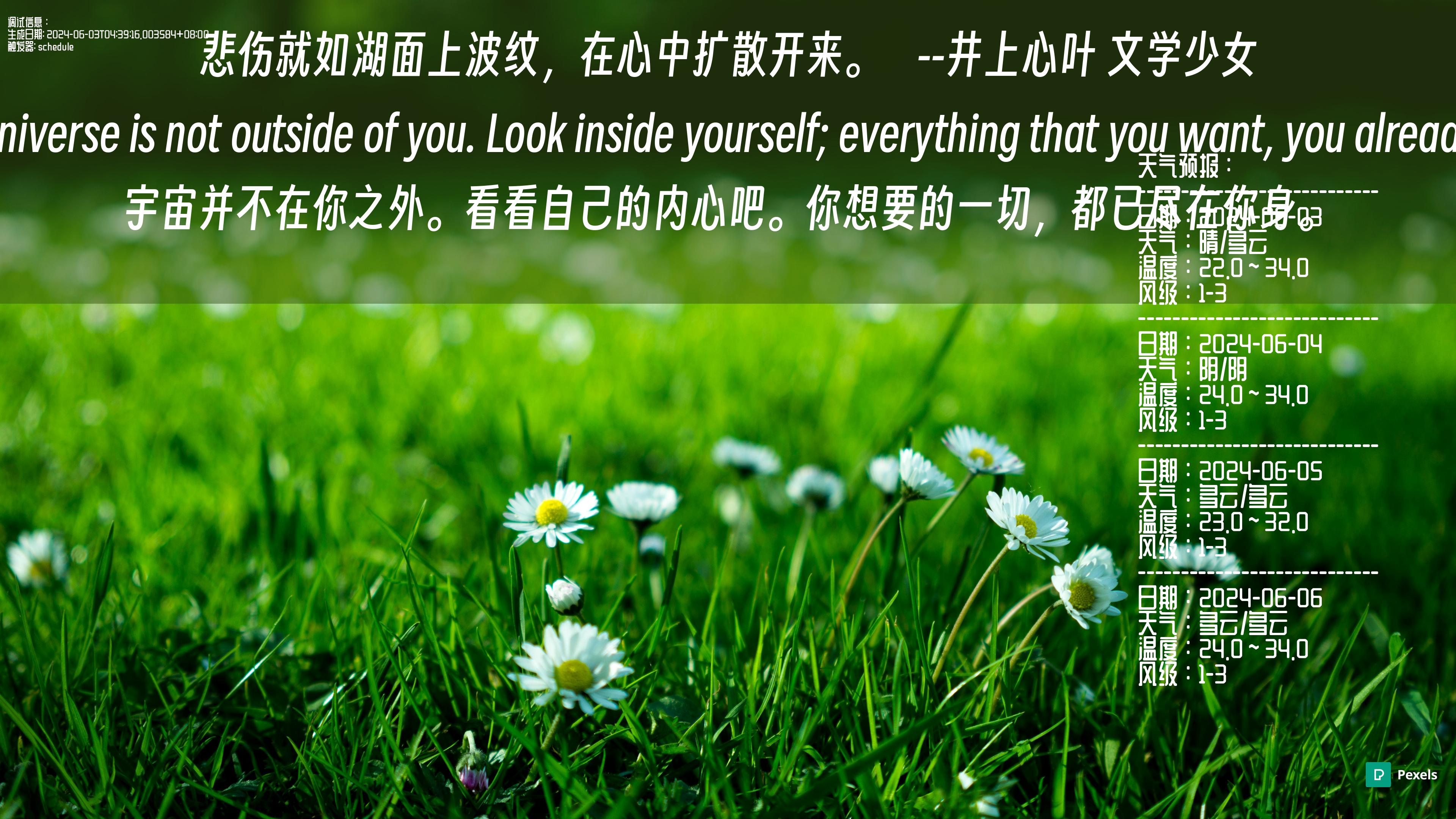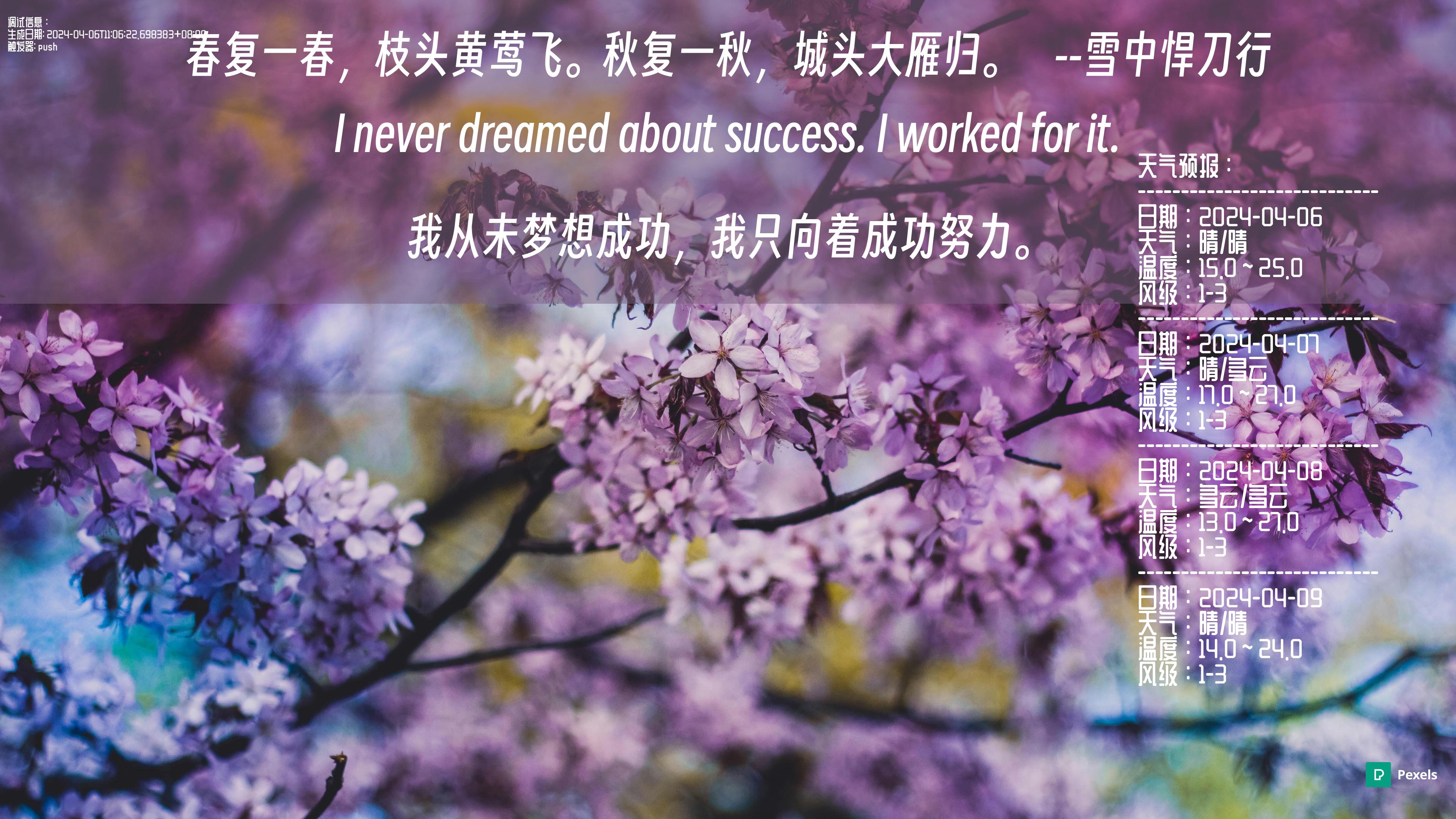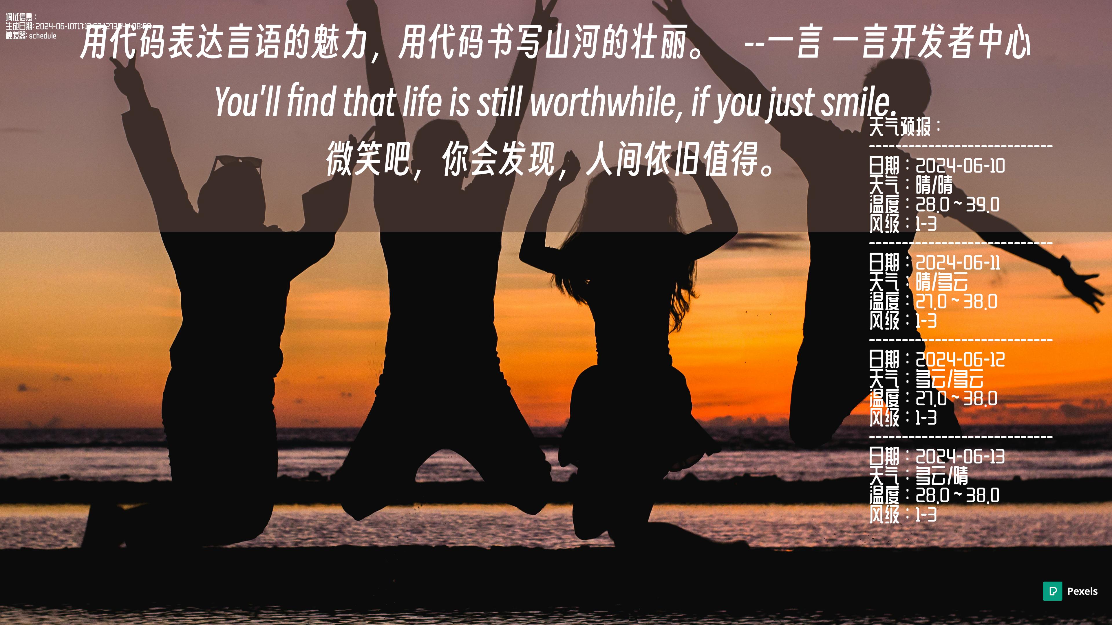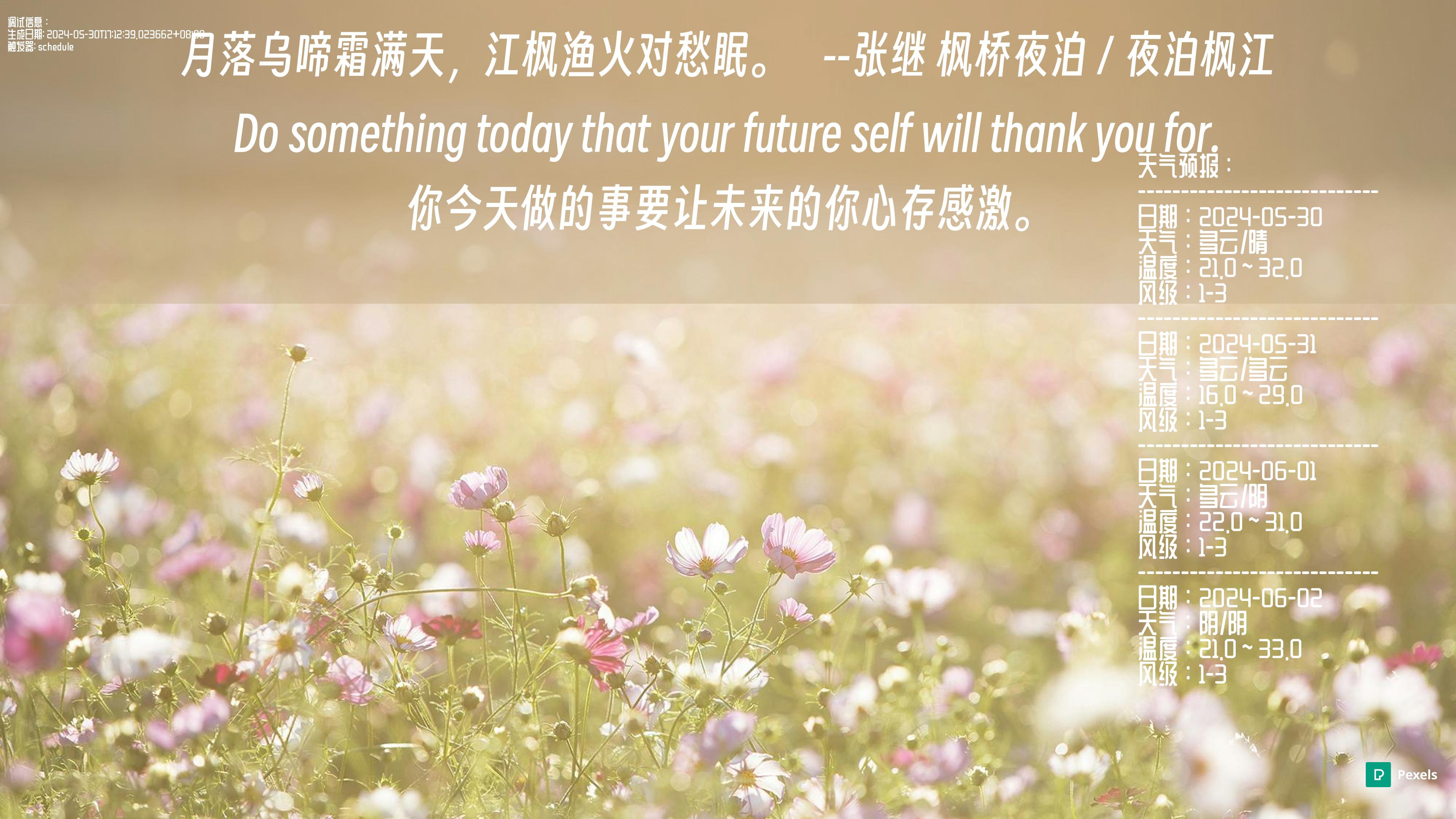 | Date / 日期 | Pexels ID | Quotes / 每日一言 | Image / 图片 | 触发器 |