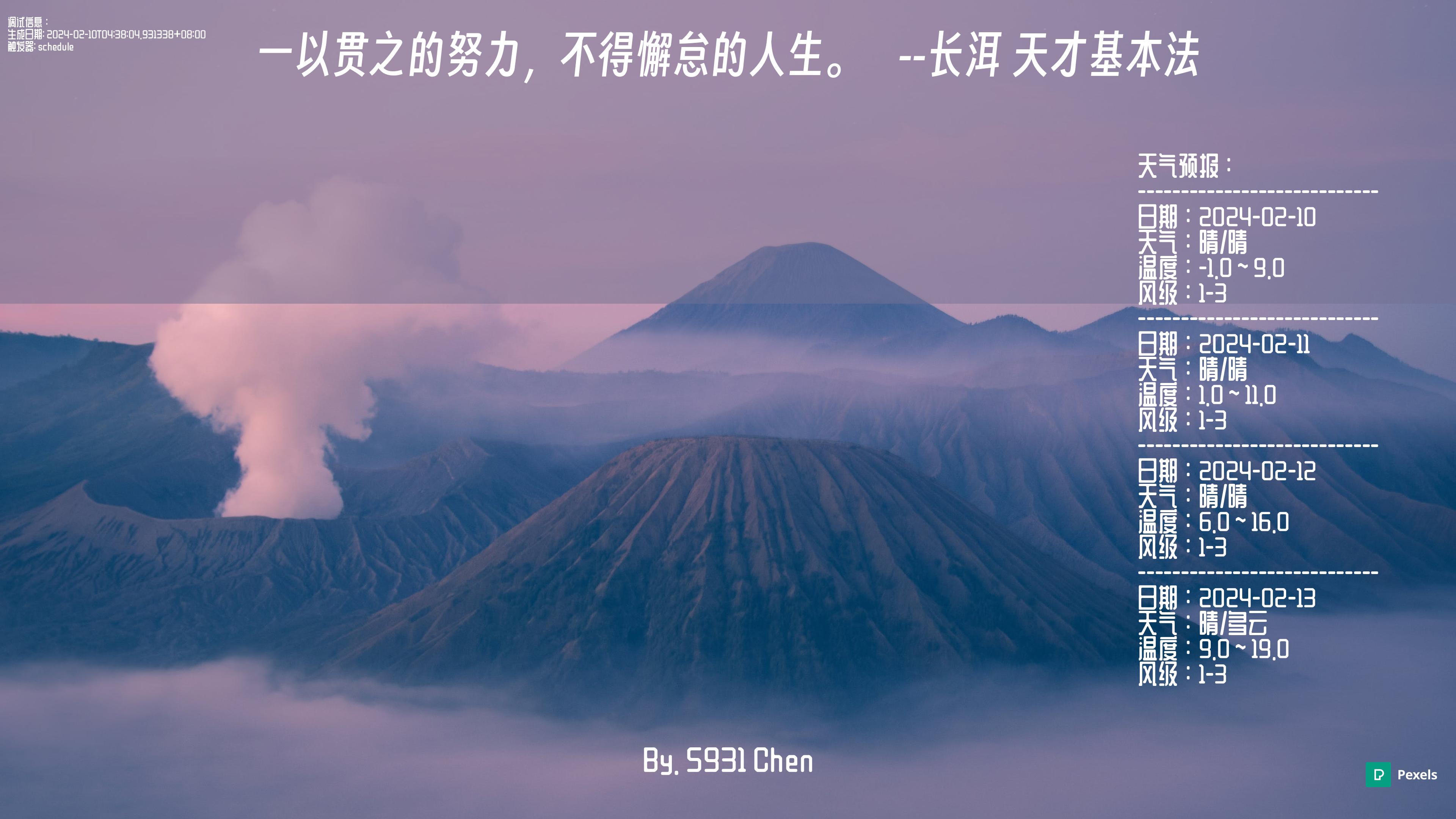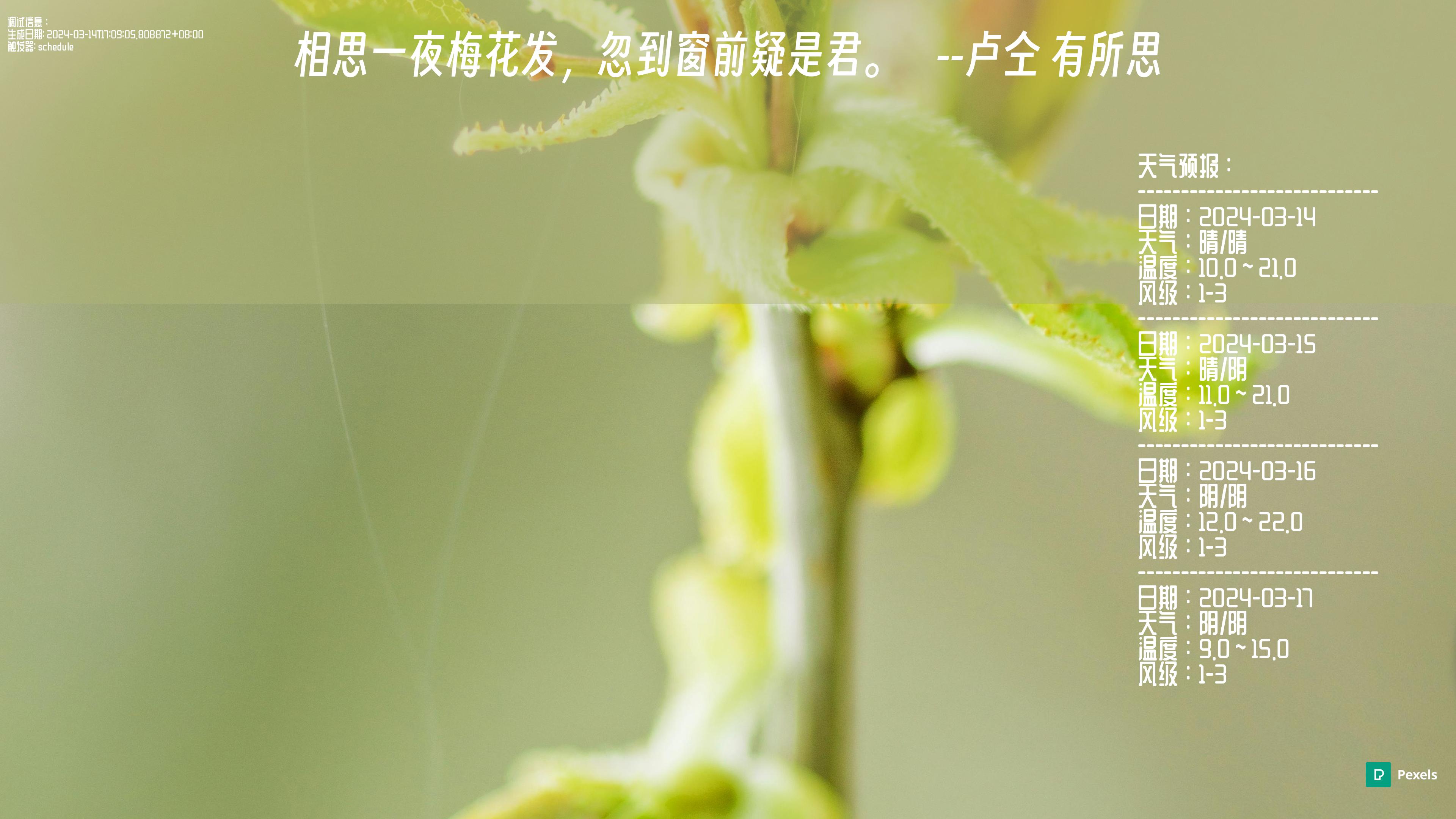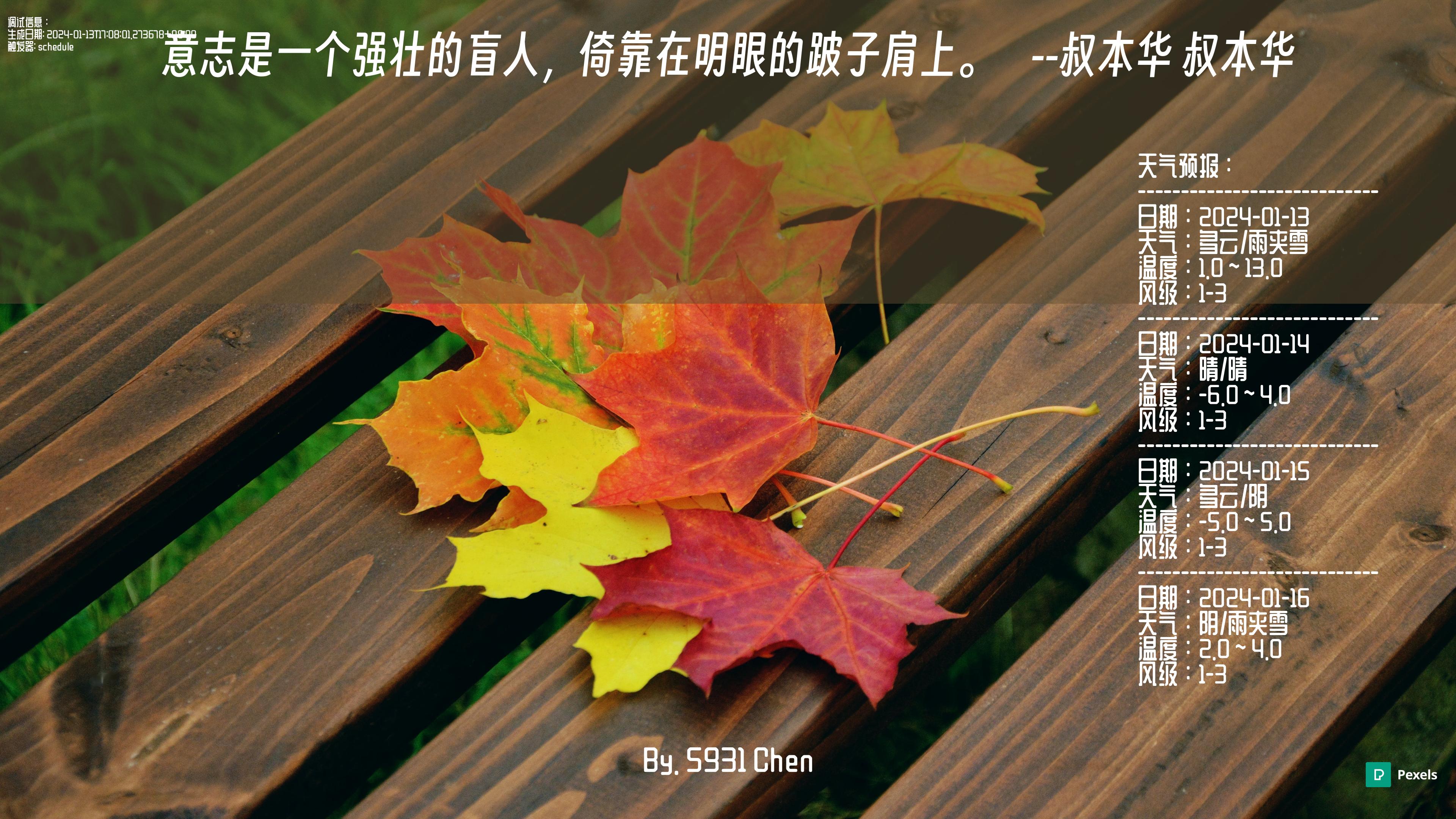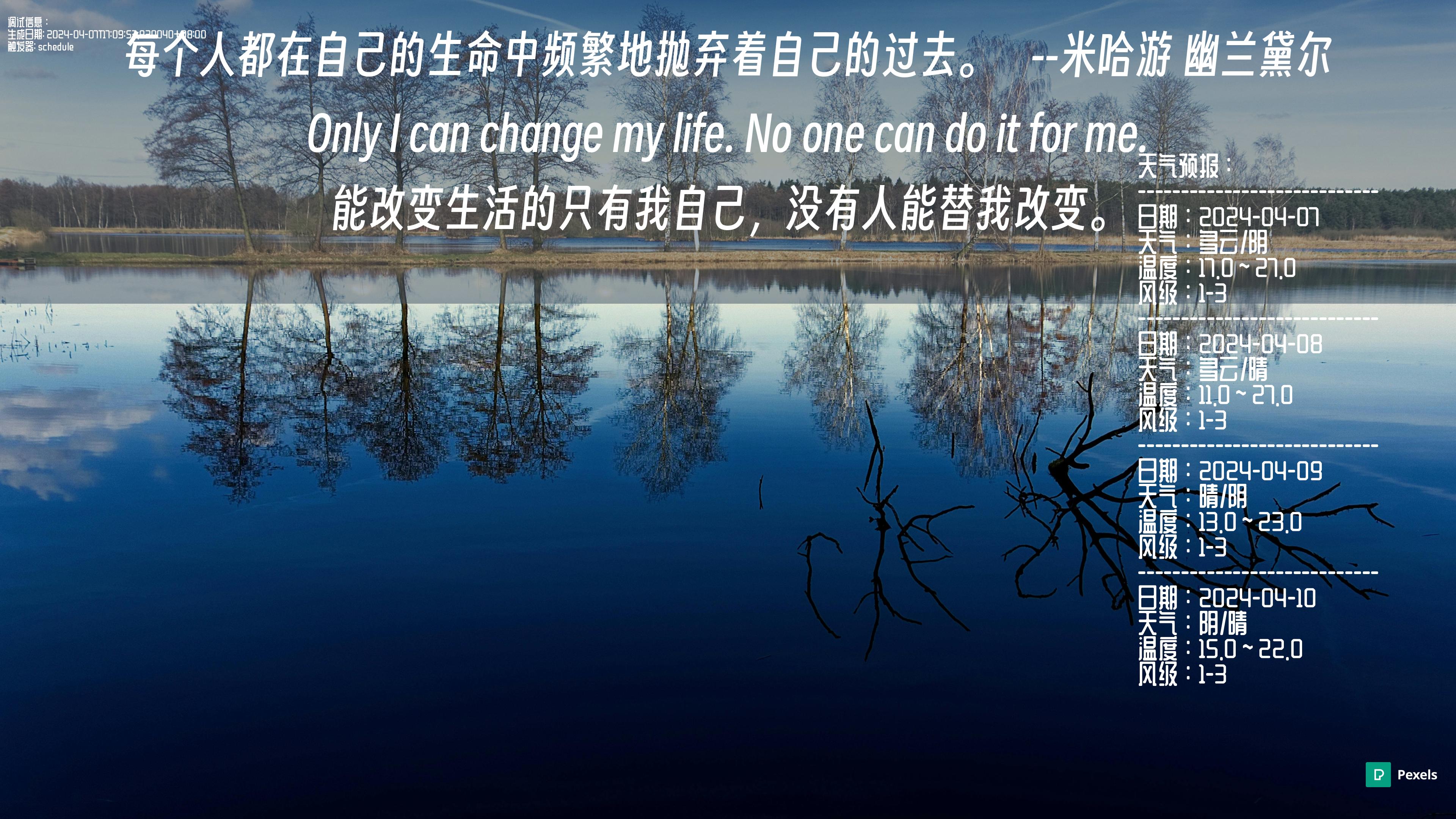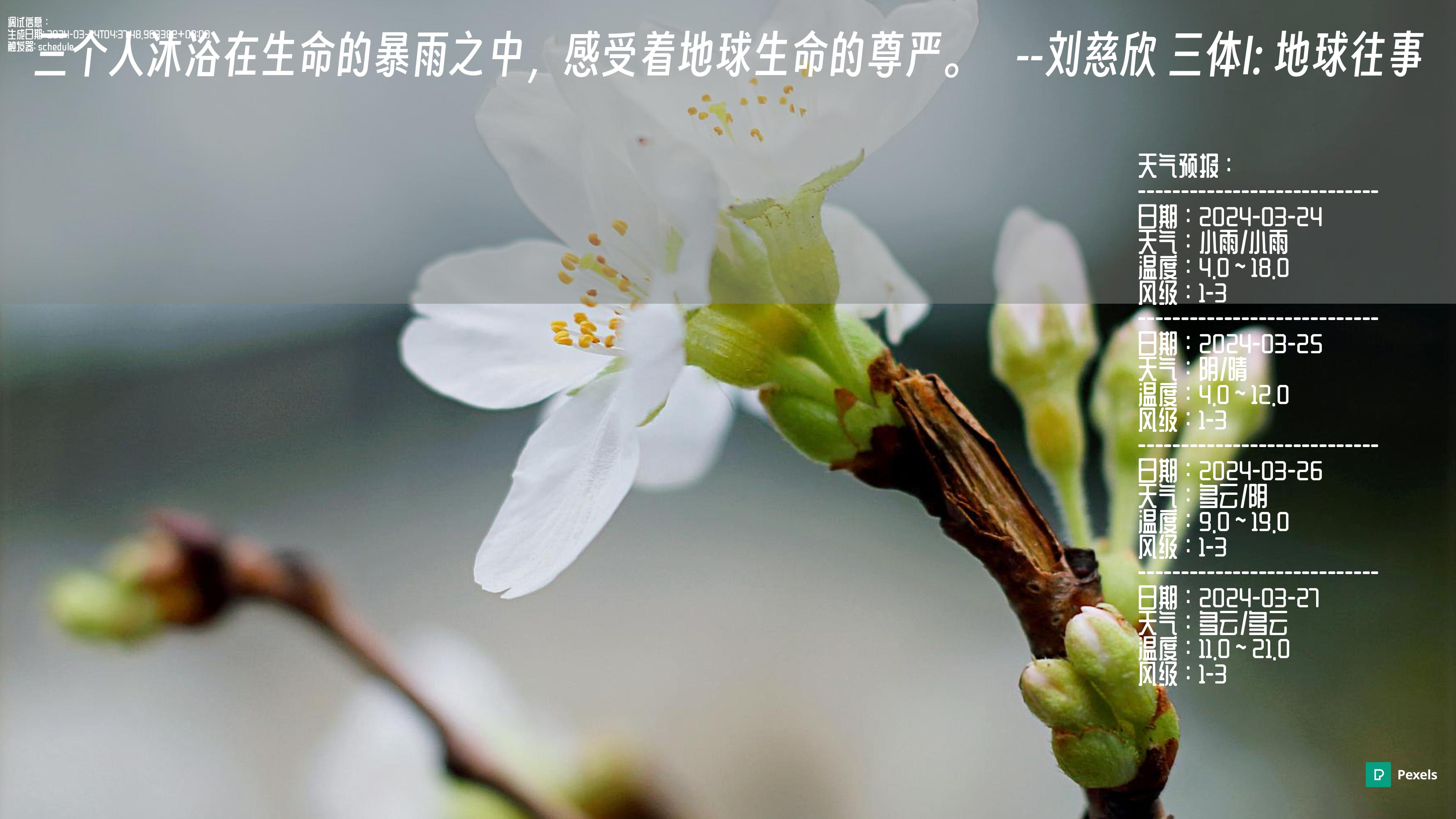 | Date / 日期 | Pexels ID | Quotes / 每日一言 | Image / 图片 | 触发器 |