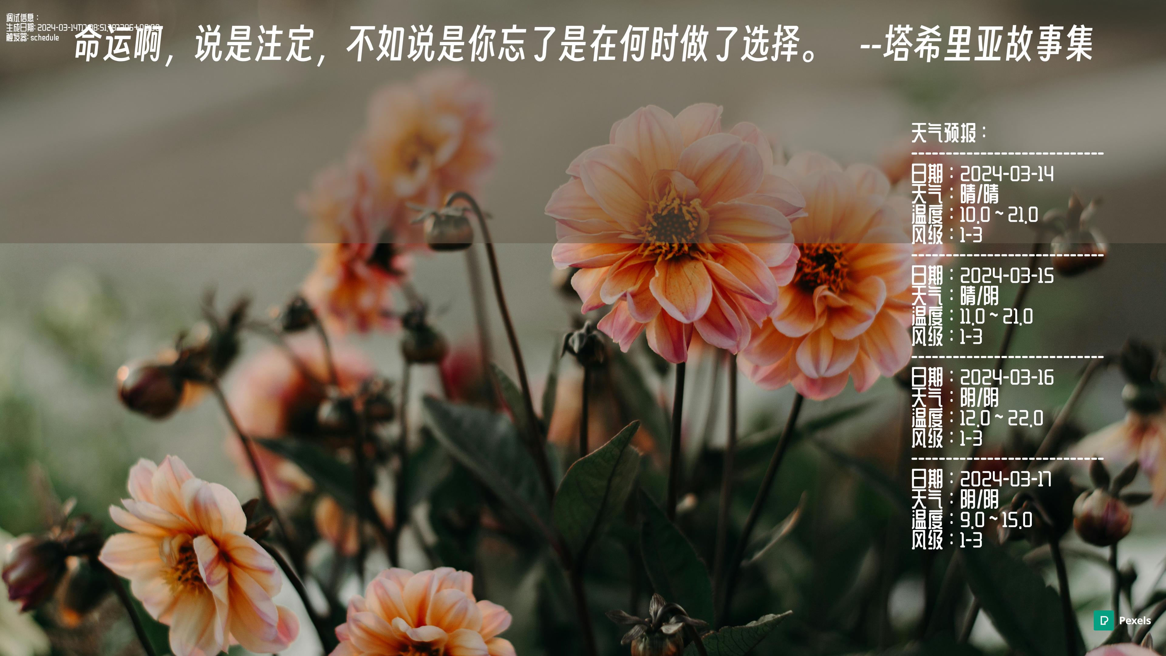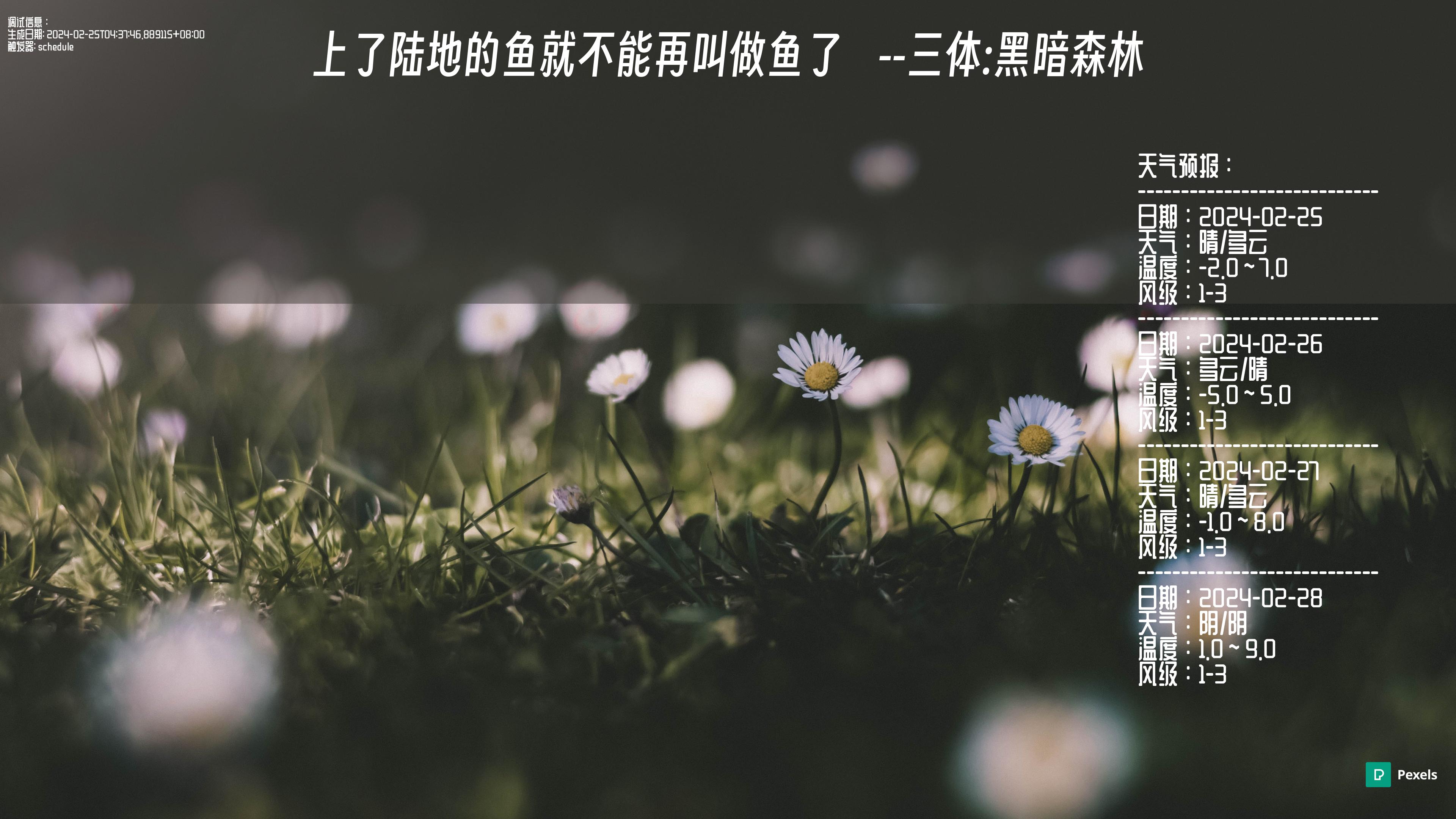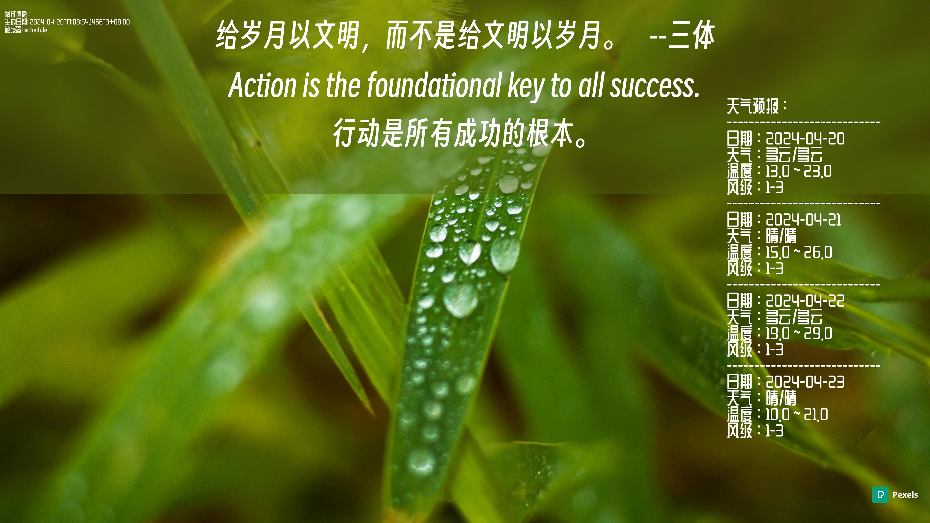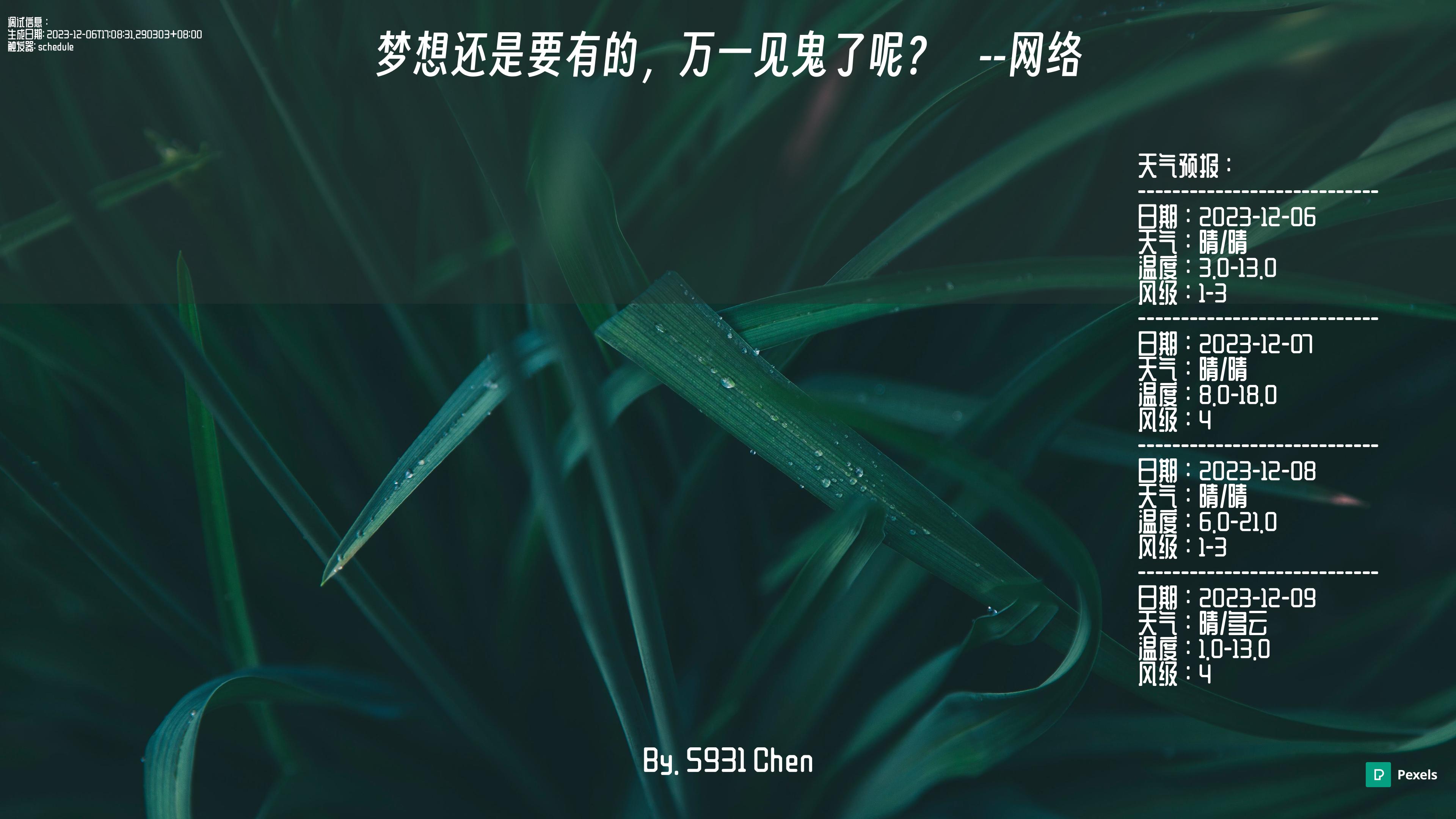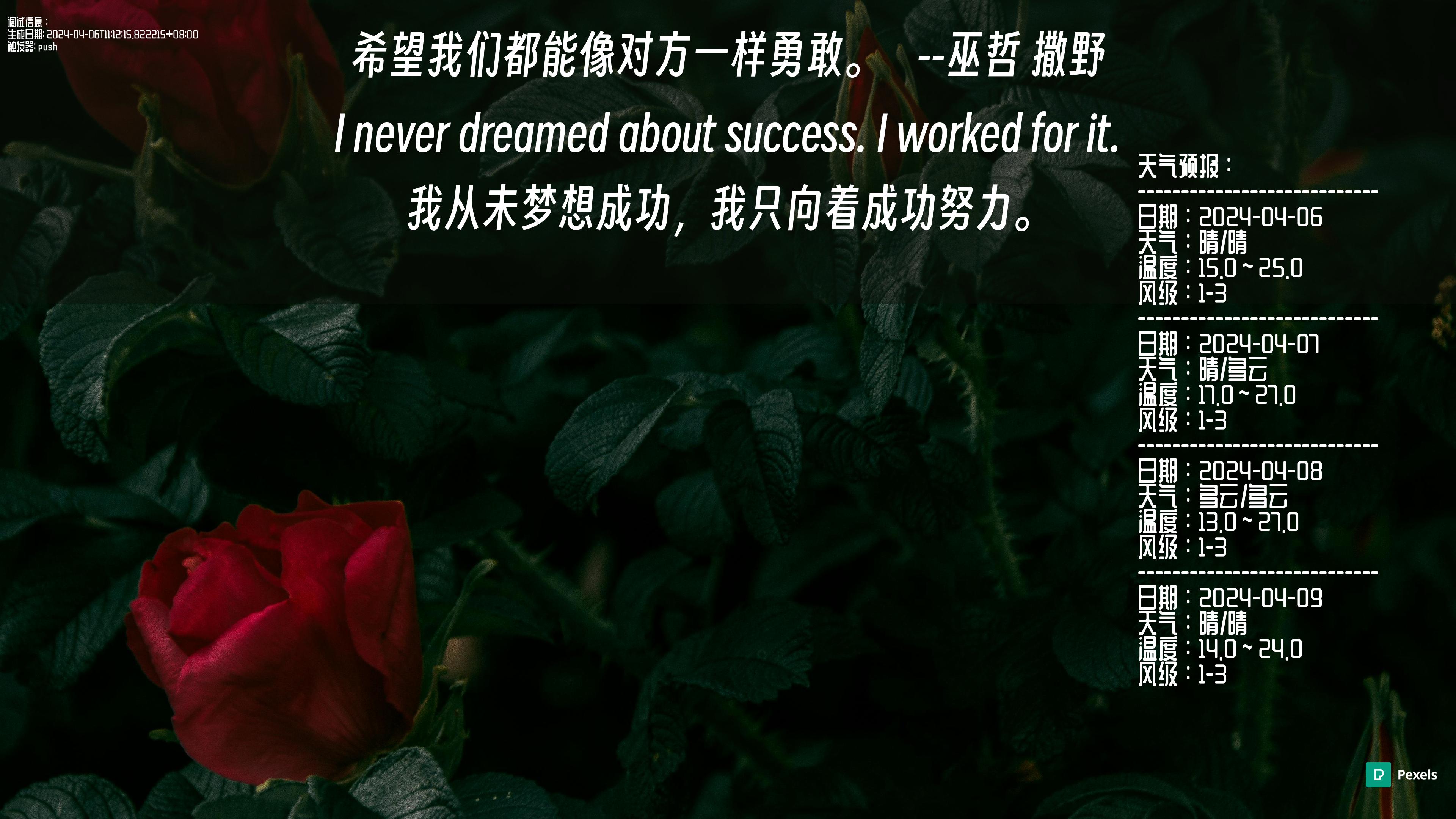 | Date / 日期 | Pexels ID | Quotes / 每日一言 | Image / 图片 | 触发器 |