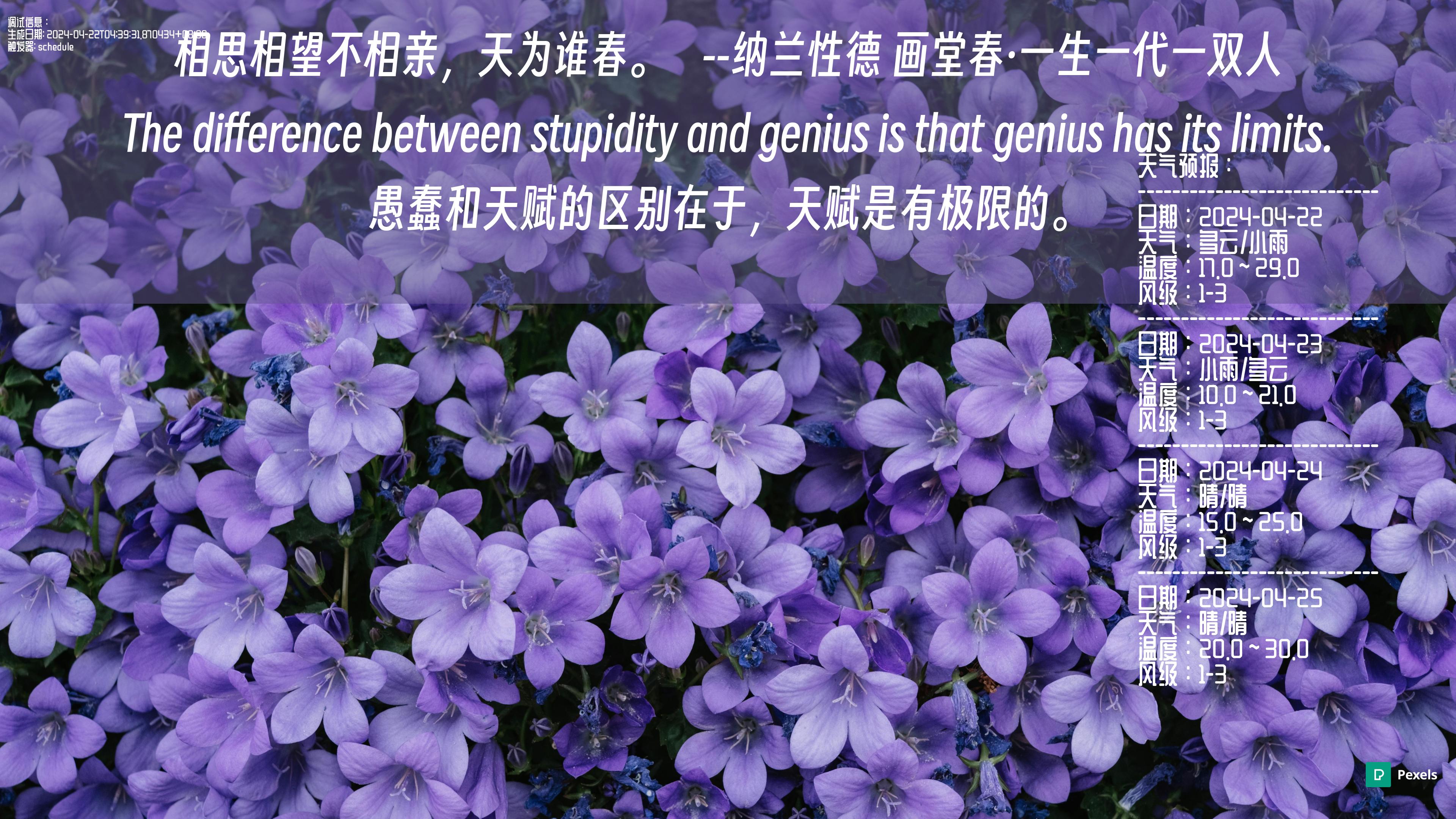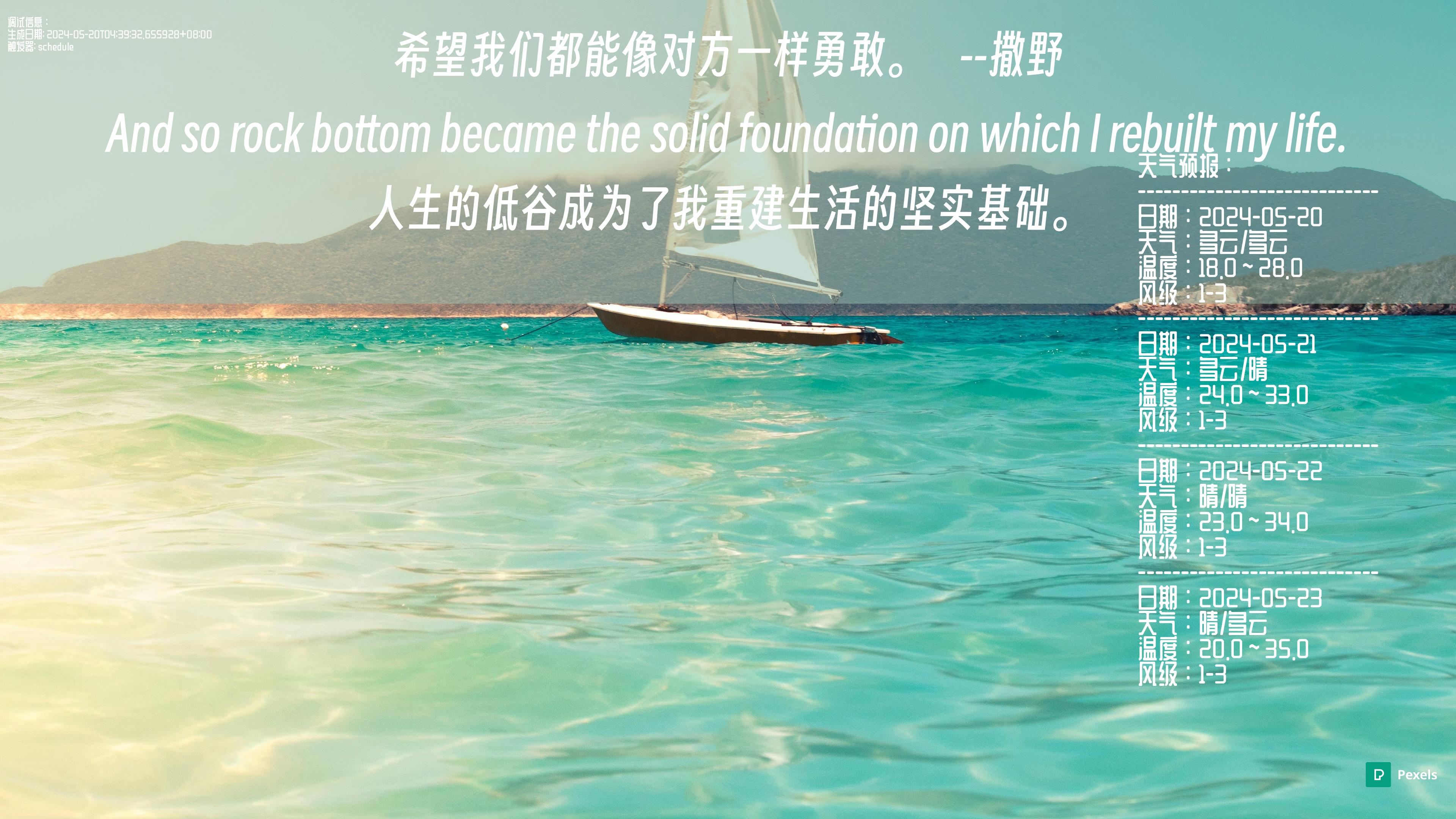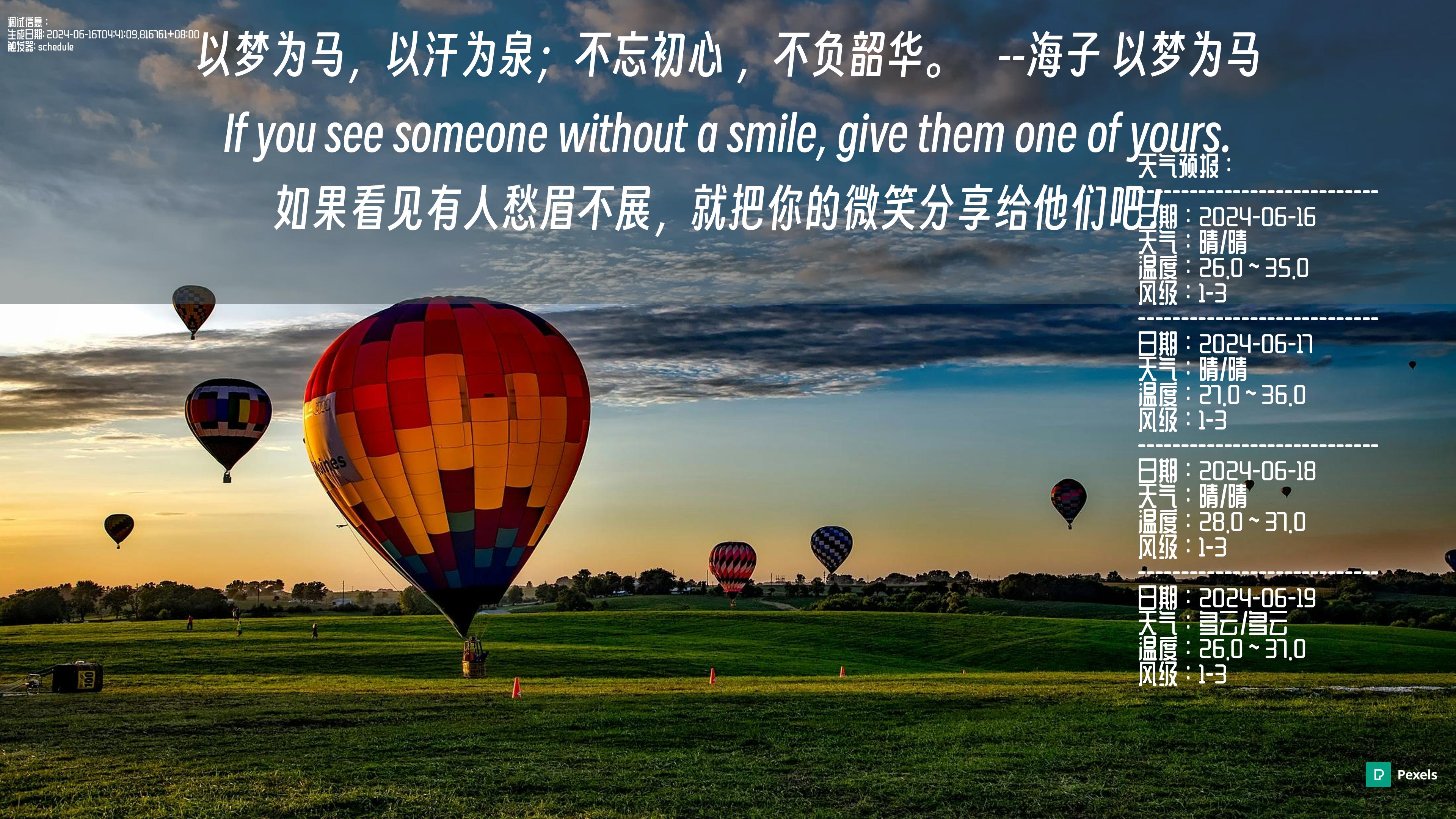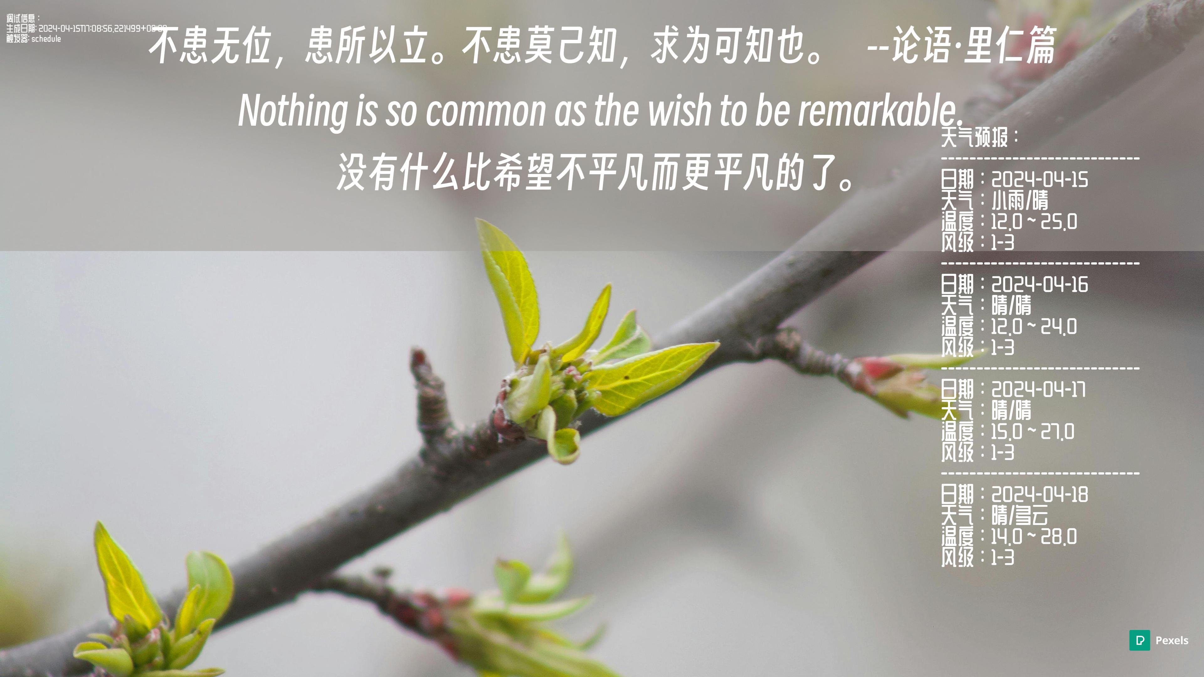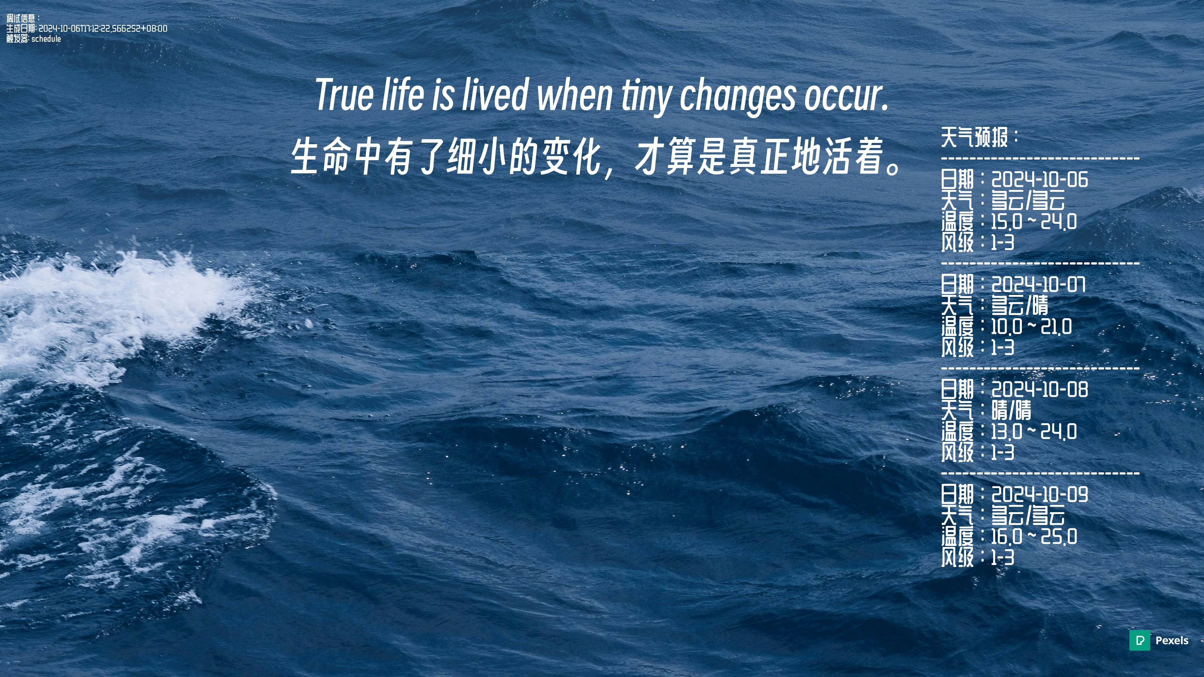 | Date / 日期 | Pexels ID | Quotes / 每日一言 | Image / 图片 | 触发器 |