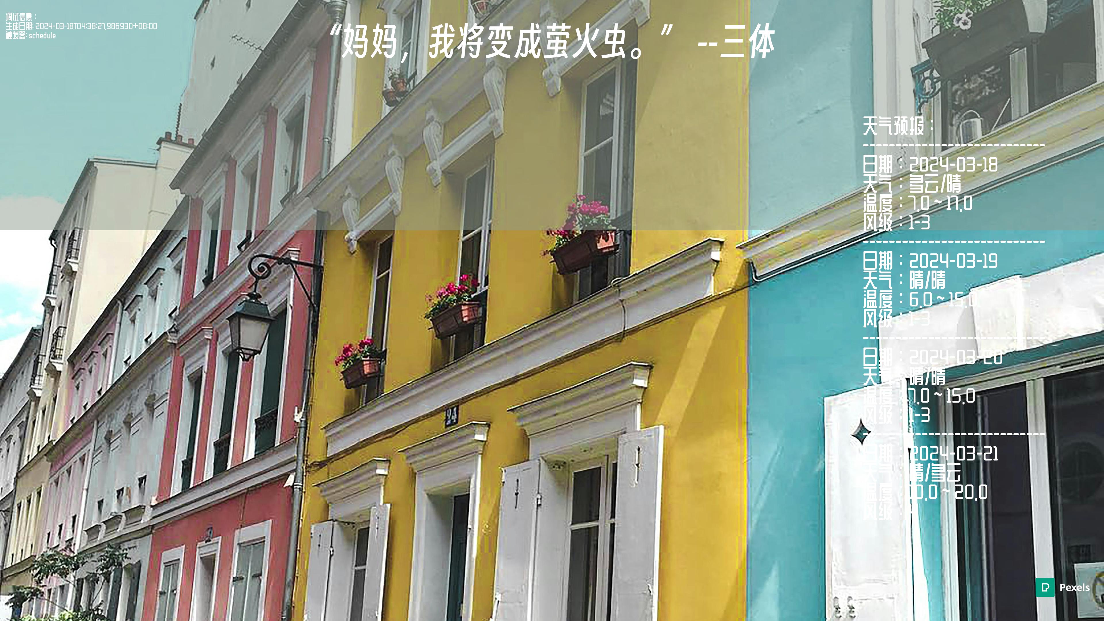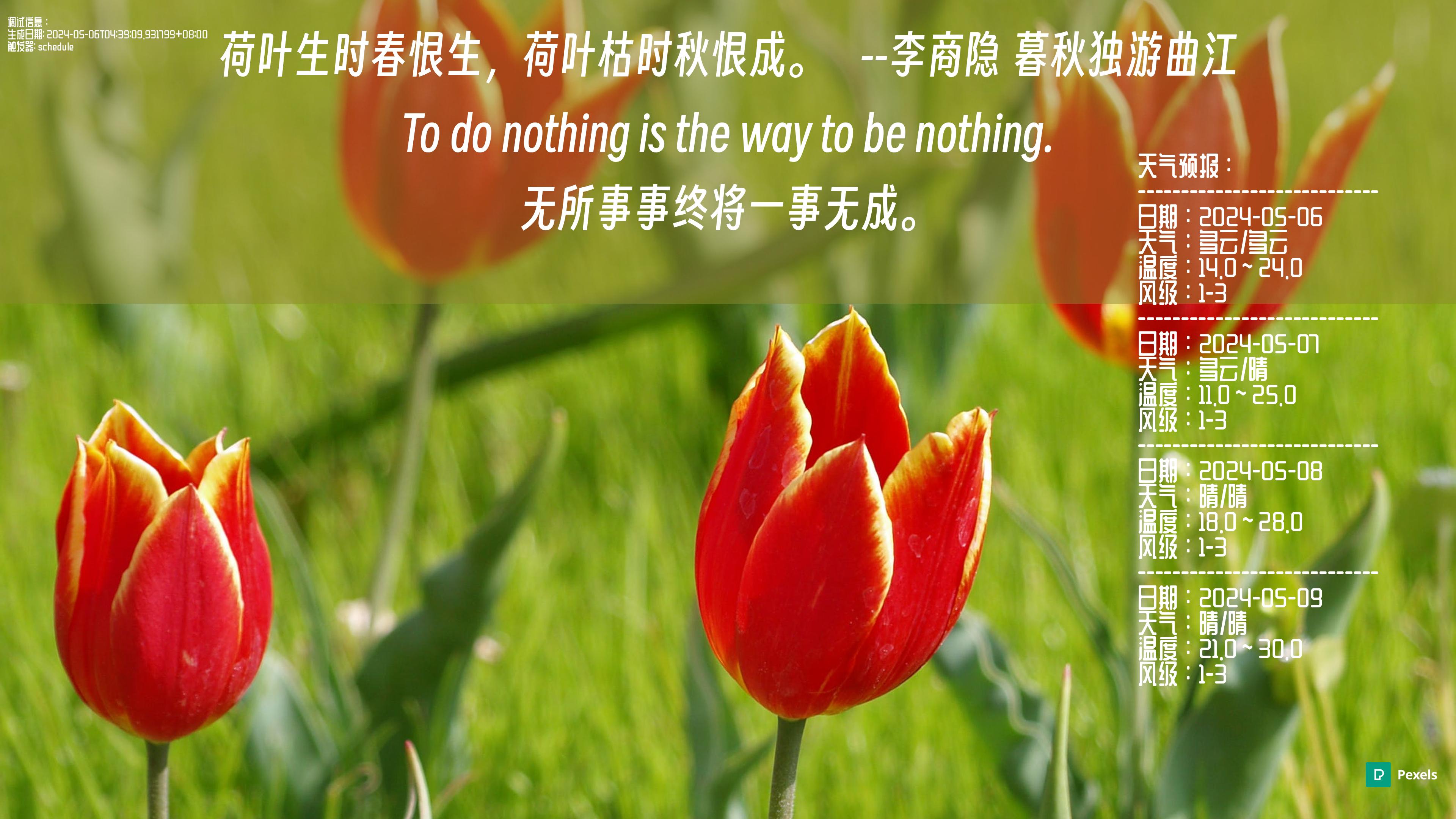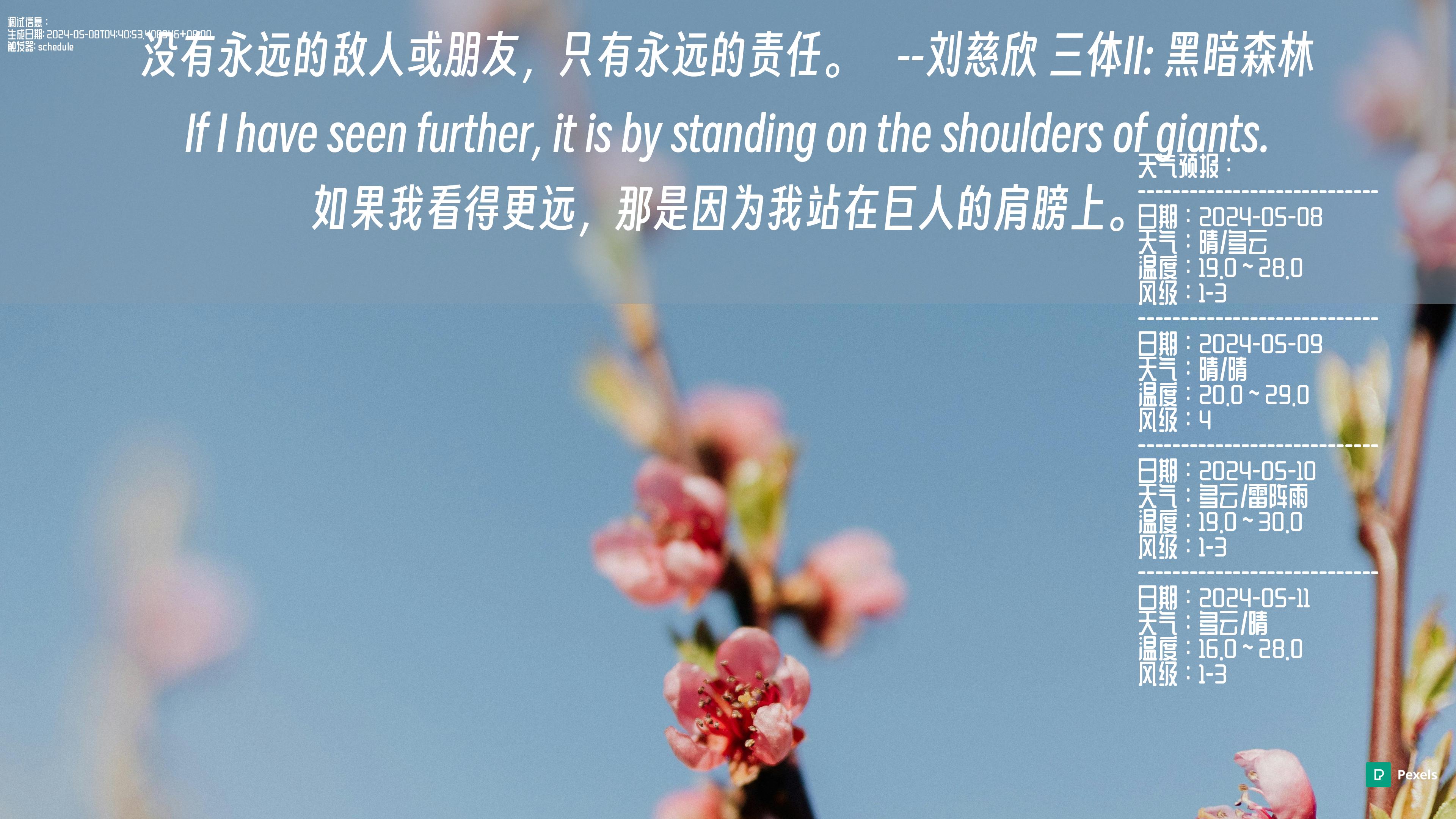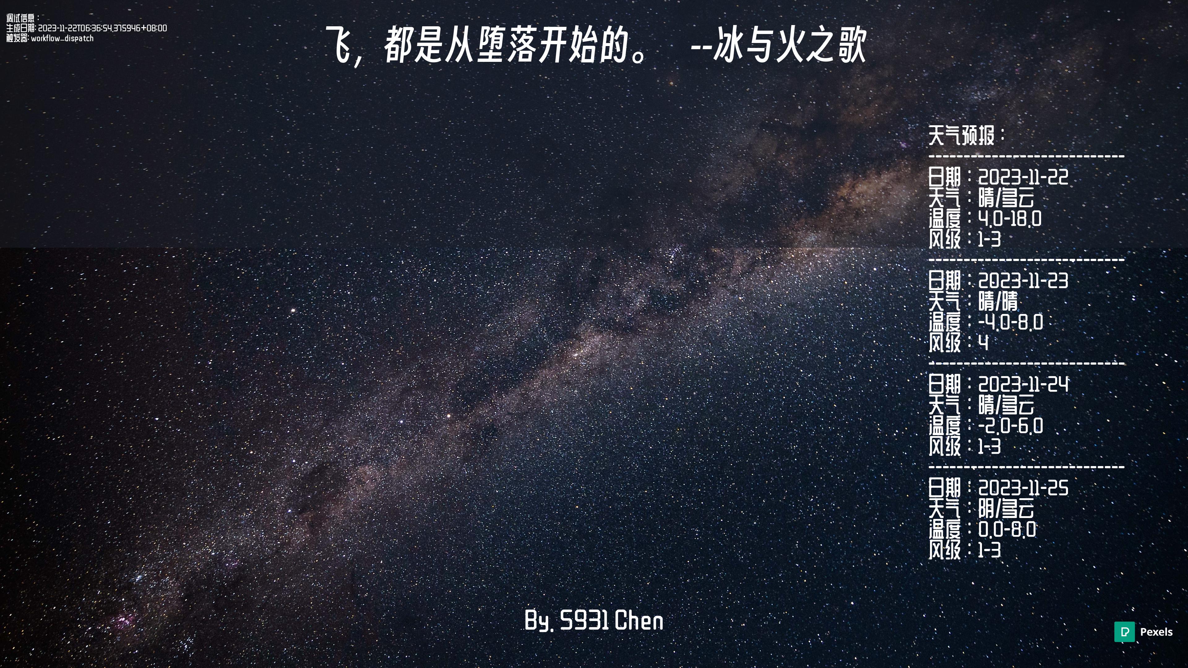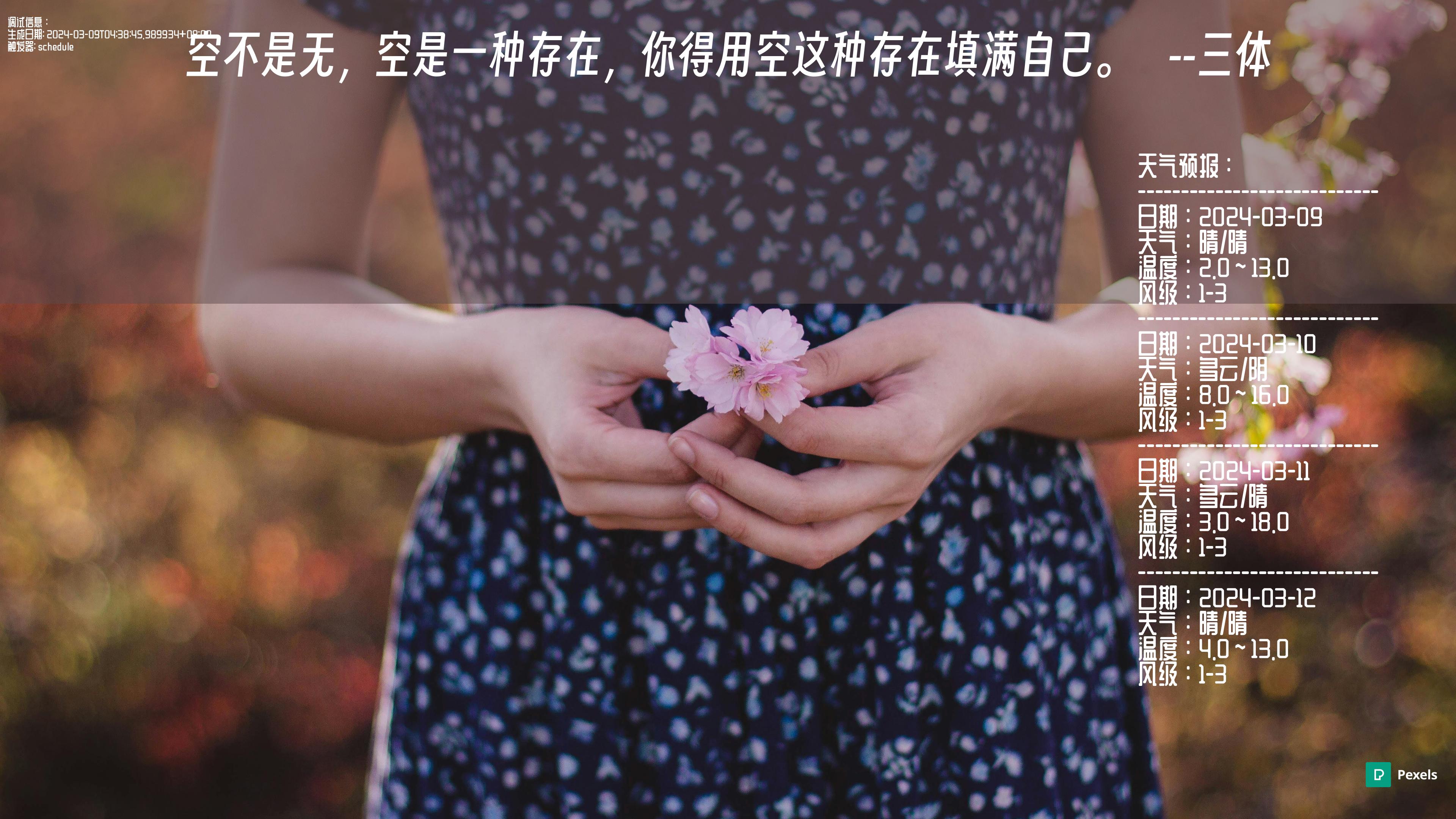 | Date / 日期 | Pexels ID | Quotes / 每日一言 | Image / 图片 | 触发器 |