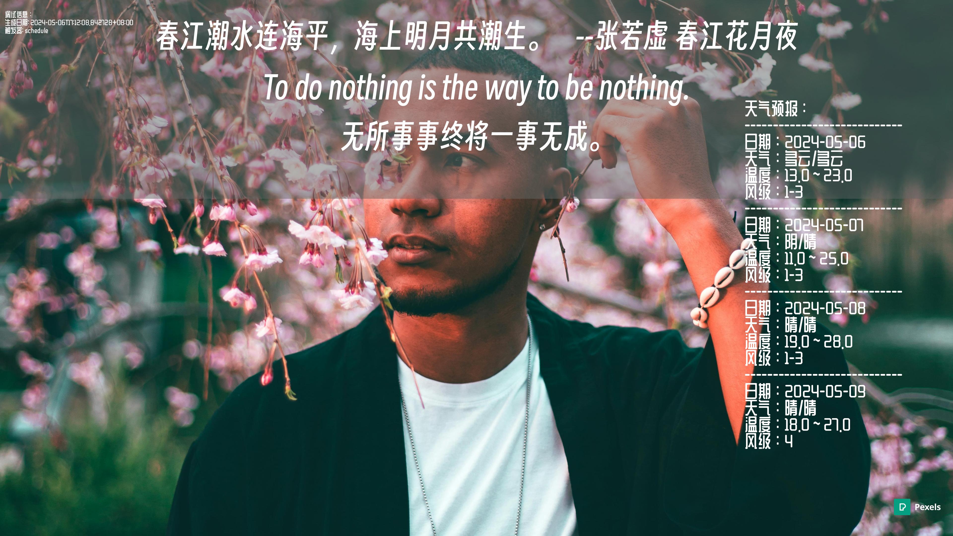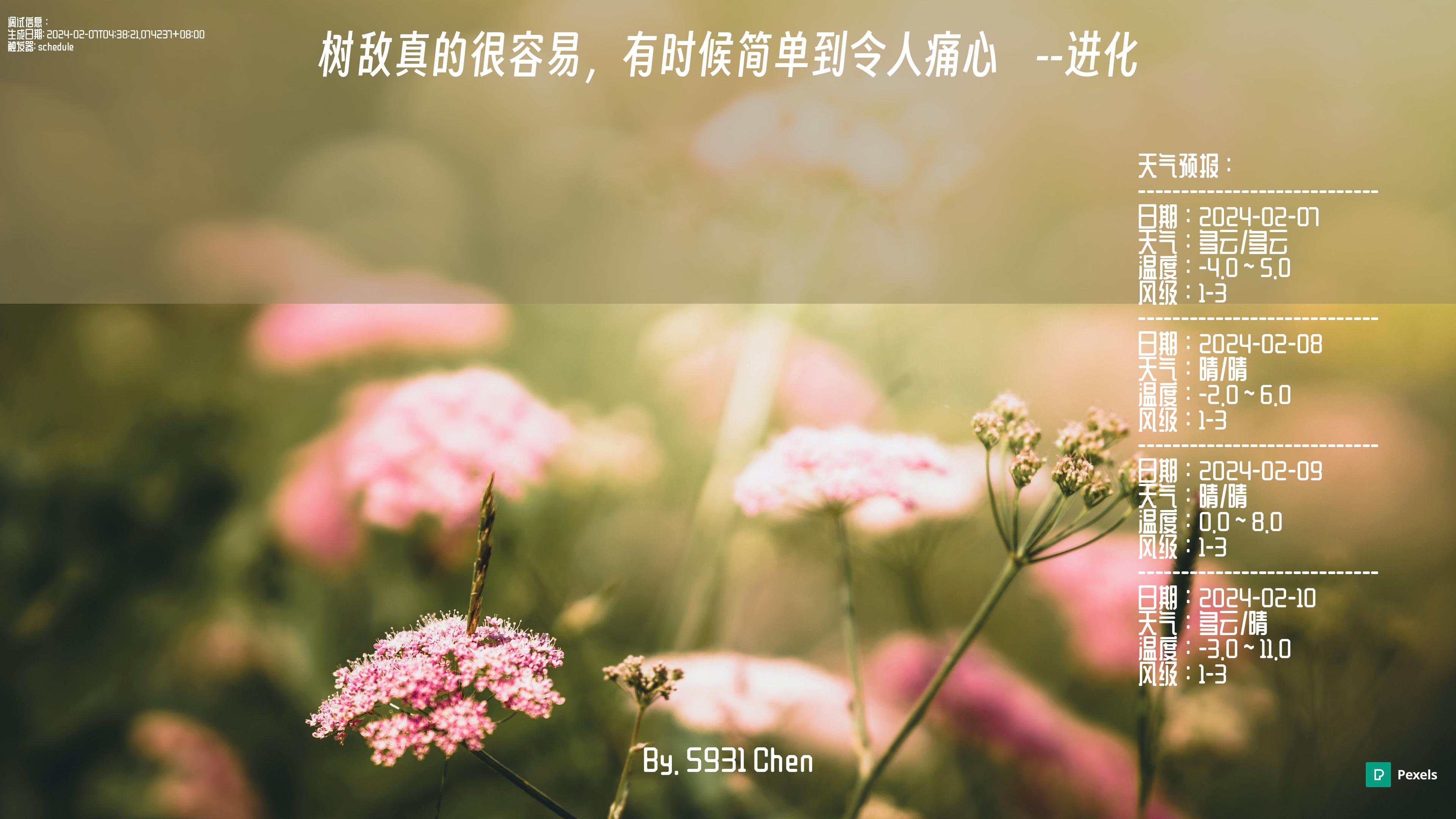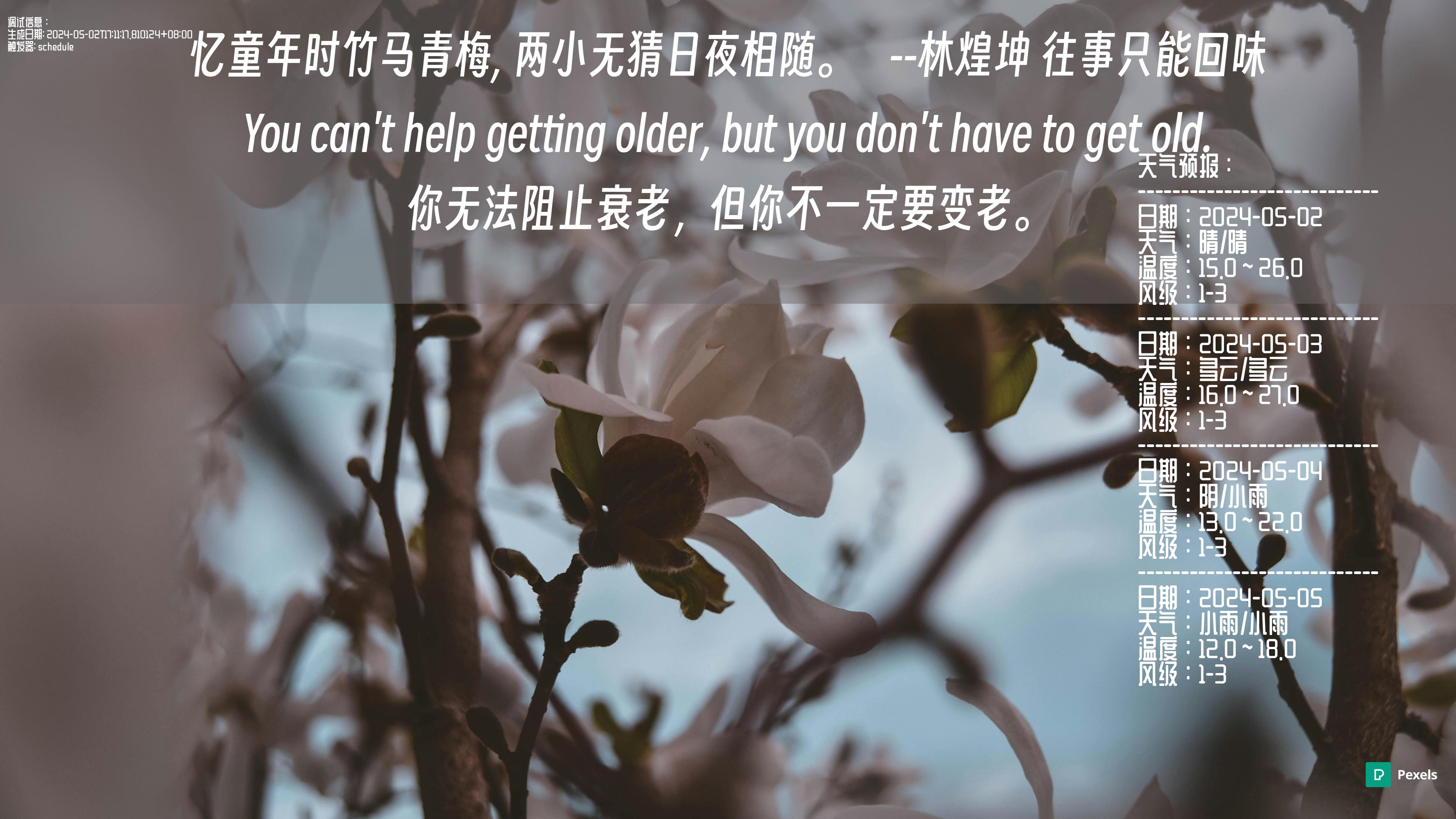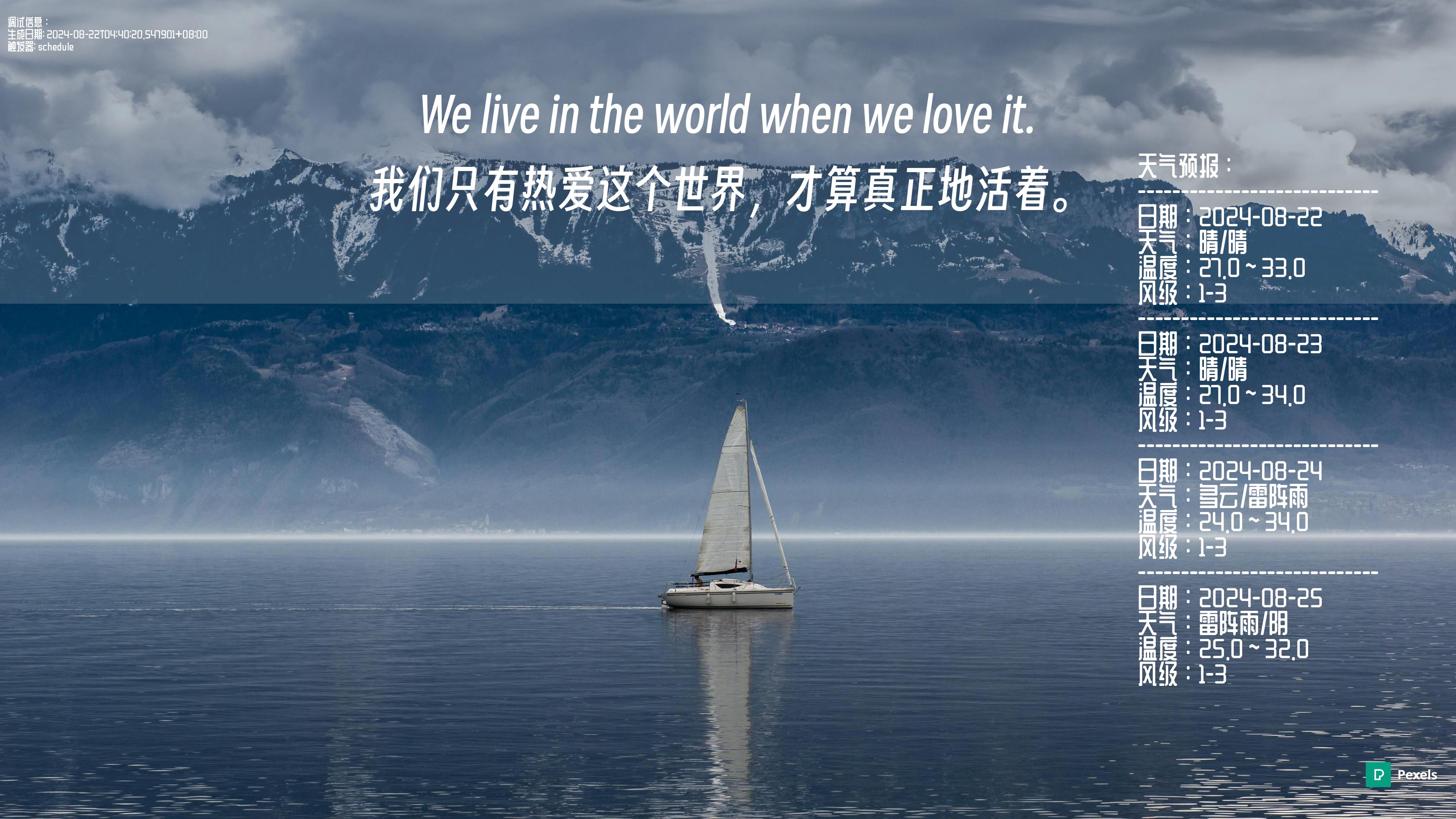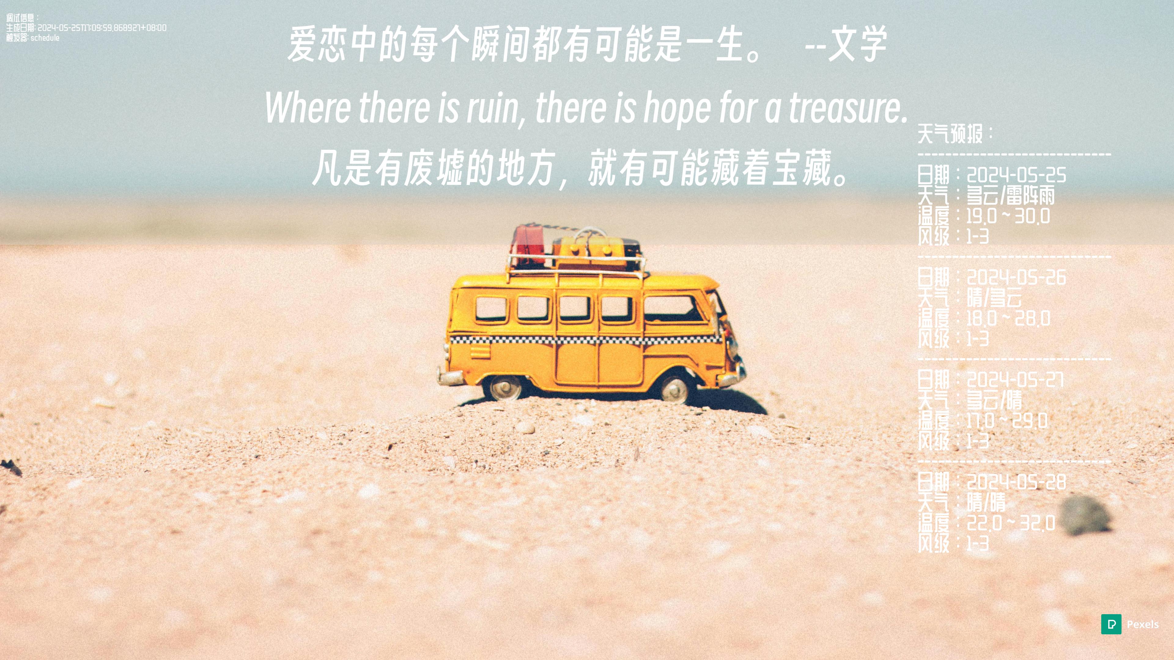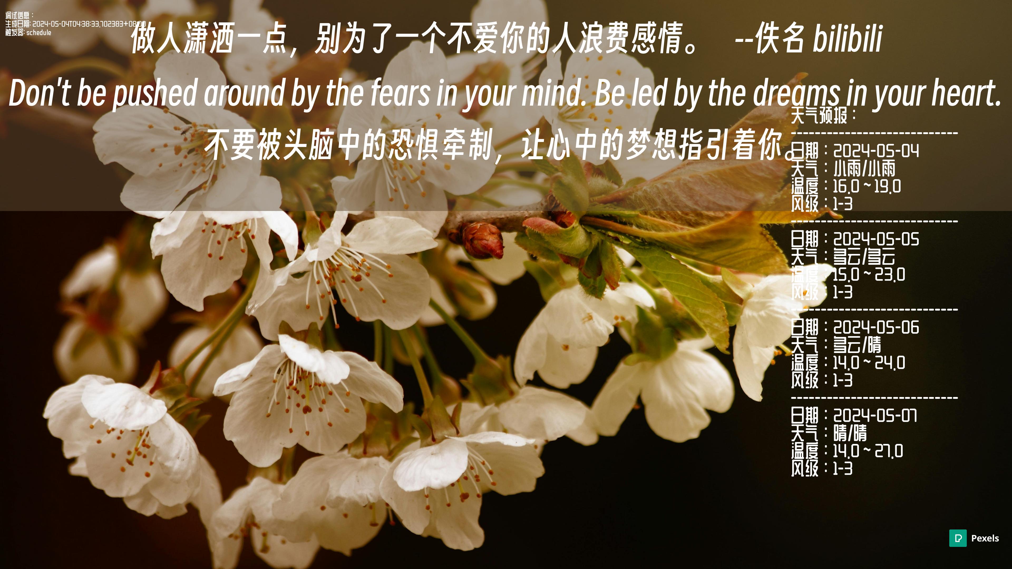 | Date / 日期 | Pexels ID | Quotes / 每日一言 | Image / 图片 | 触发器 |