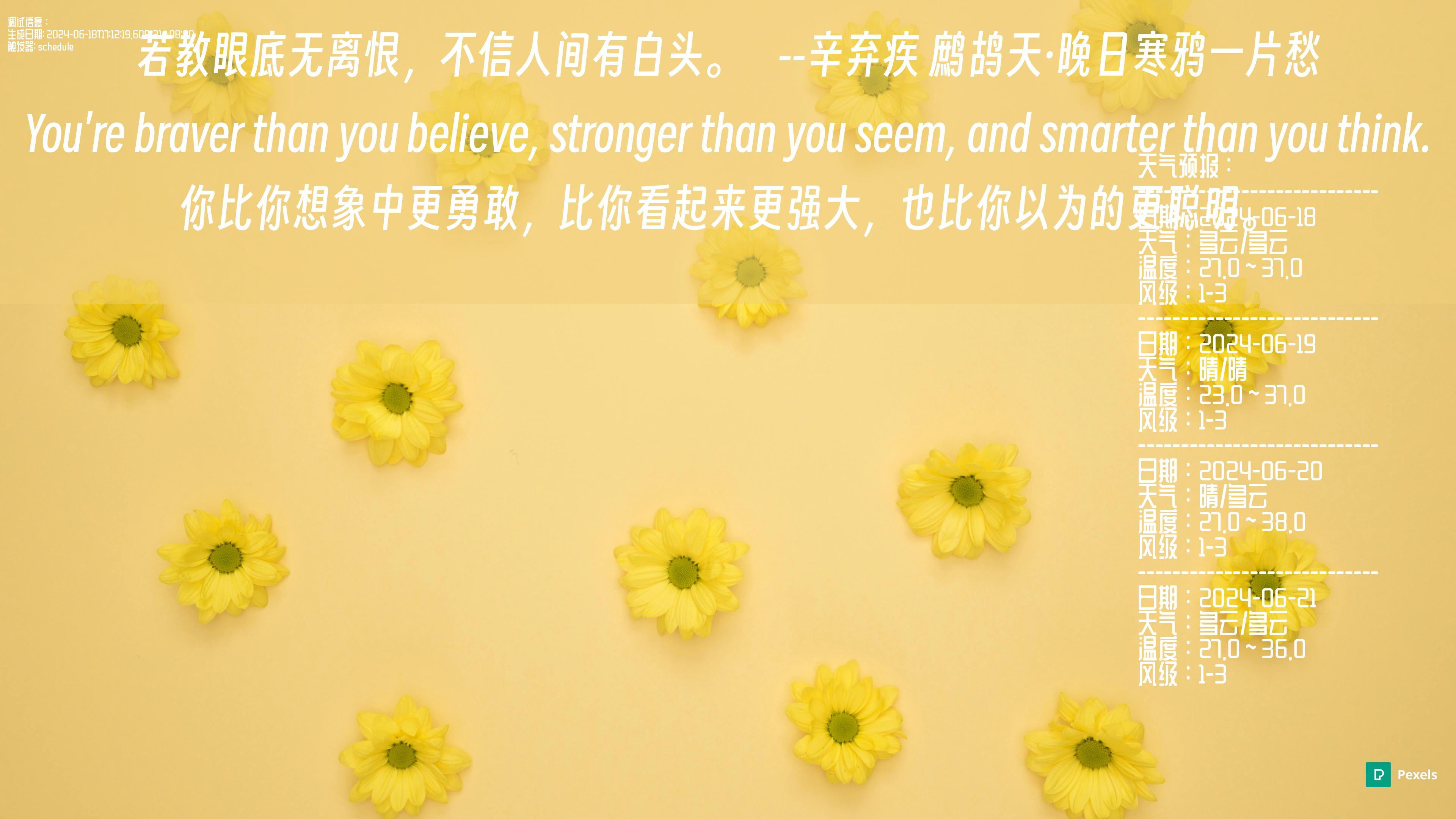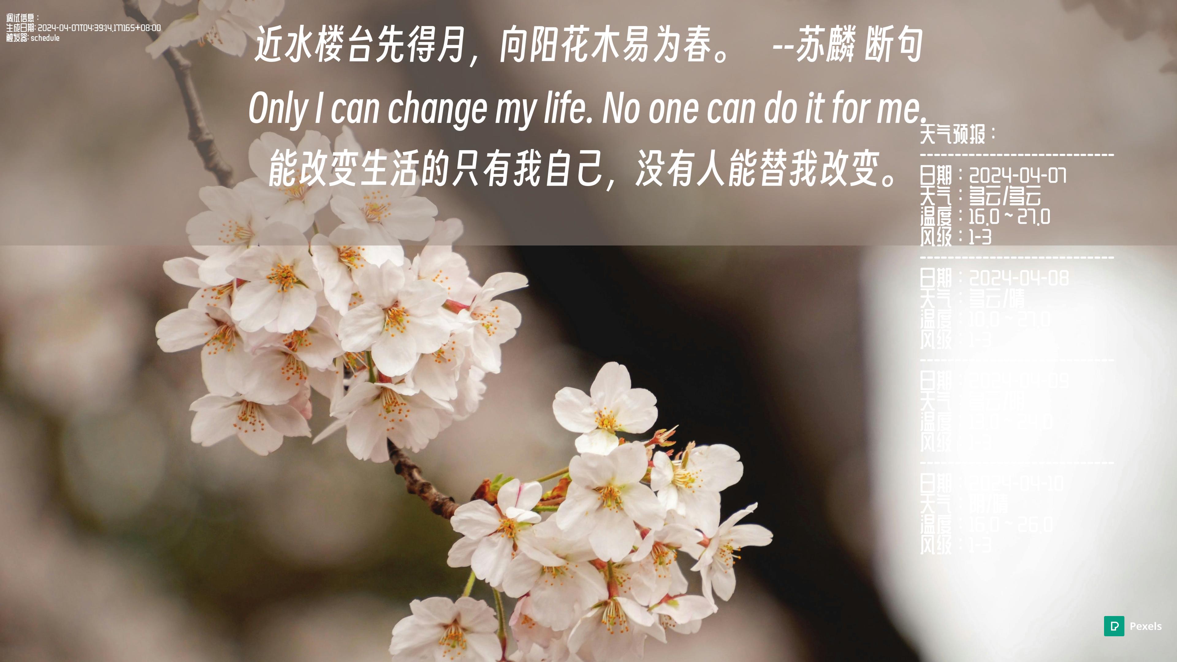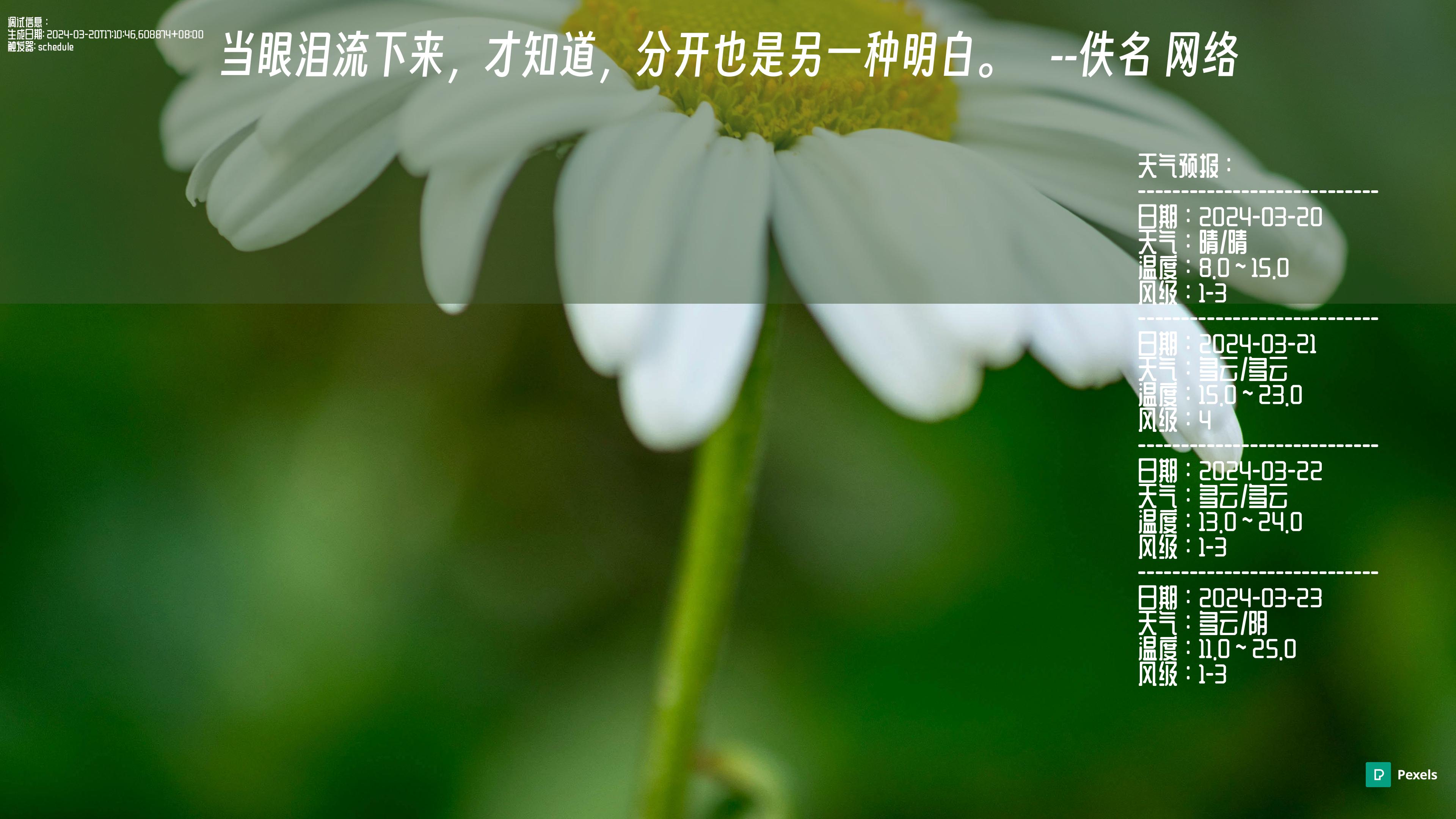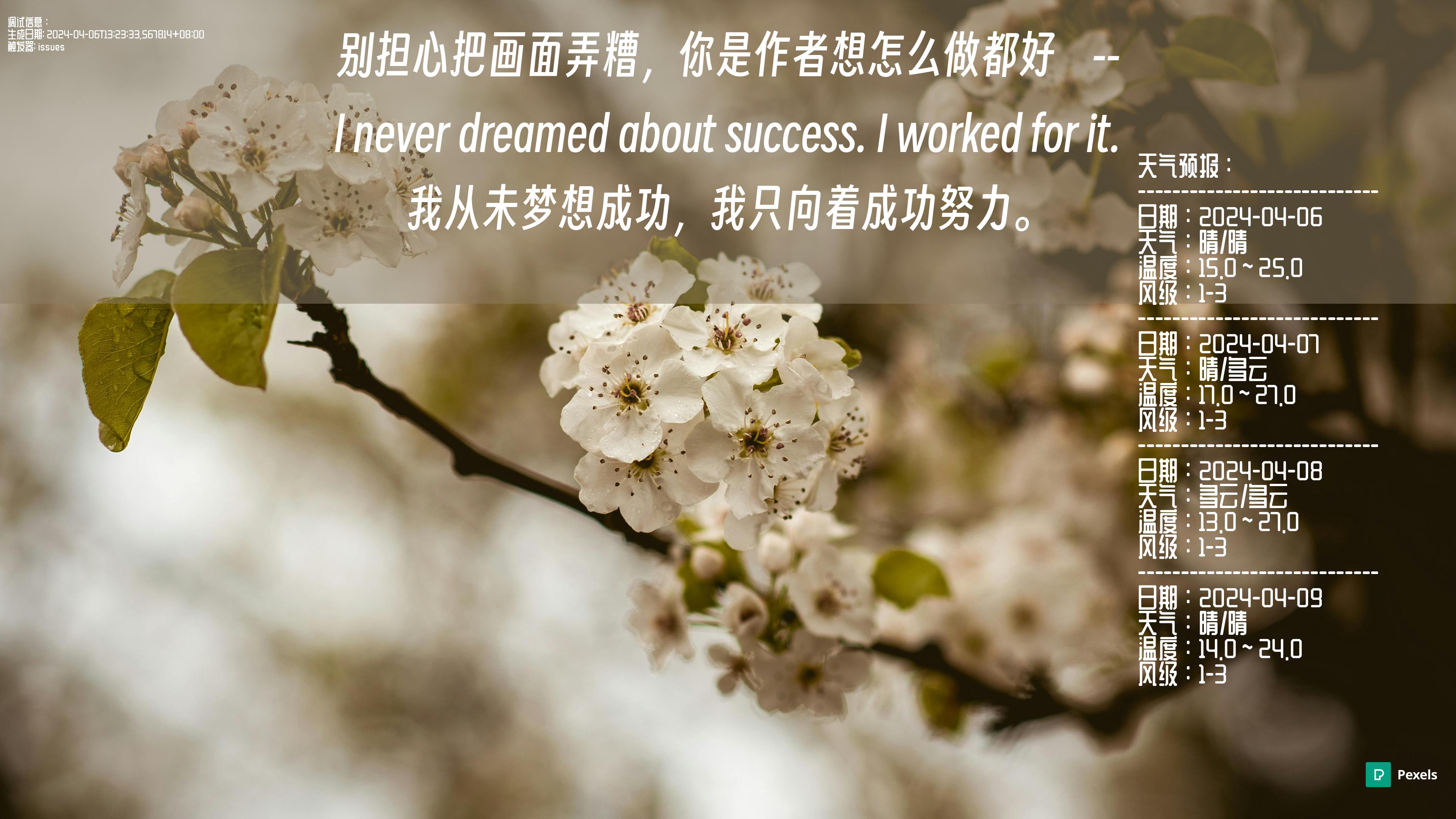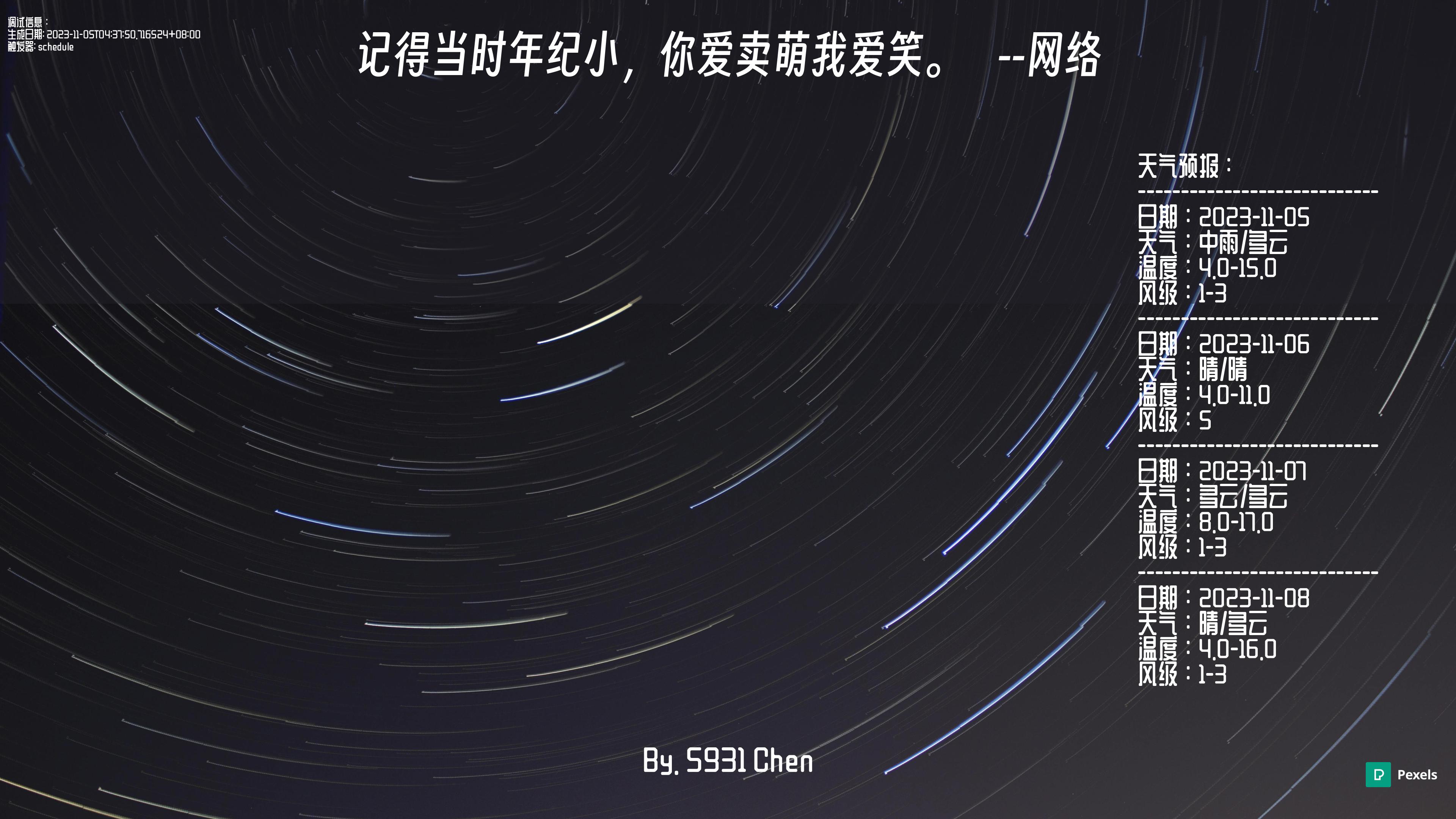 | Date / 日期 | Pexels ID | Quotes / 每日一言 | Image / 图片 | 触发器 |