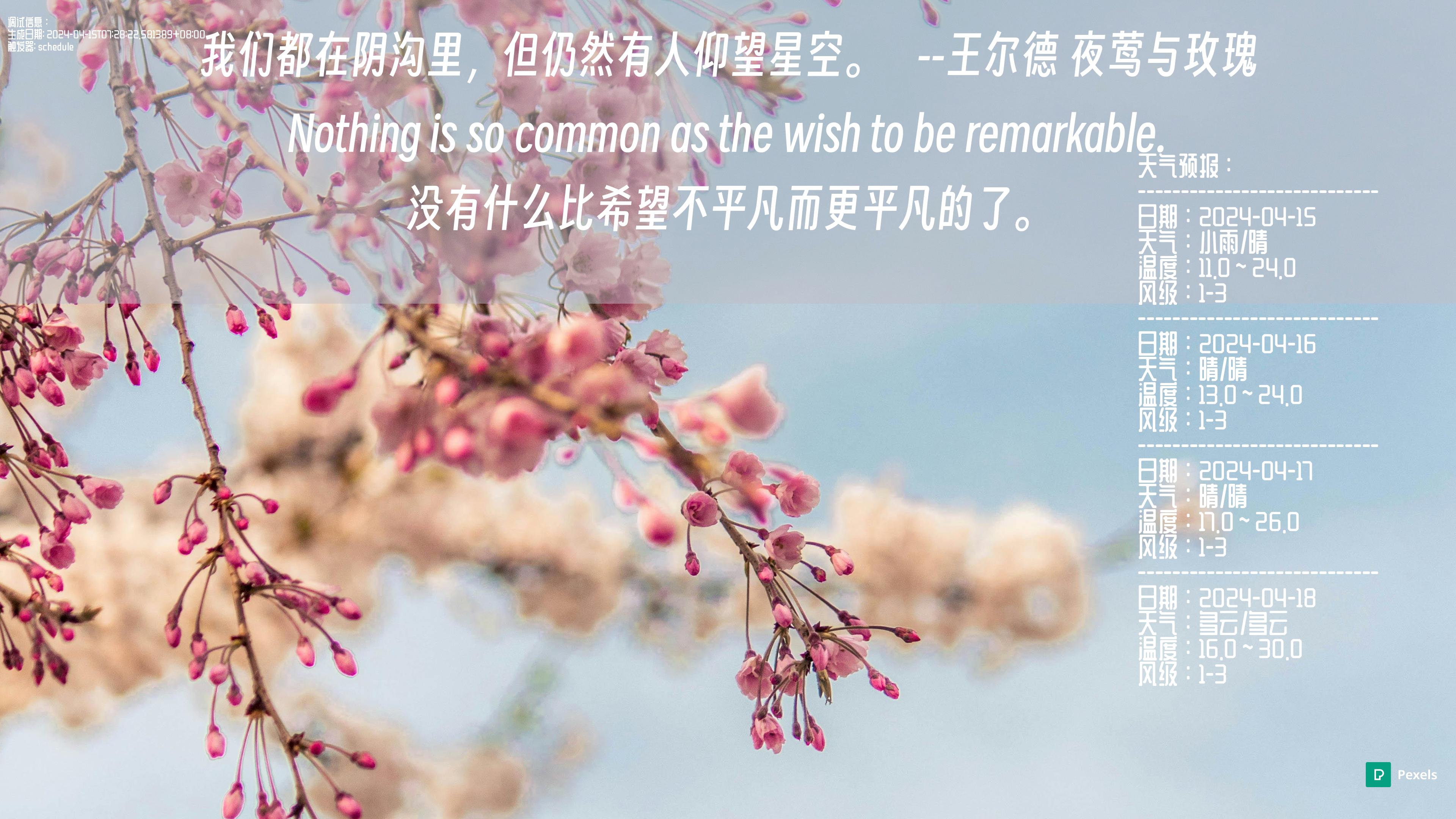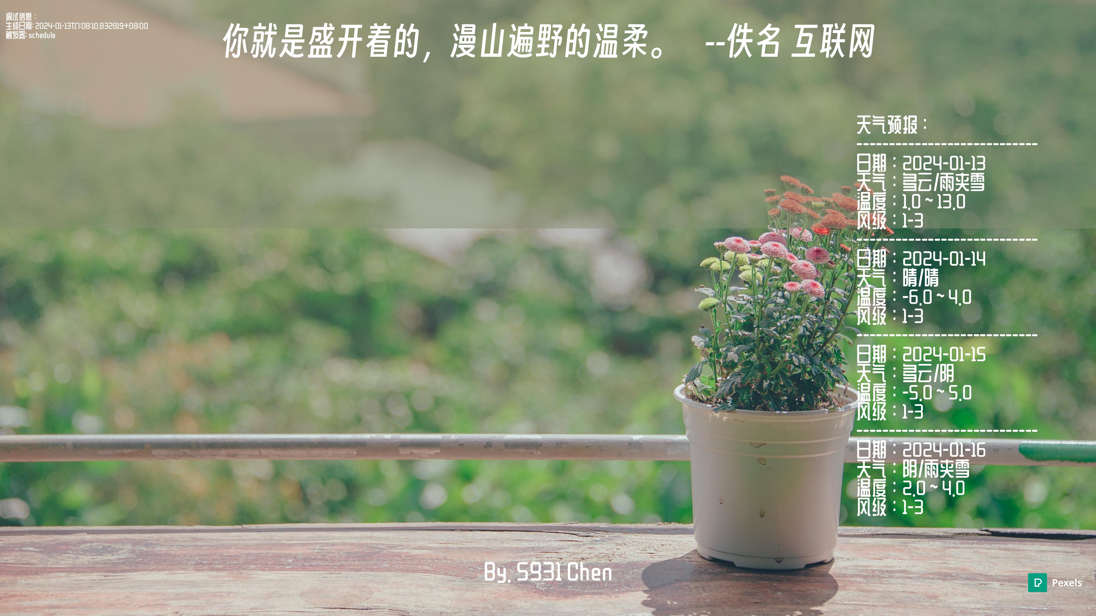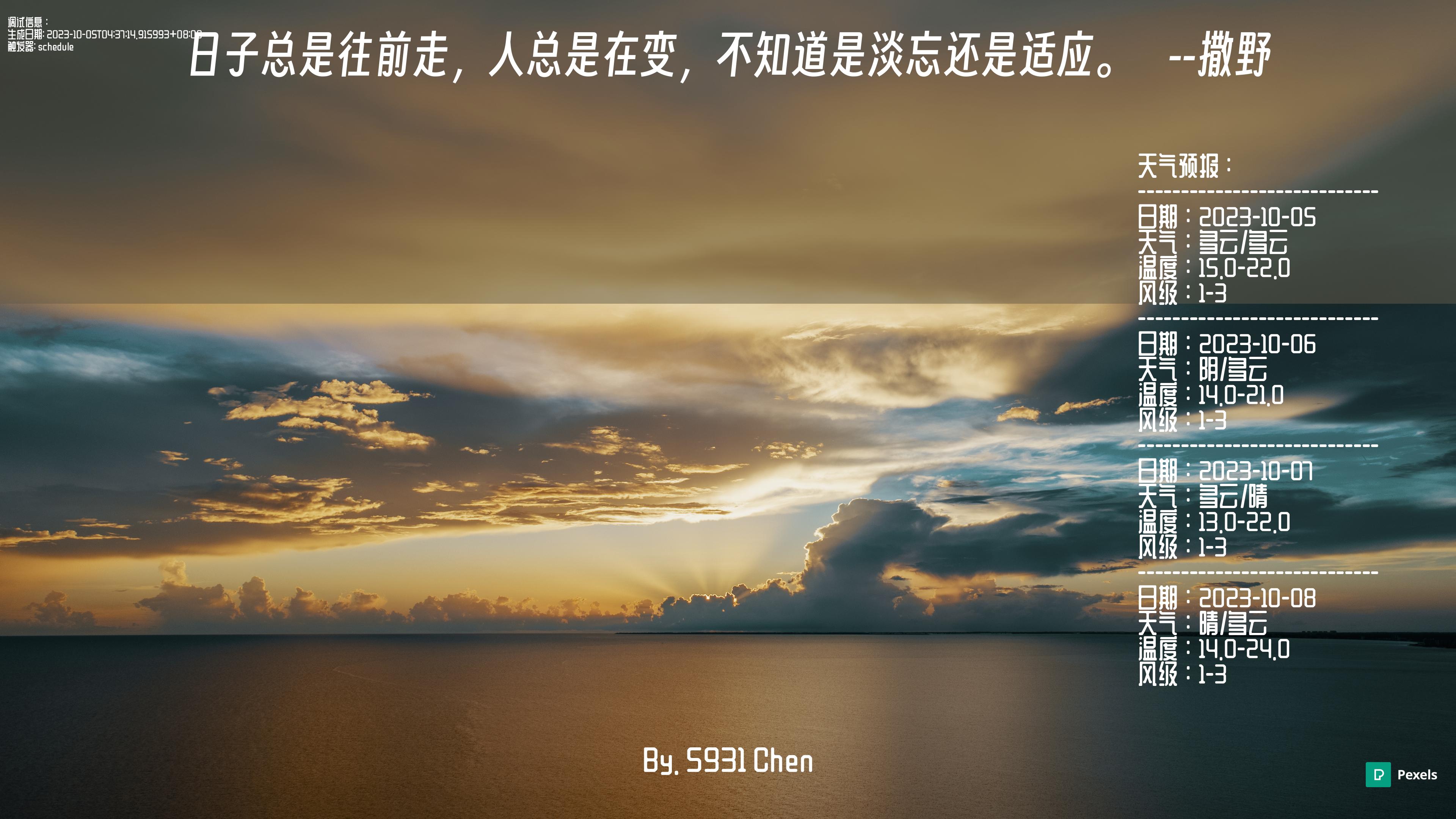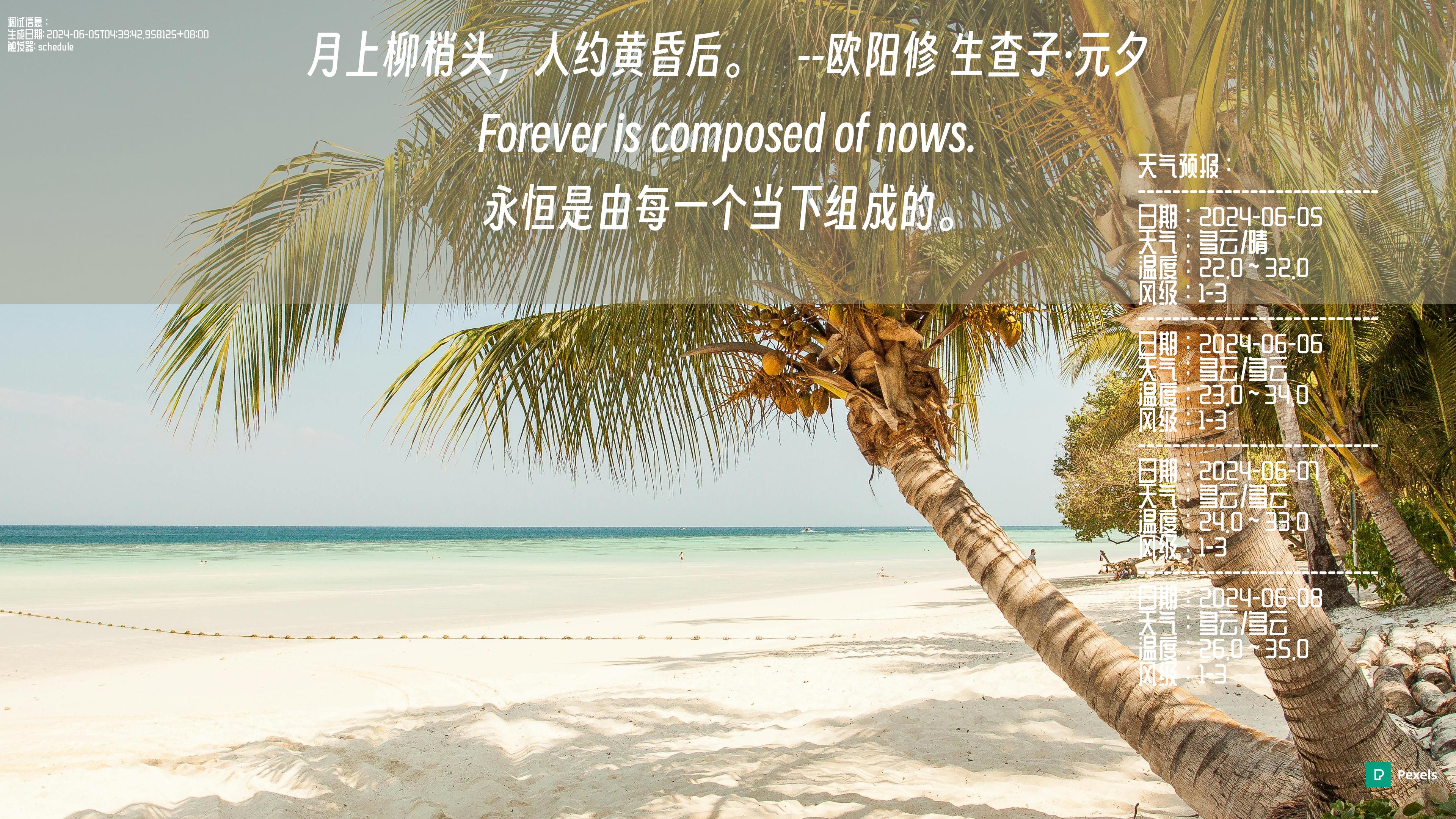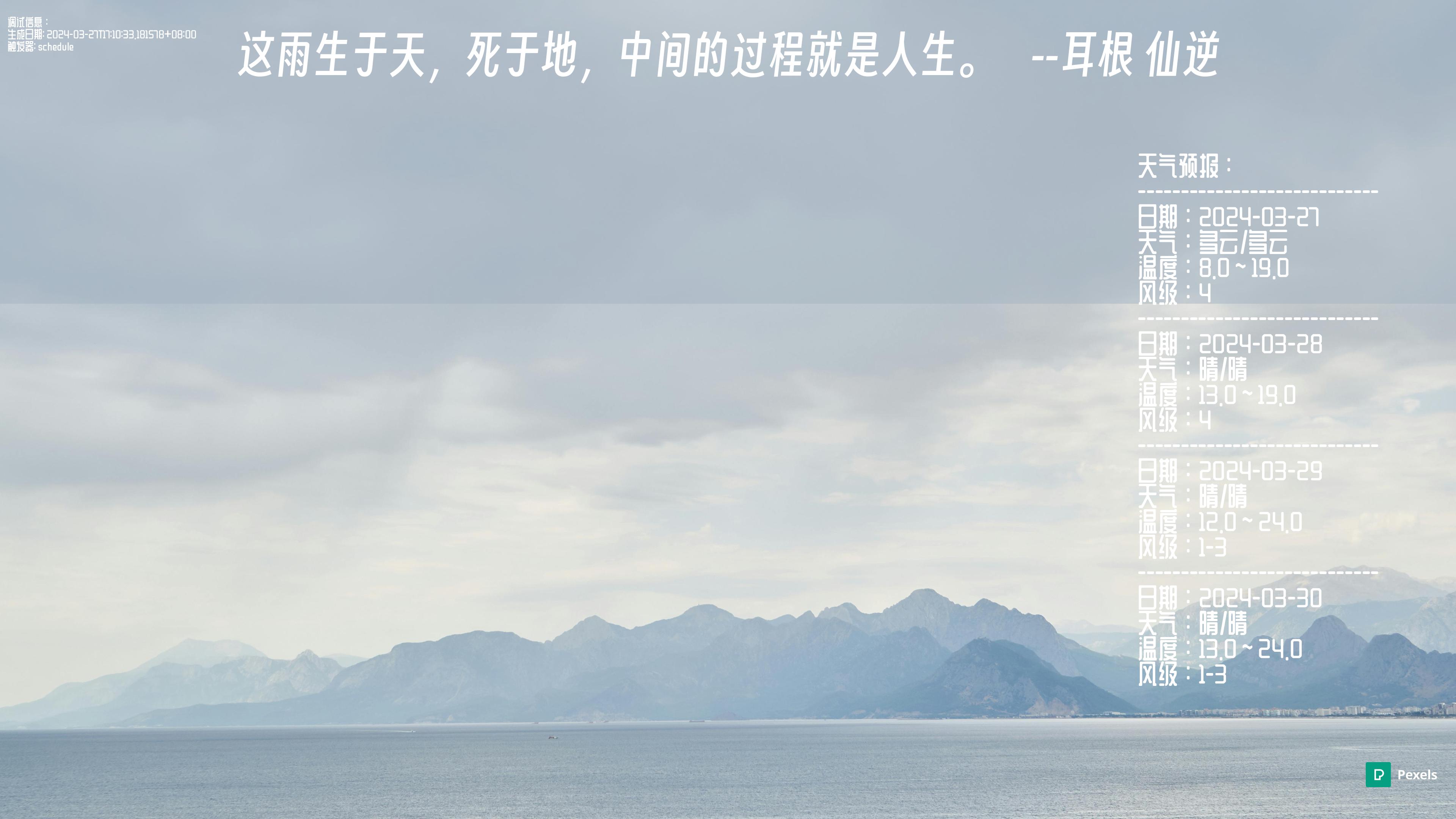 | Date / 日期 | Pexels ID | Quotes / 每日一言 | Image / 图片 | 触发器 |