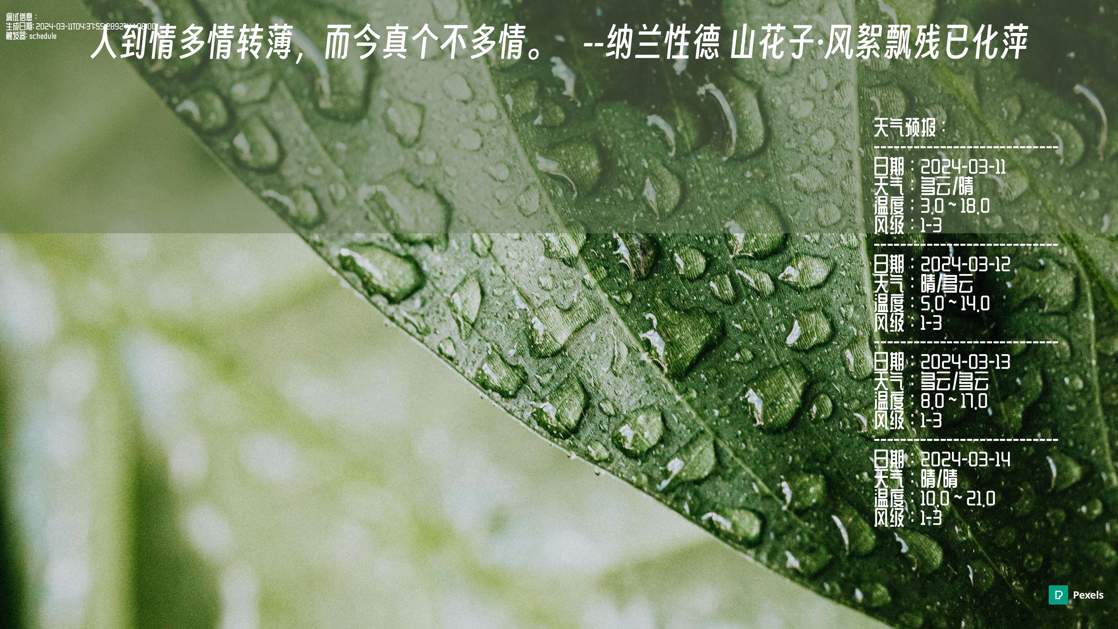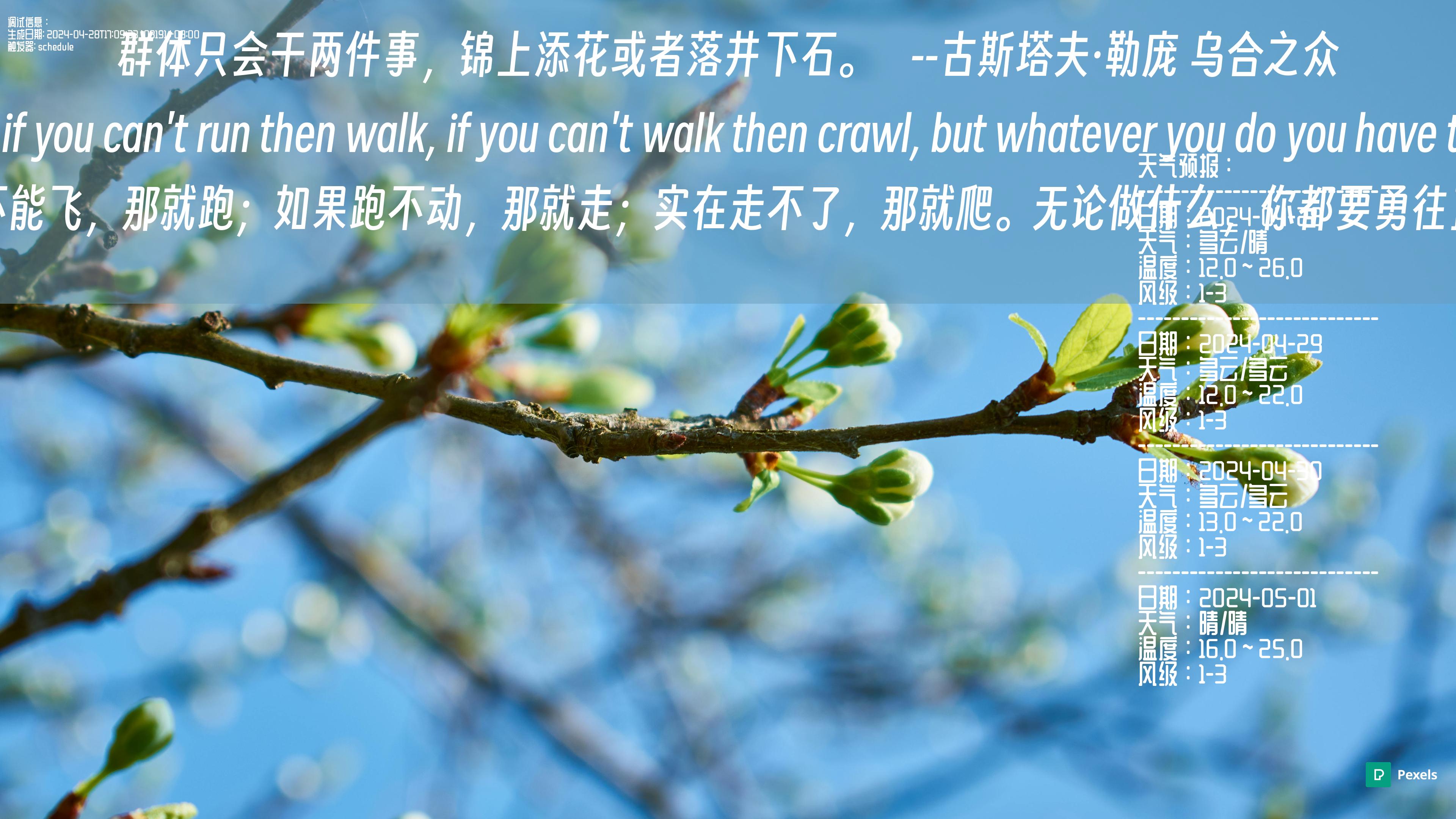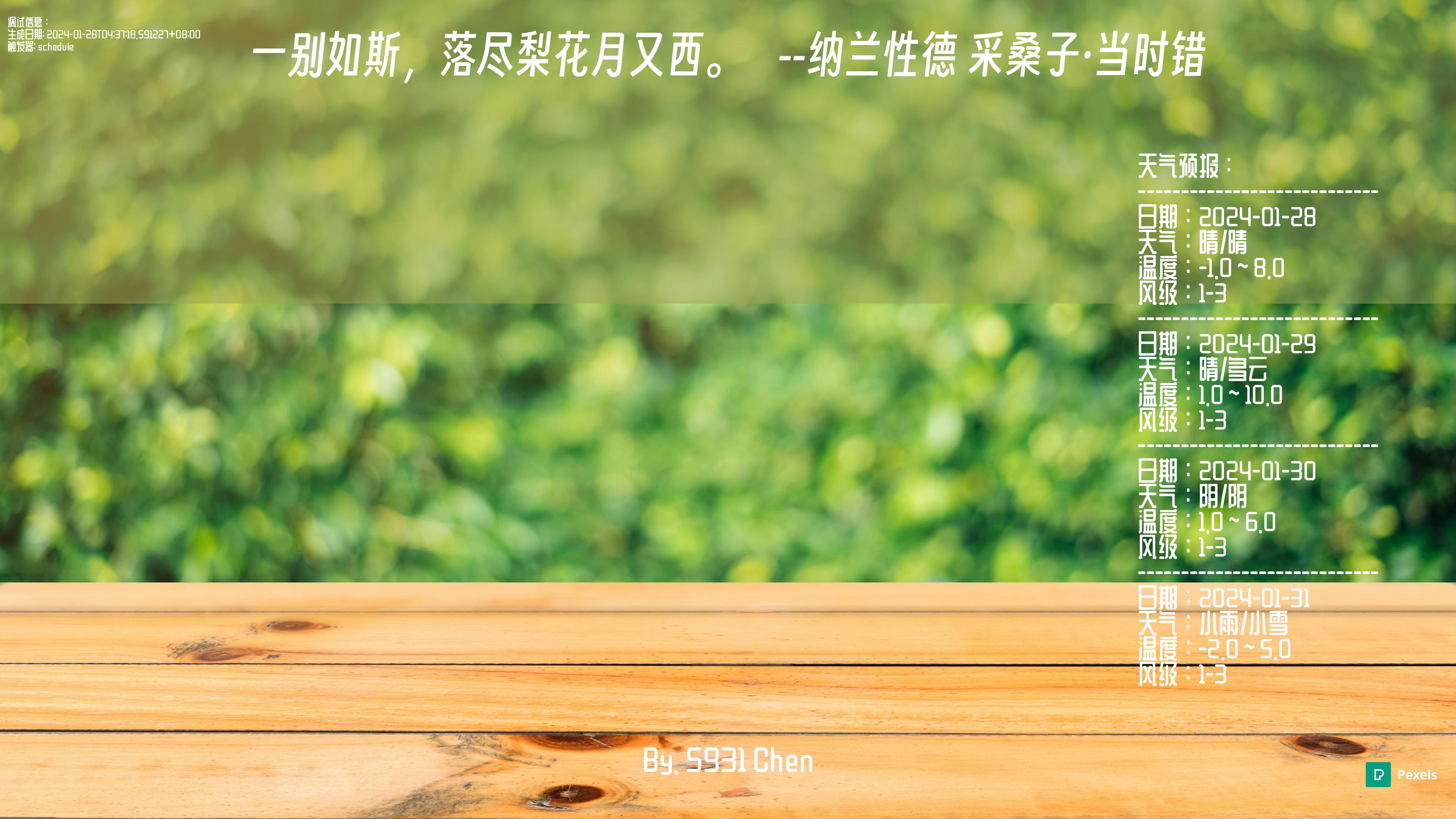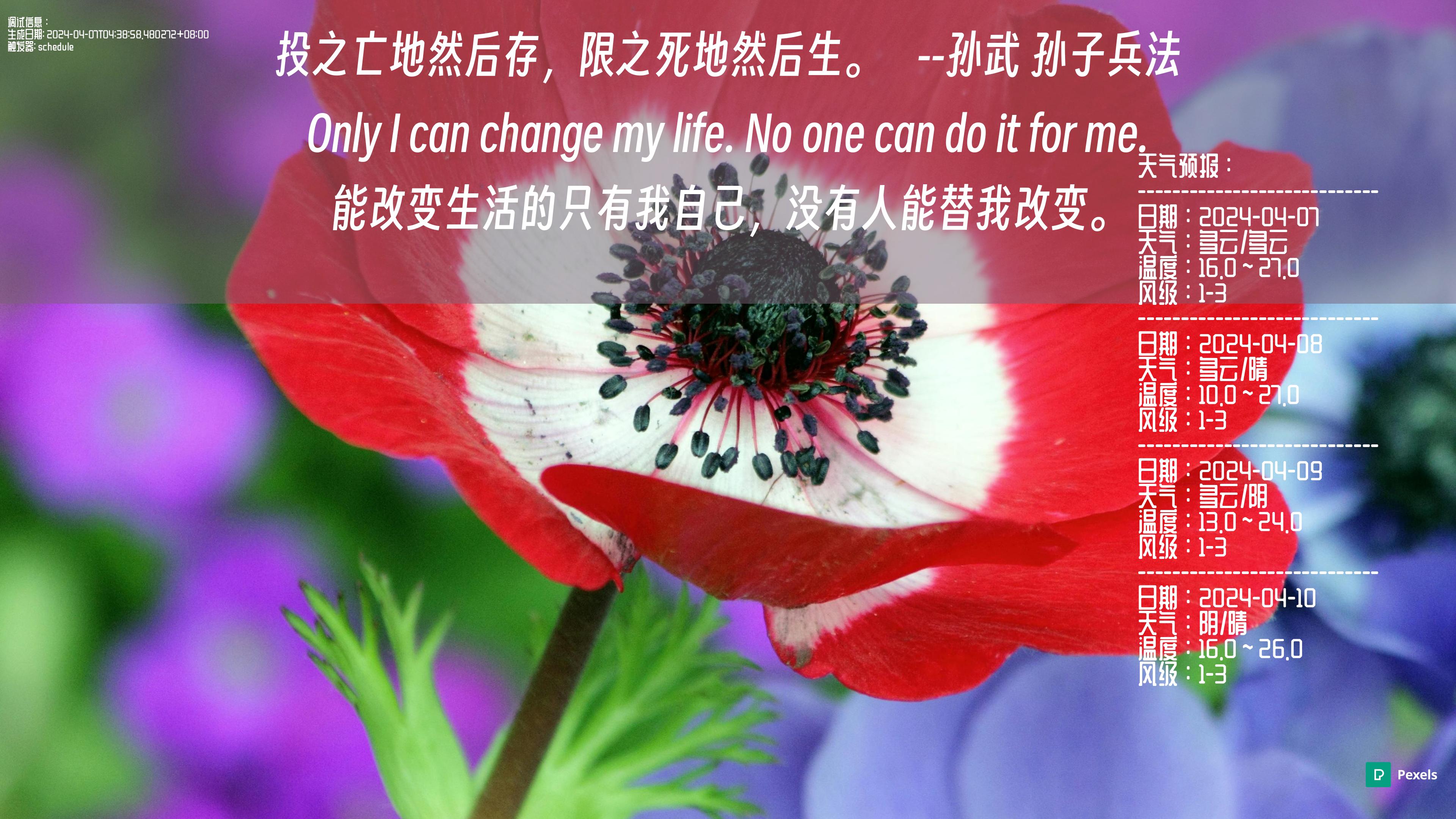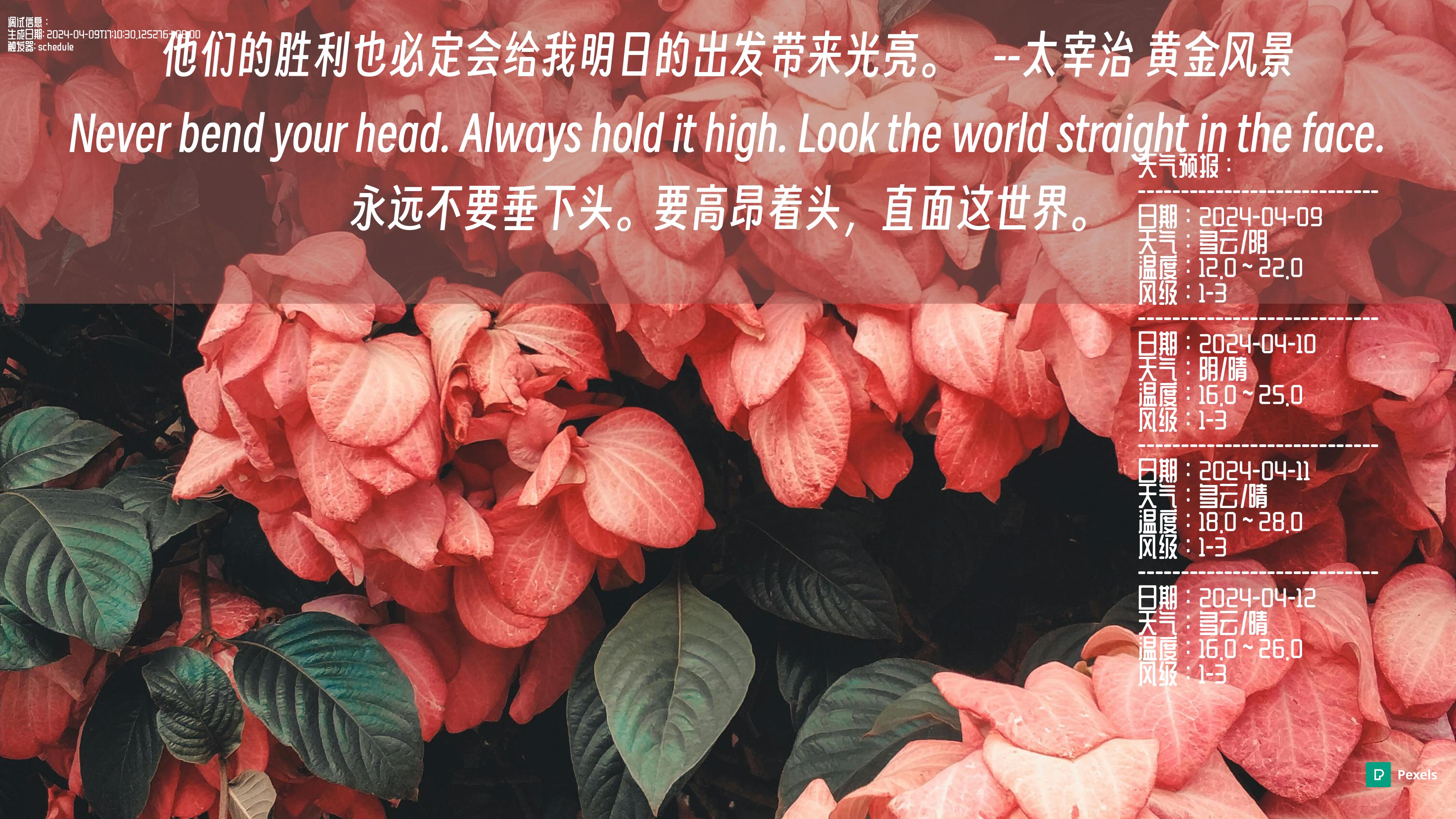 | Date / 日期 | Pexels ID | Quotes / 每日一言 | Image / 图片 | 触发器 |