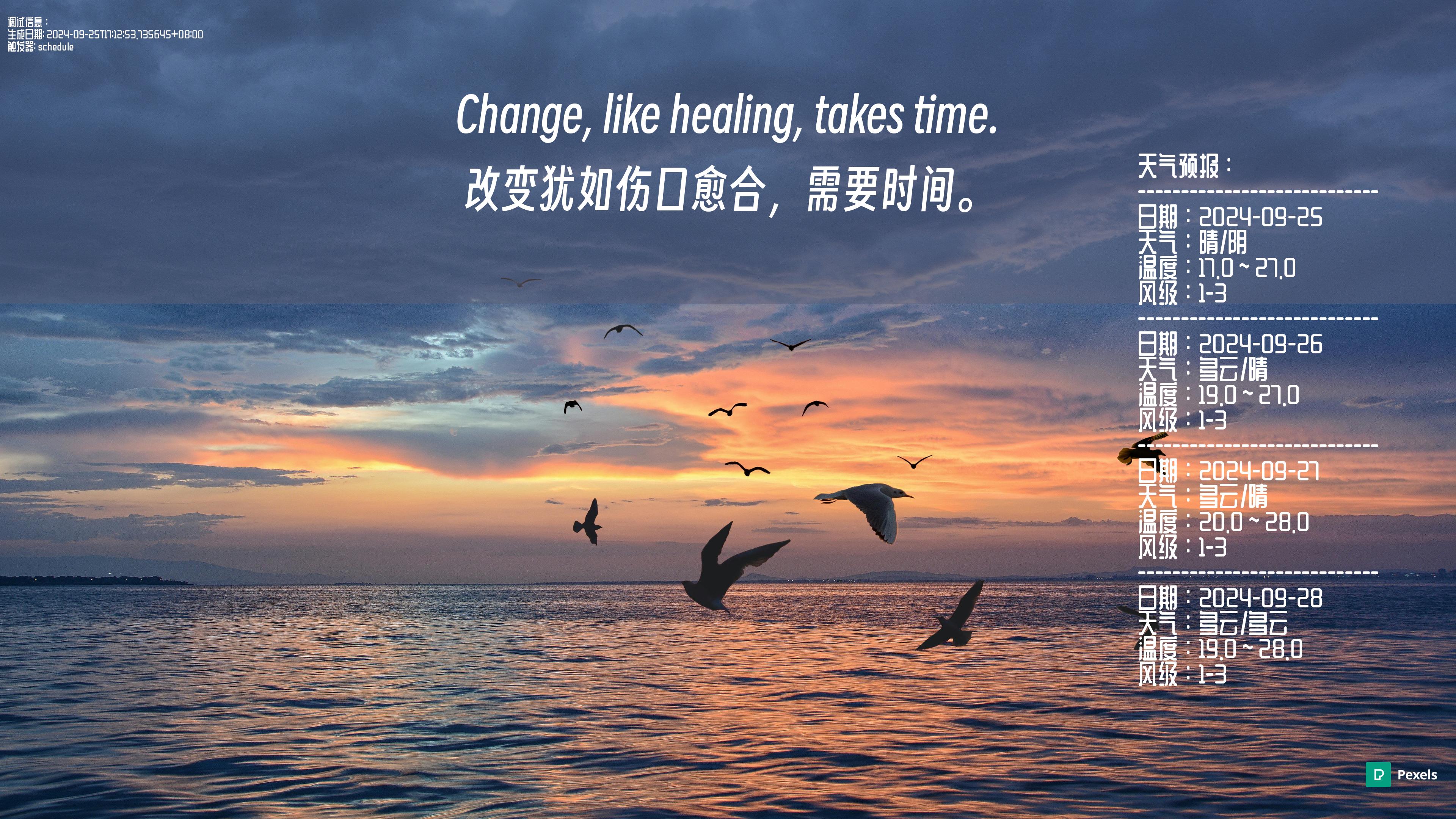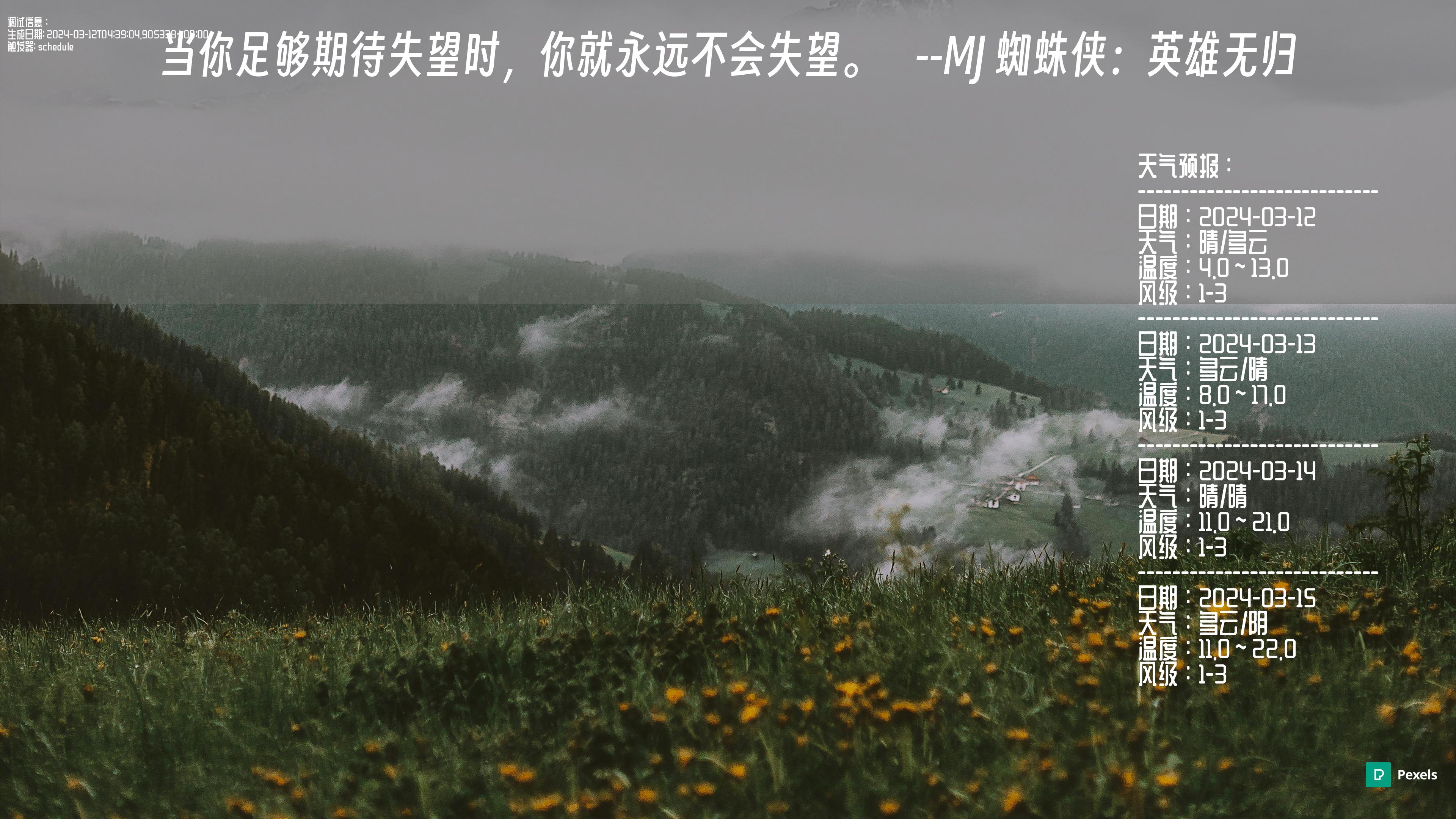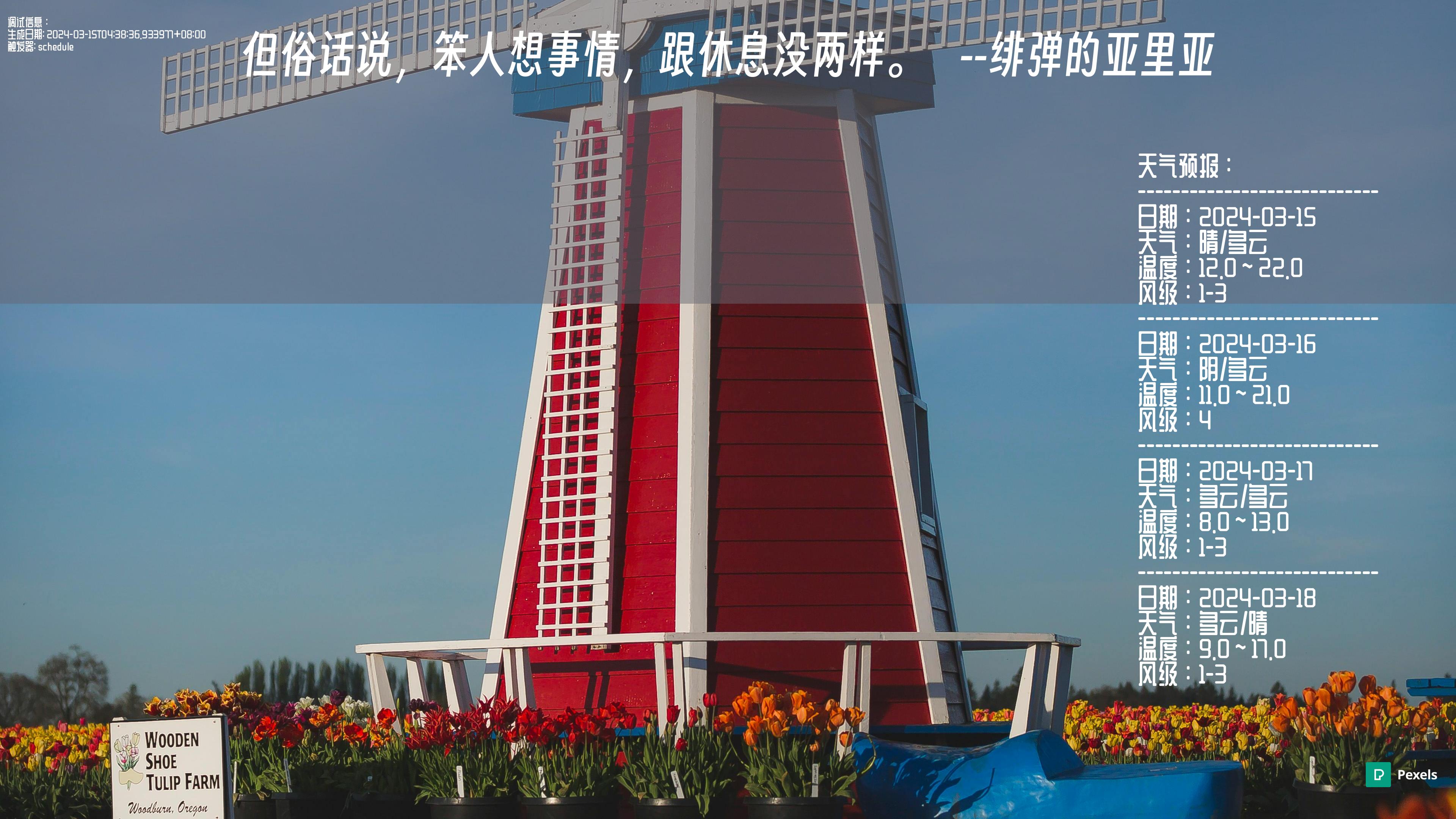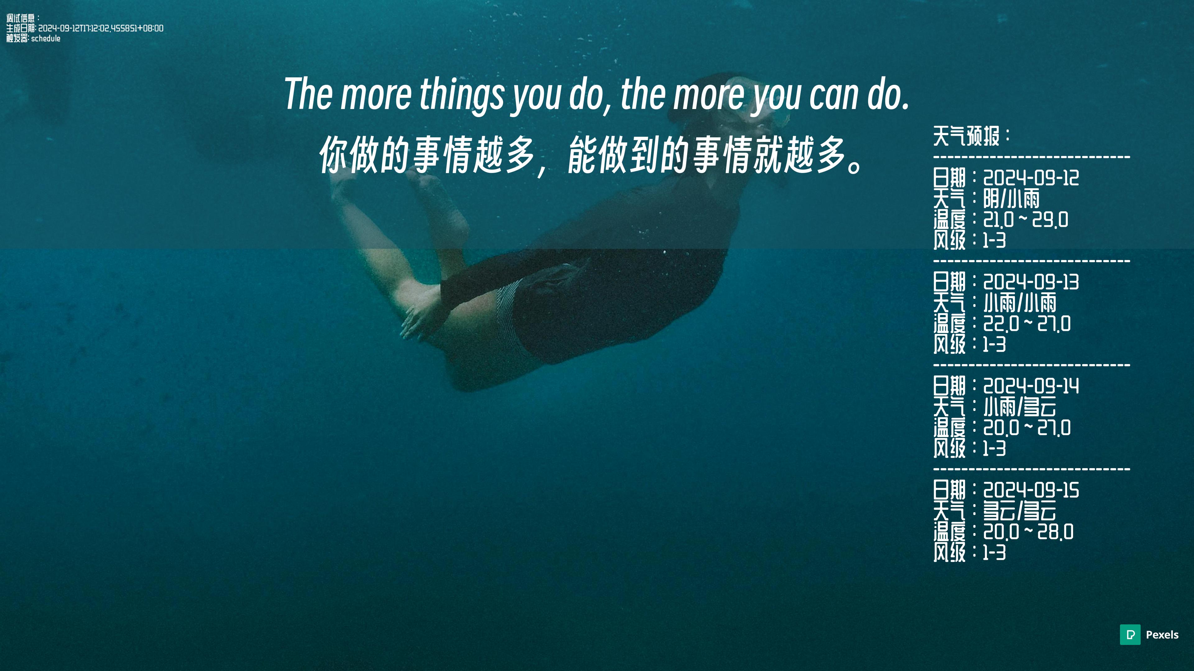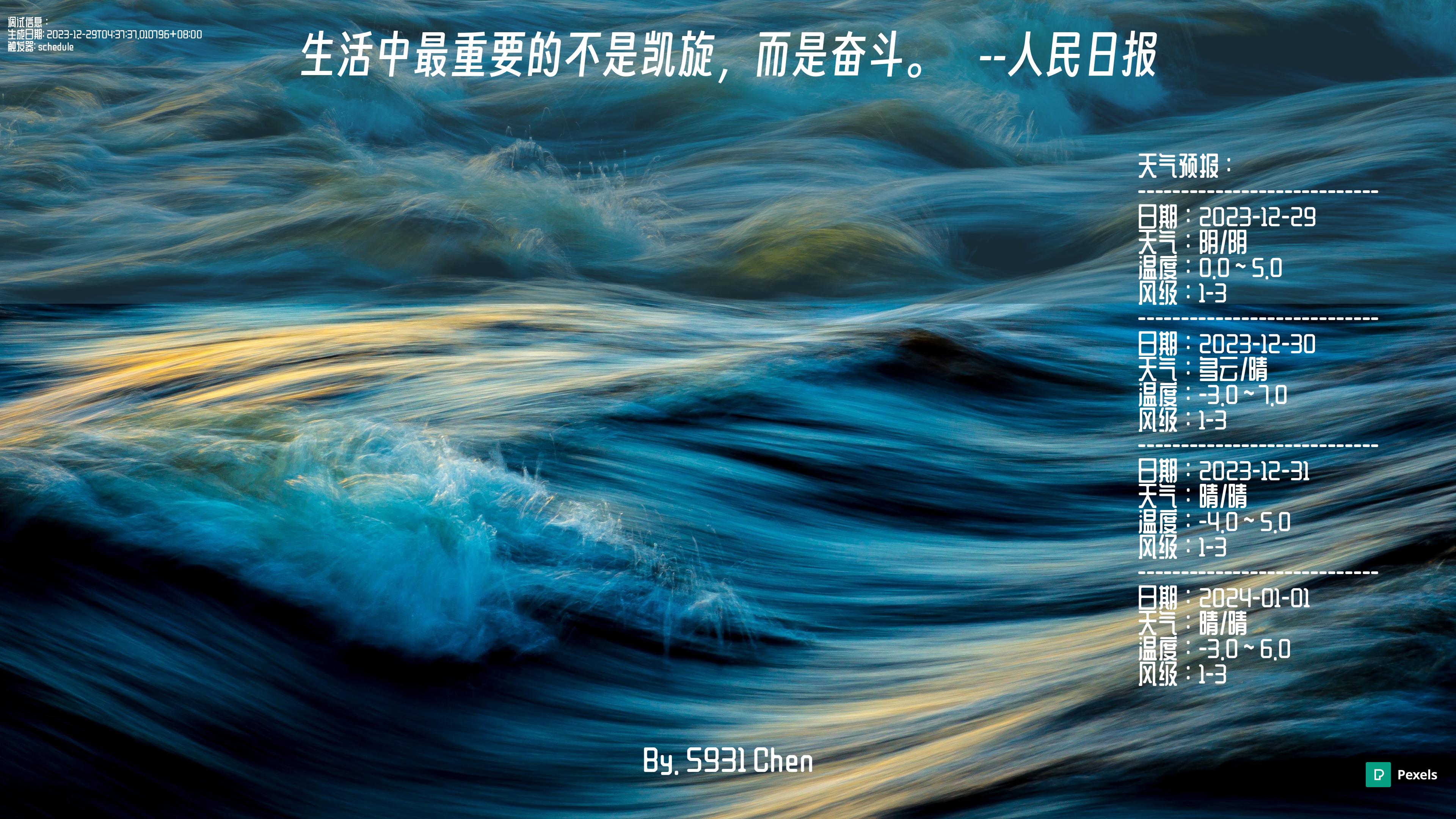| Date / 日期 | Pexels ID | Quotes / 每日一言 | Image / 图片 | 触发器 |