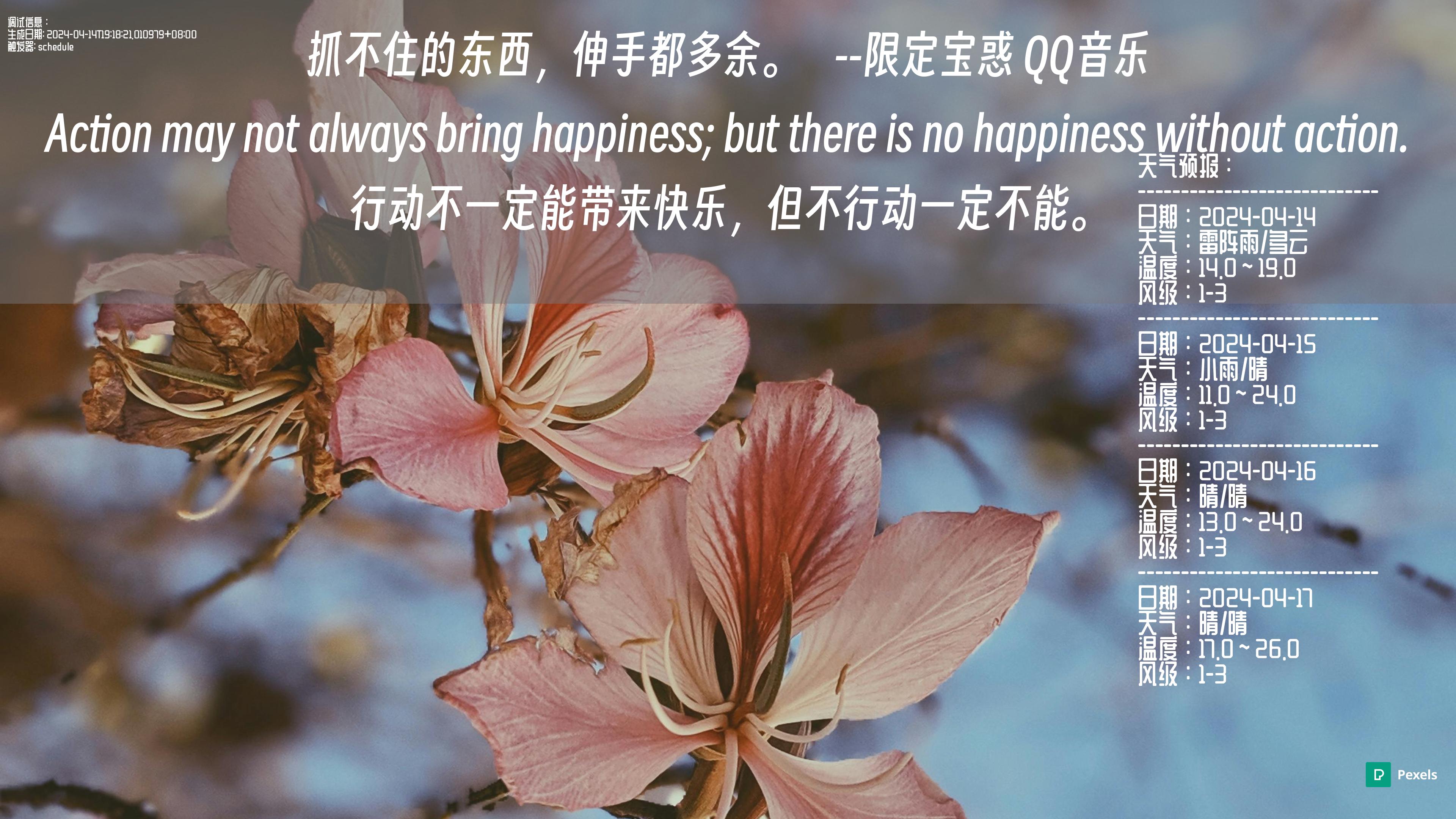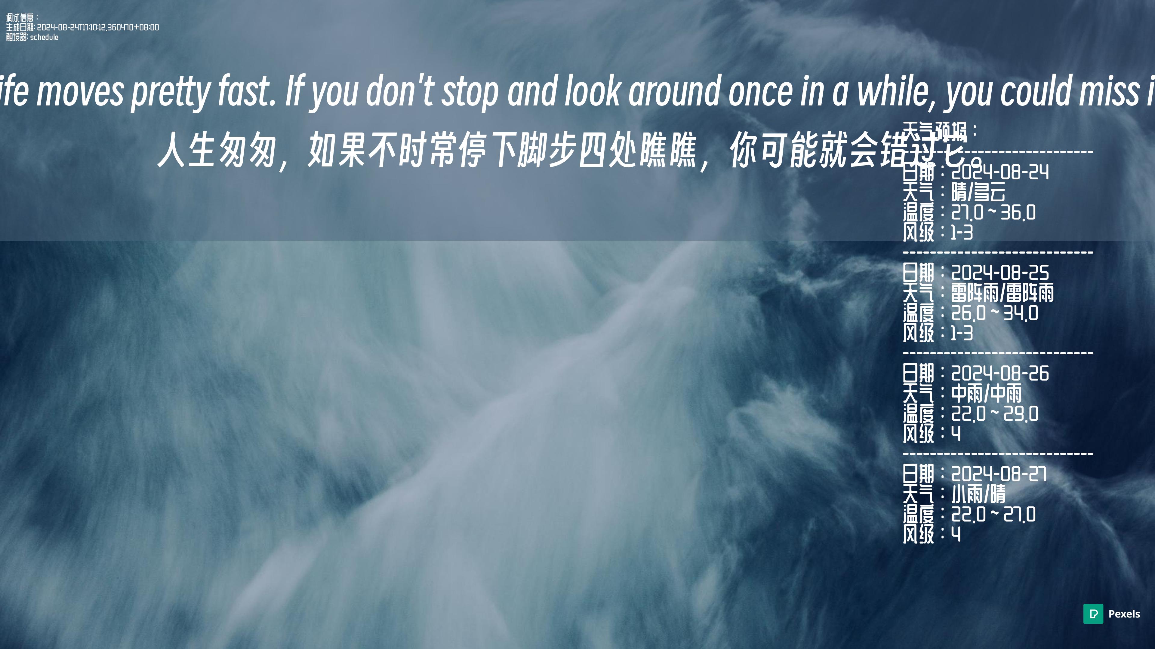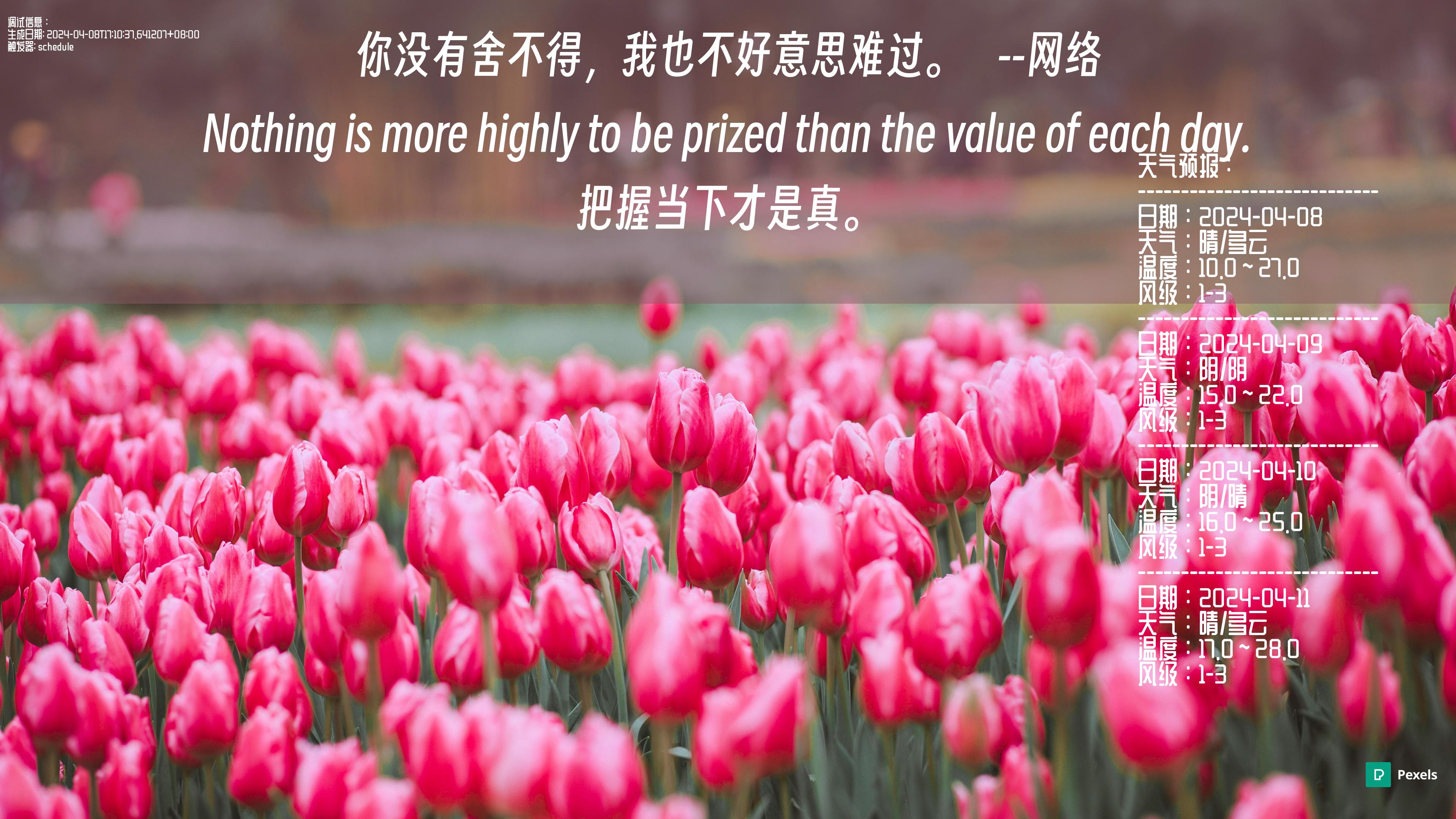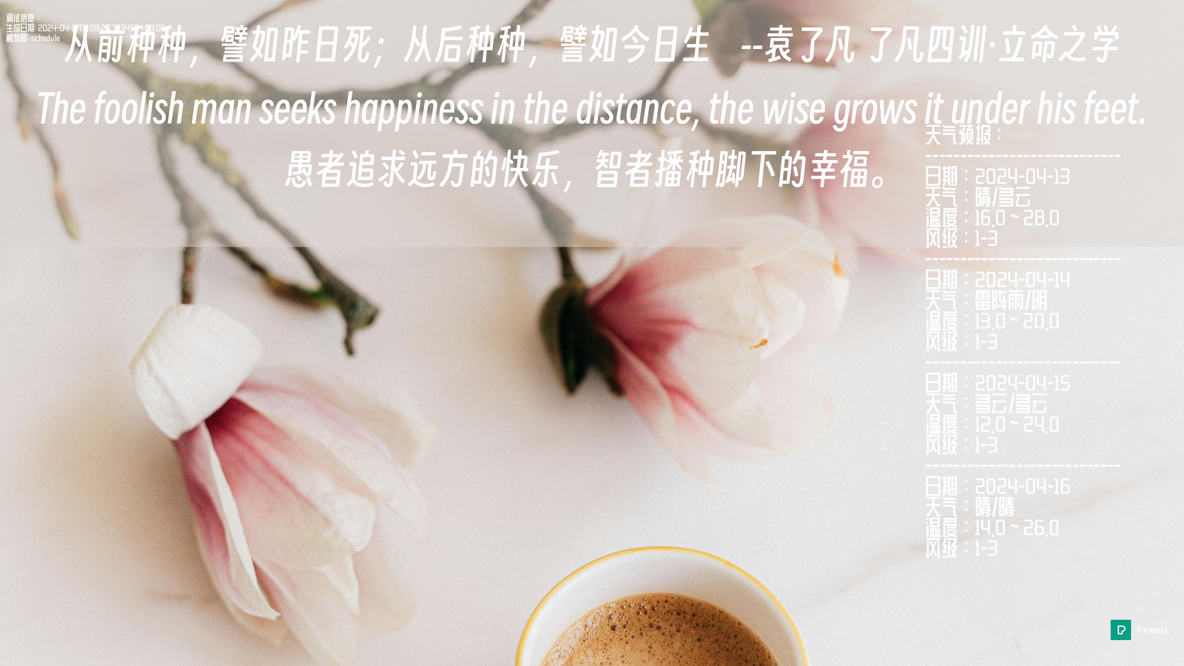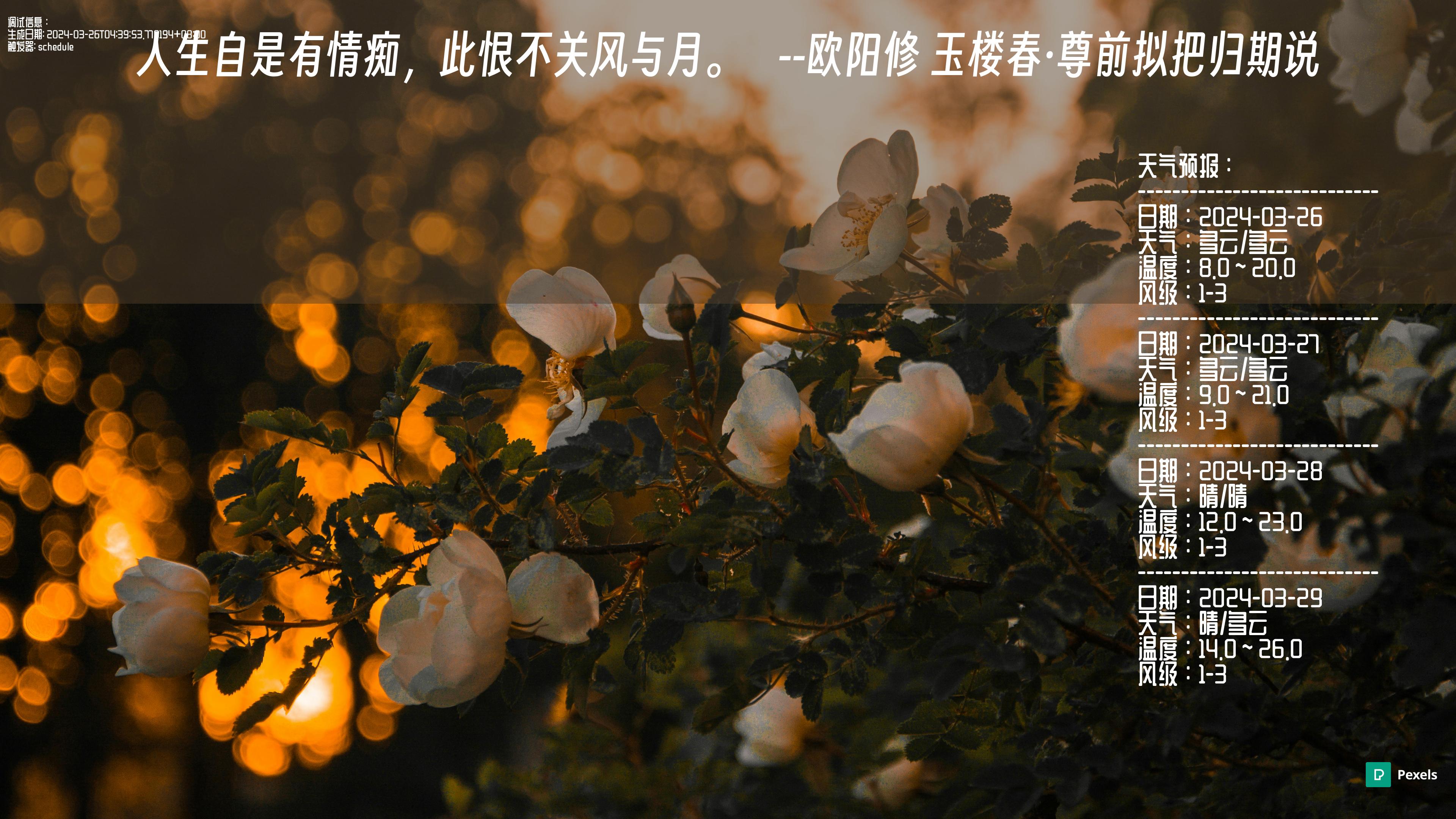 | Date / 日期 | Pexels ID | Quotes / 每日一言 | Image / 图片 | 触发器 |