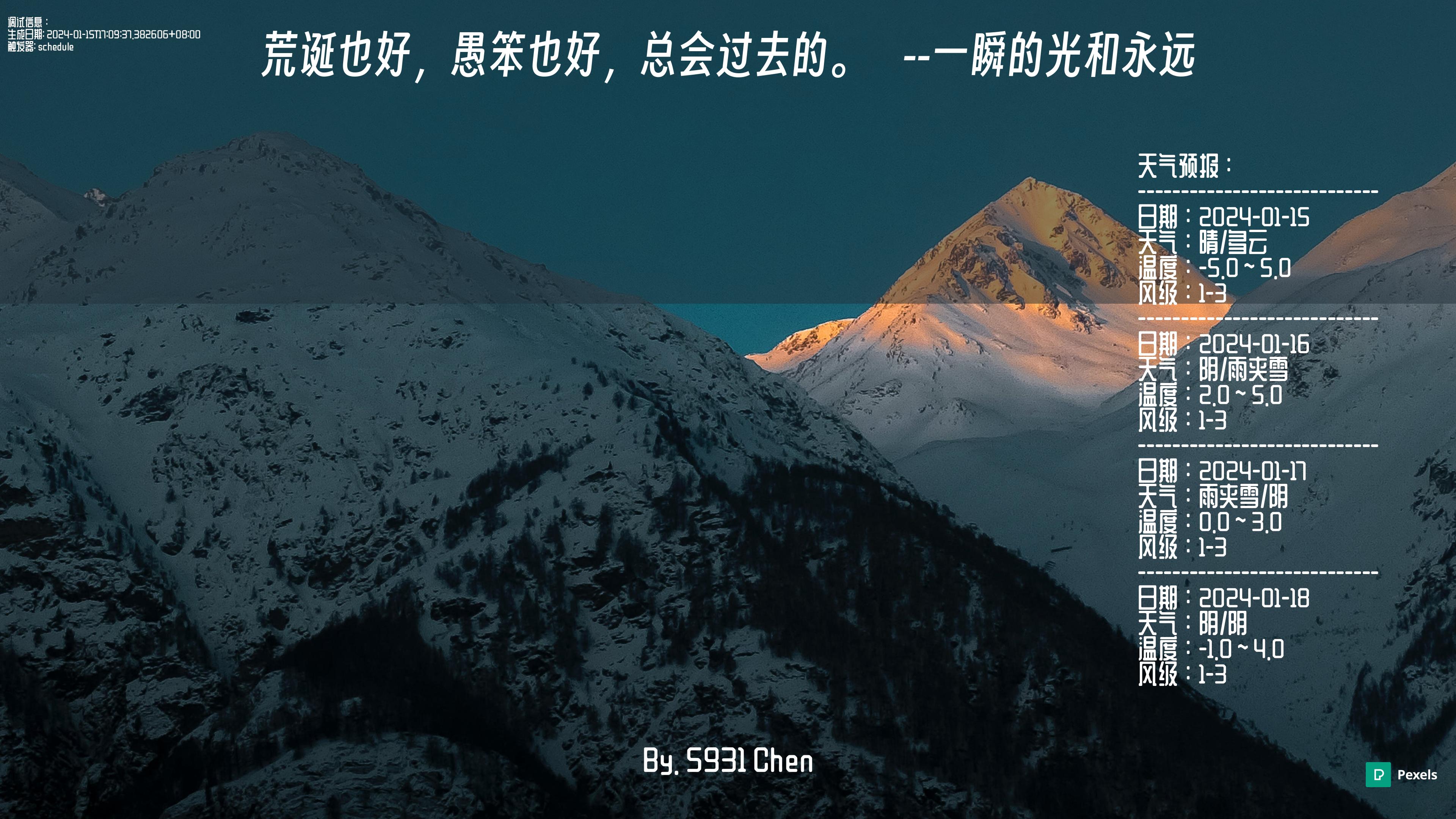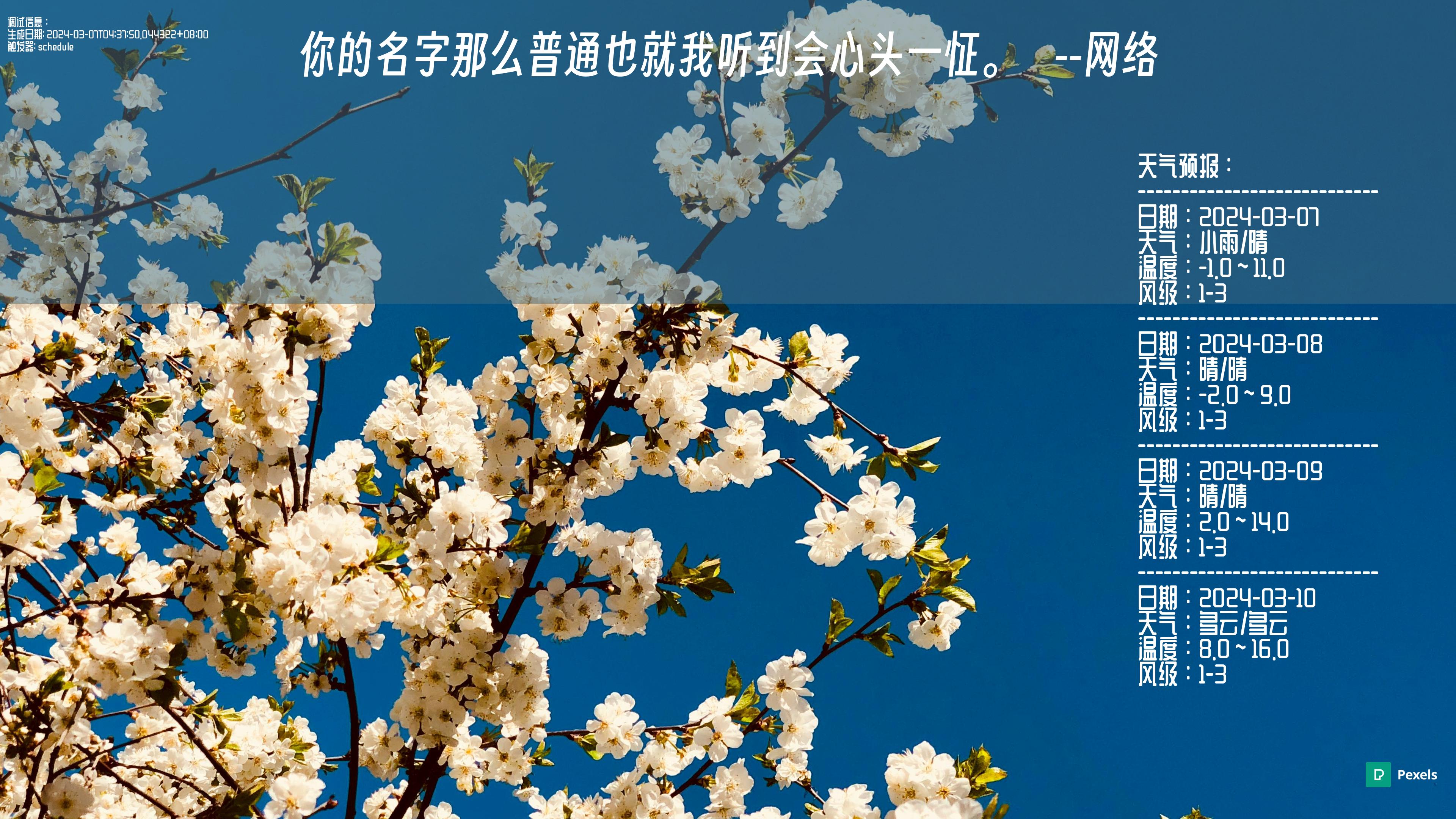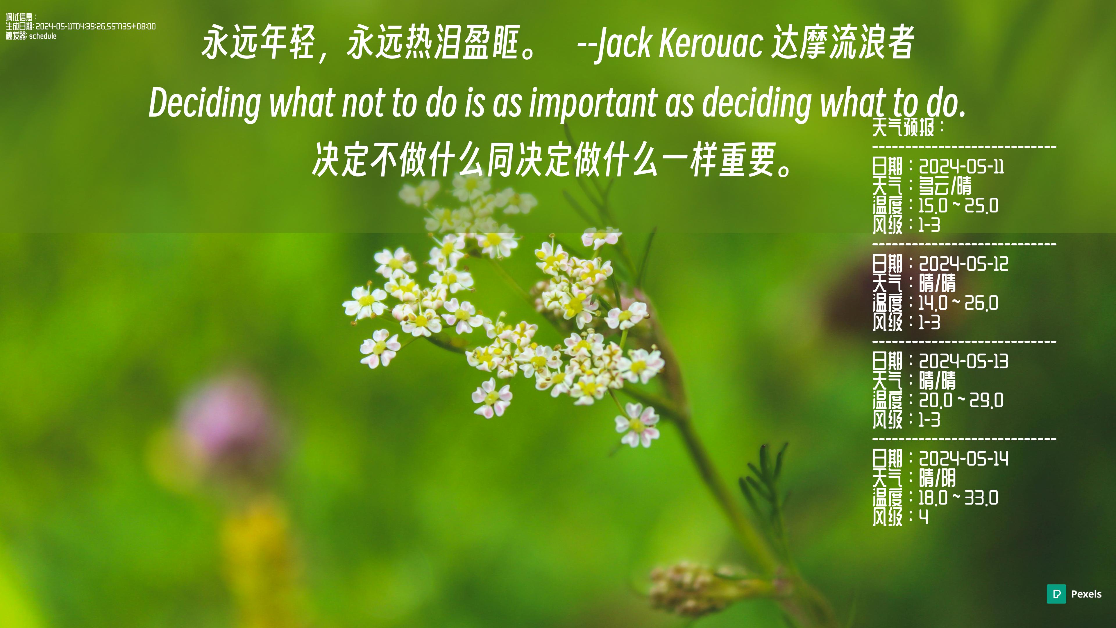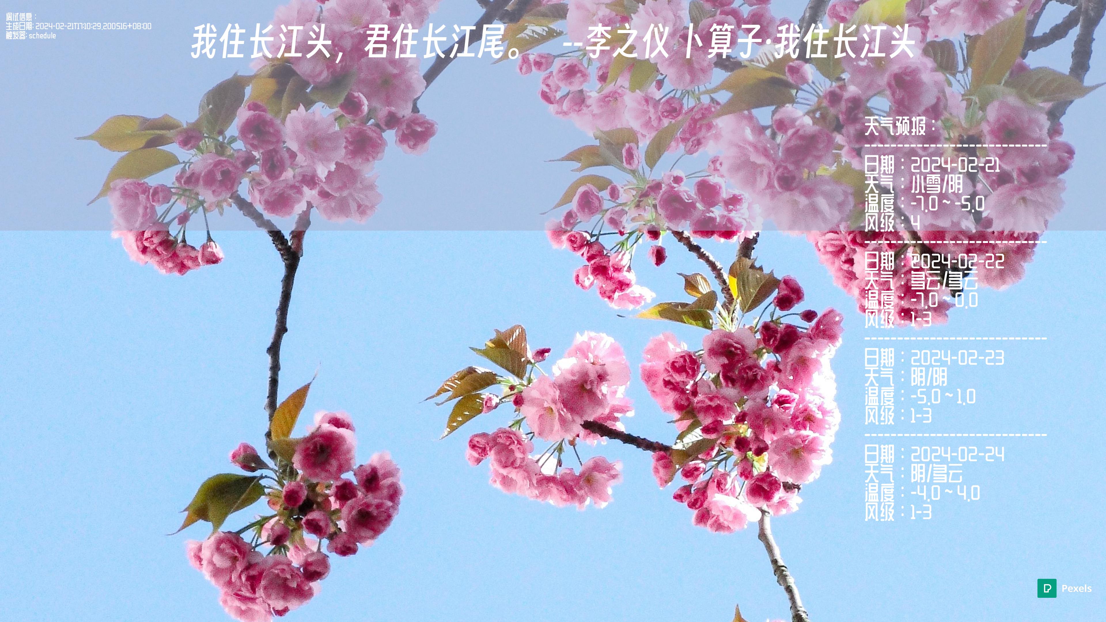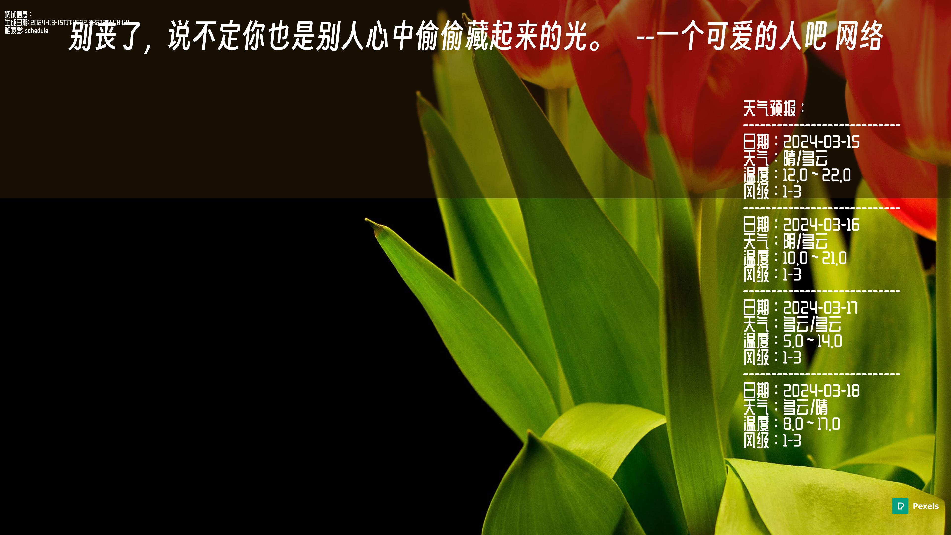 | Date / 日期 | Pexels ID | Quotes / 每日一言 | Image / 图片 | 触发器 |