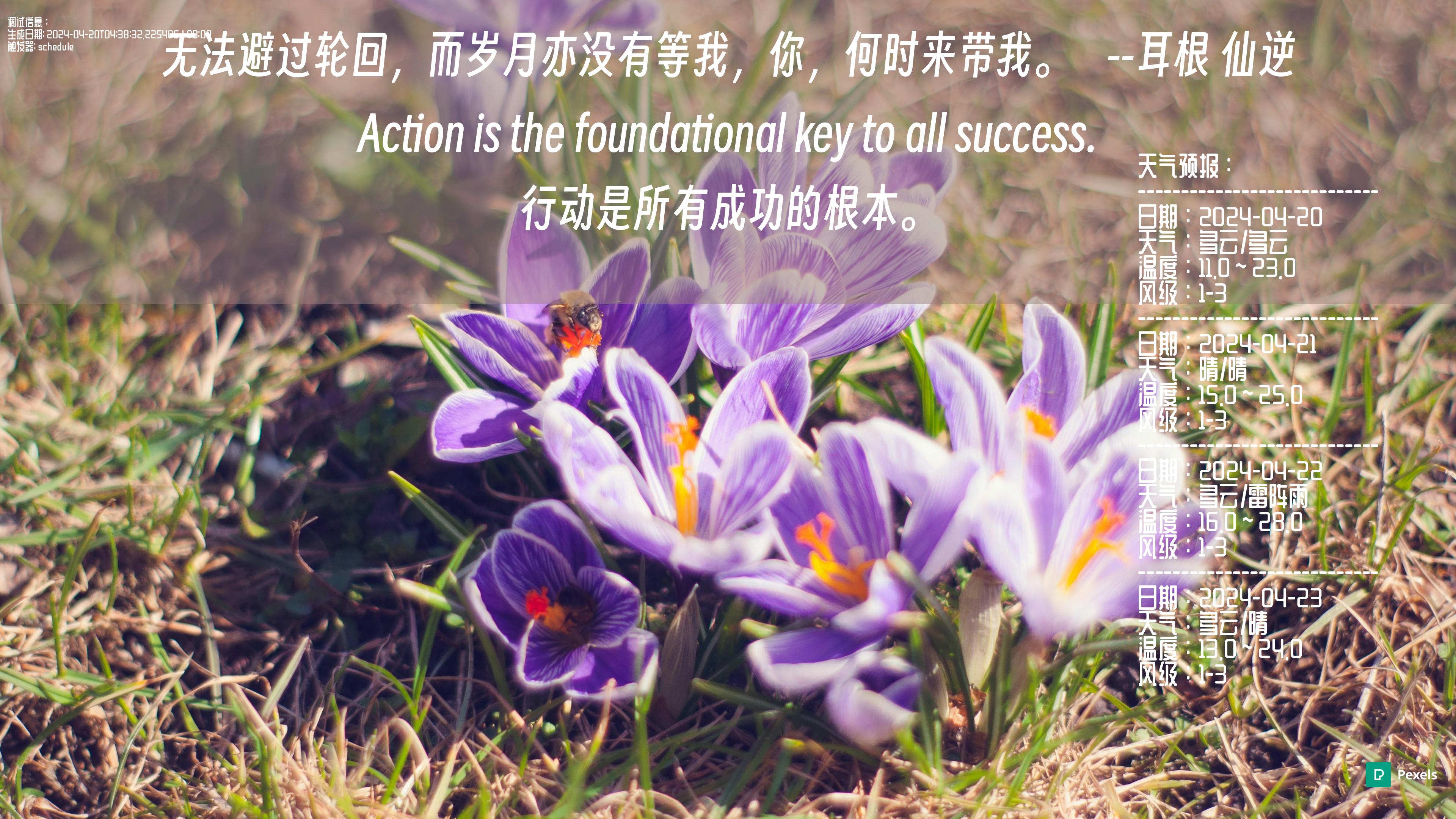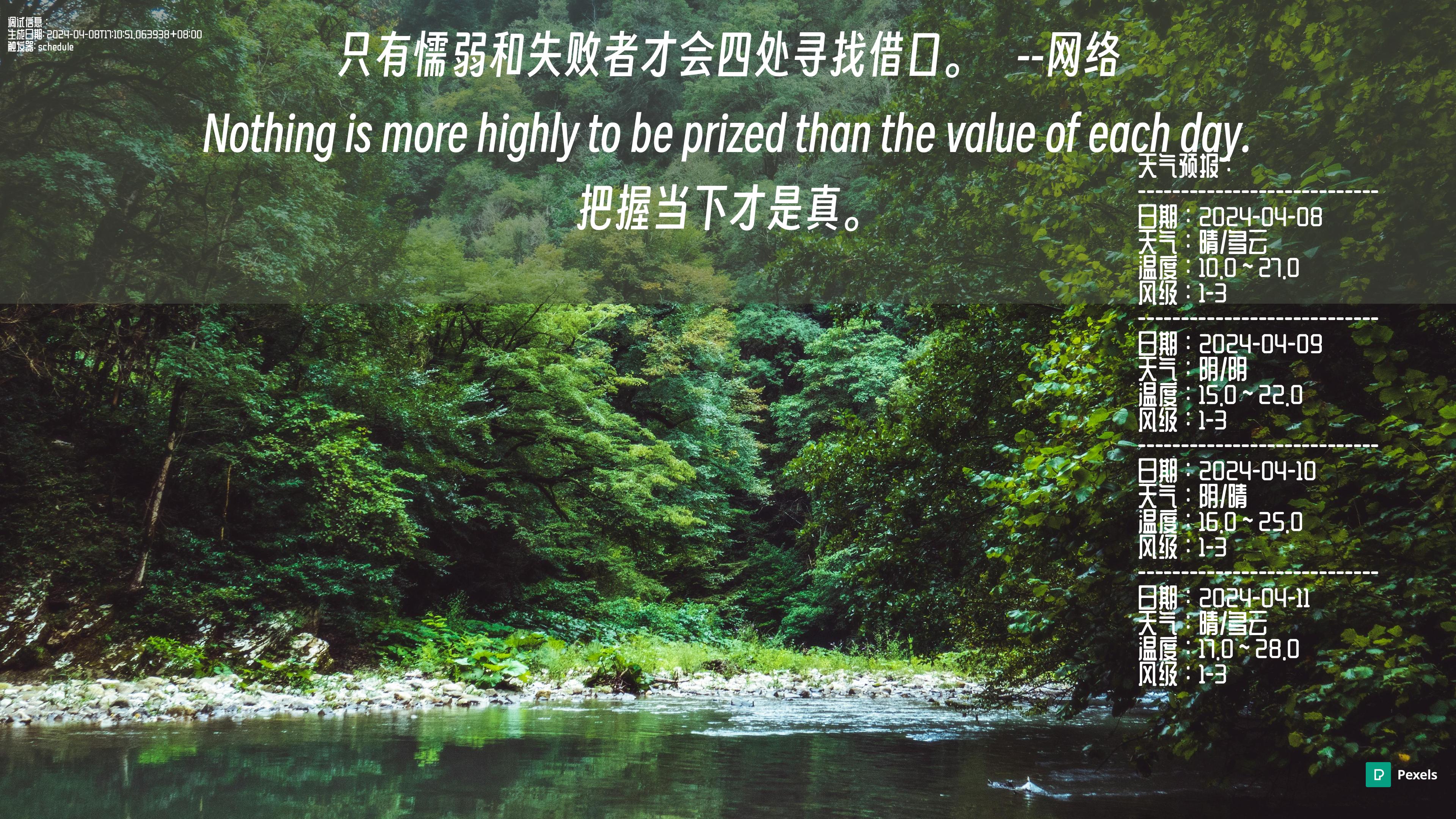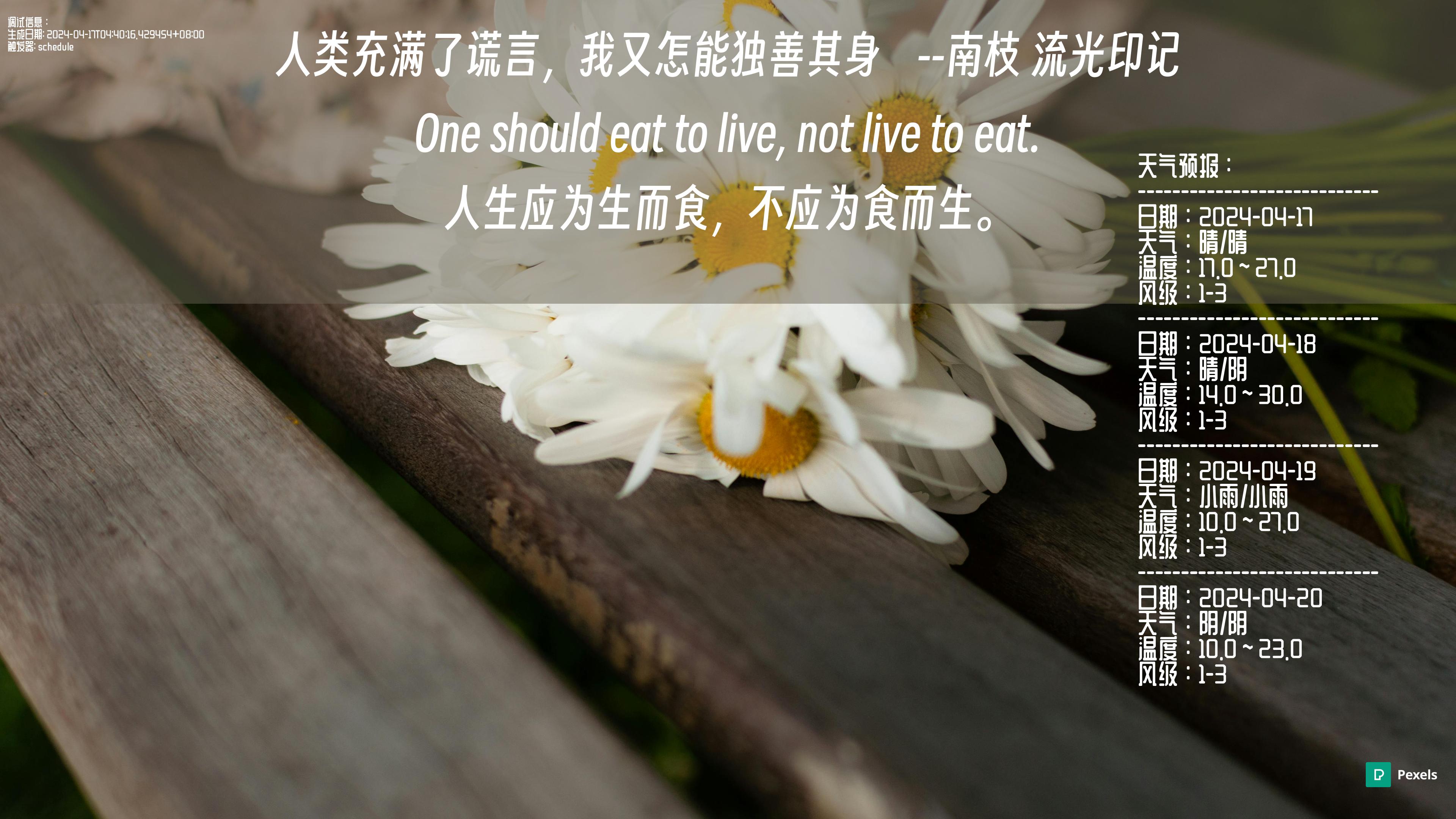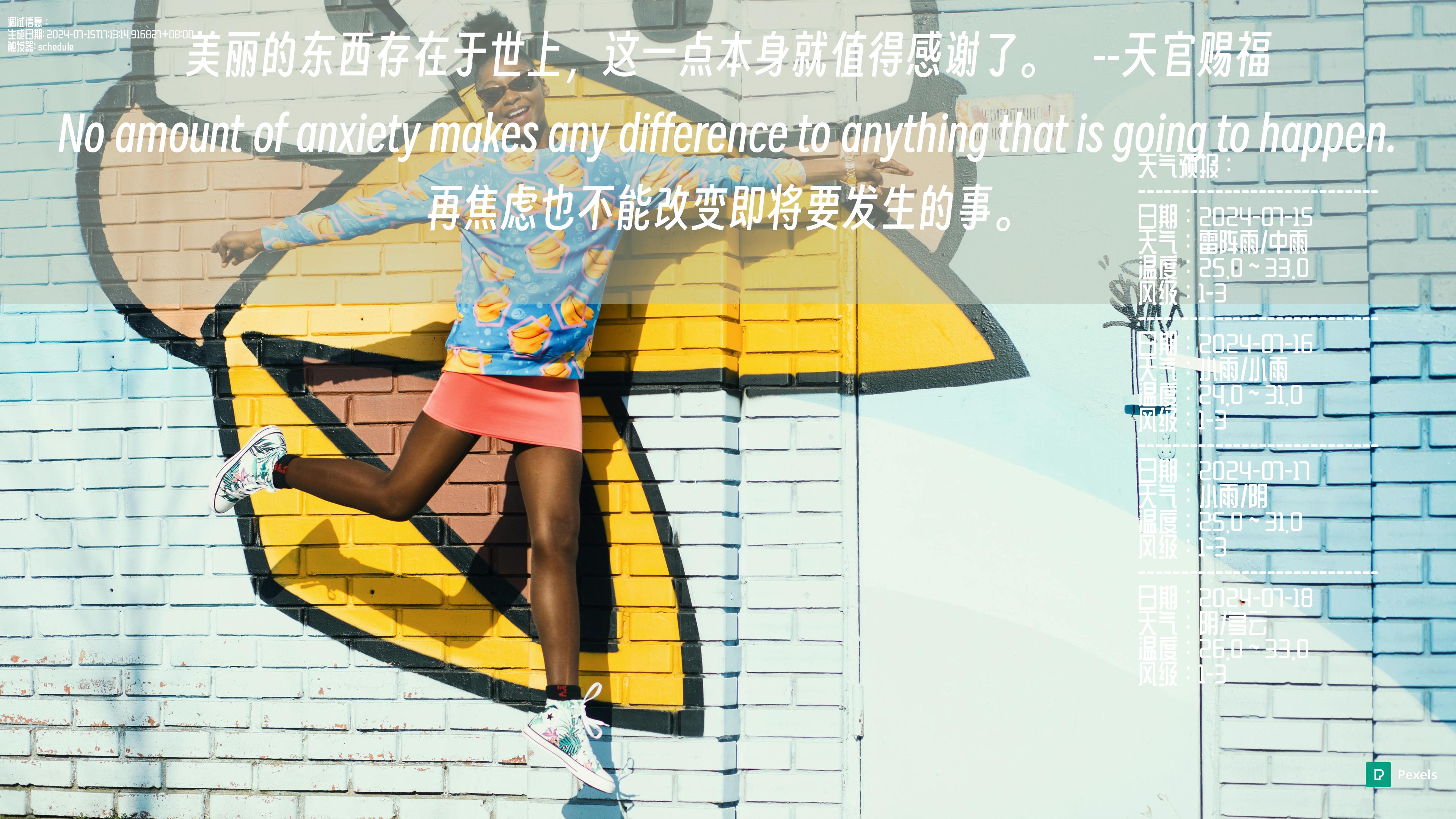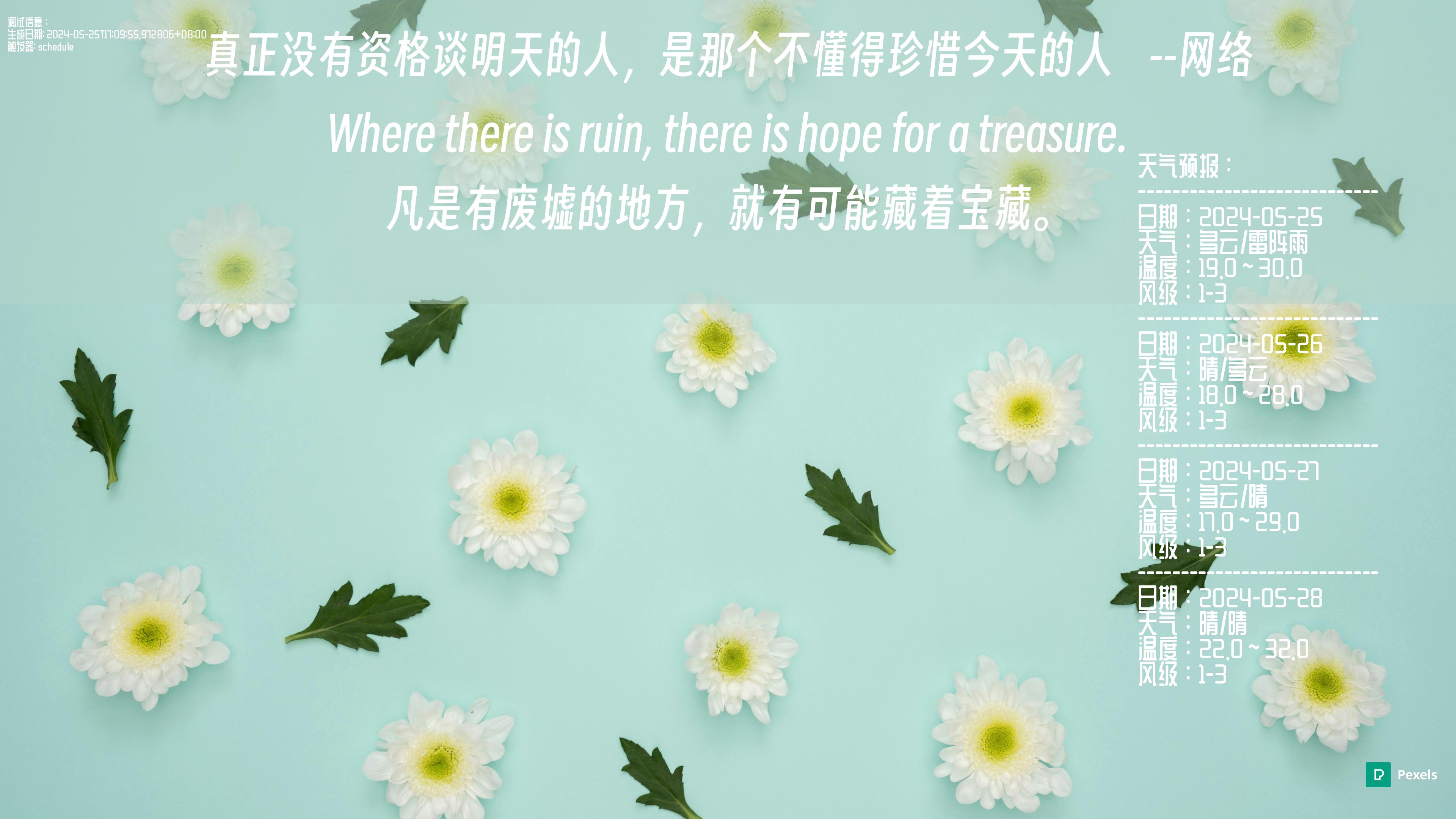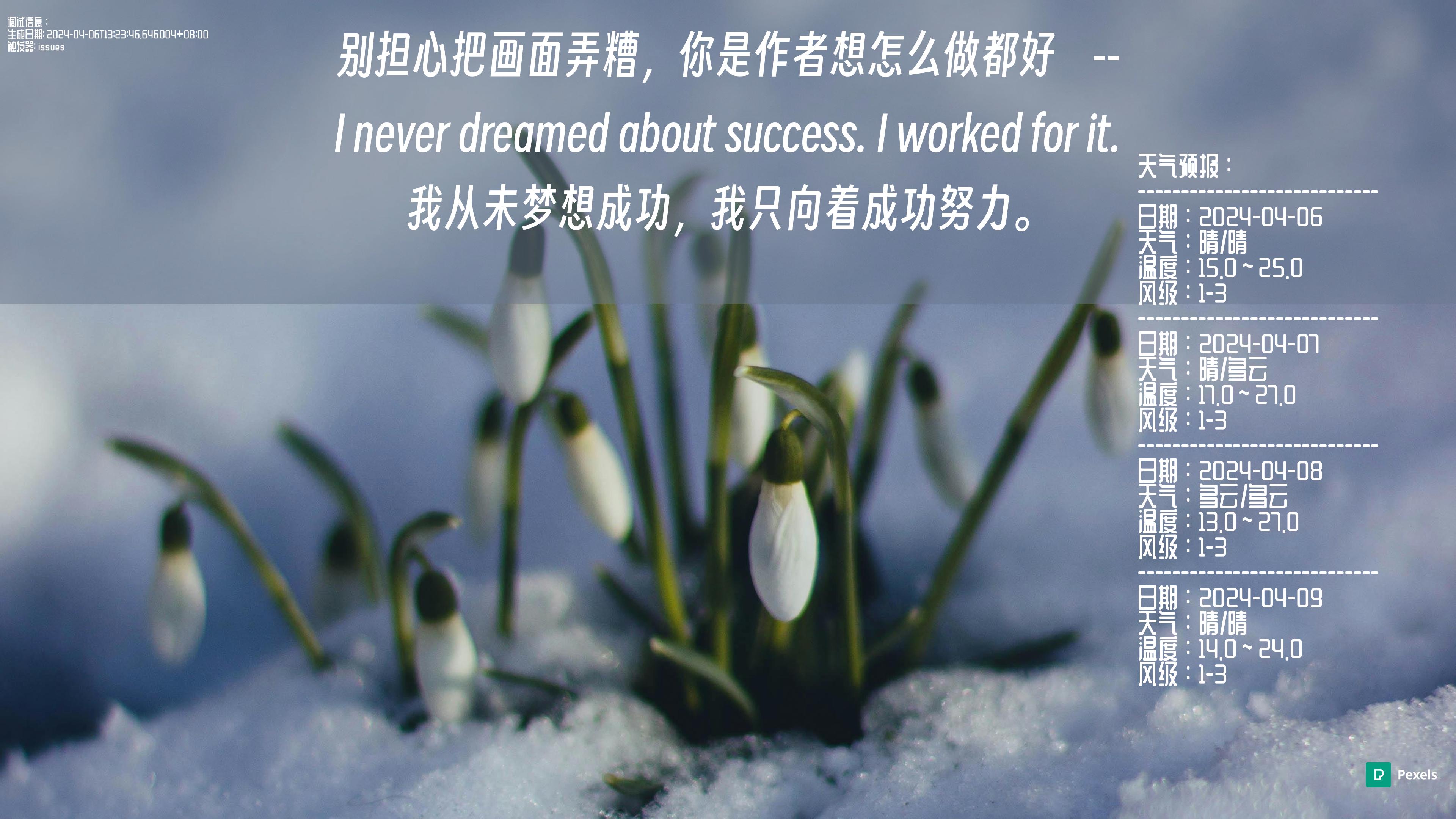 | Date / 日期 | Pexels ID | Quotes / 每日一言 | Image / 图片 | 触发器 |