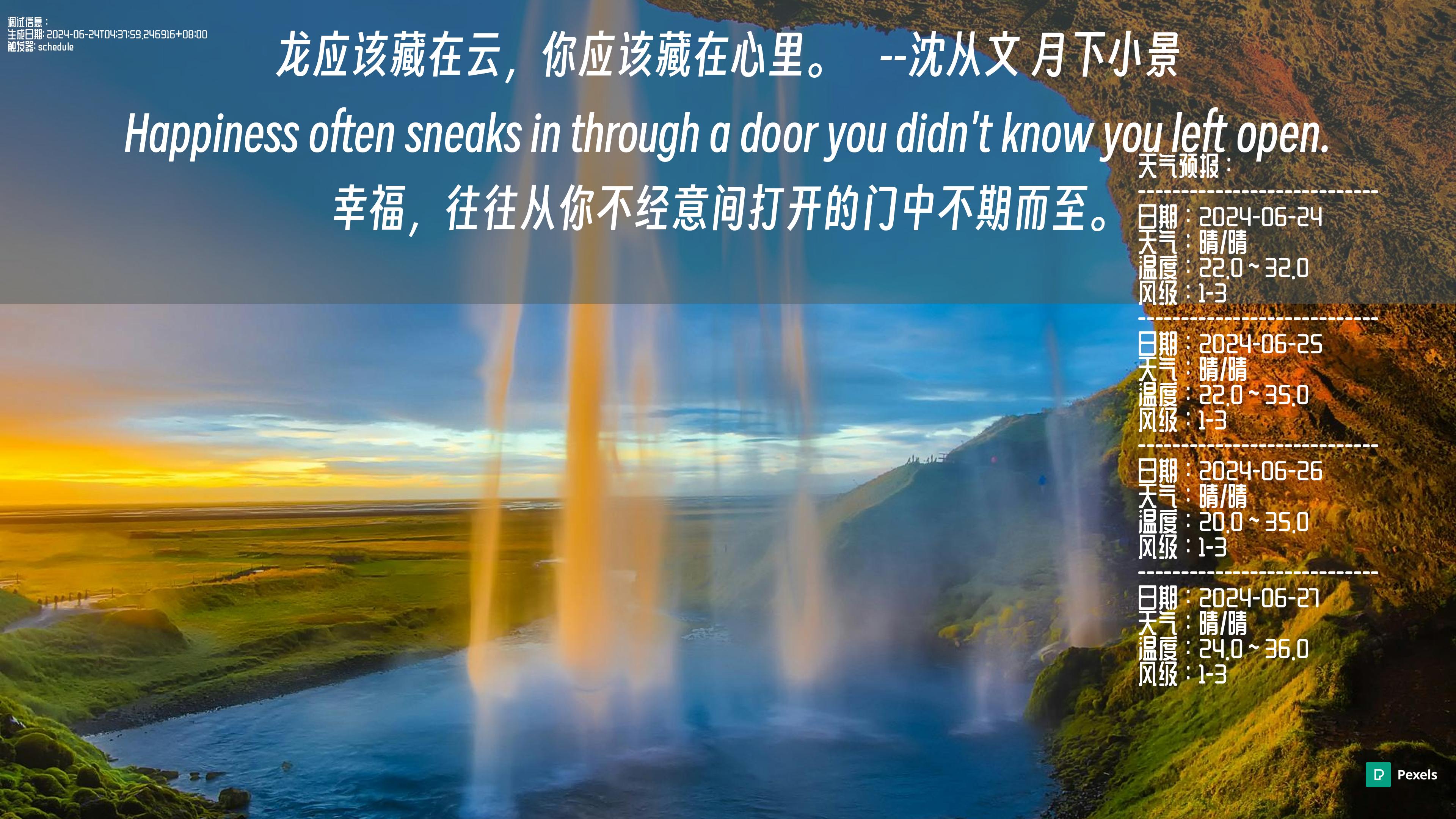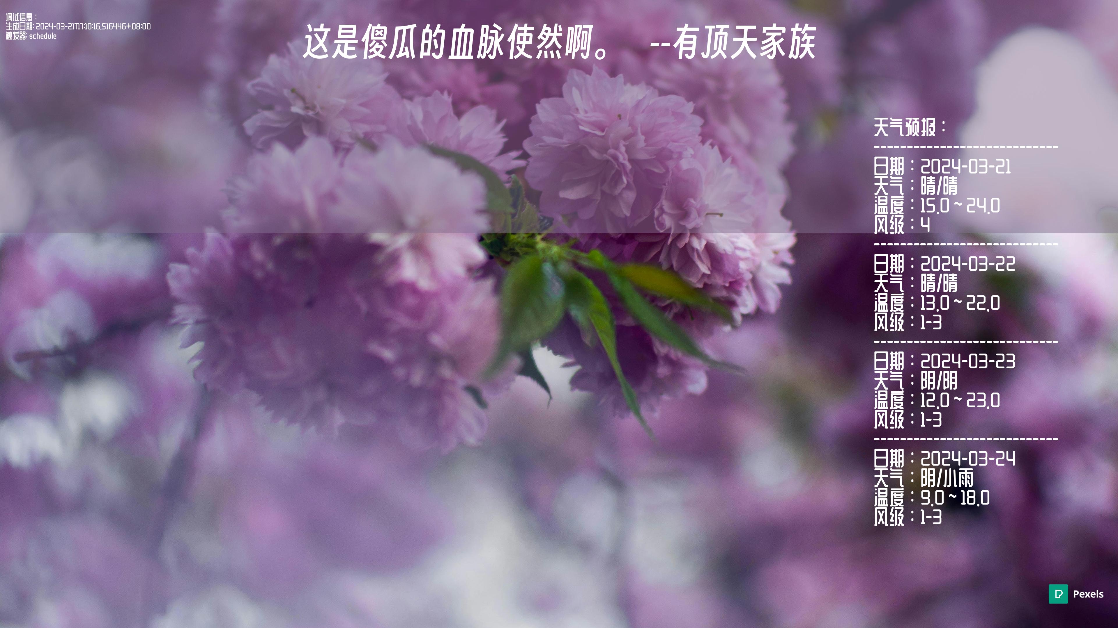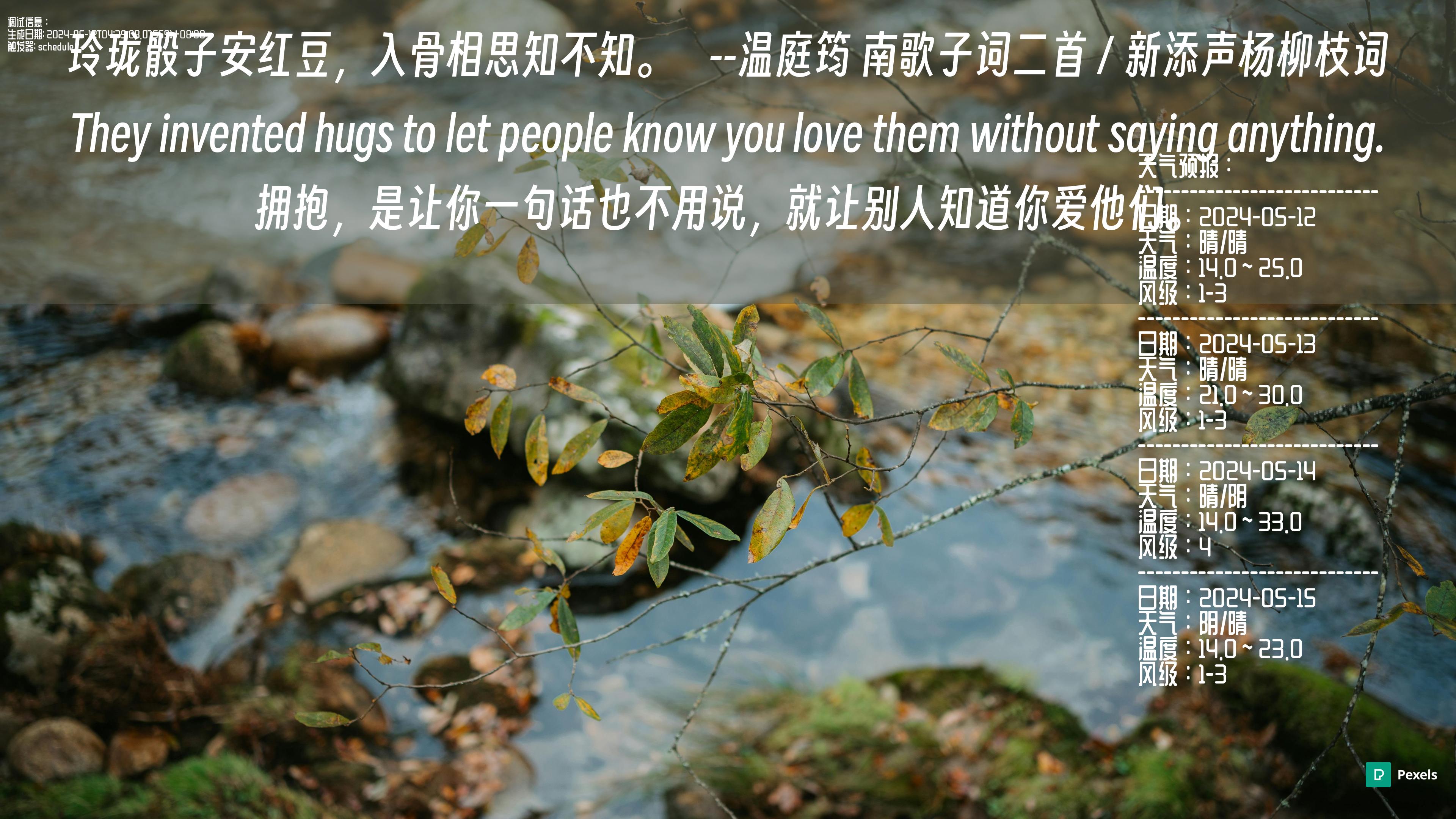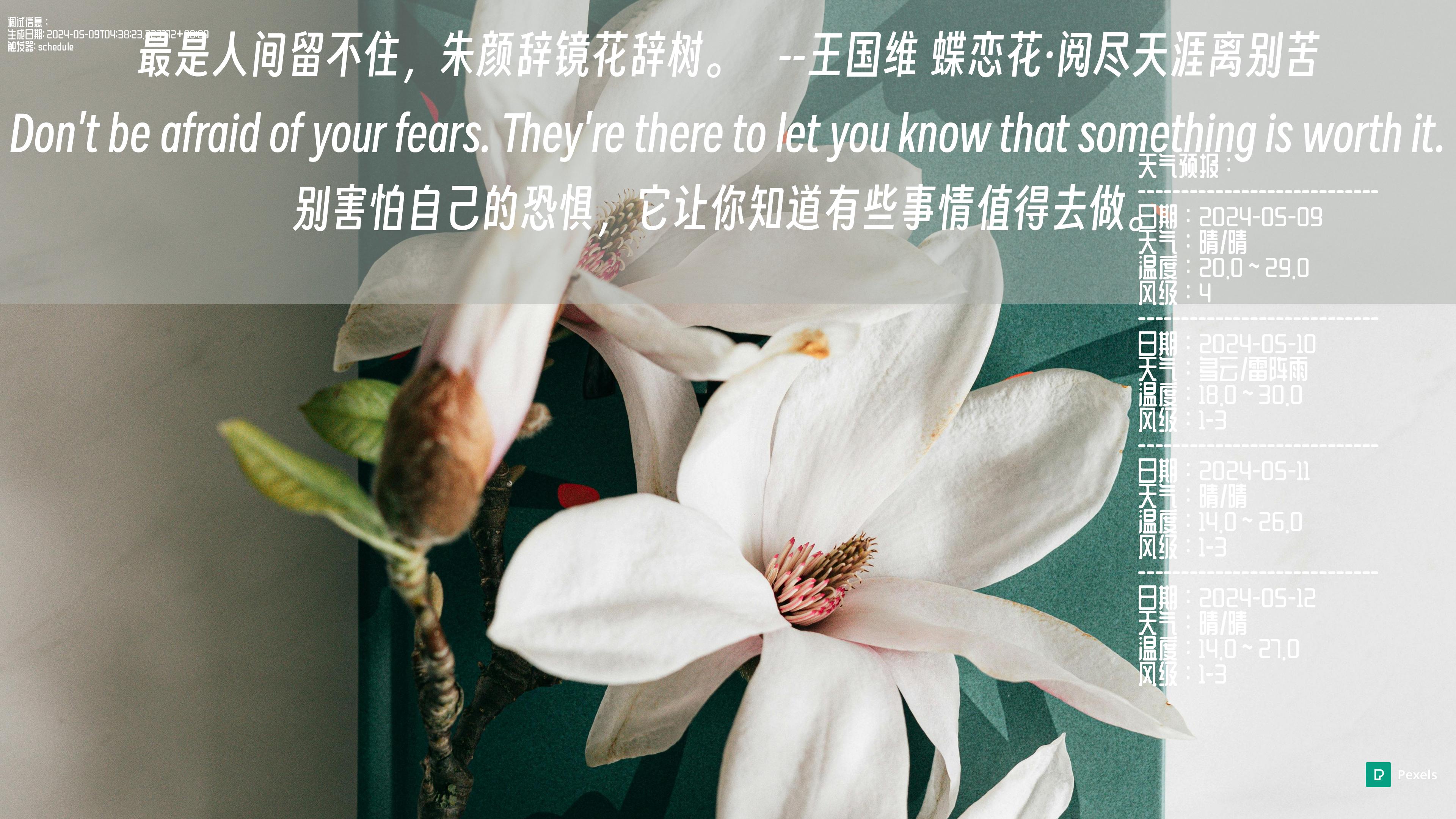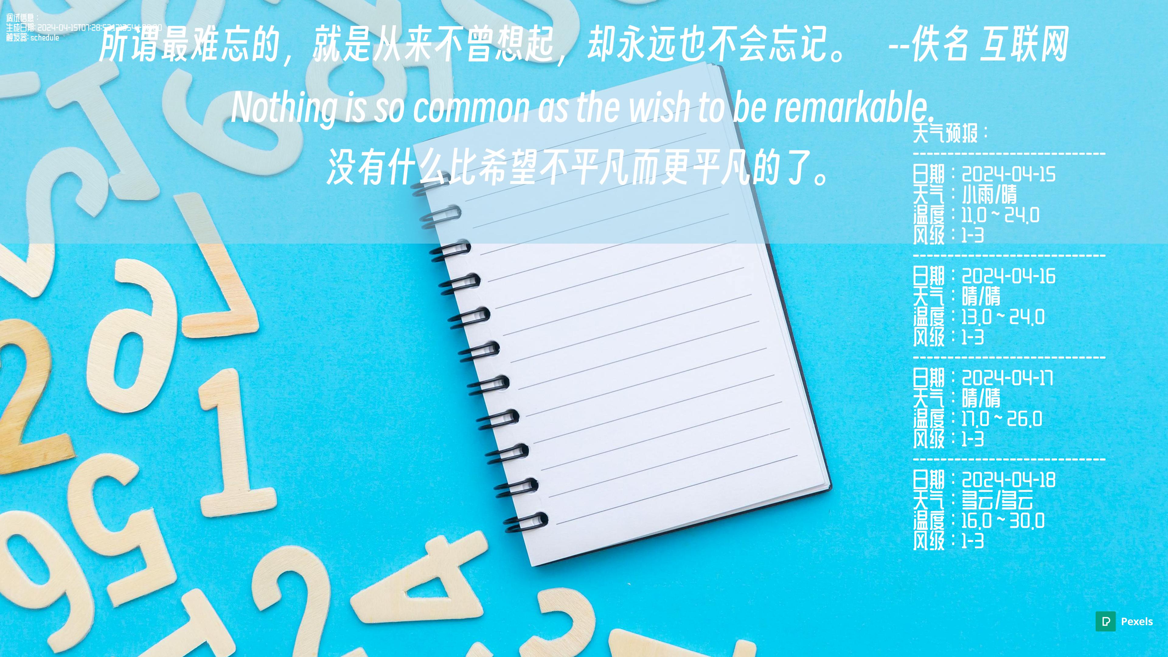 | Date / 日期 | Pexels ID | Quotes / 每日一言 | Image / 图片 | 触发器 |