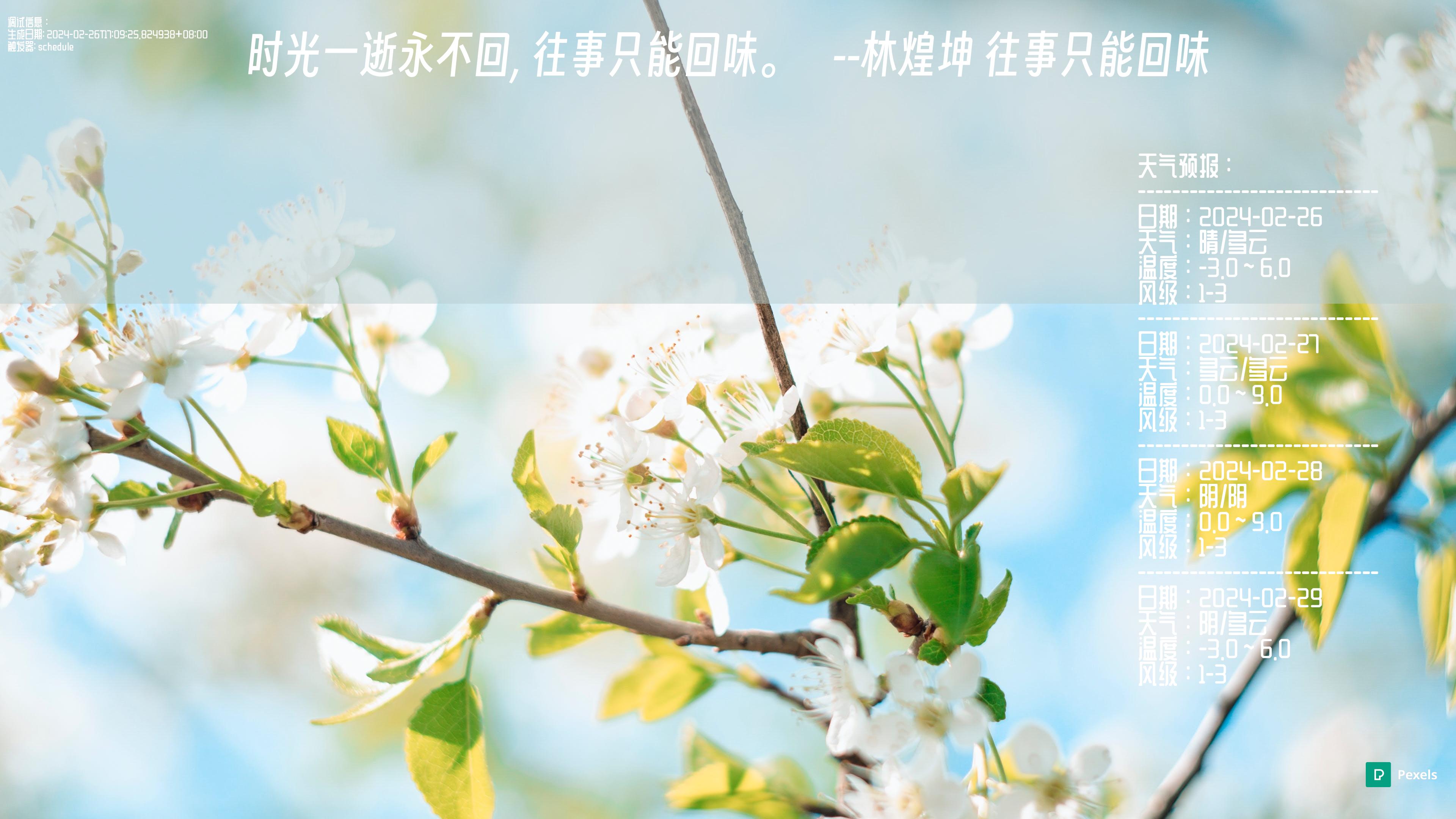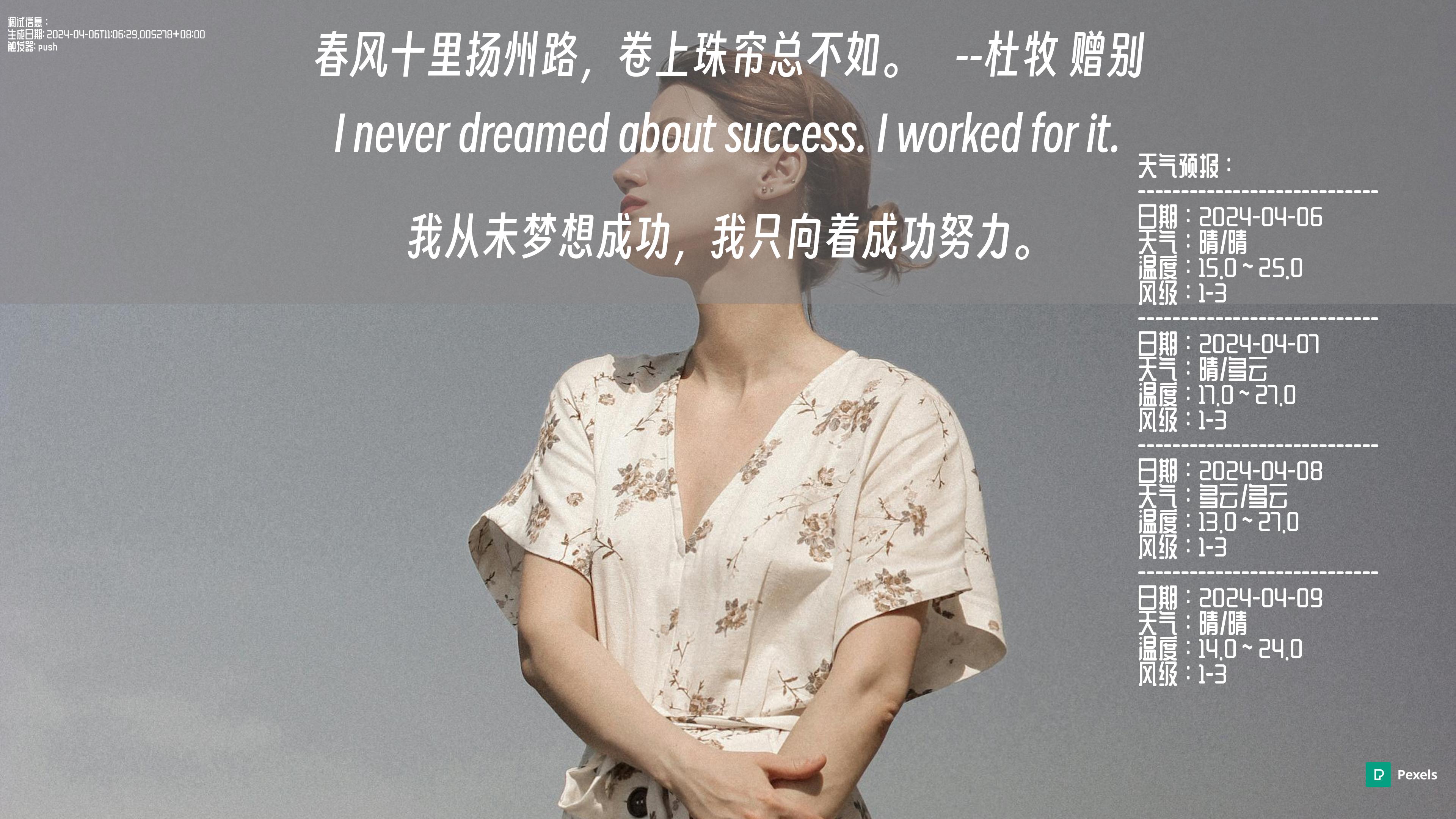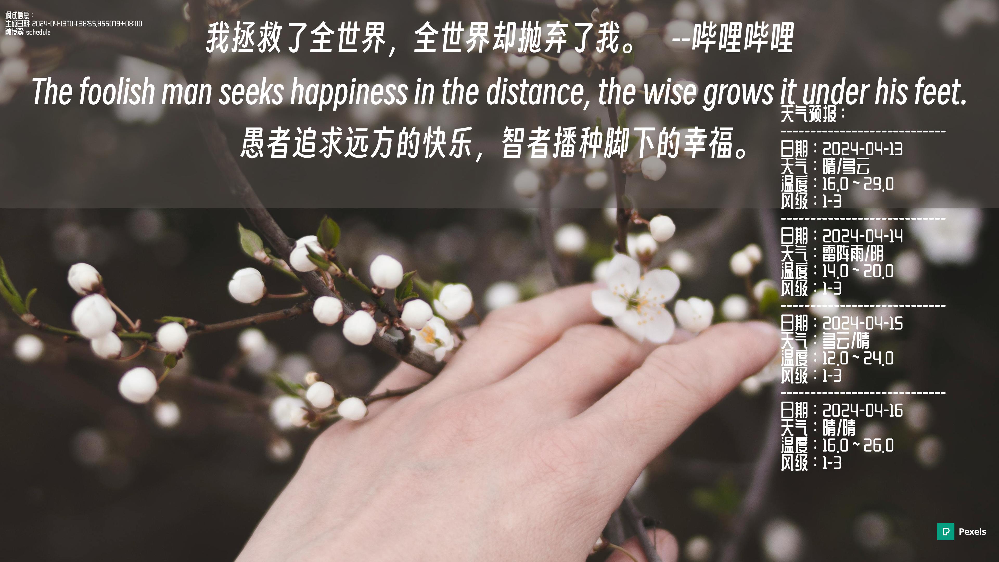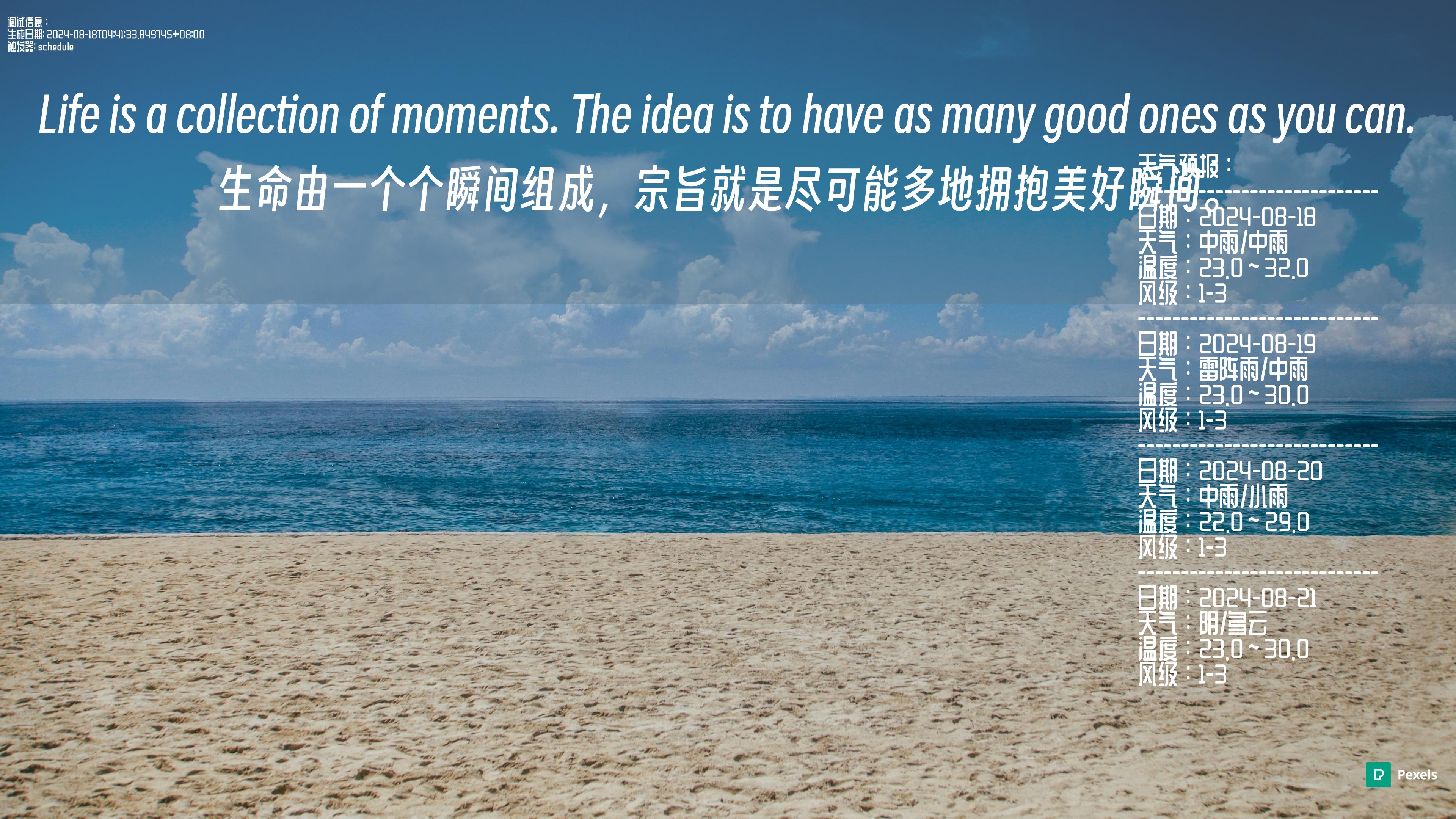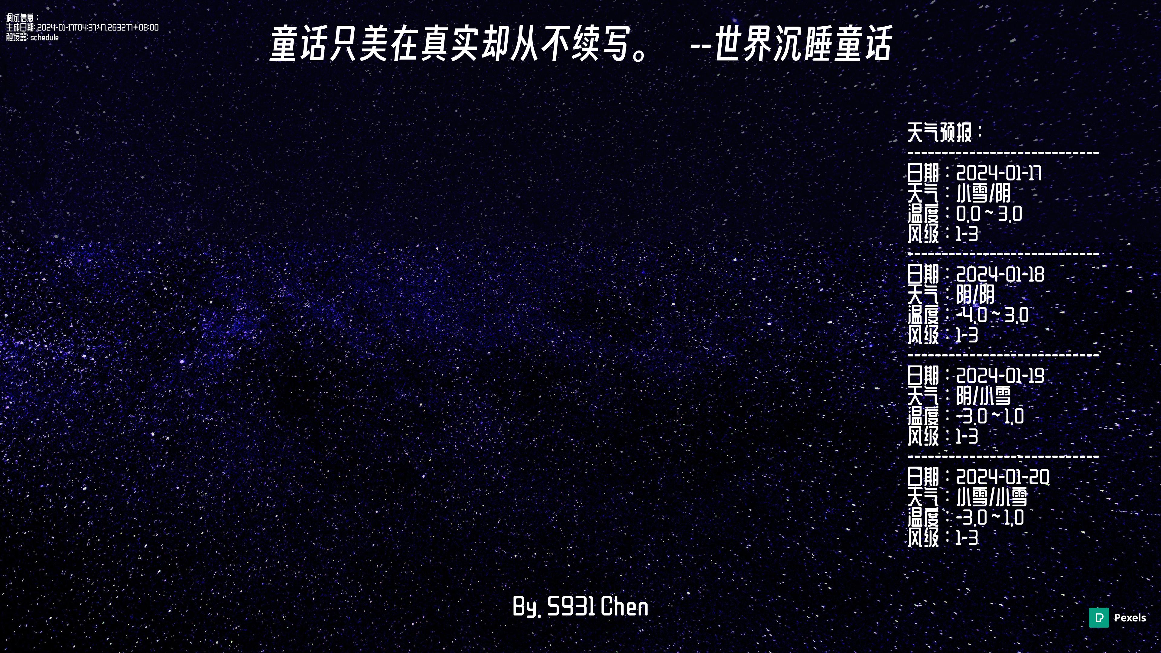 | Date / 日期 | Pexels ID | Quotes / 每日一言 | Image / 图片 | 触发器 |