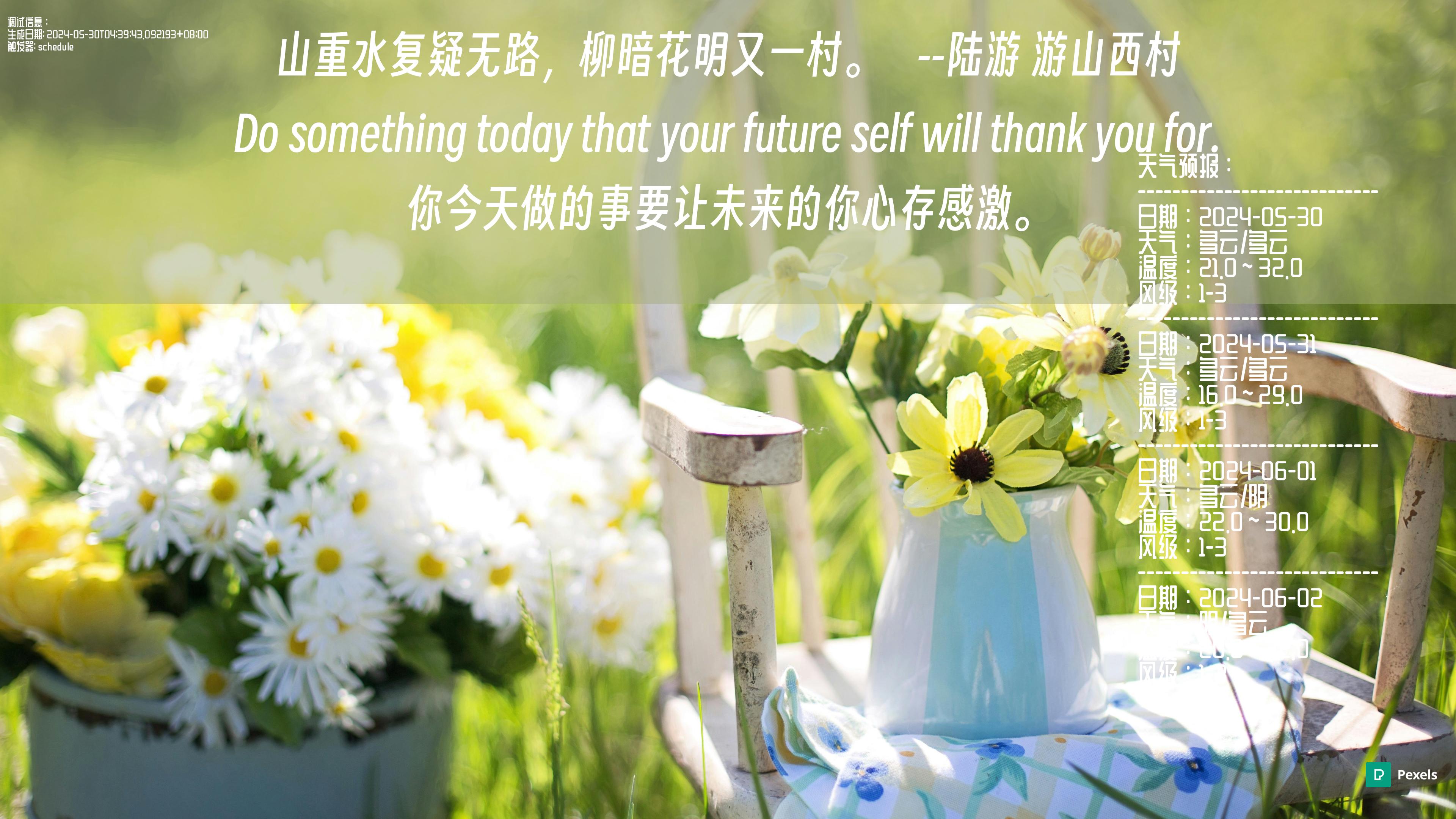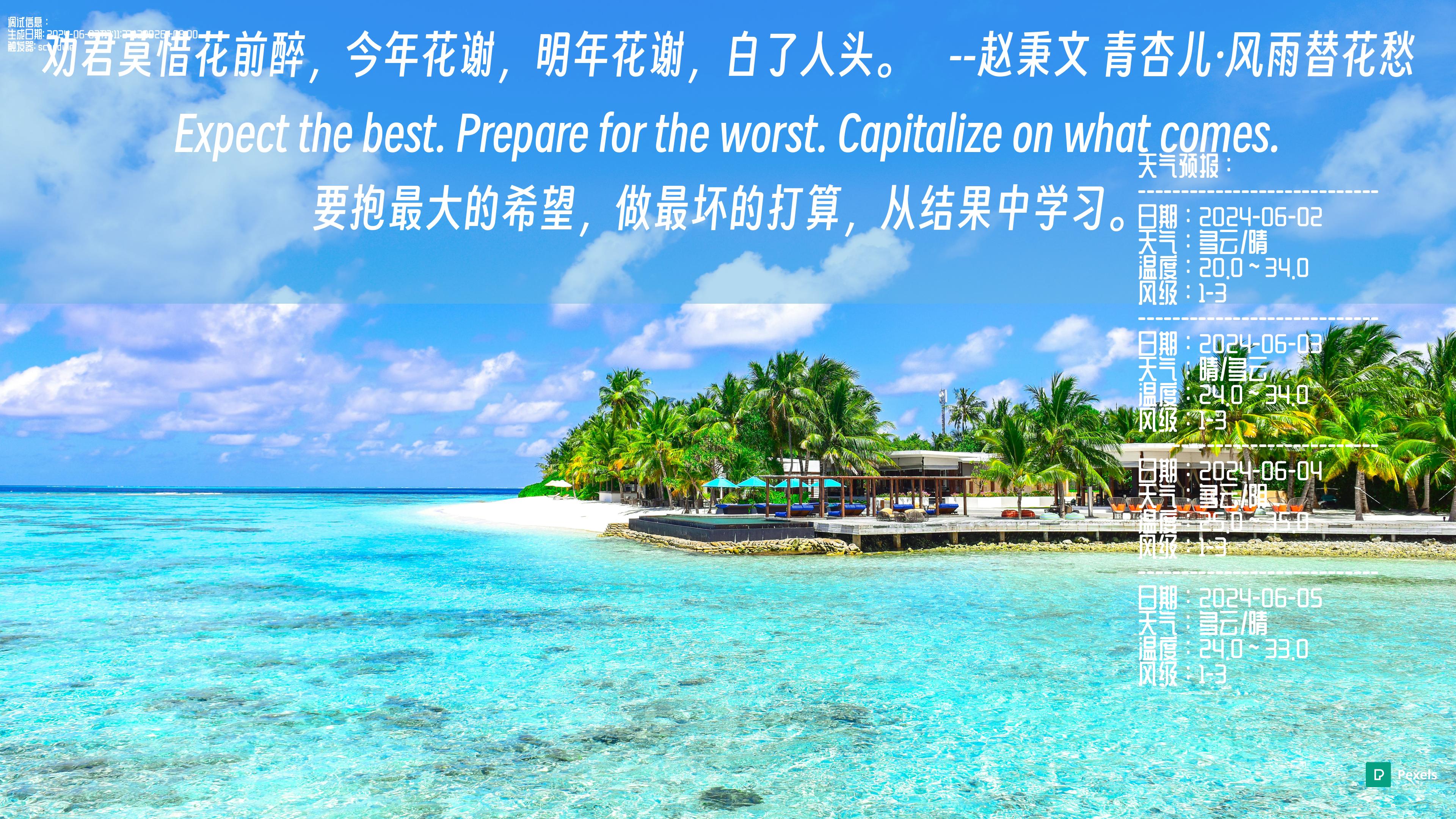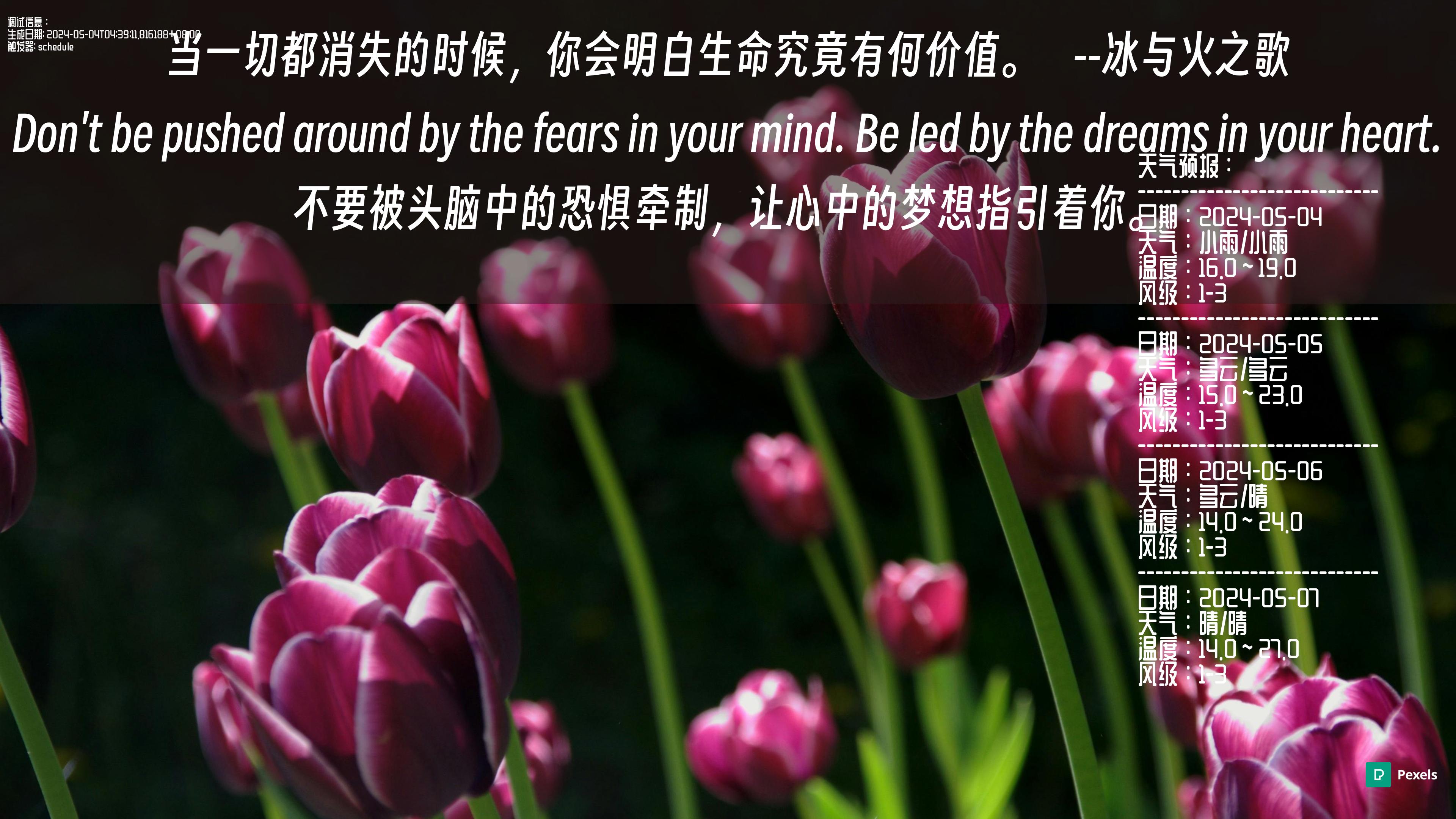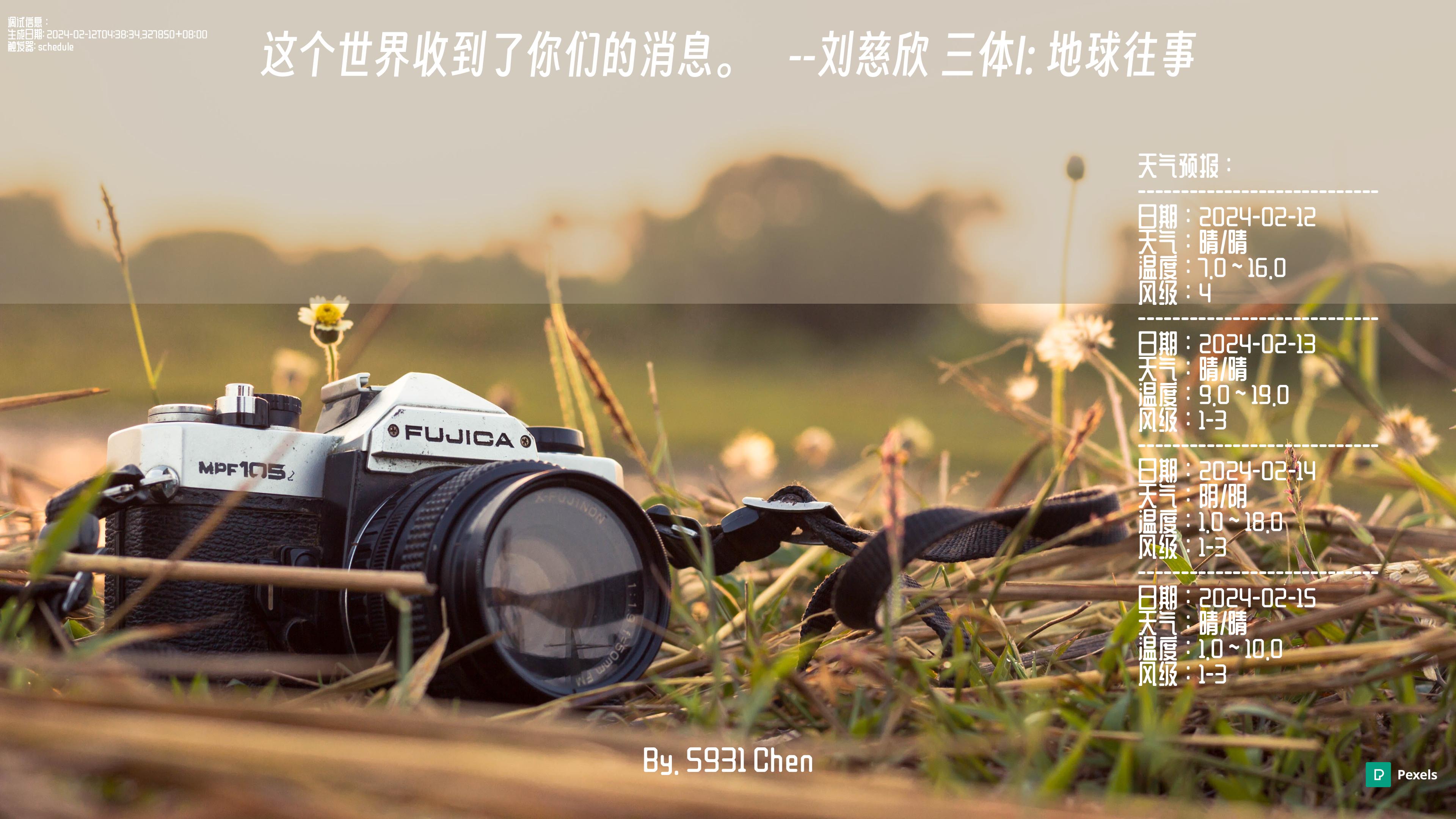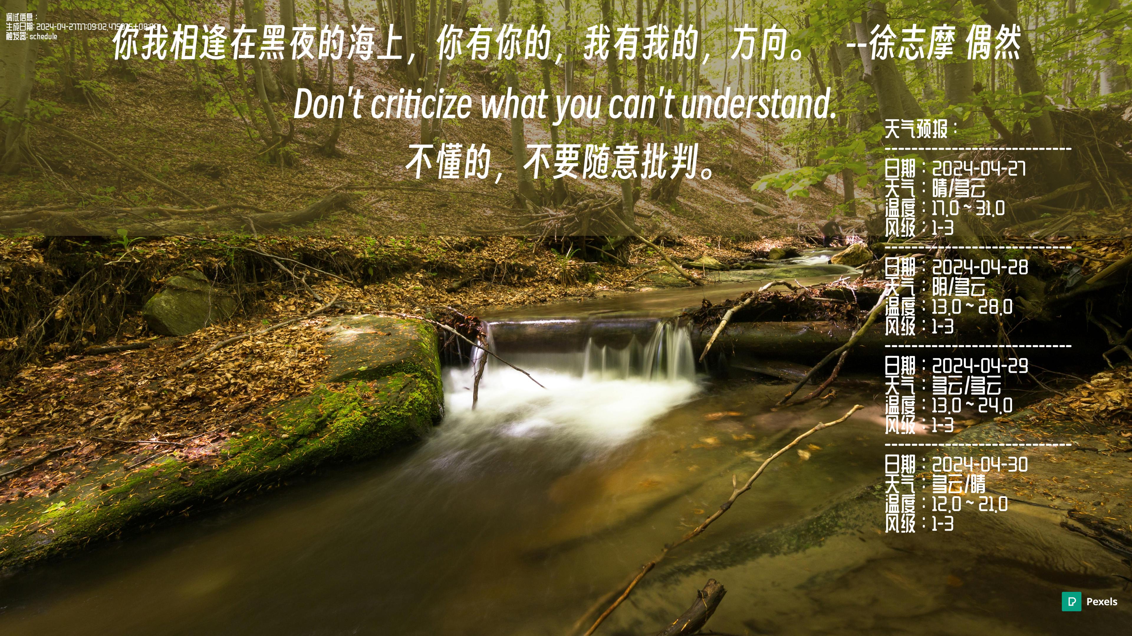 | Date / 日期 | Pexels ID | Quotes / 每日一言 | Image / 图片 | 触发器 |