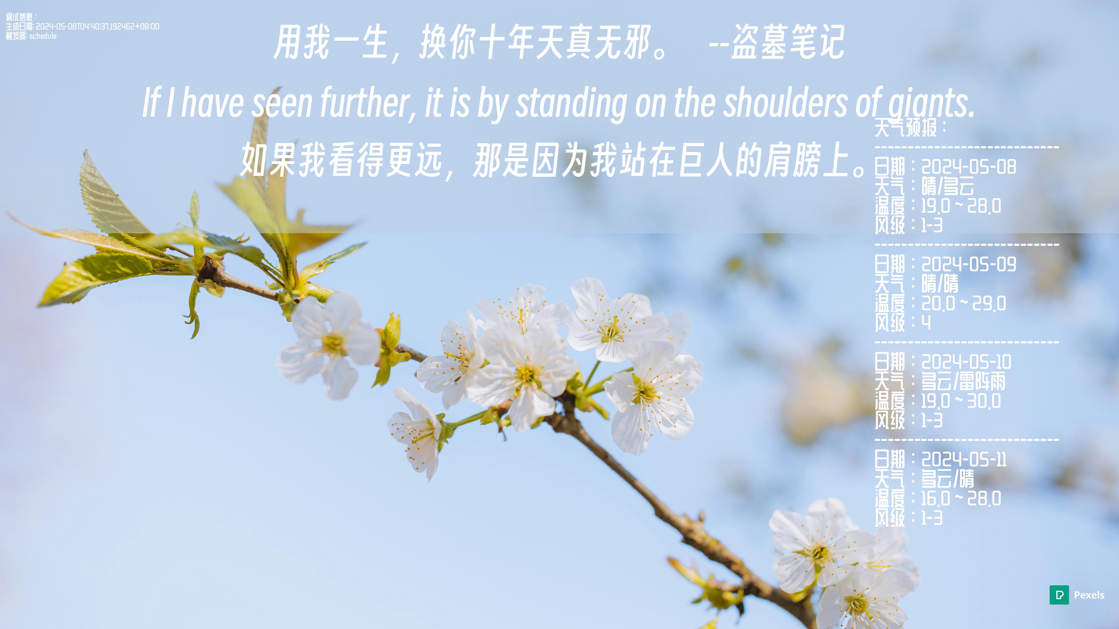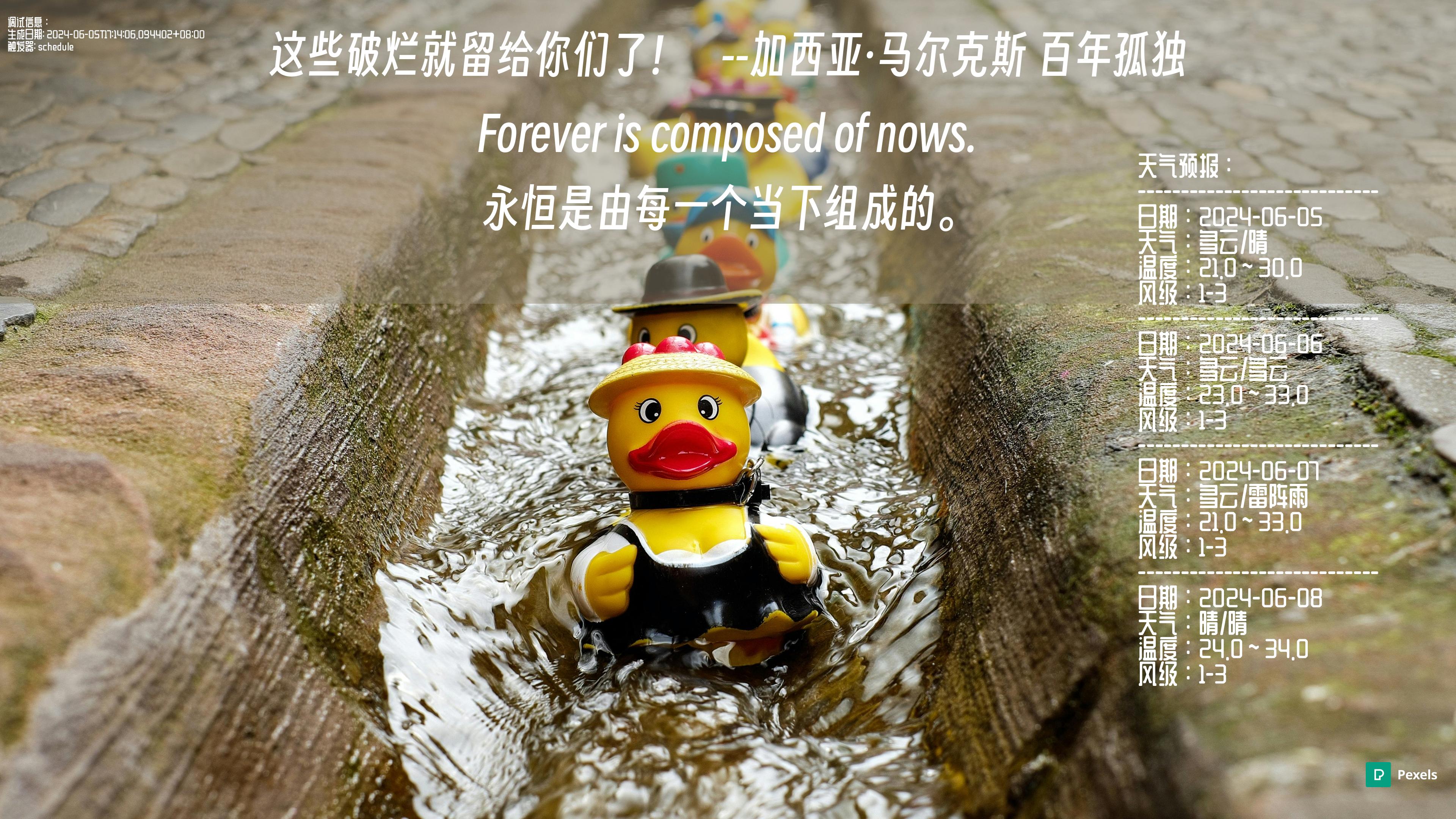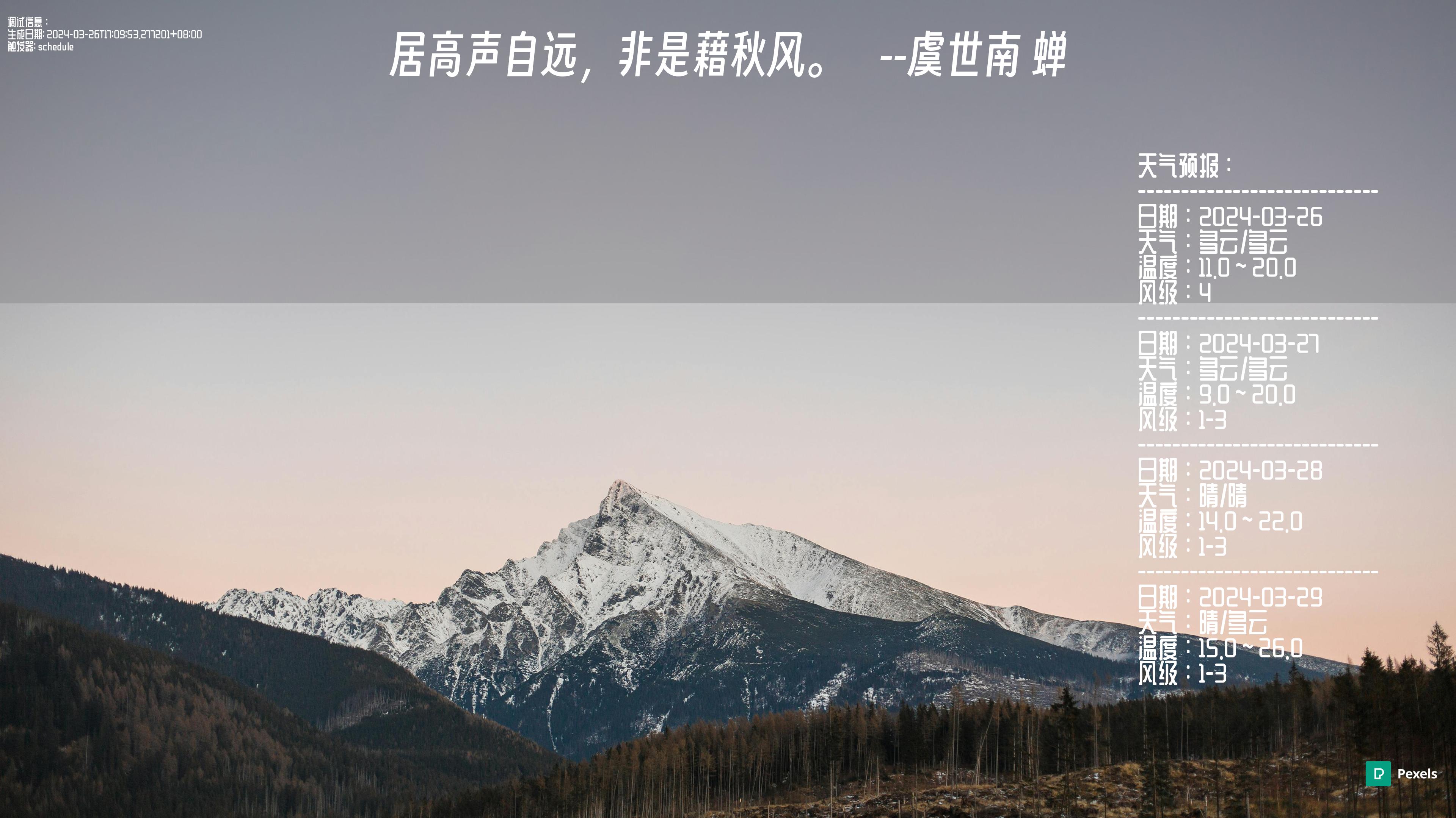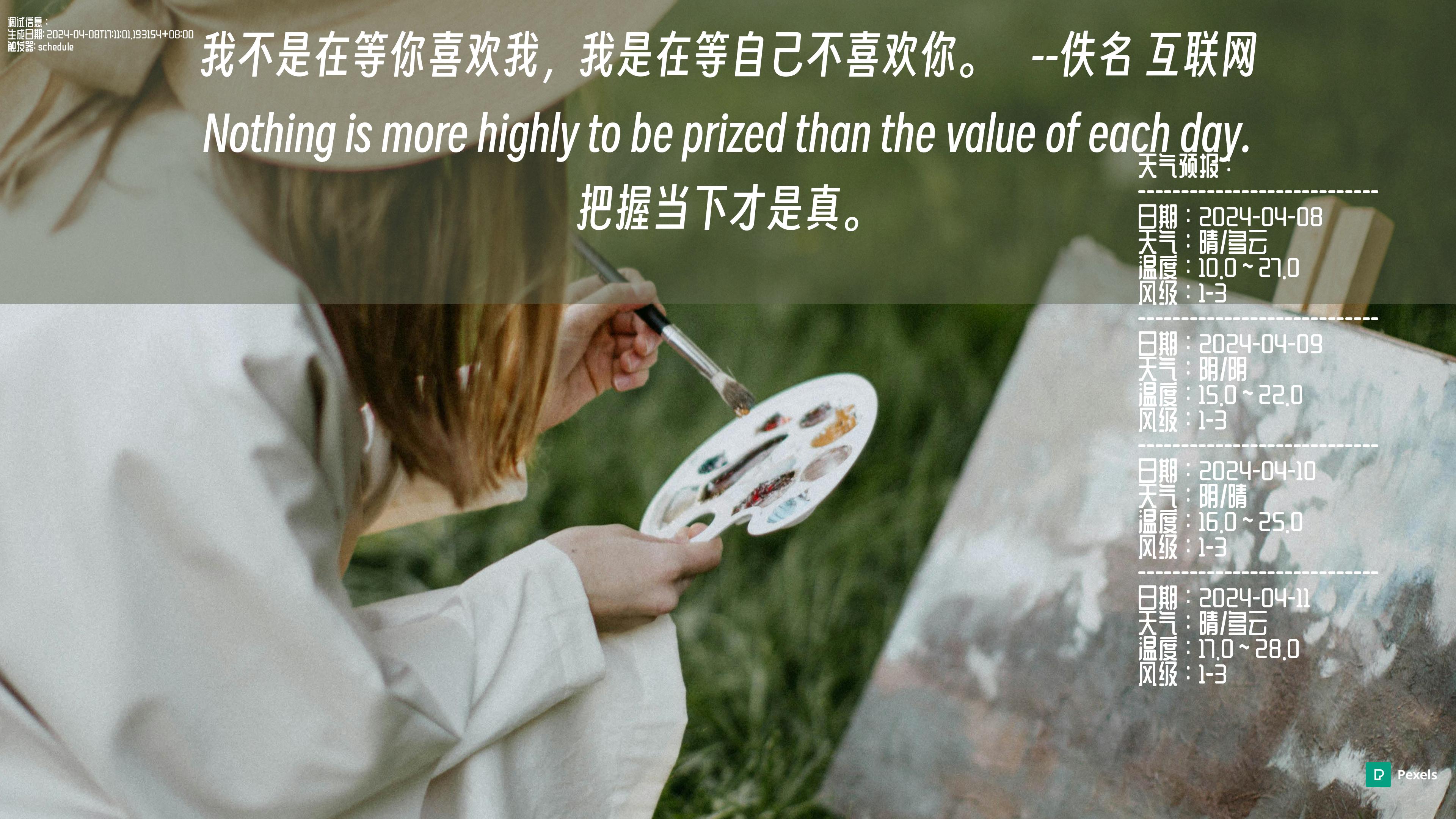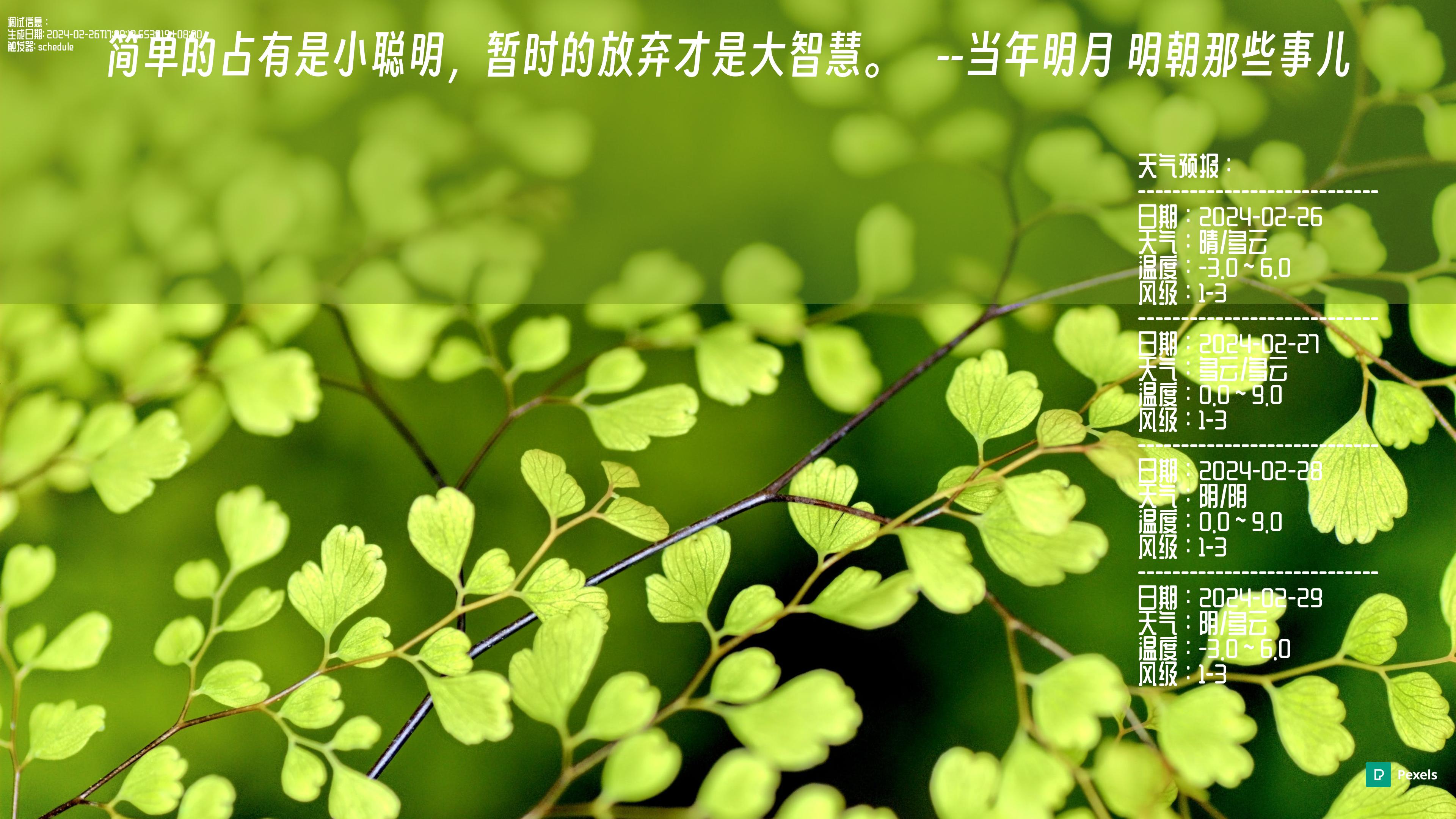 | Date / 日期 | Pexels ID | Quotes / 每日一言 | Image / 图片 | 触发器 |