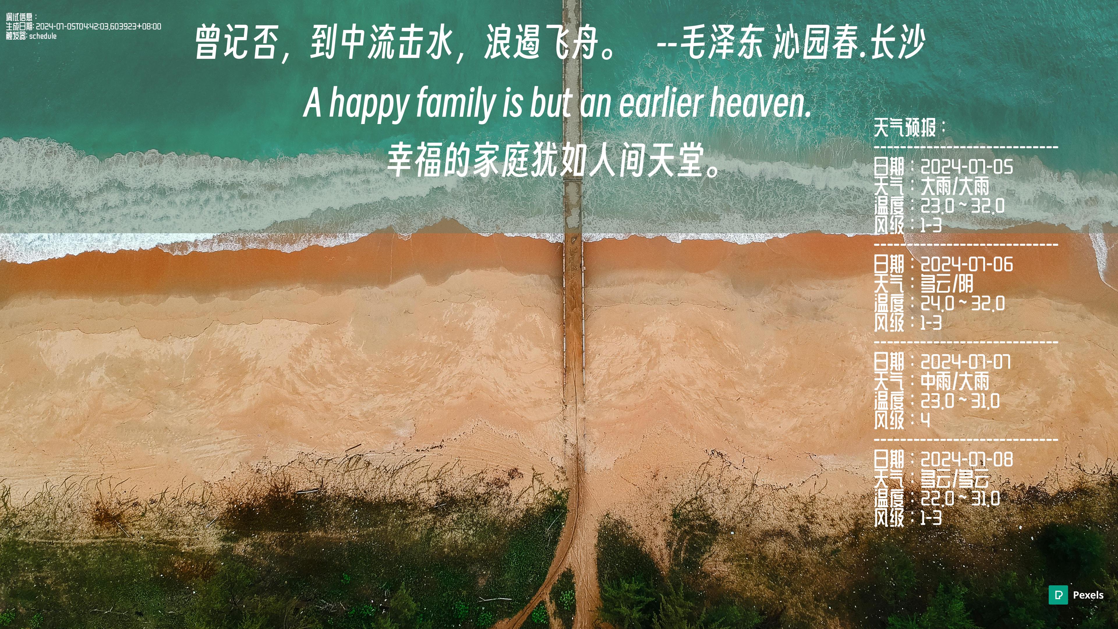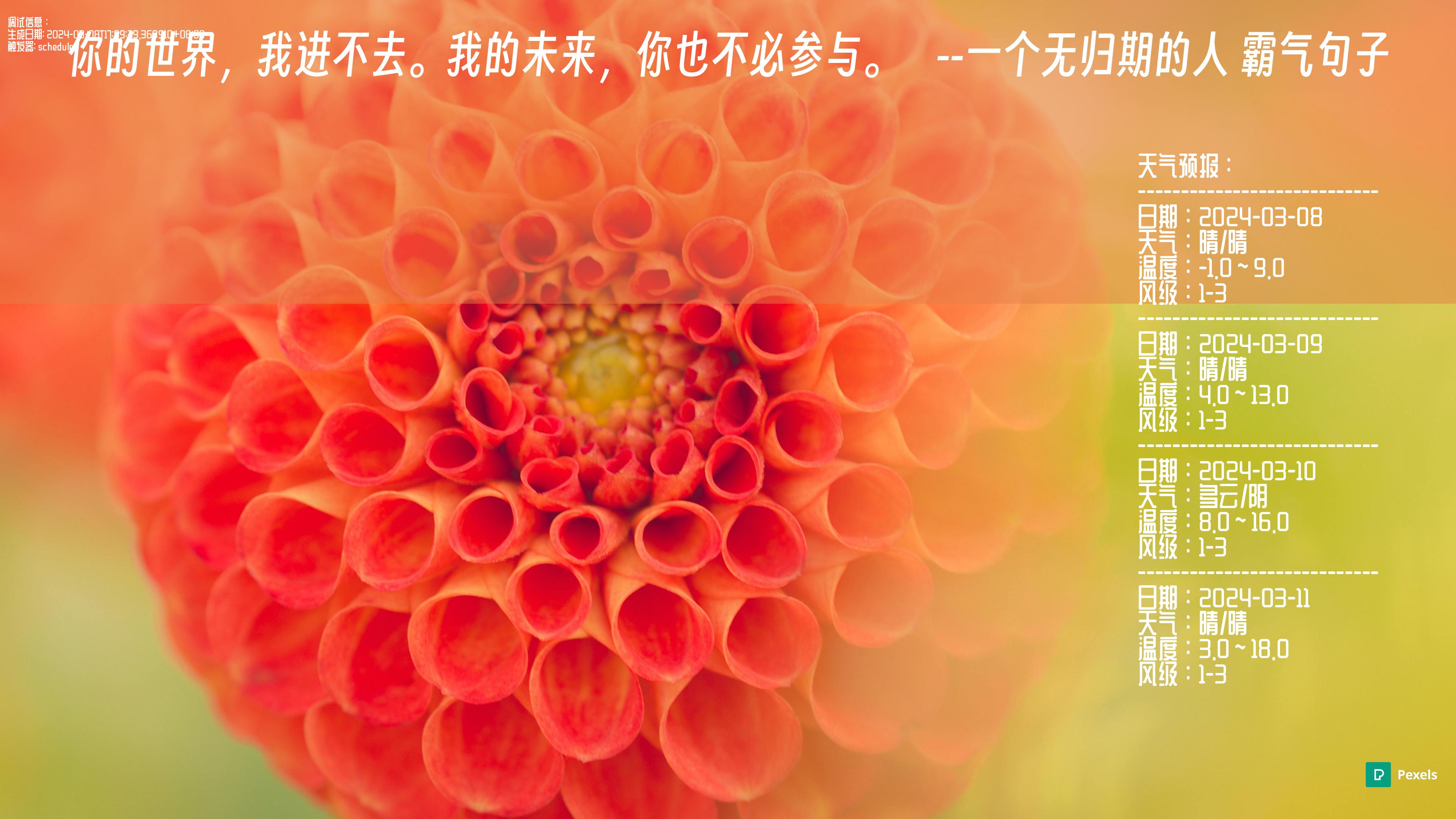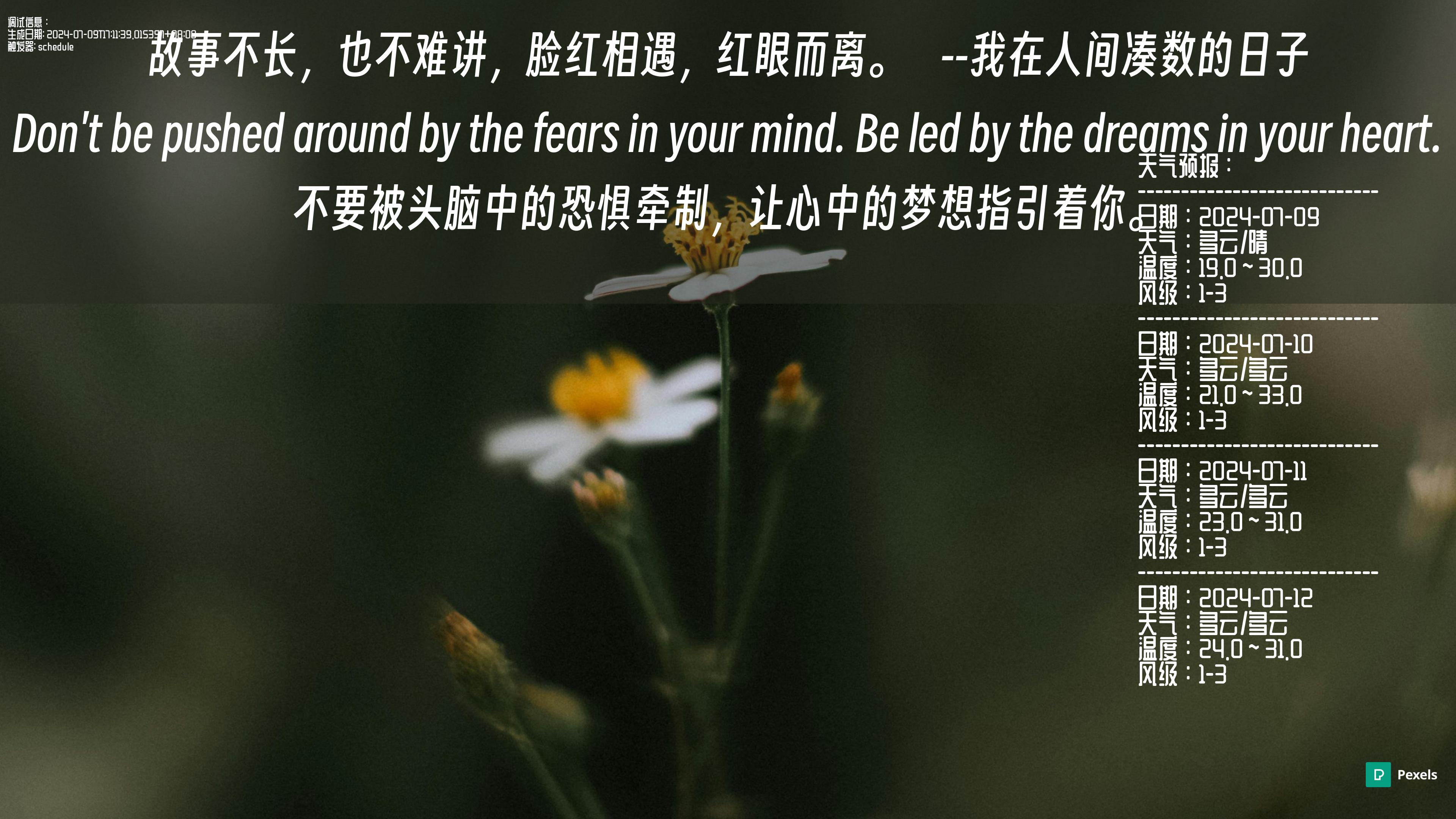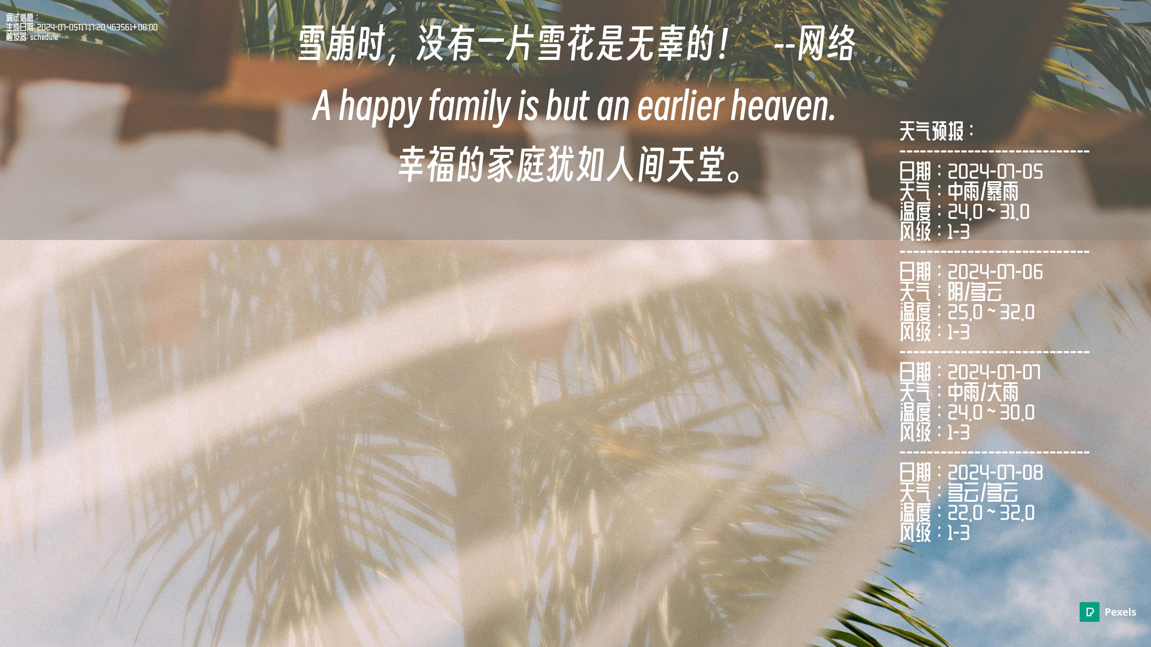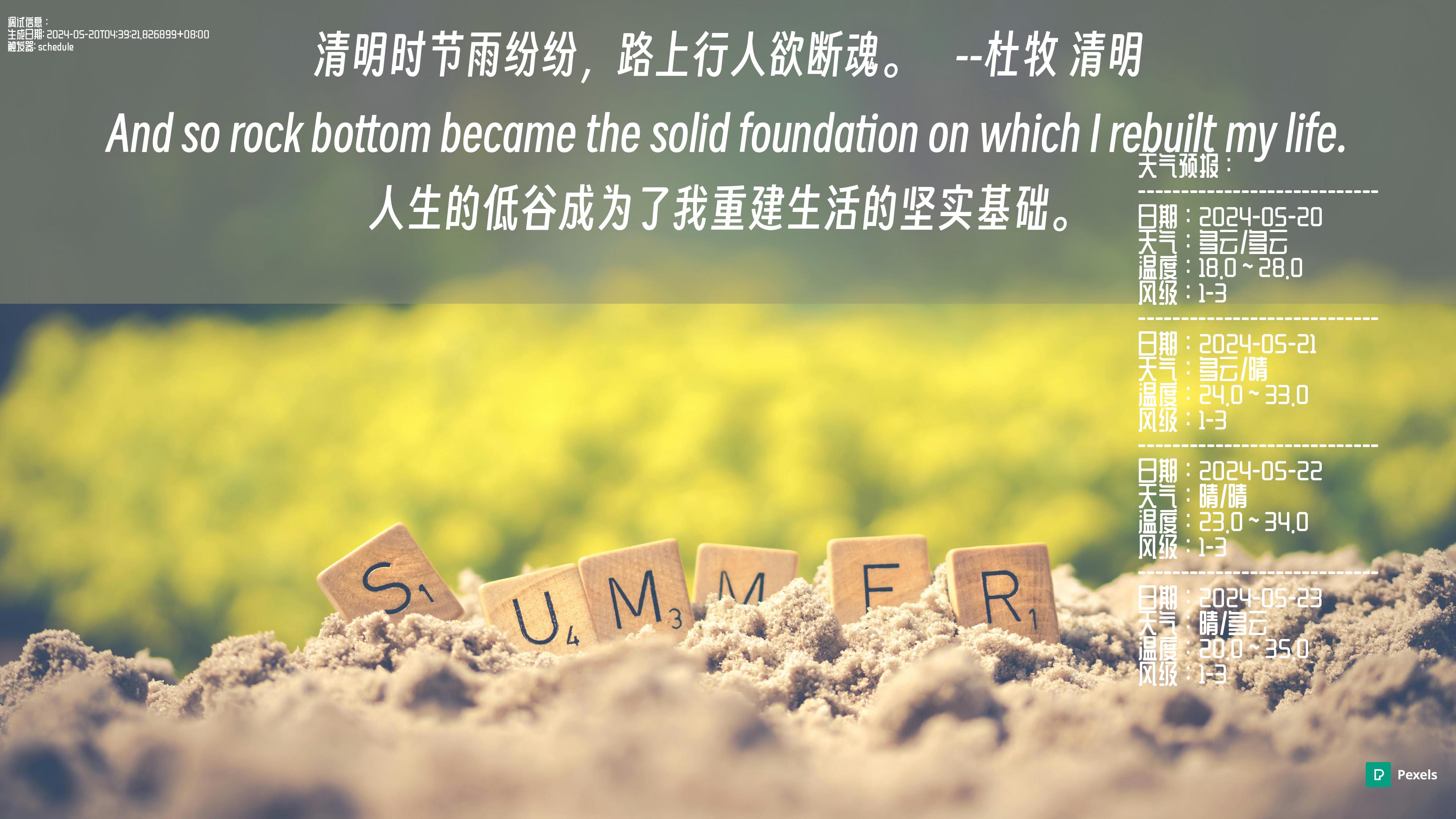 | Date / 日期 | Pexels ID | Quotes / 每日一言 | Image / 图片 | 触发器 |