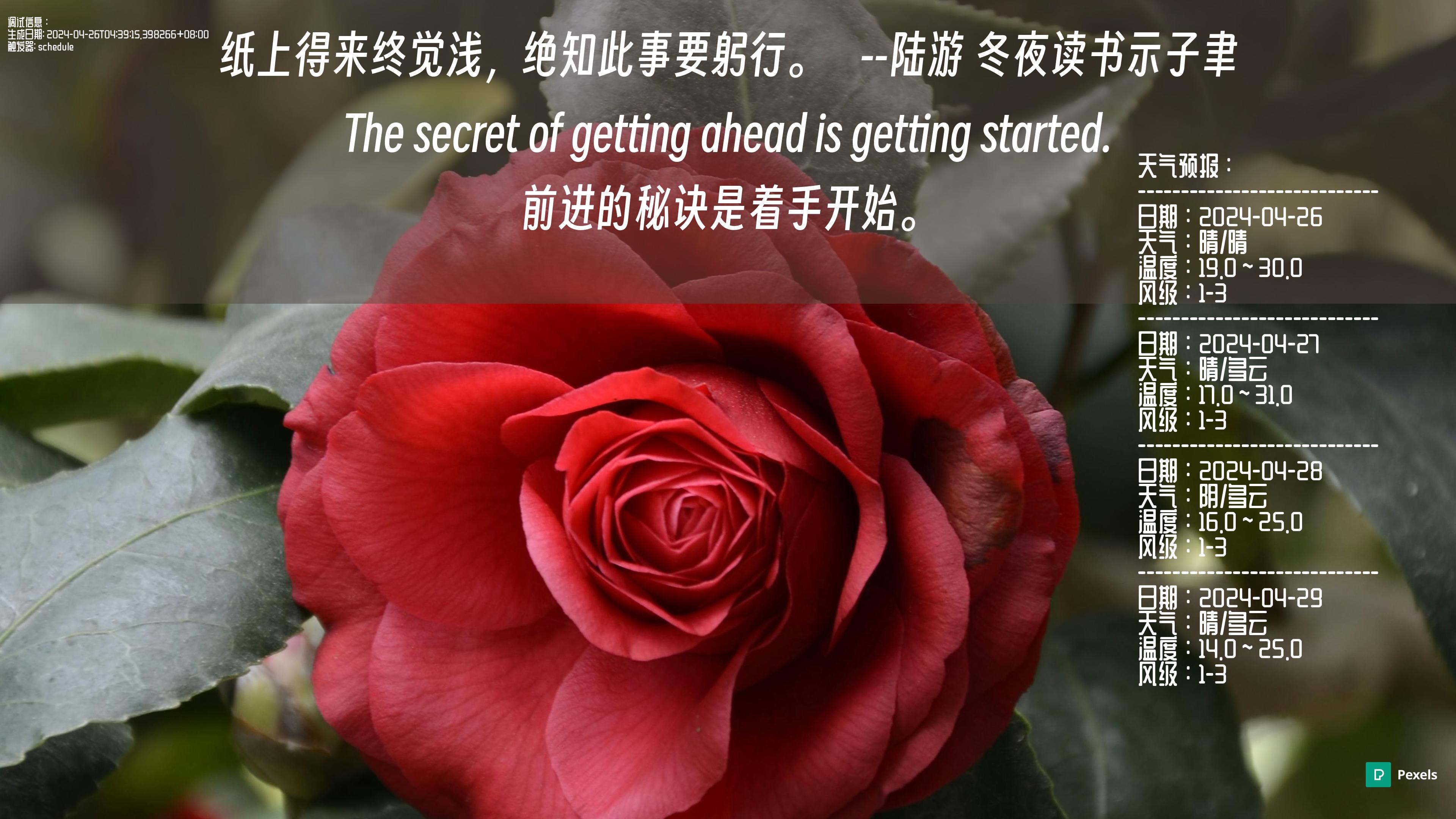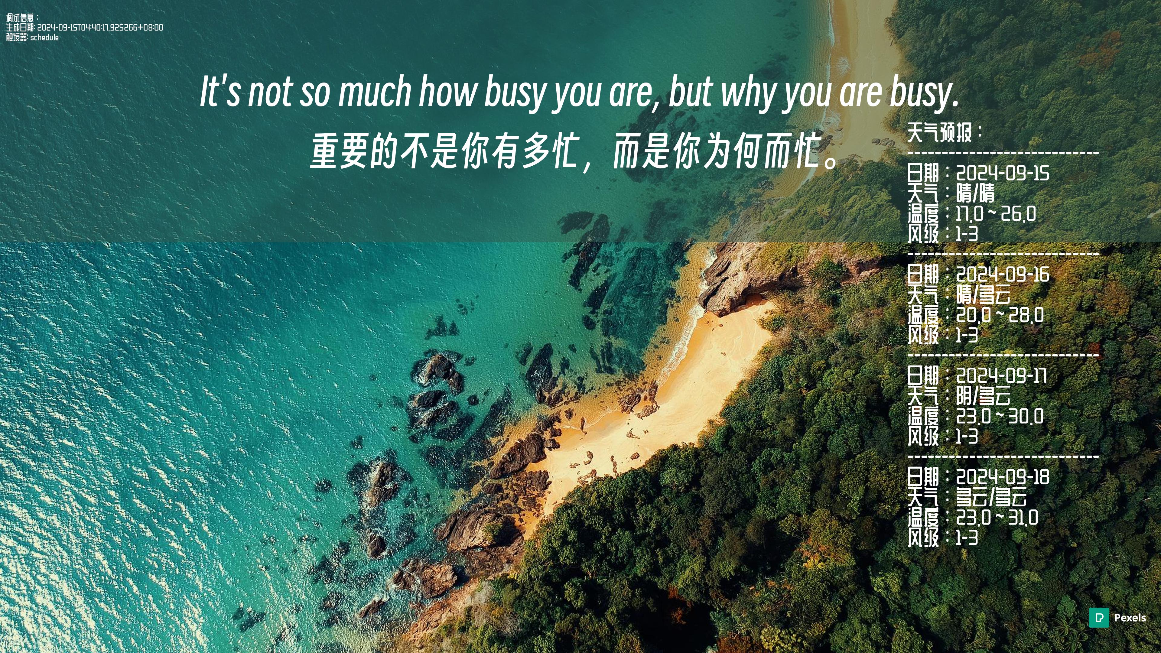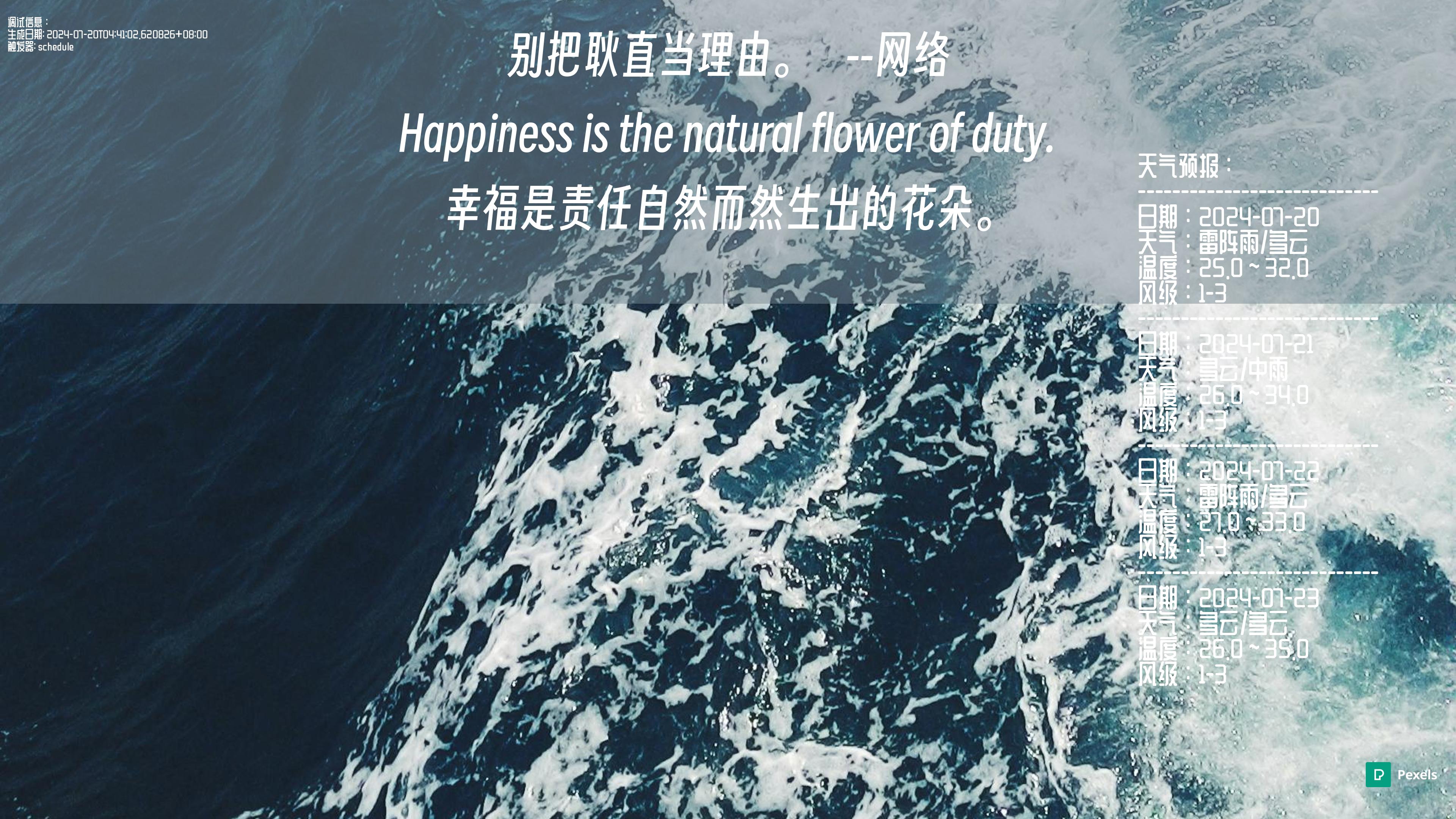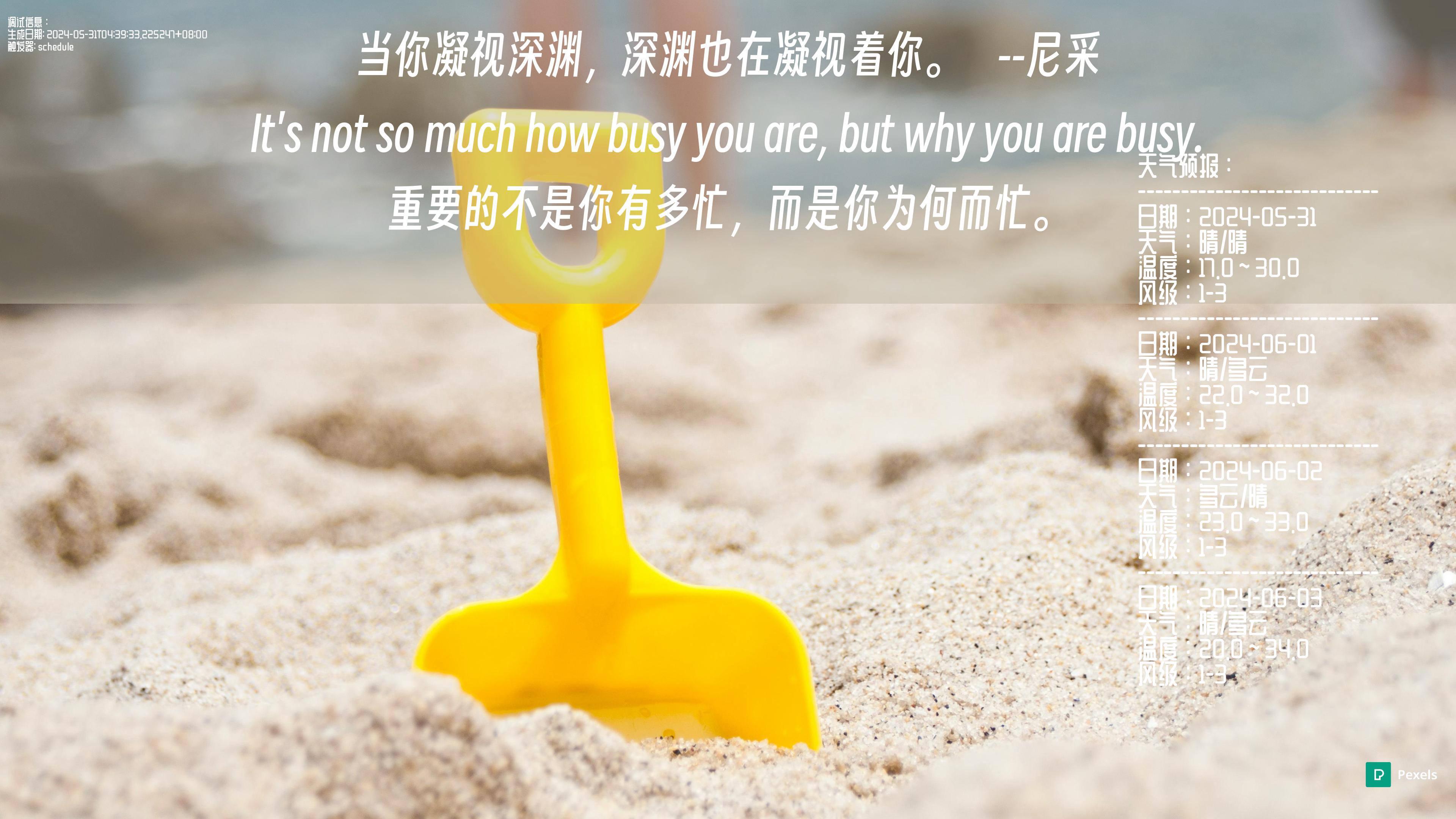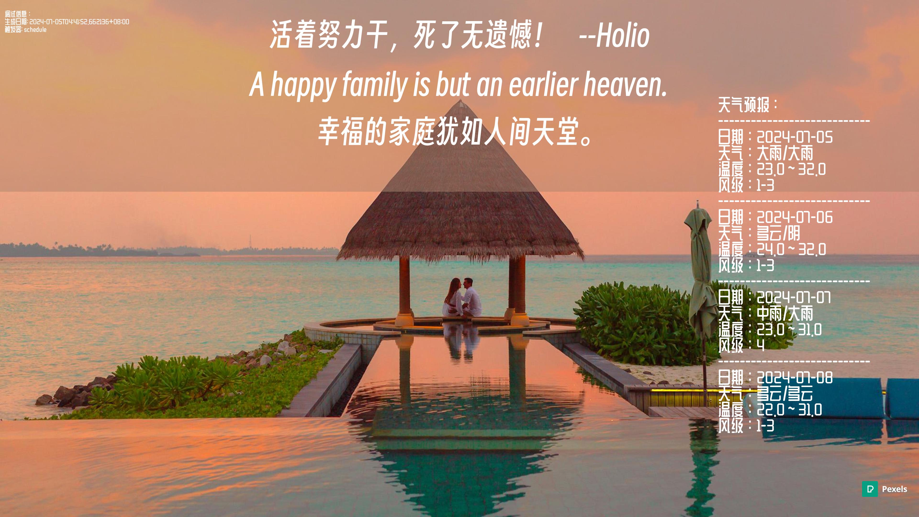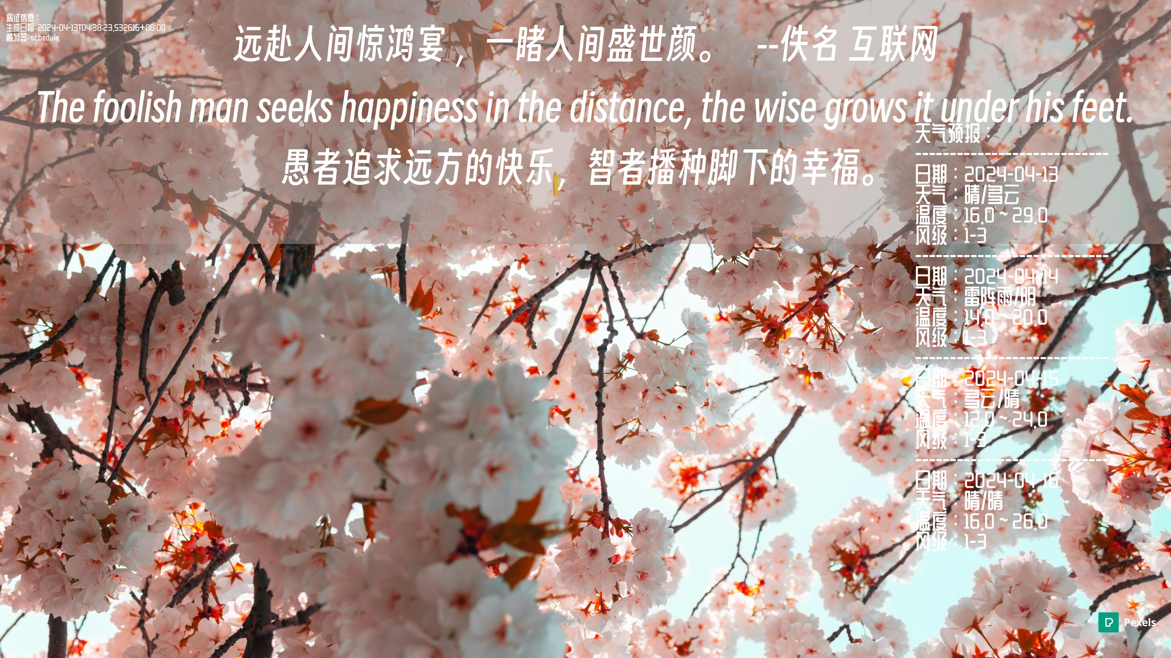 | Date / 日期 | Pexels ID | Quotes / 每日一言 | Image / 图片 | 触发器 |