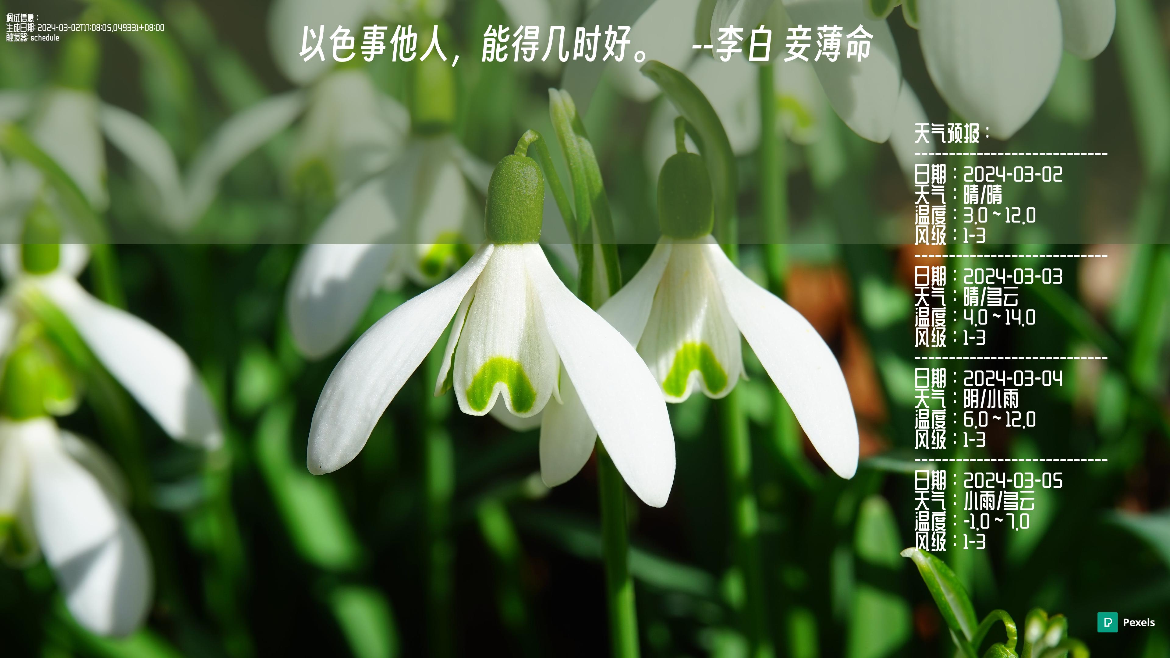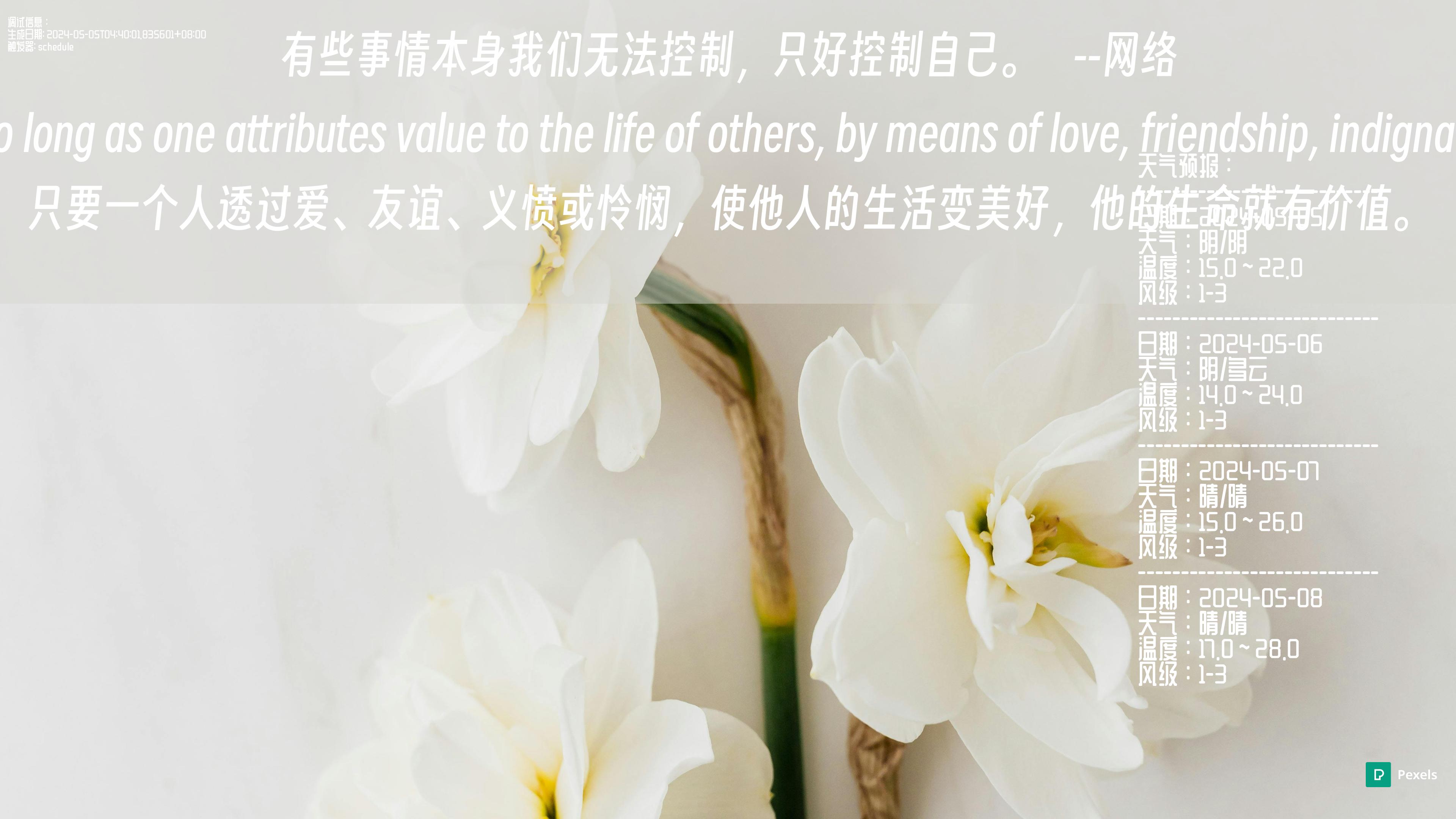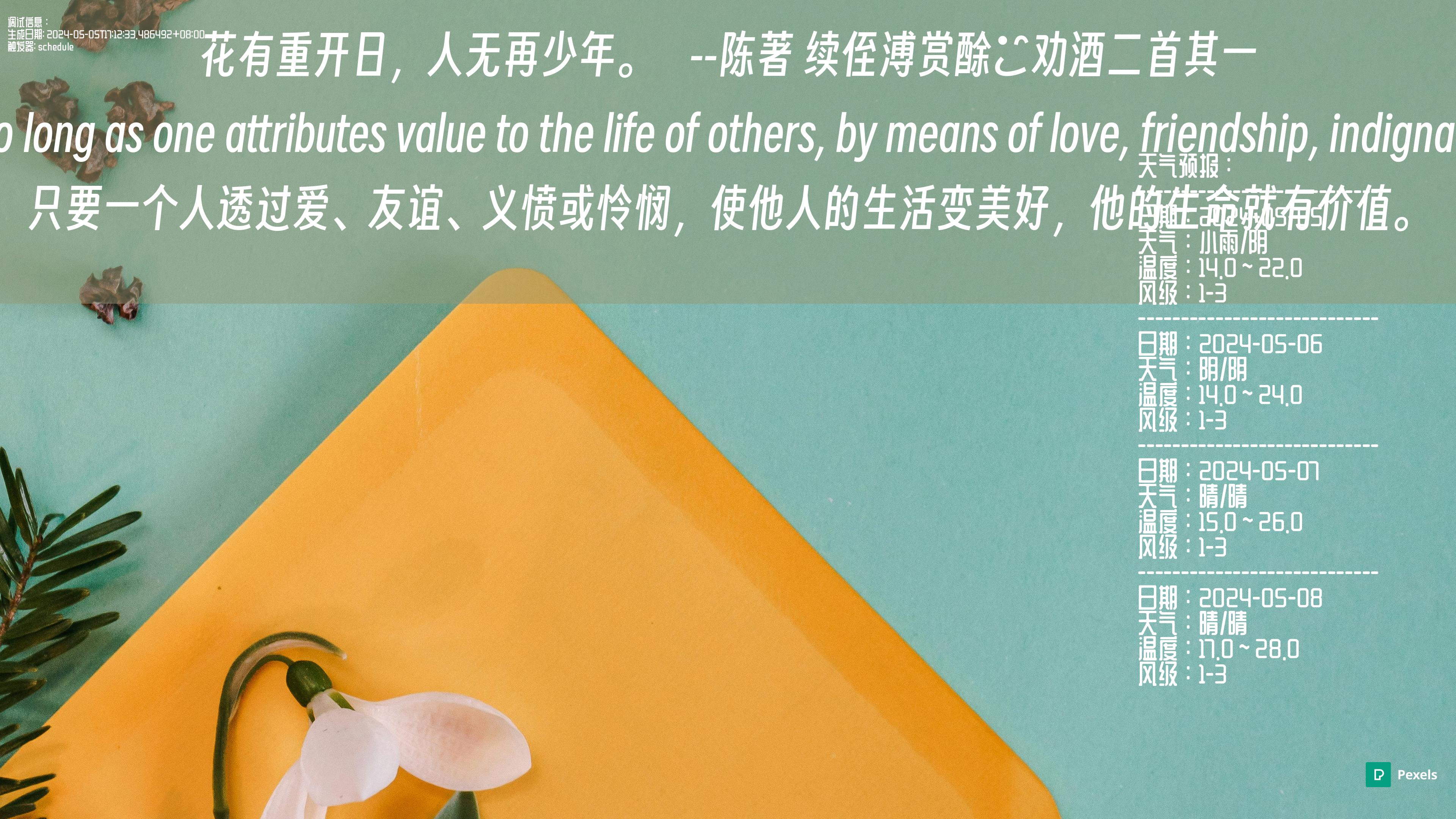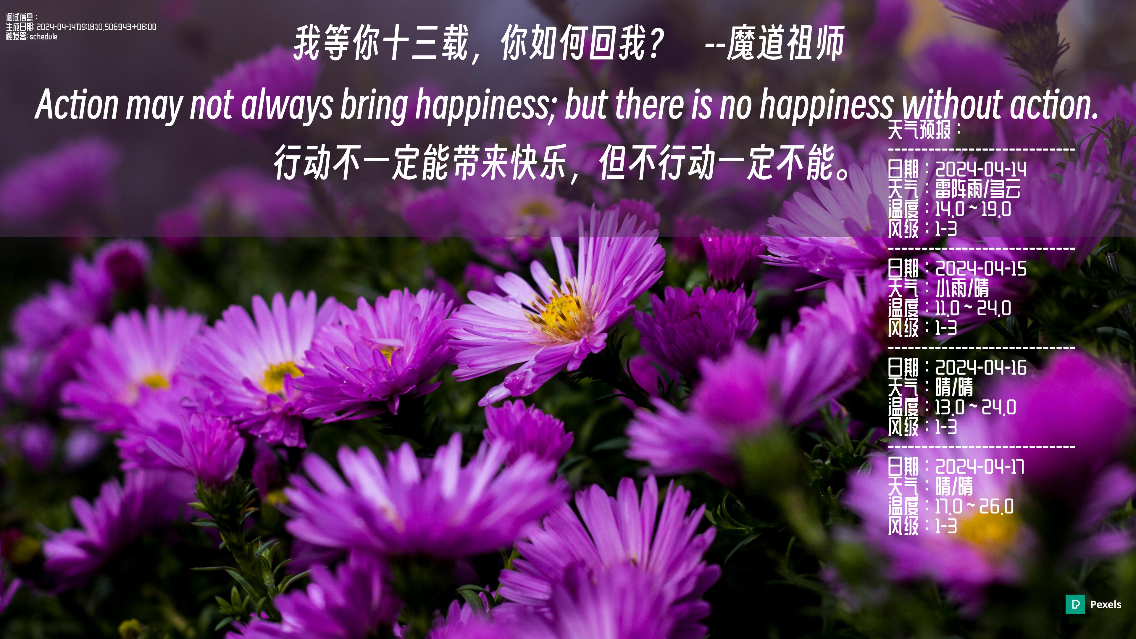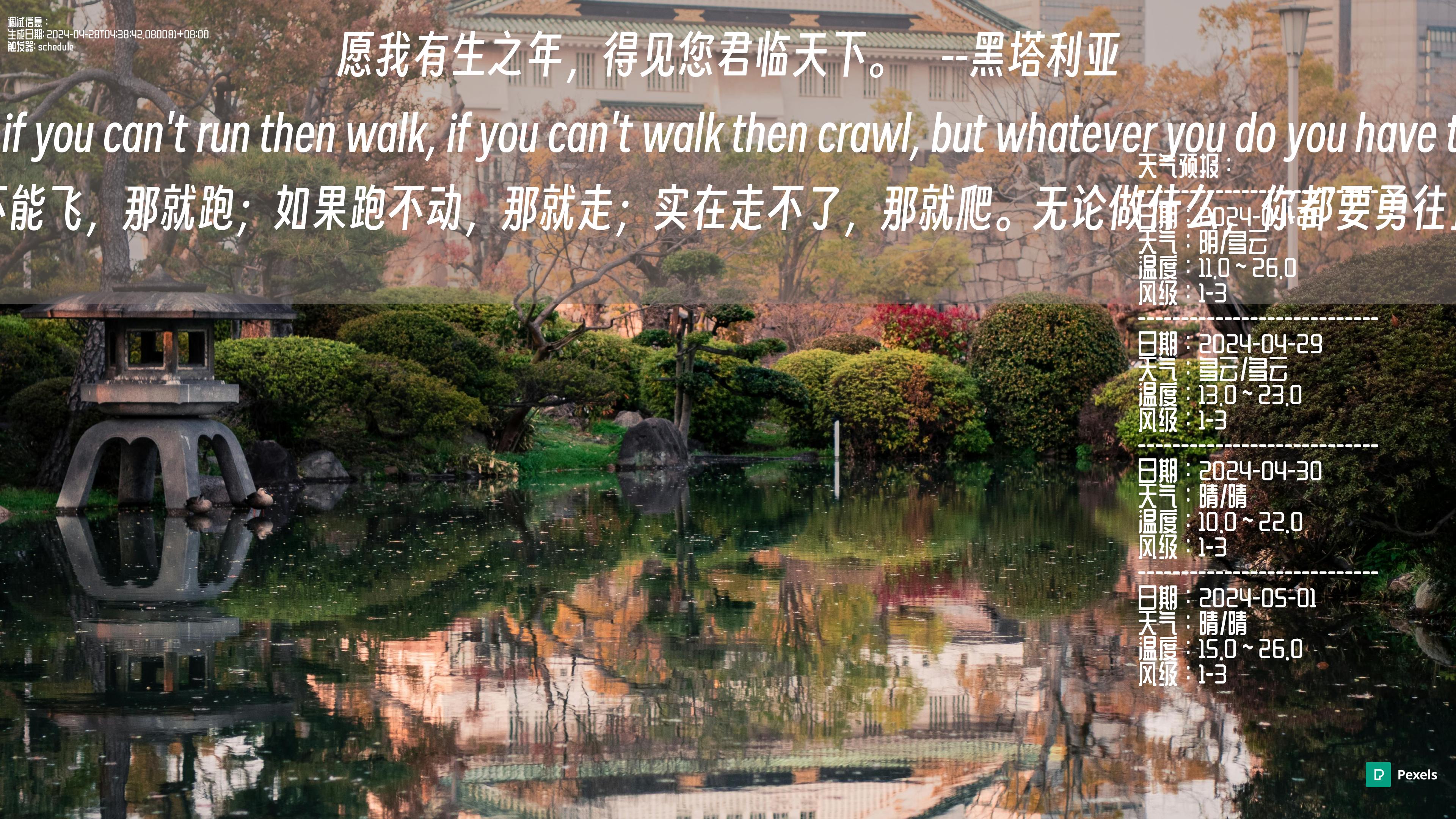 | Date / 日期 | Pexels ID | Quotes / 每日一言 | Image / 图片 | 触发器 |