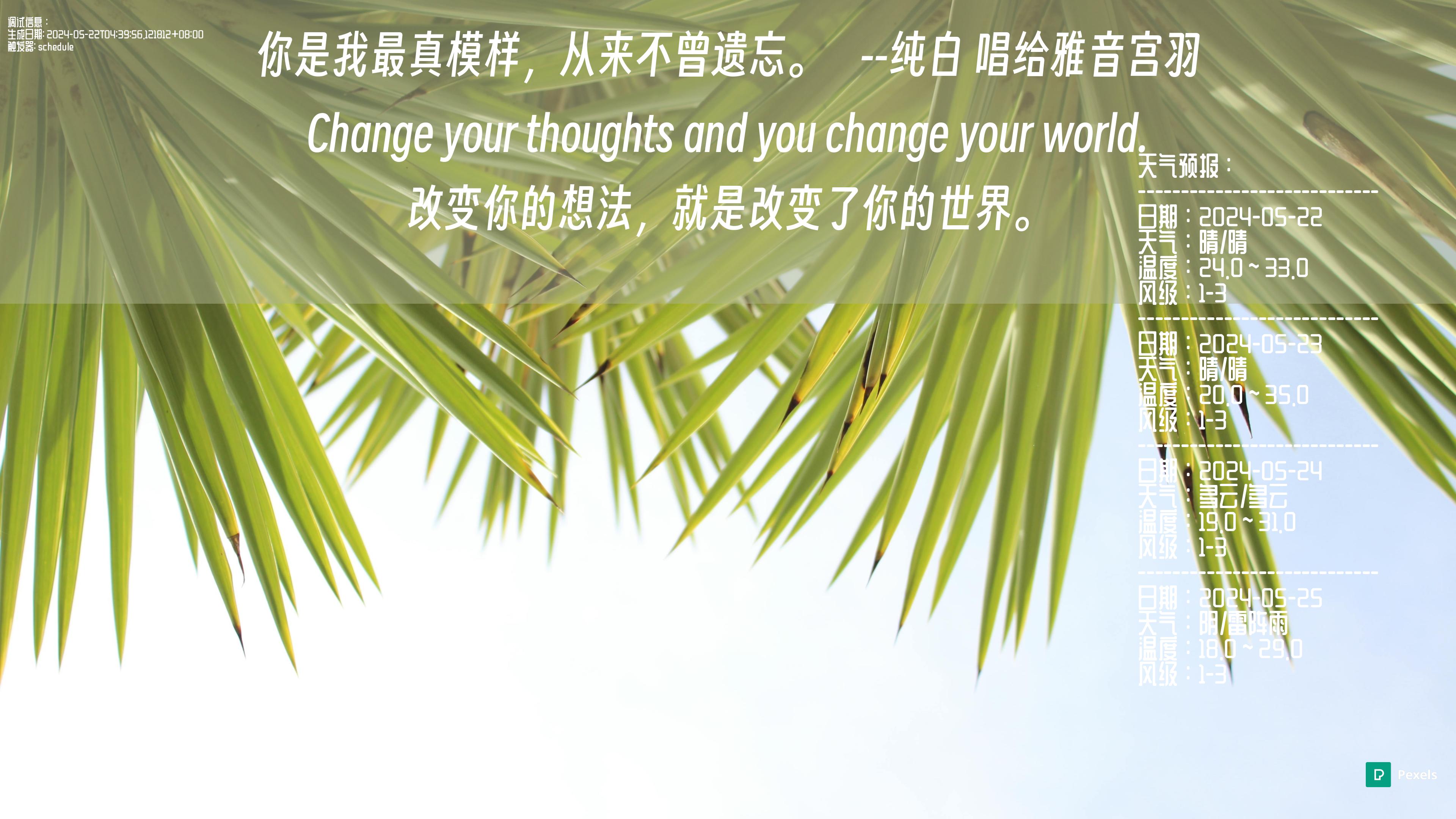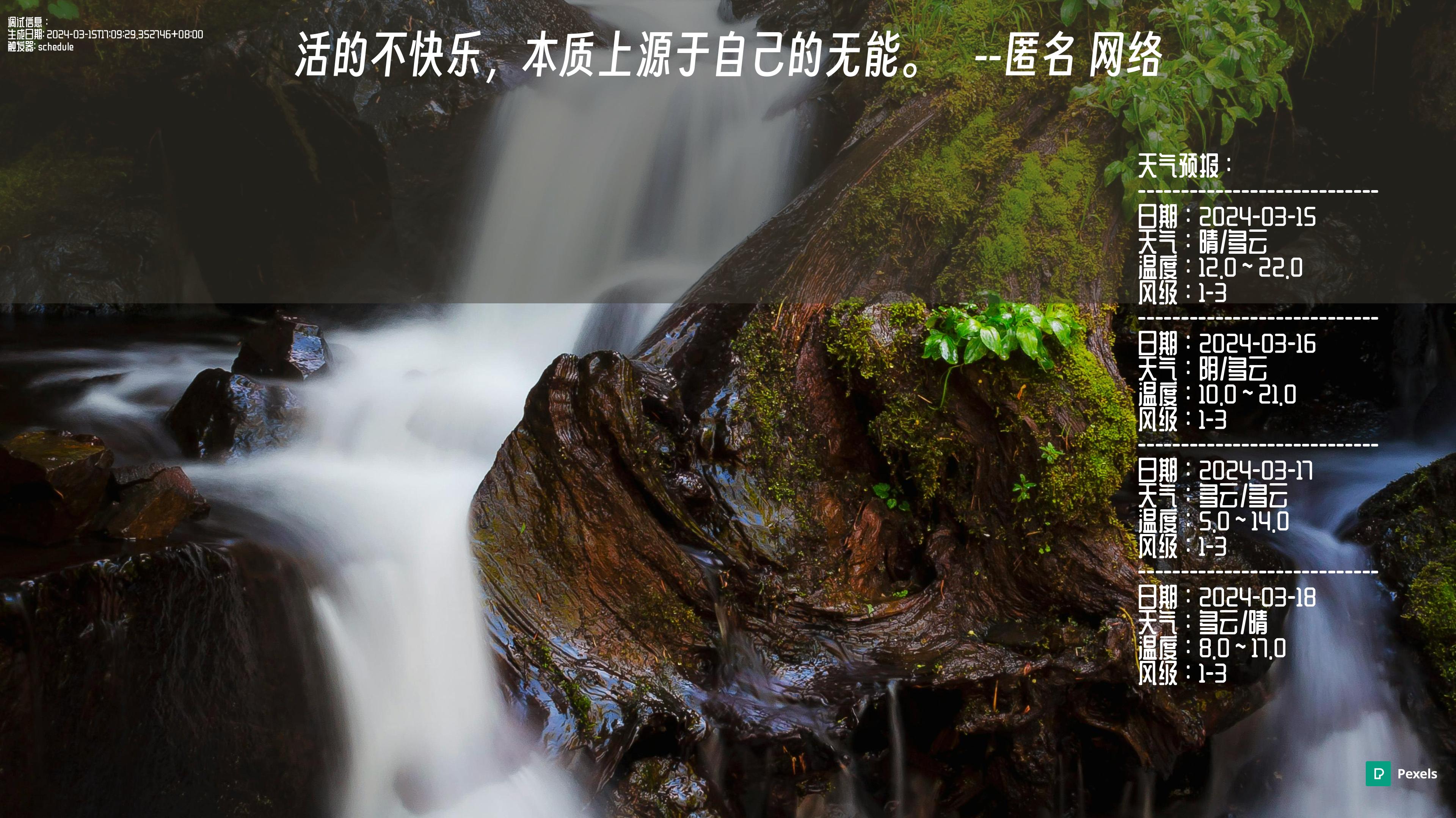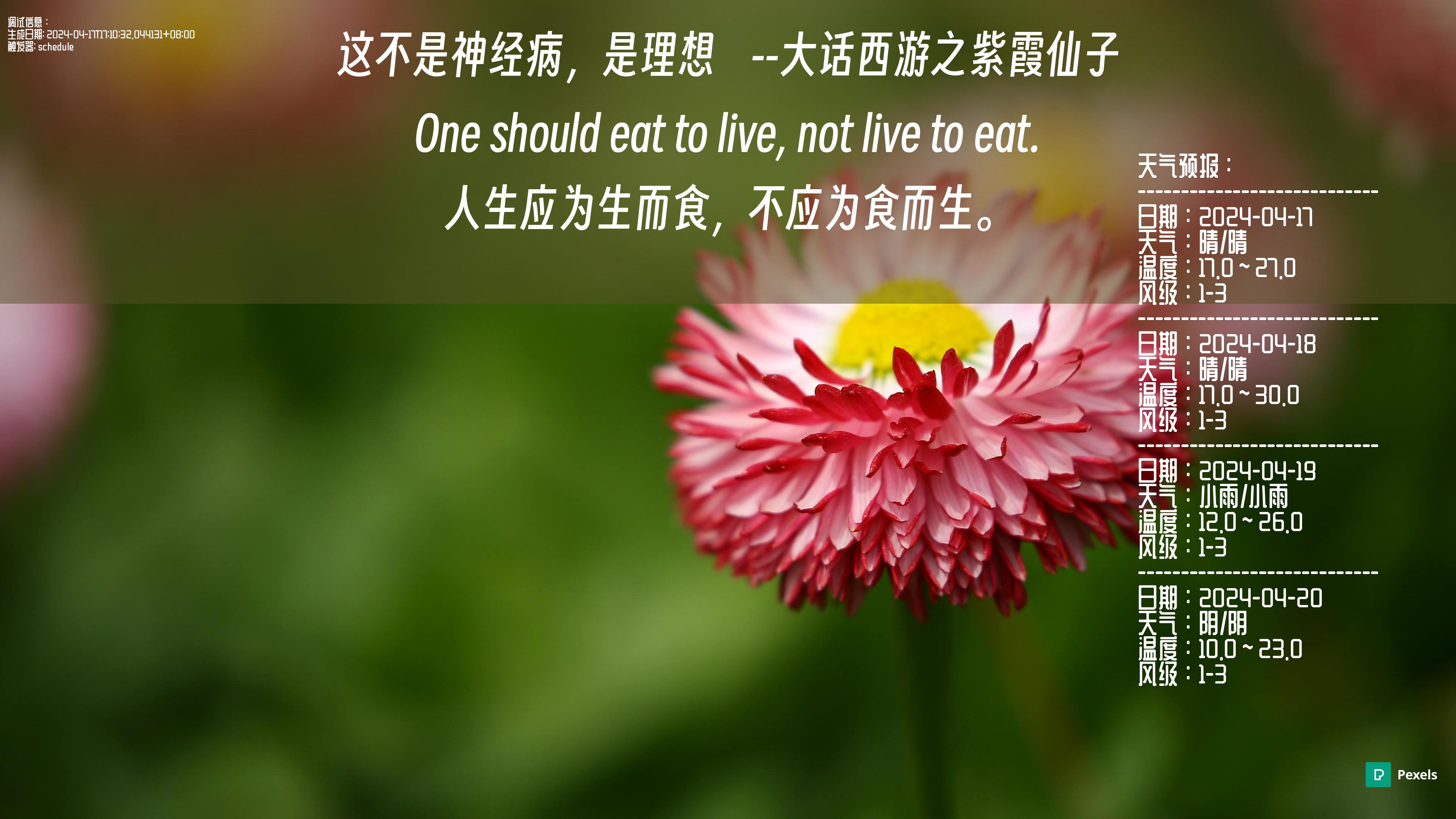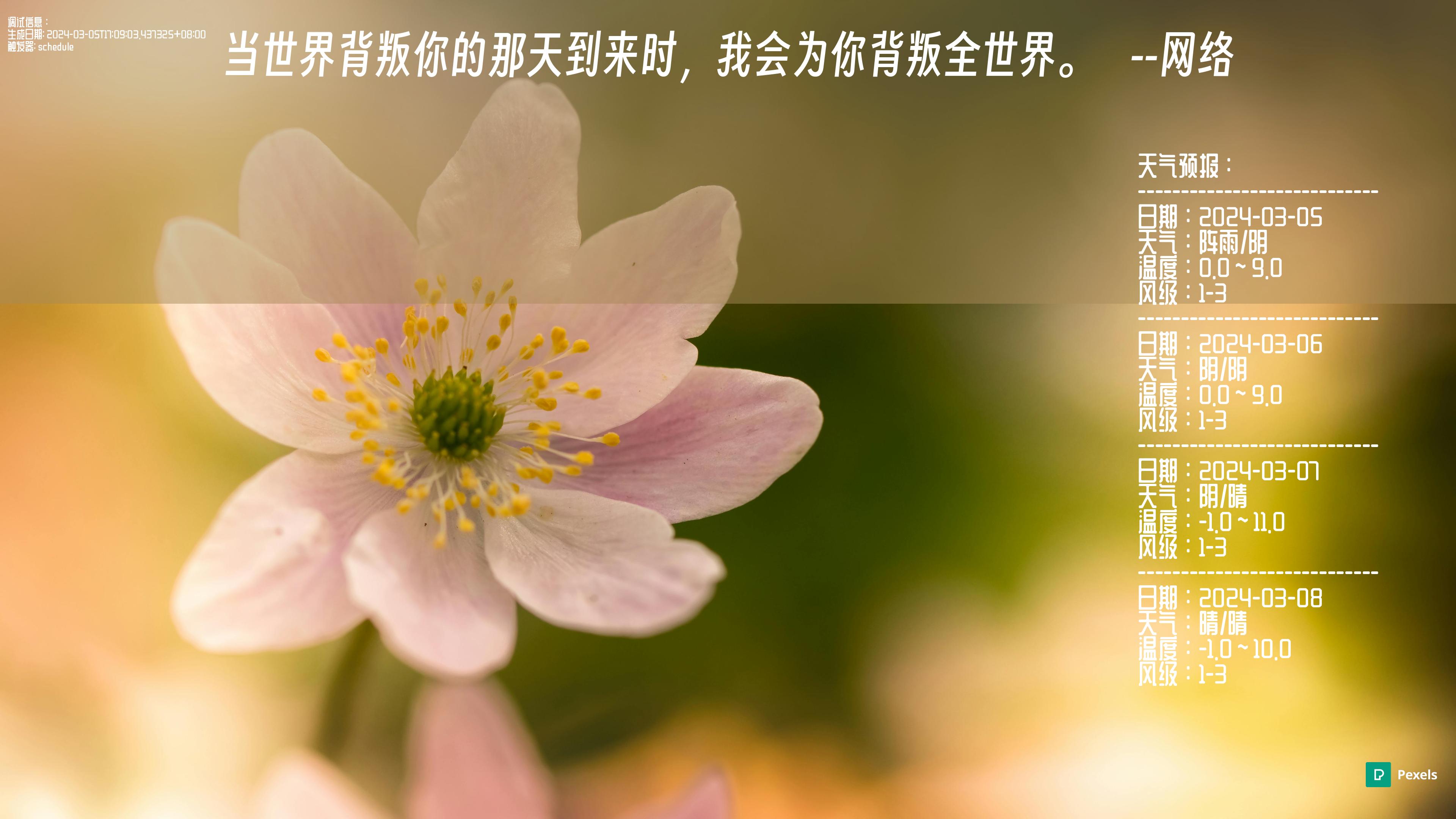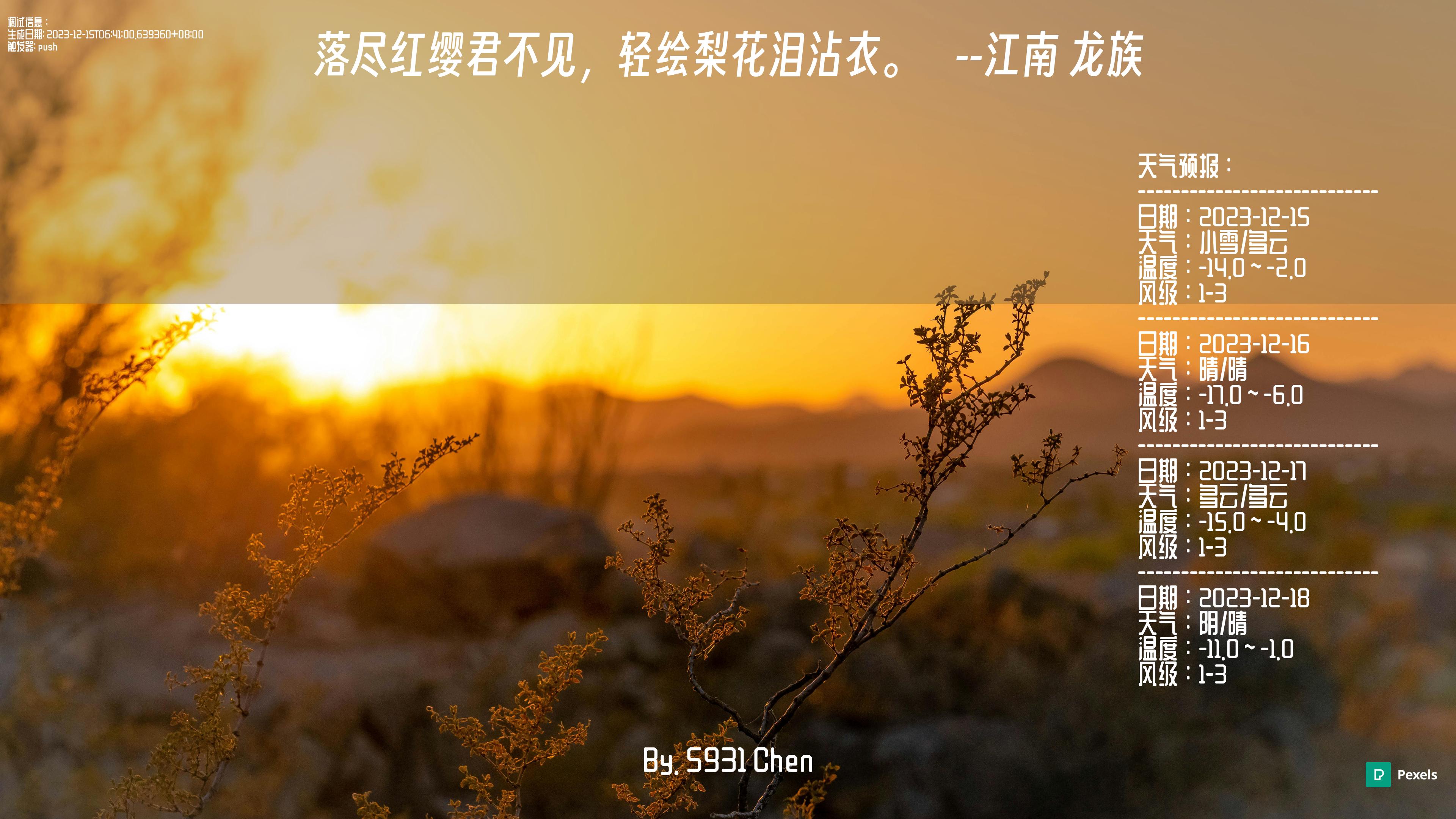 | Date / 日期 | Pexels ID | Quotes / 每日一言 | Image / 图片 | 触发器 |