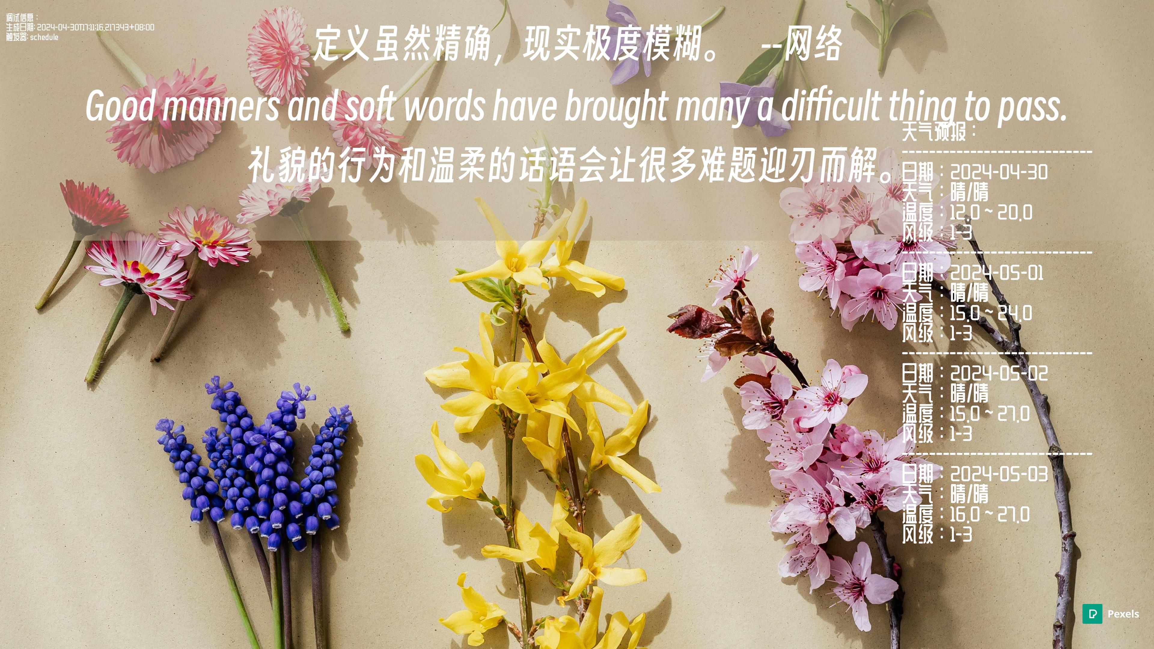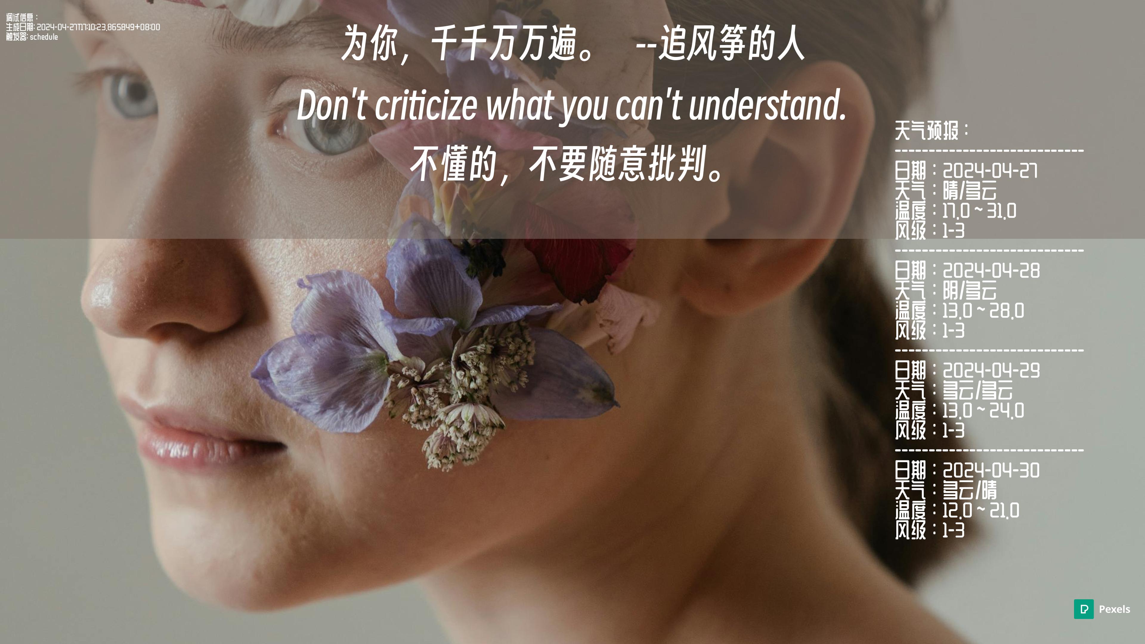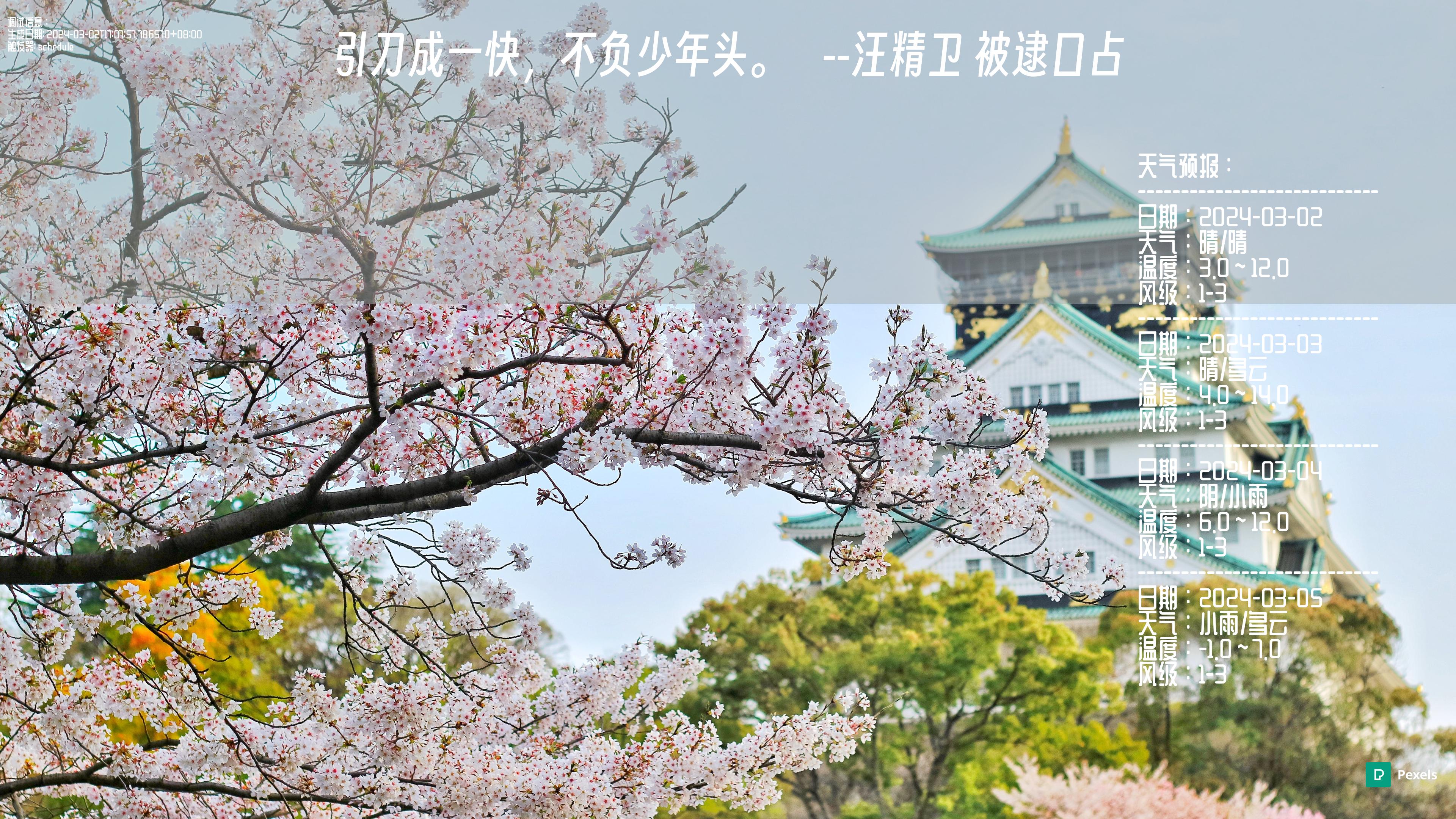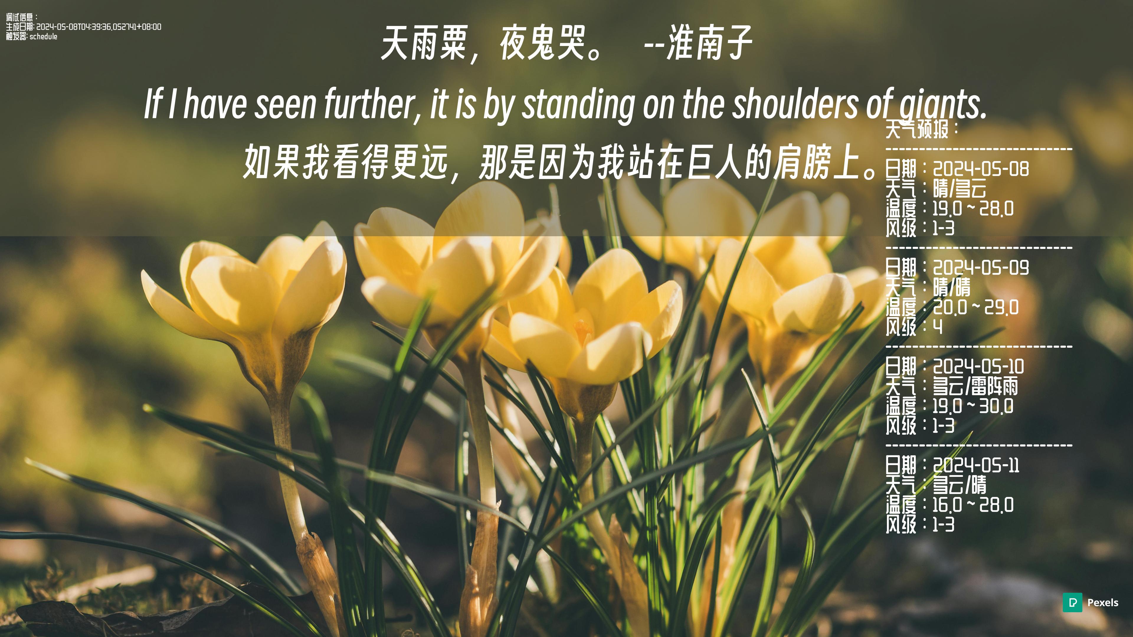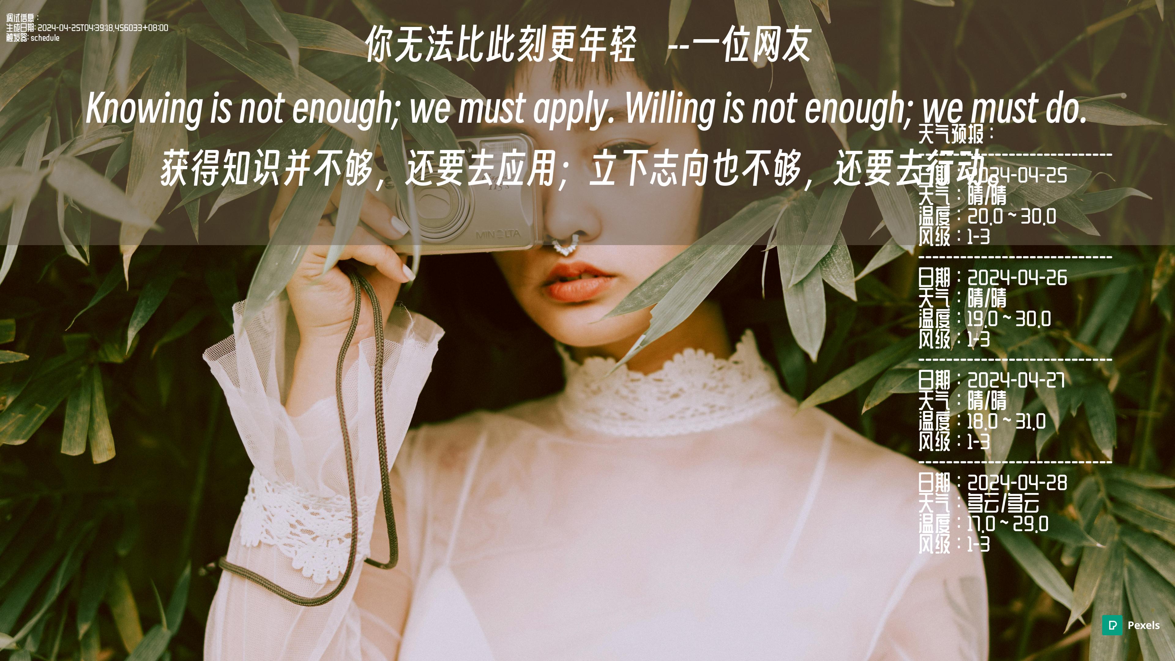 | Date / 日期 | Pexels ID | Quotes / 每日一言 | Image / 图片 | 触发器 |