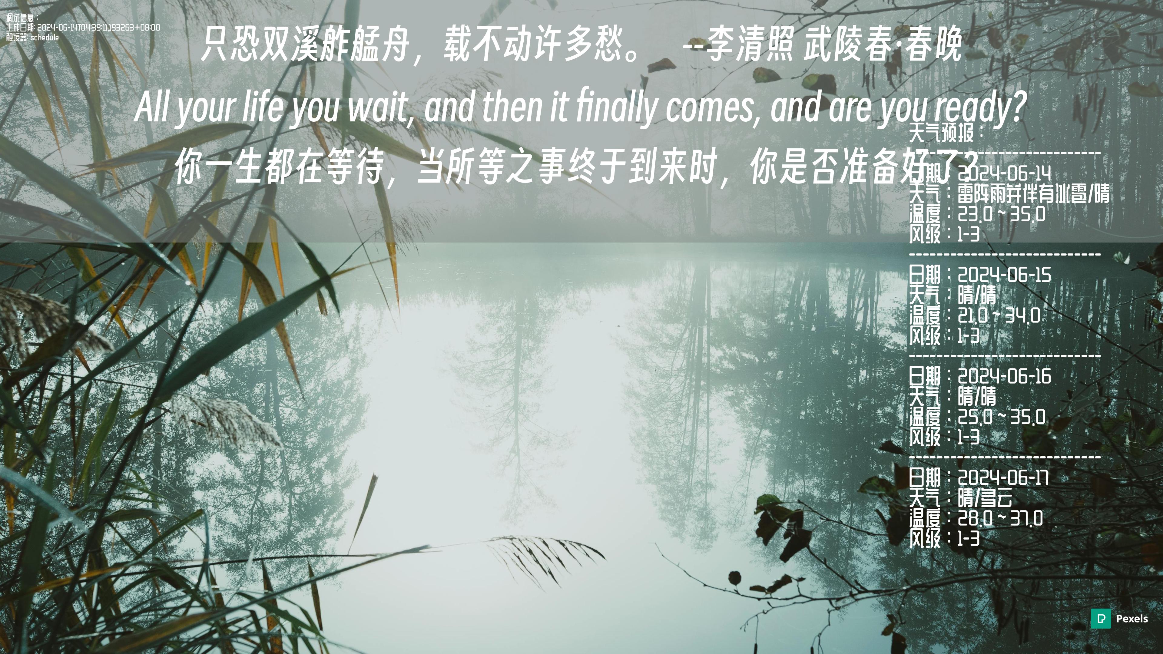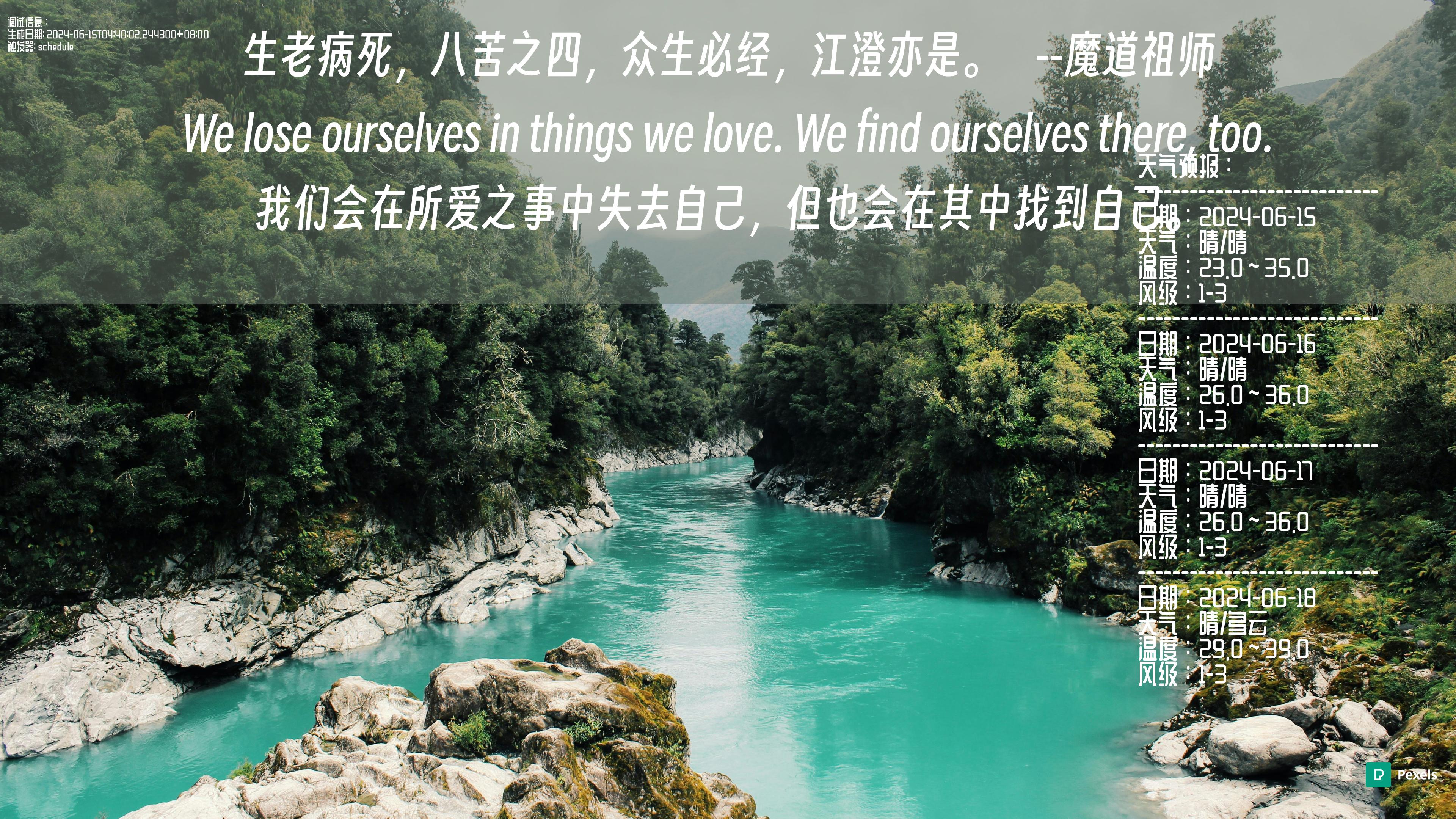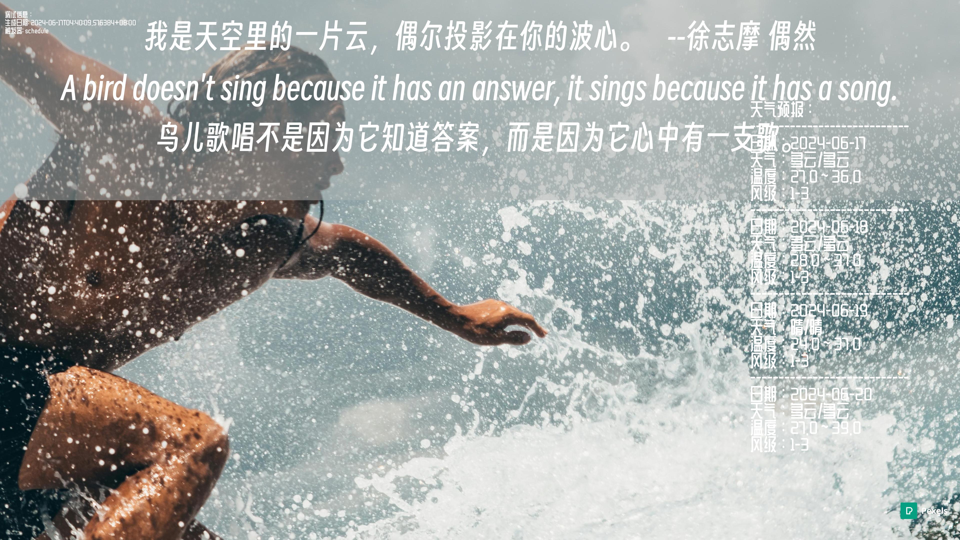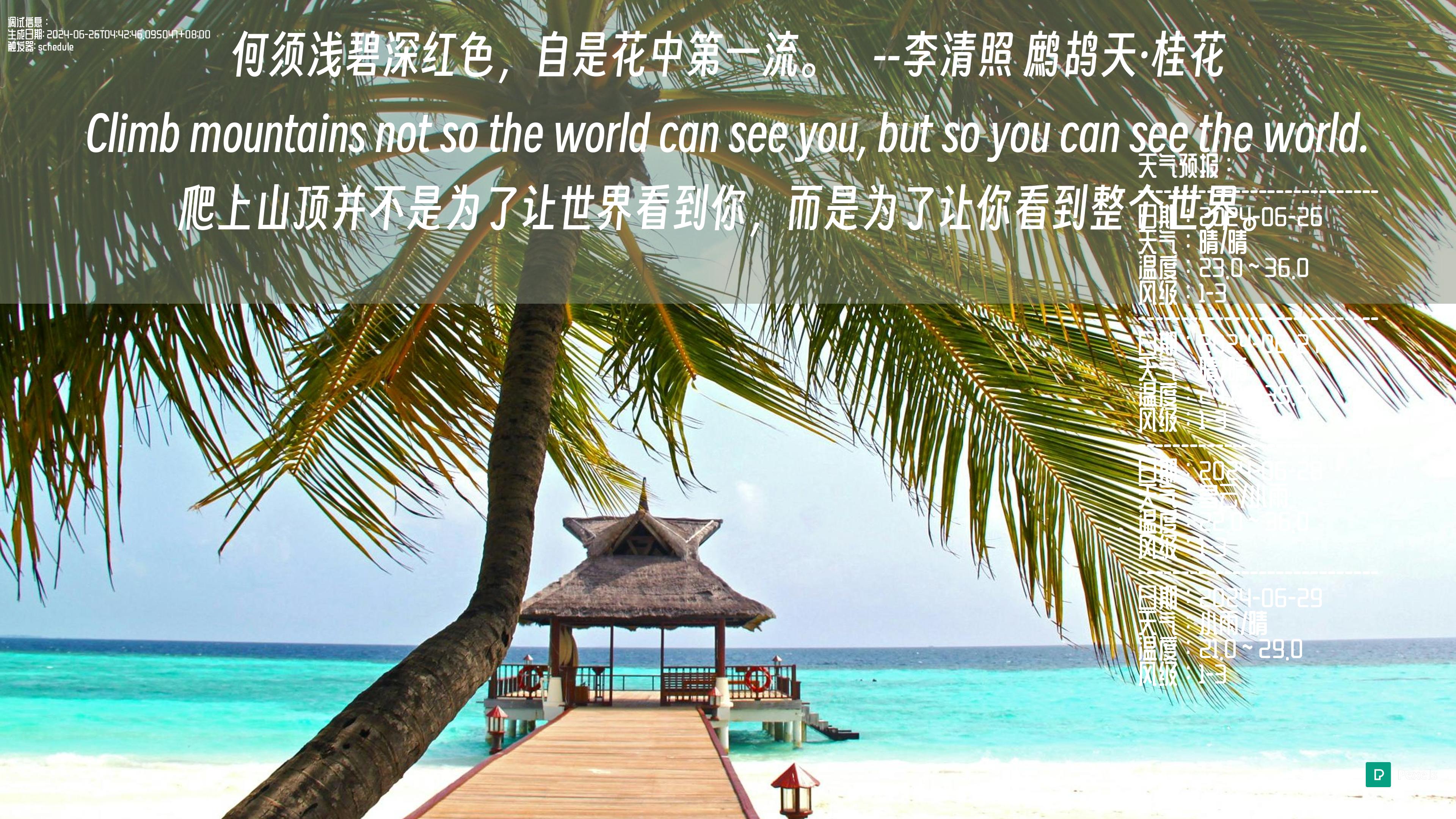 | 2023-06-25 | 957002 | 君问归期未有期,巴山夜雨涨秋池。 | 图片链接 | schedule |