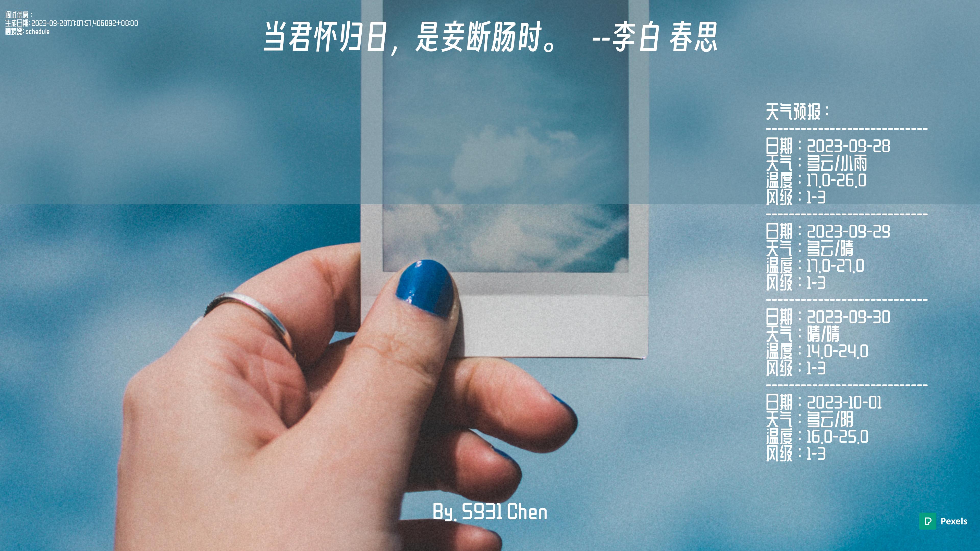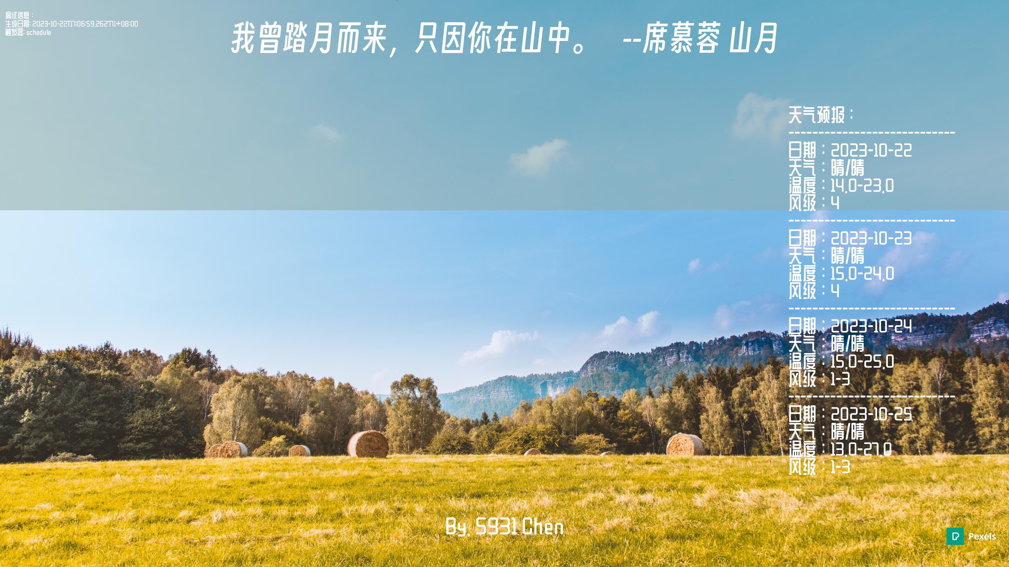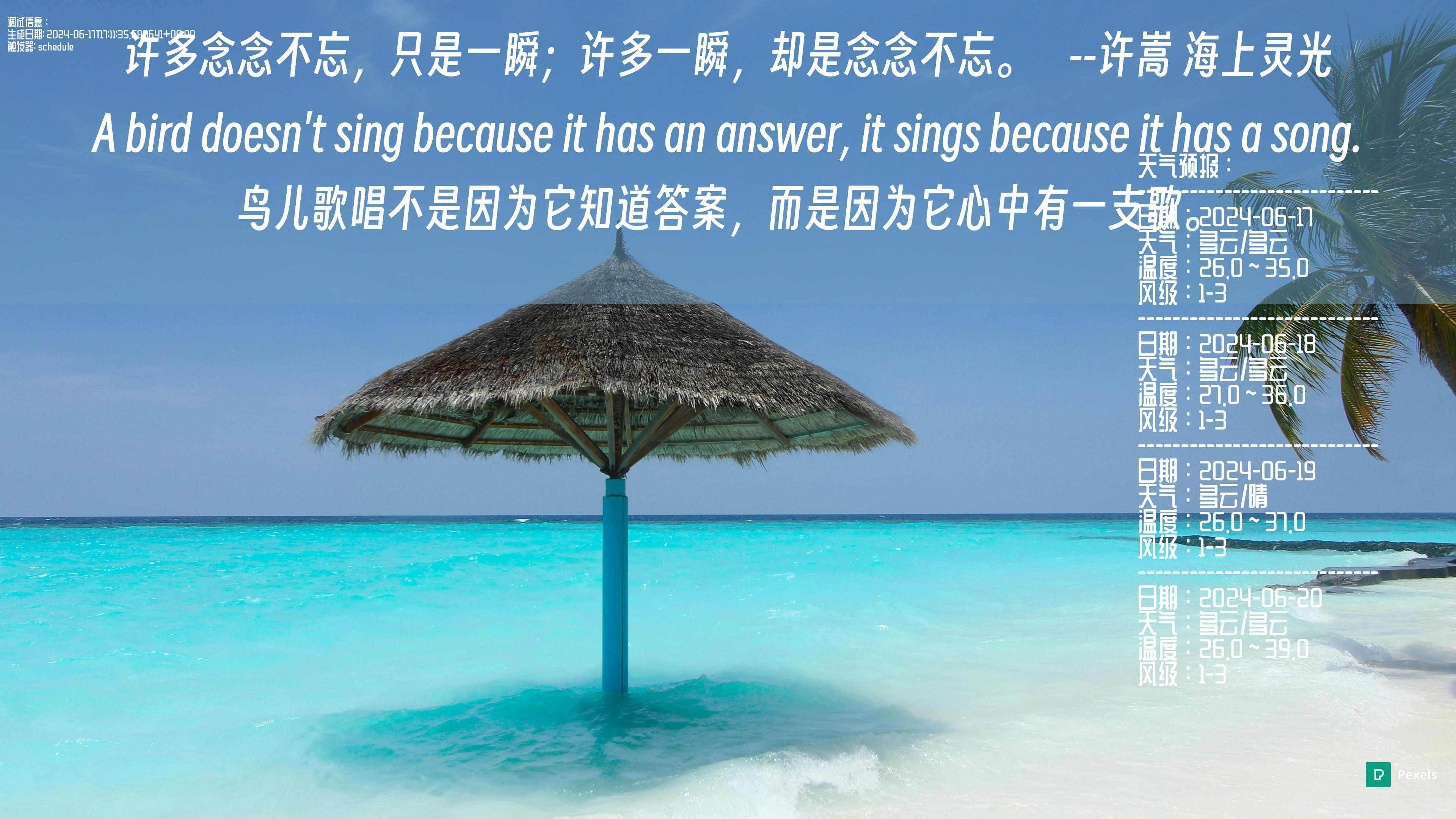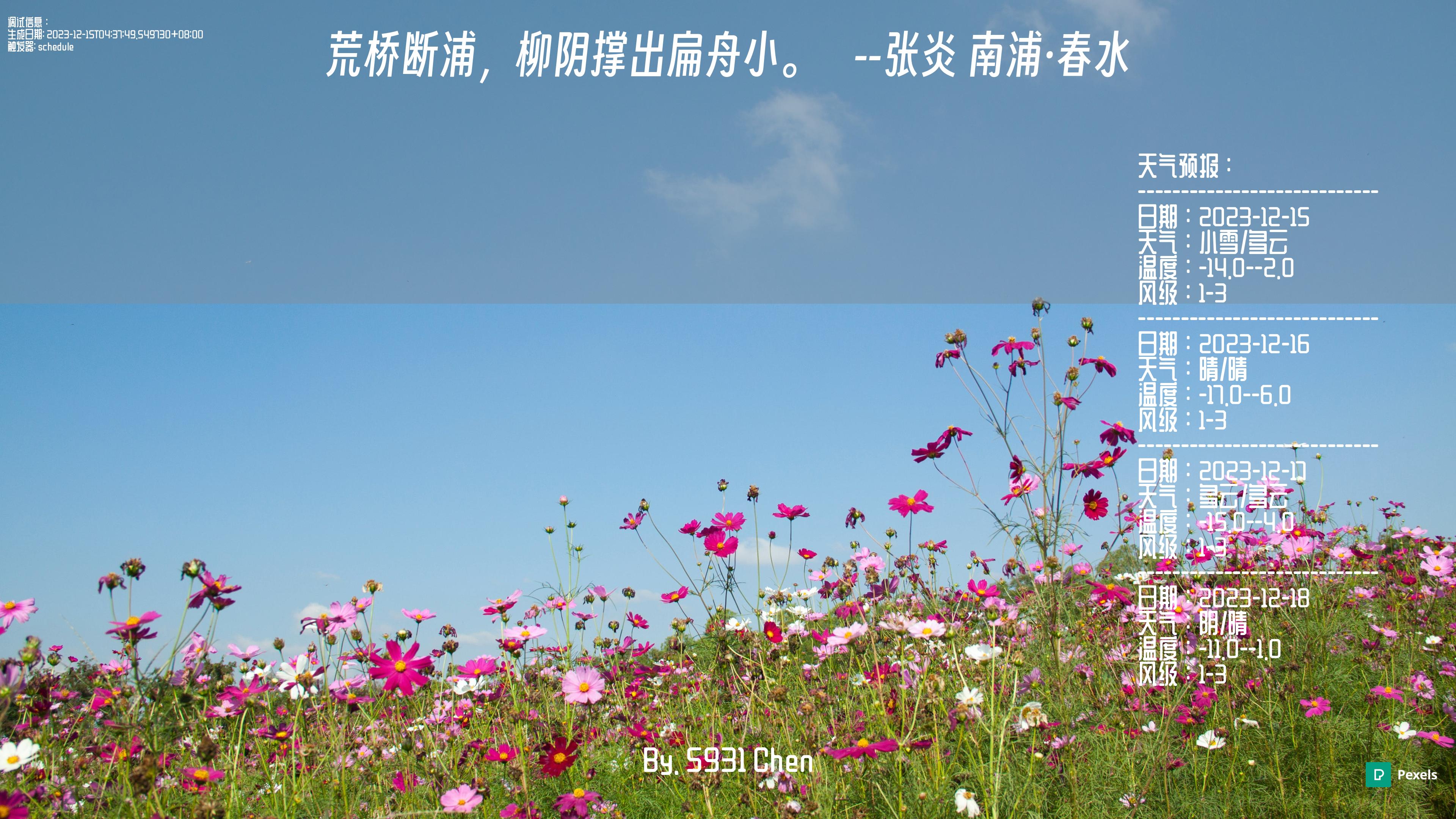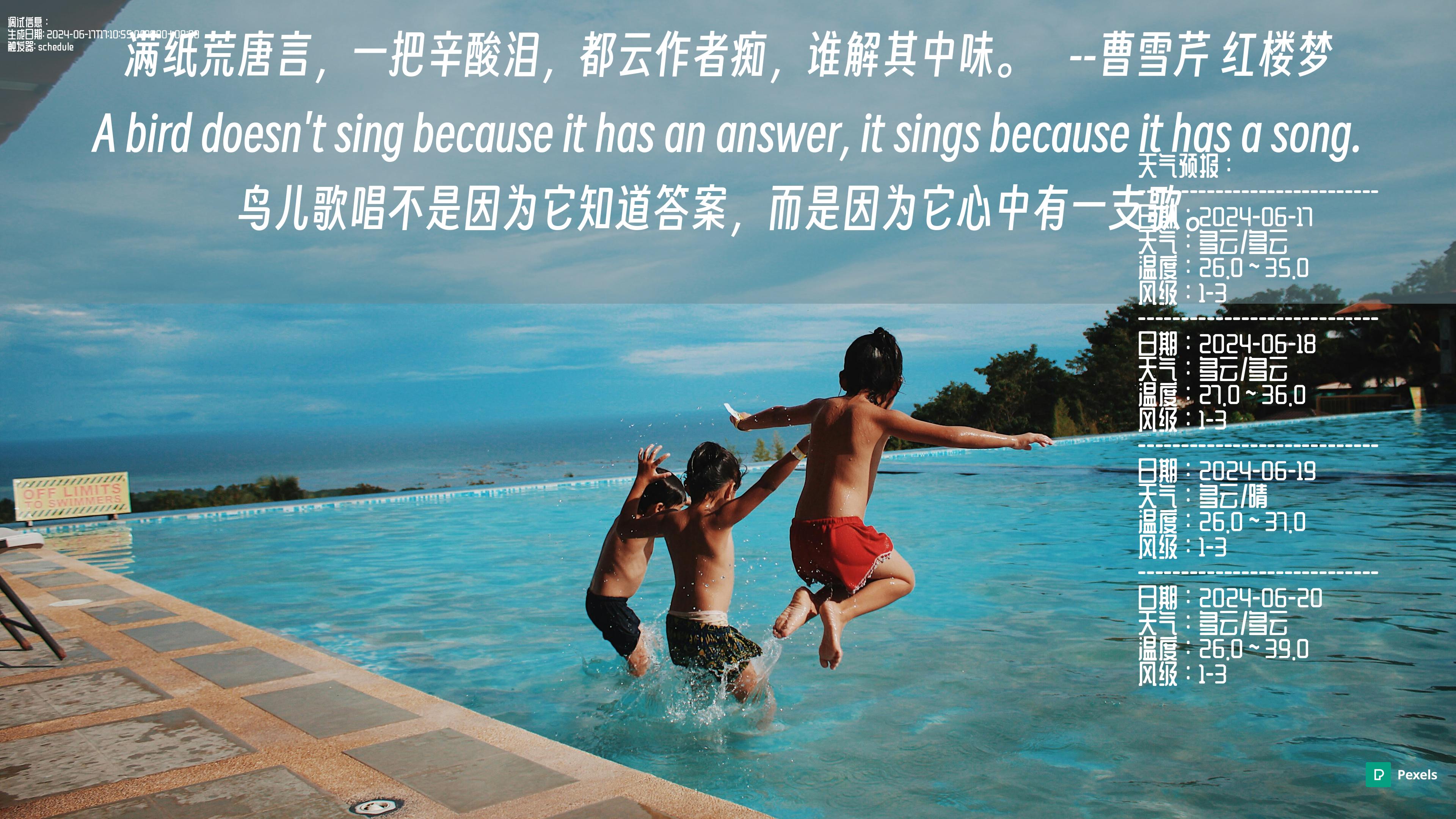 | 2023-06-25 | 957002 | 君问归期未有期,巴山夜雨涨秋池。 | 图片链接 | schedule |