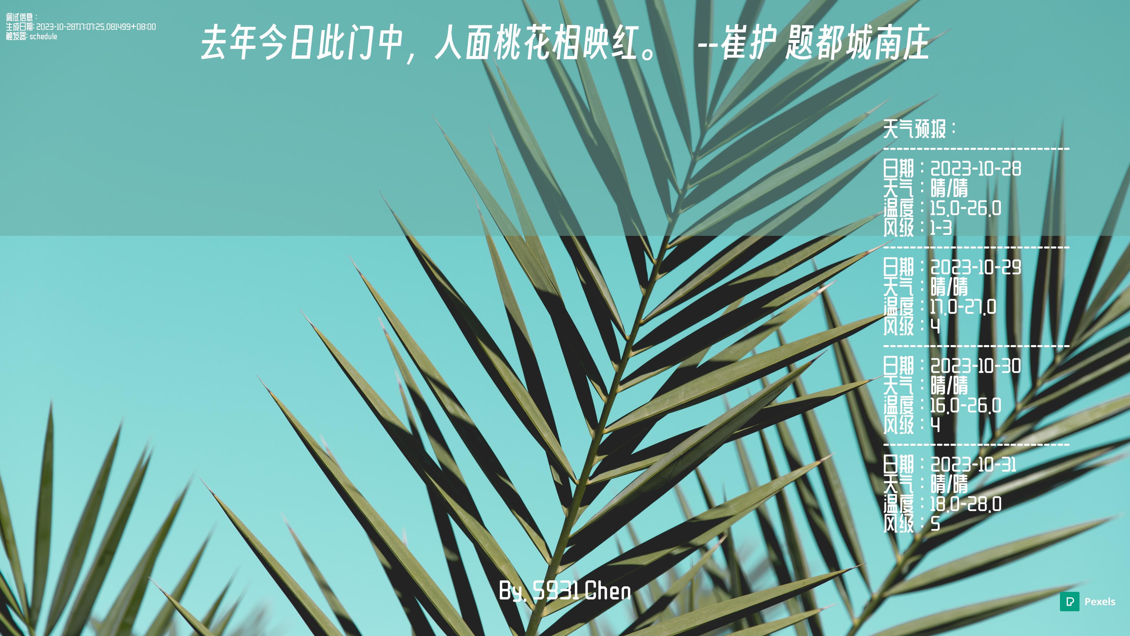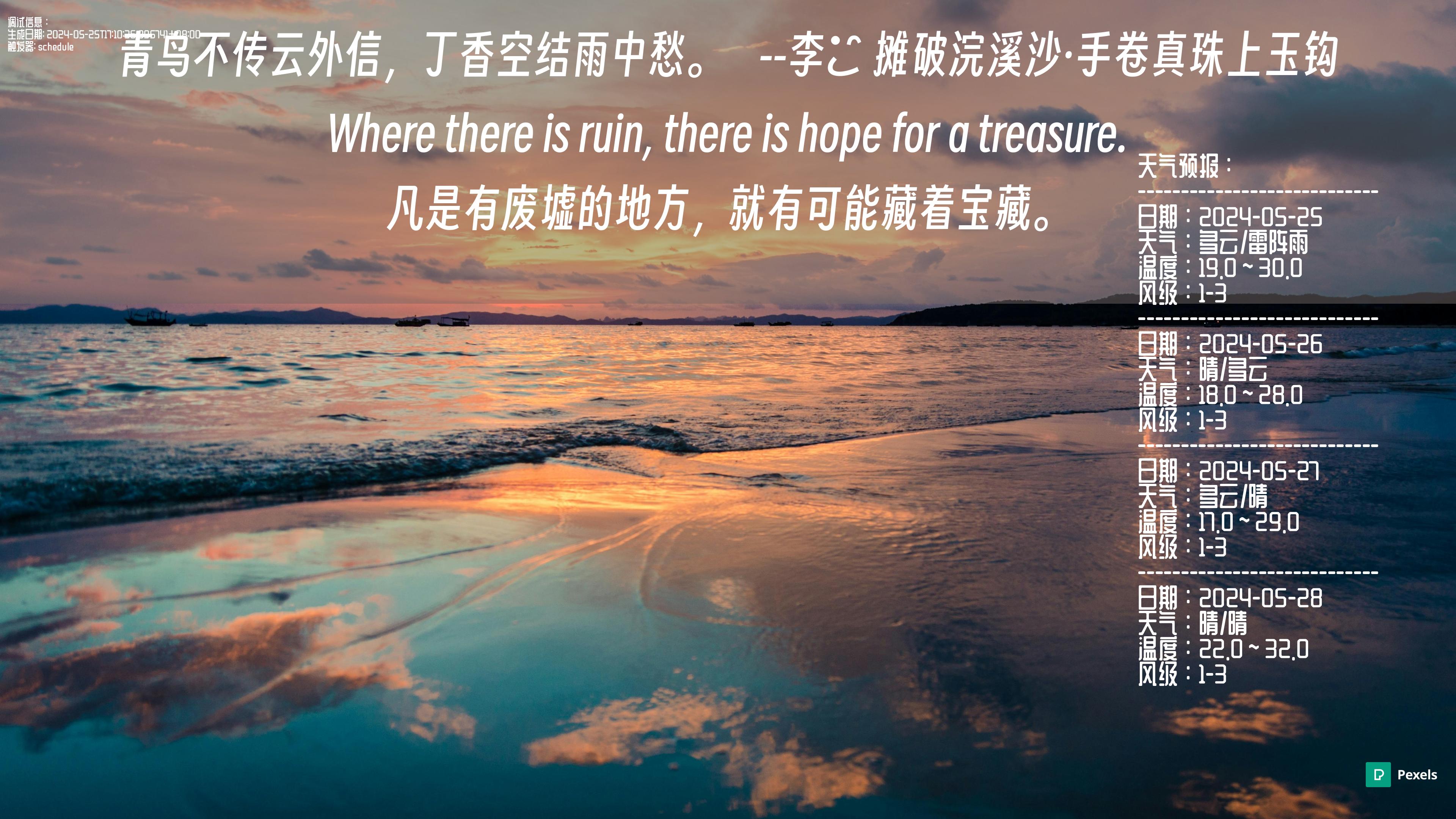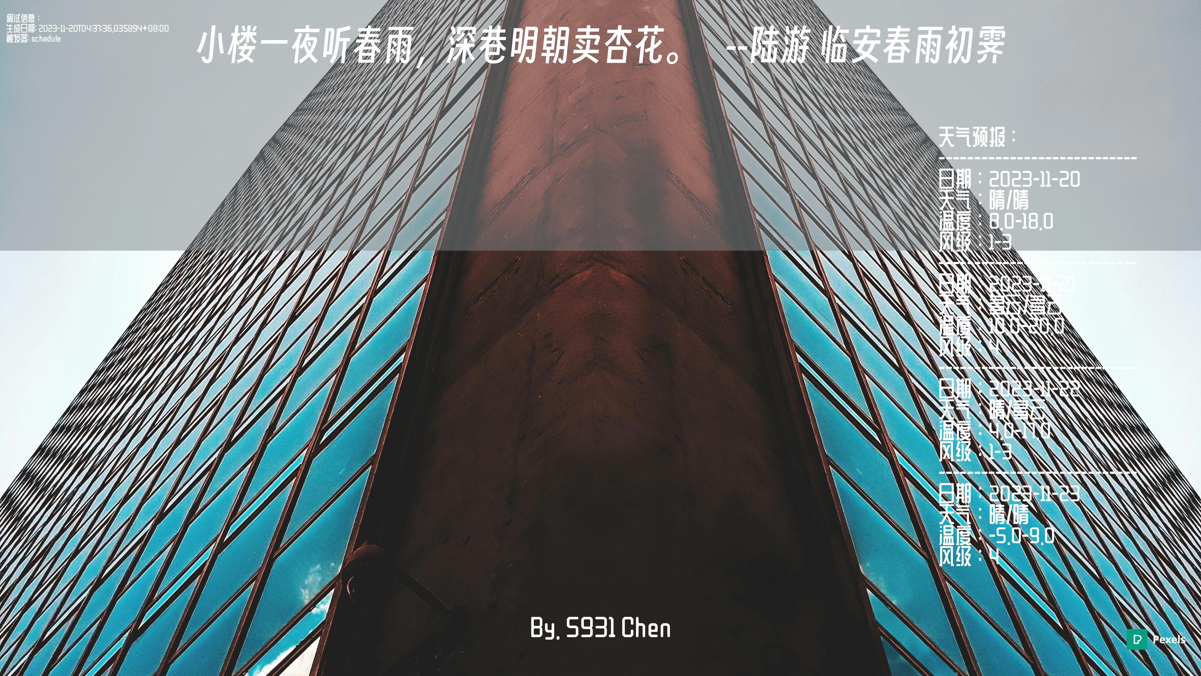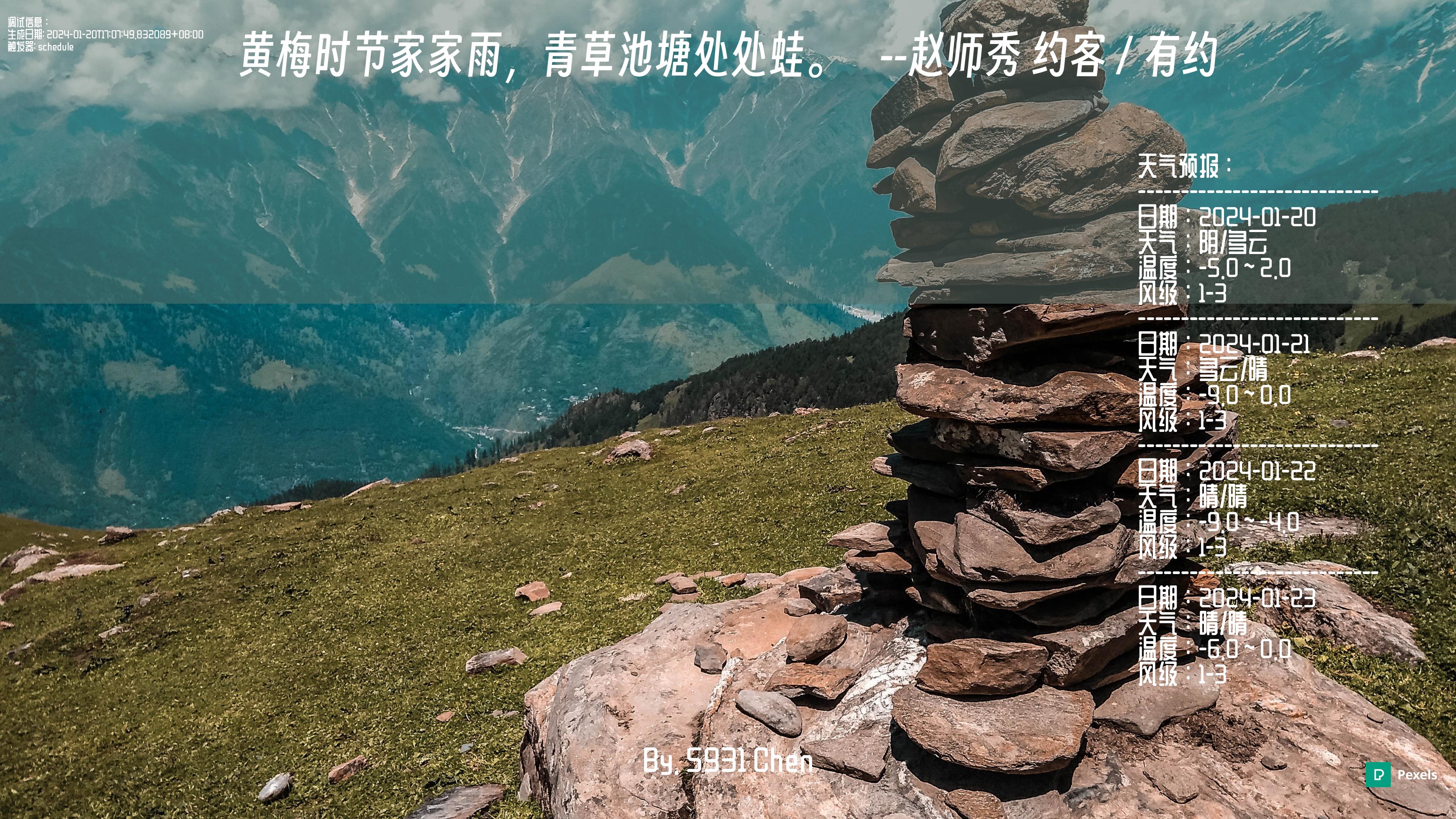 | 2023-06-25 | 957002 | 君问归期未有期,巴山夜雨涨秋池。 | 图片链接 | schedule |