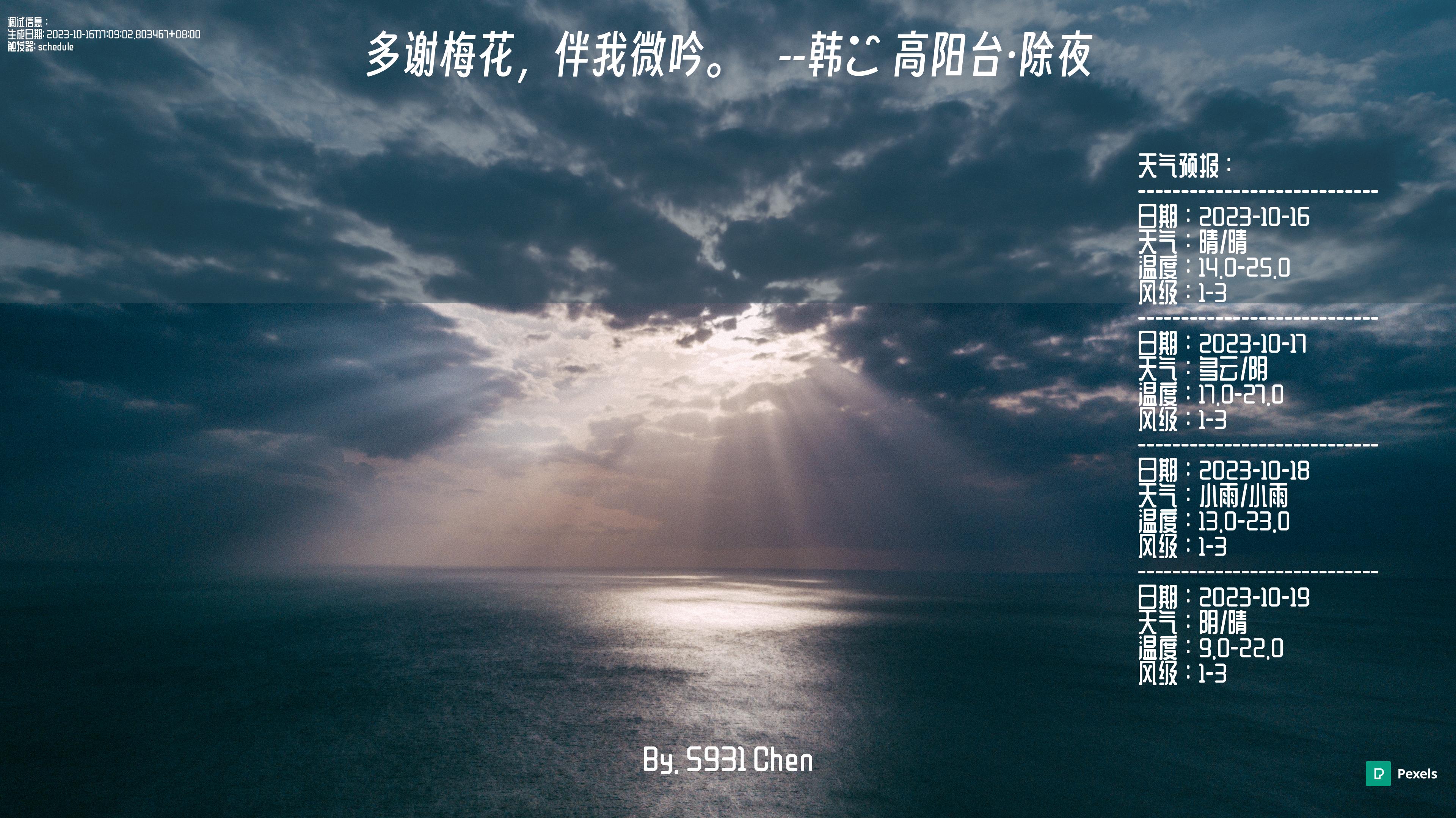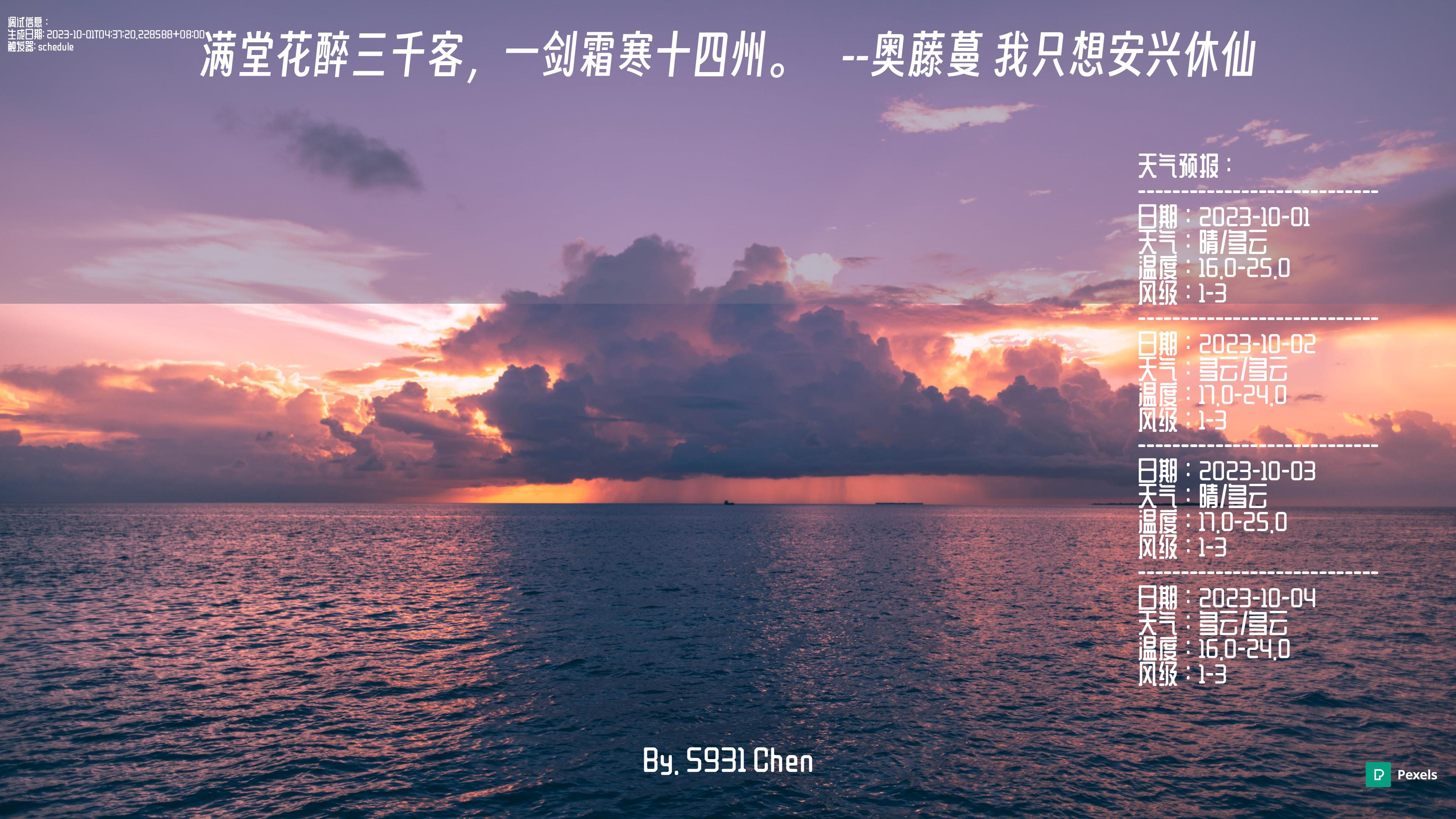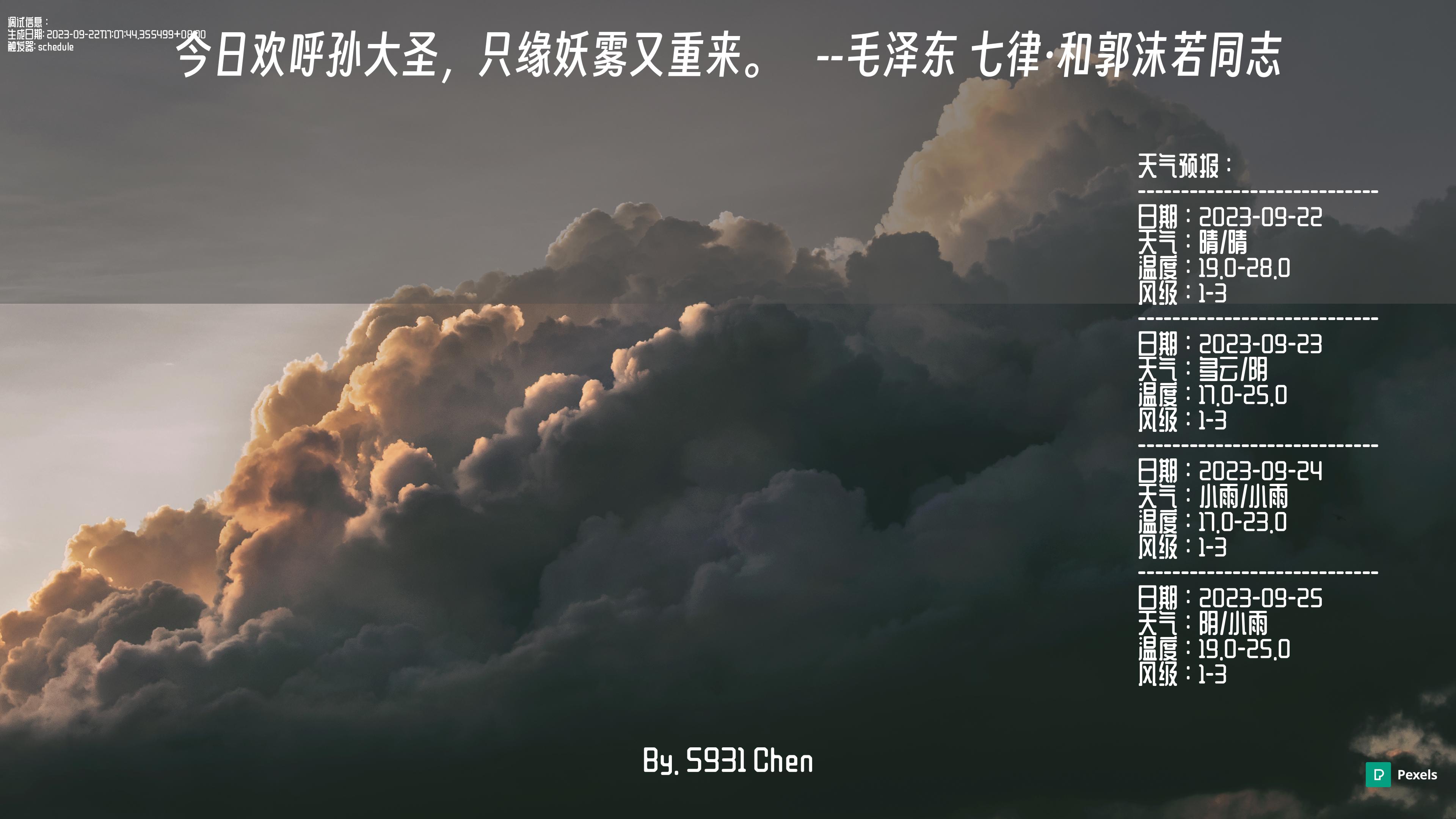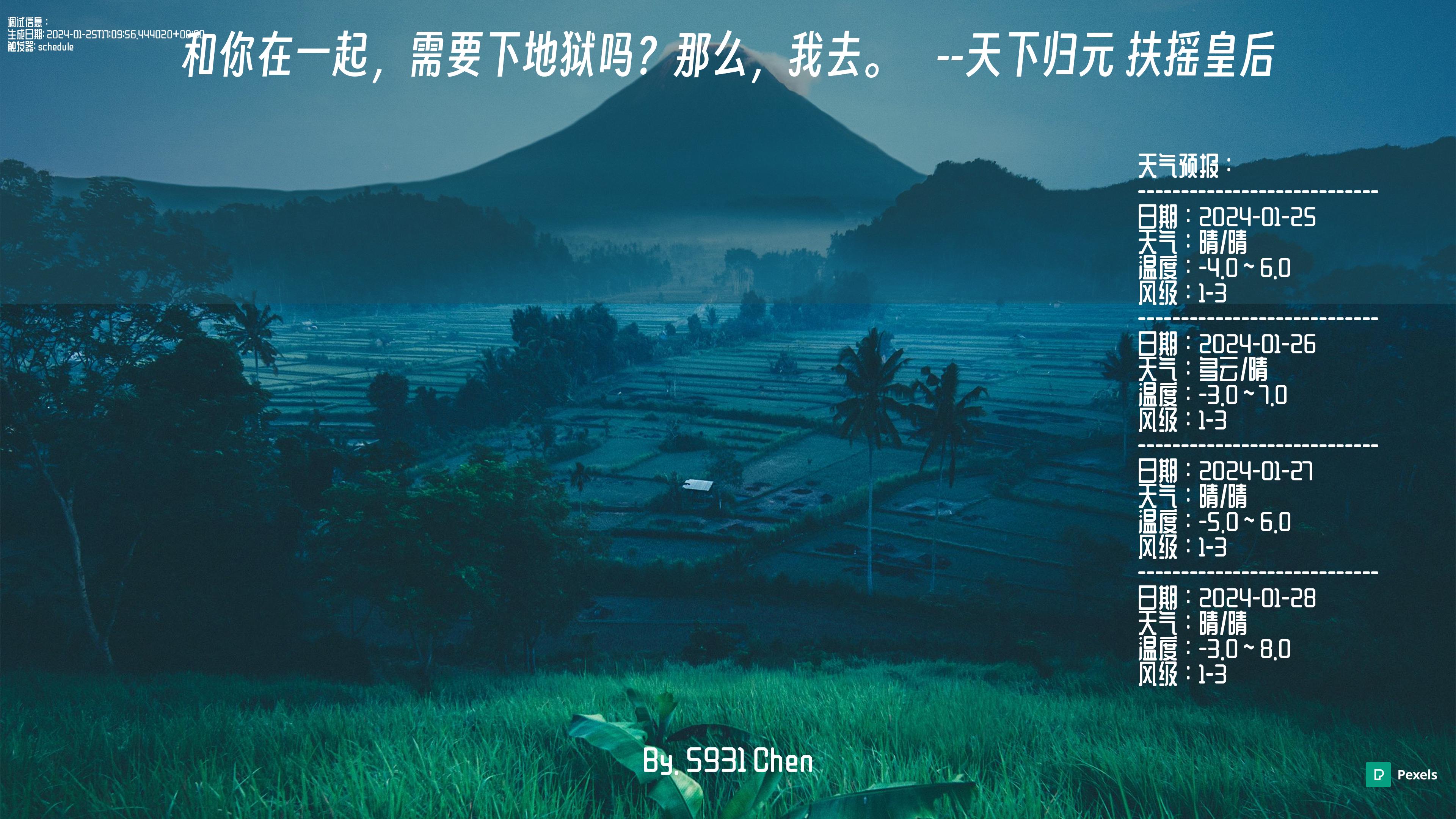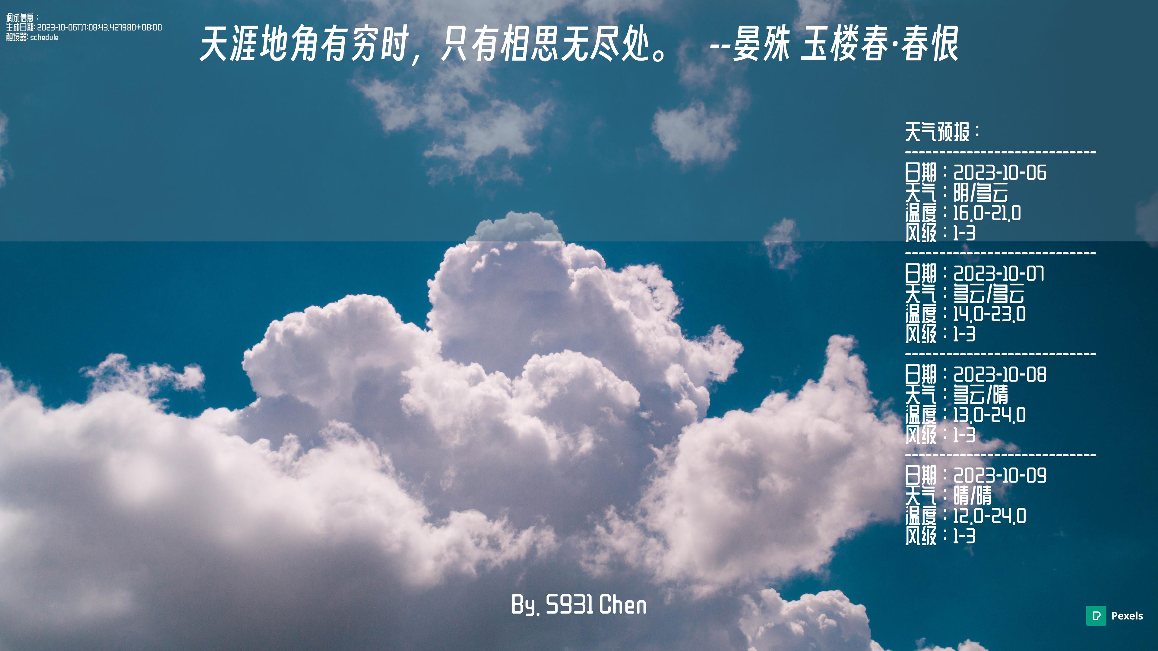 | 2023-06-25 | 957002 | 君问归期未有期,巴山夜雨涨秋池。 | 图片链接 | schedule |