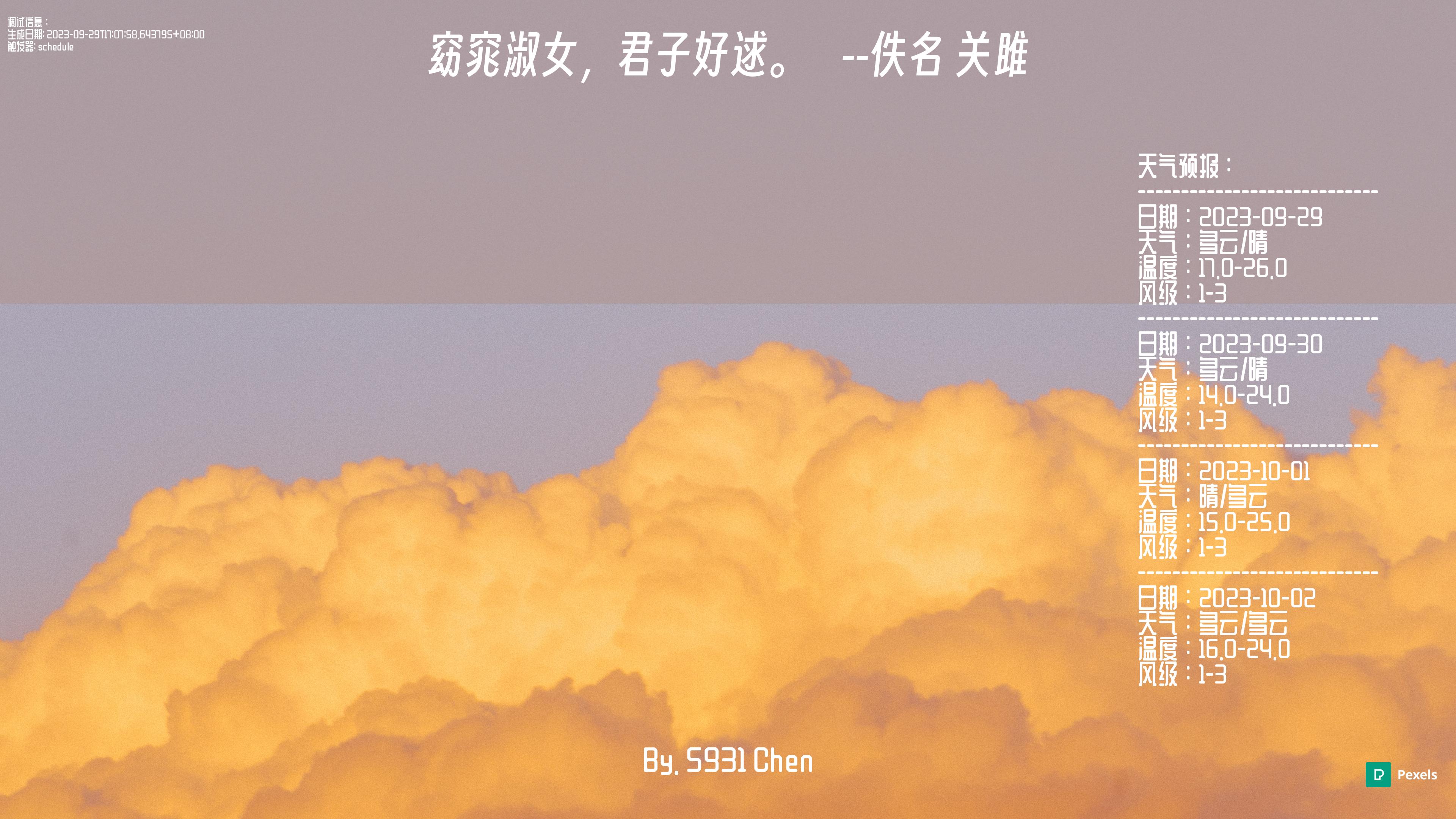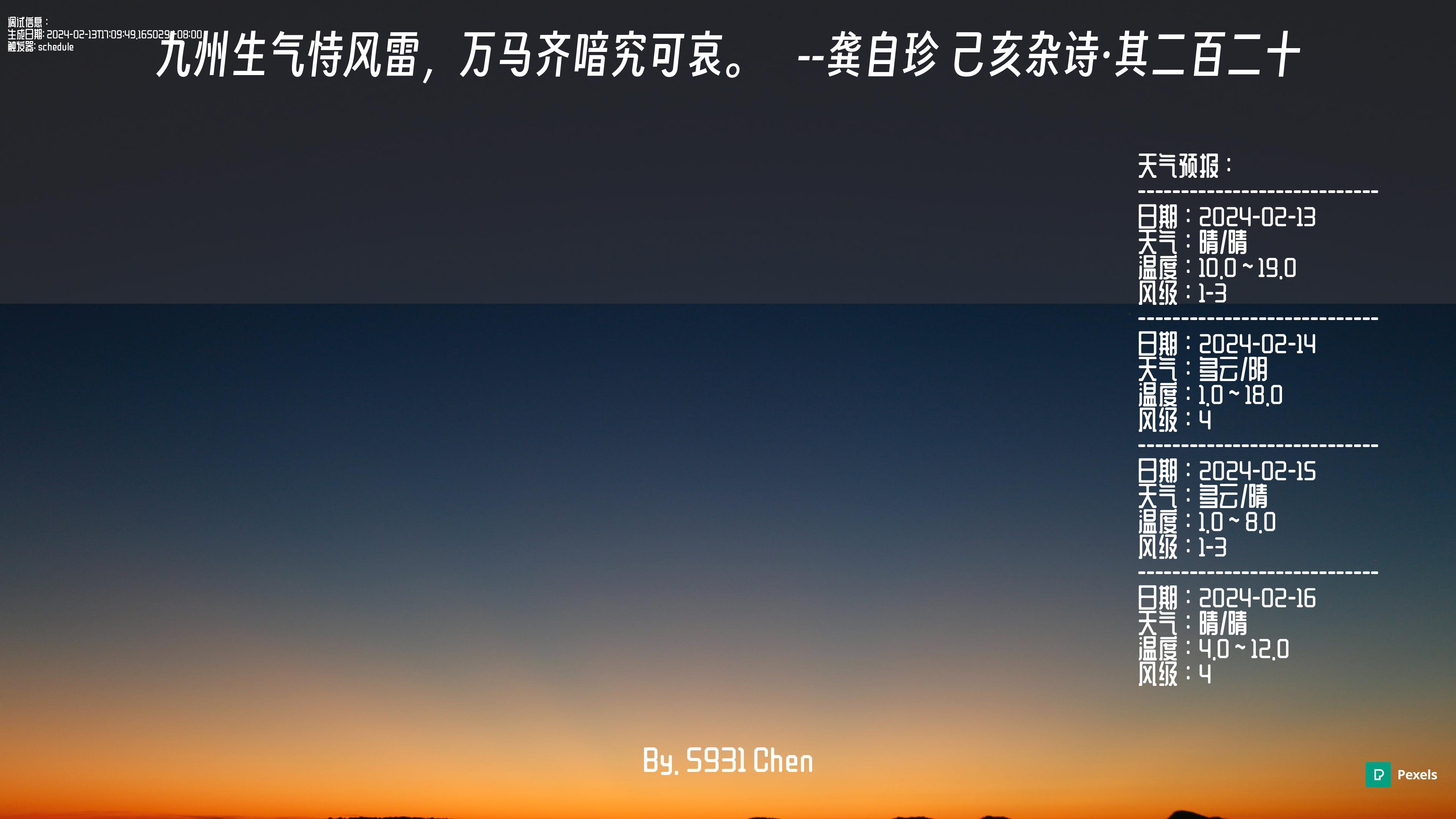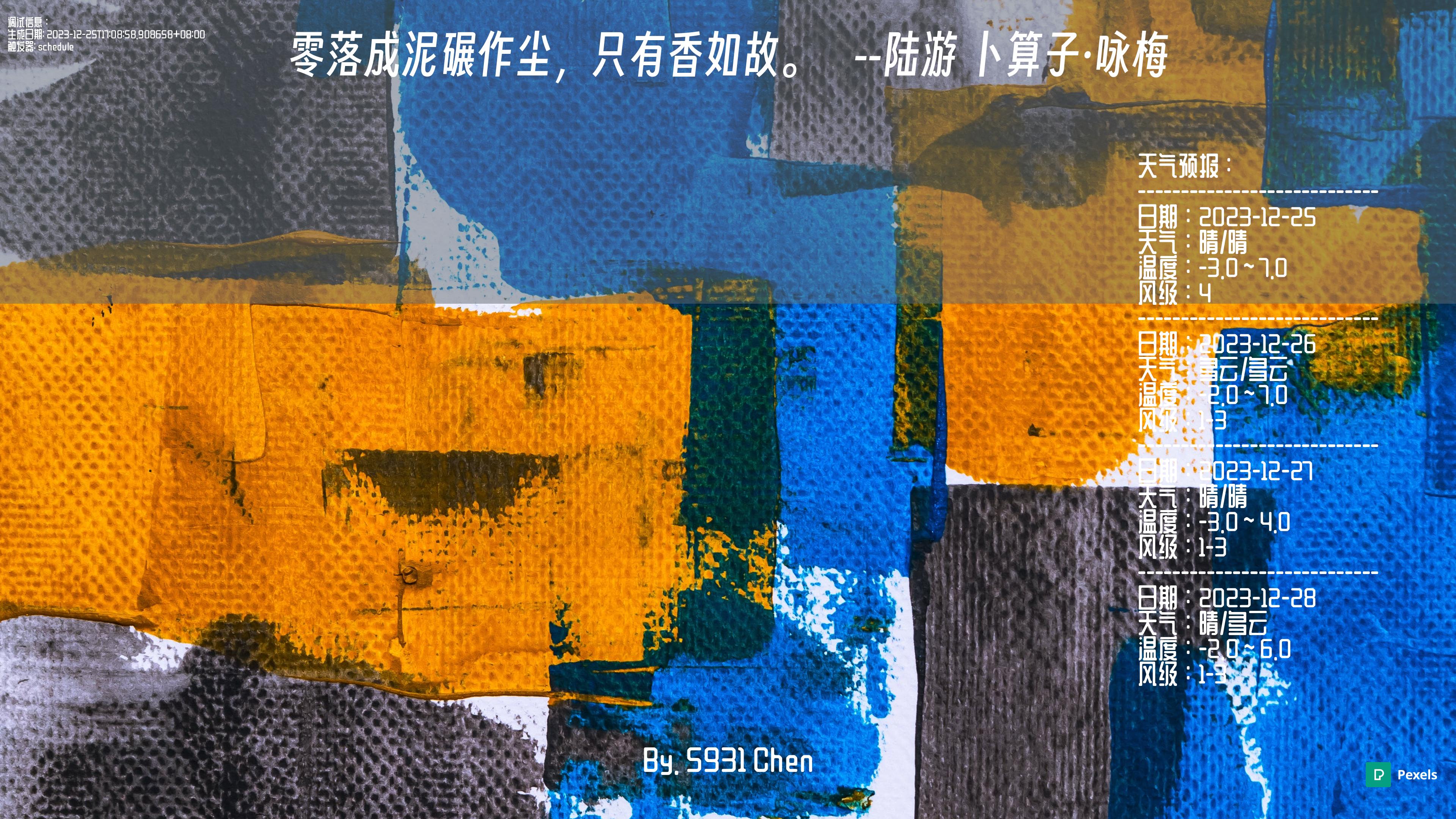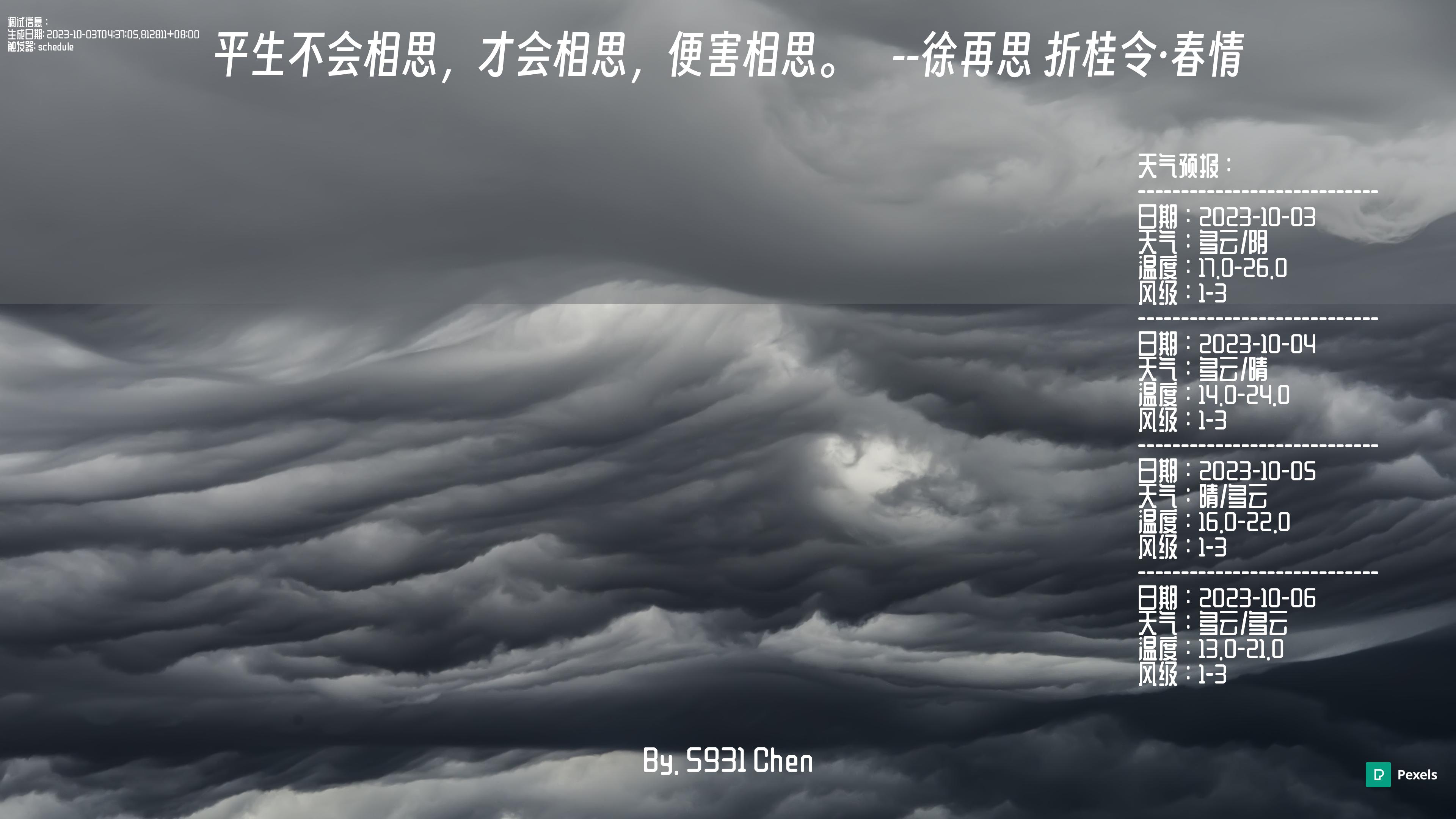 | 2023-06-25 | 957002 | 君问归期未有期,巴山夜雨涨秋池。 | 图片链接 | schedule |
