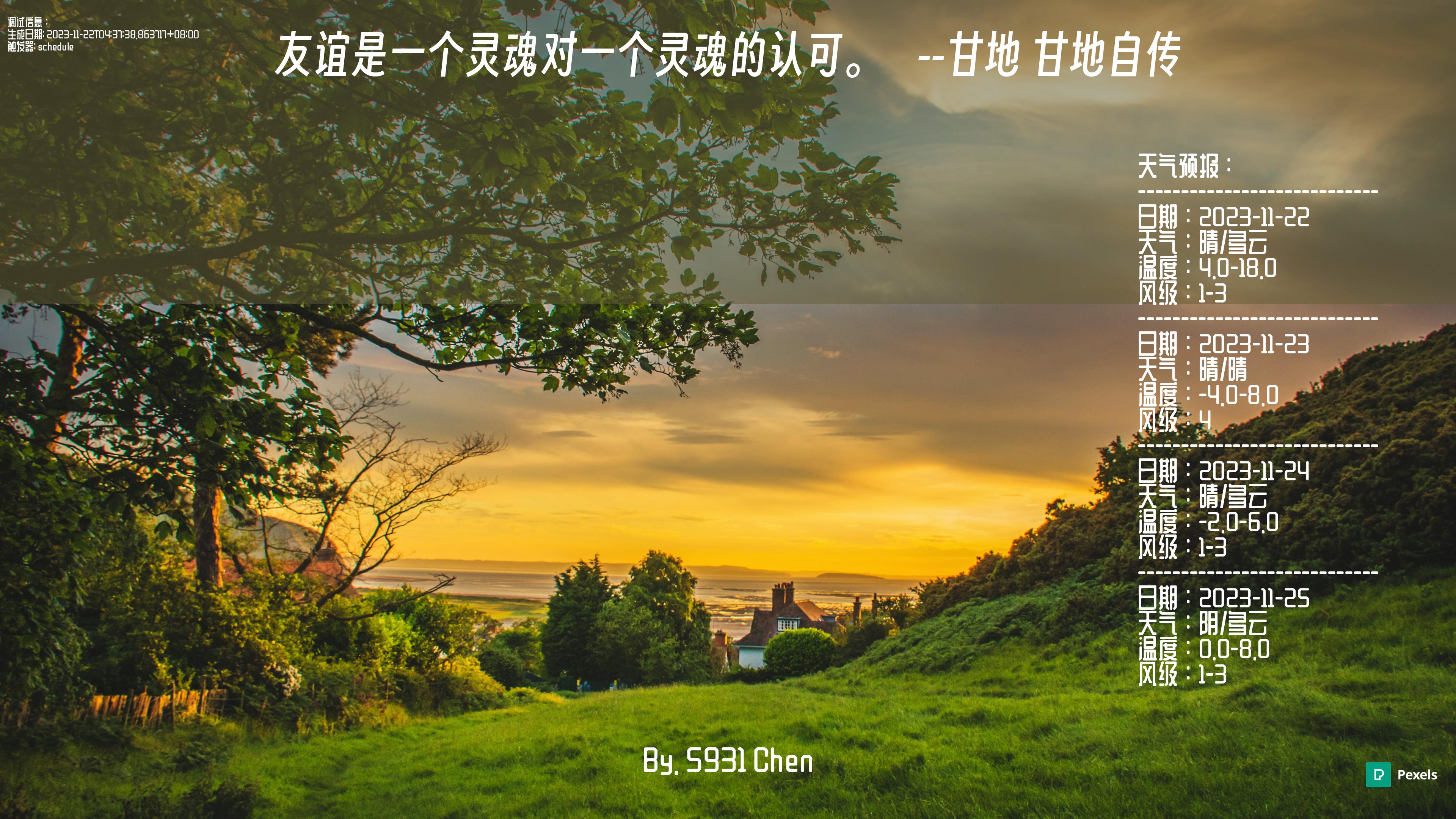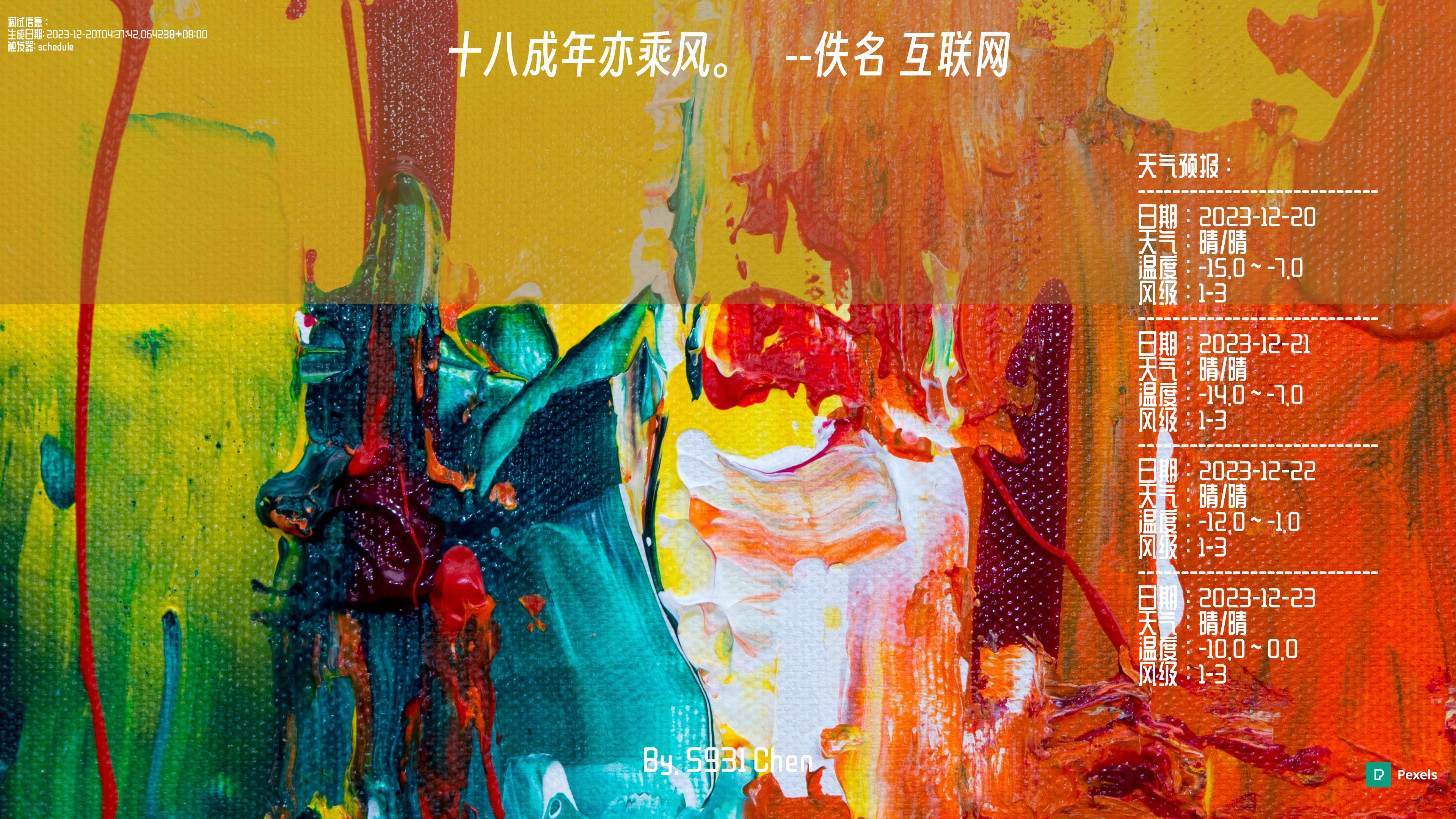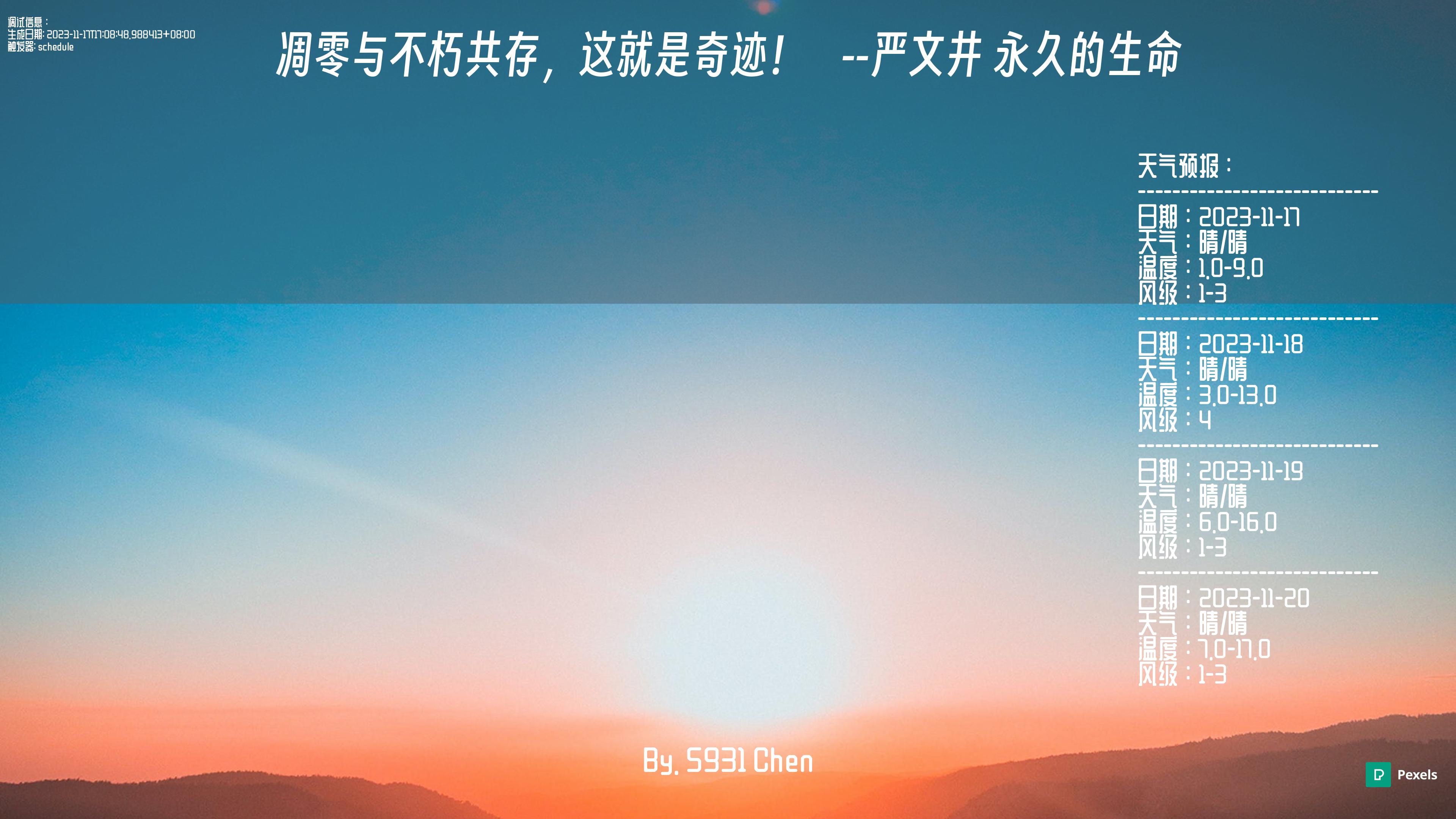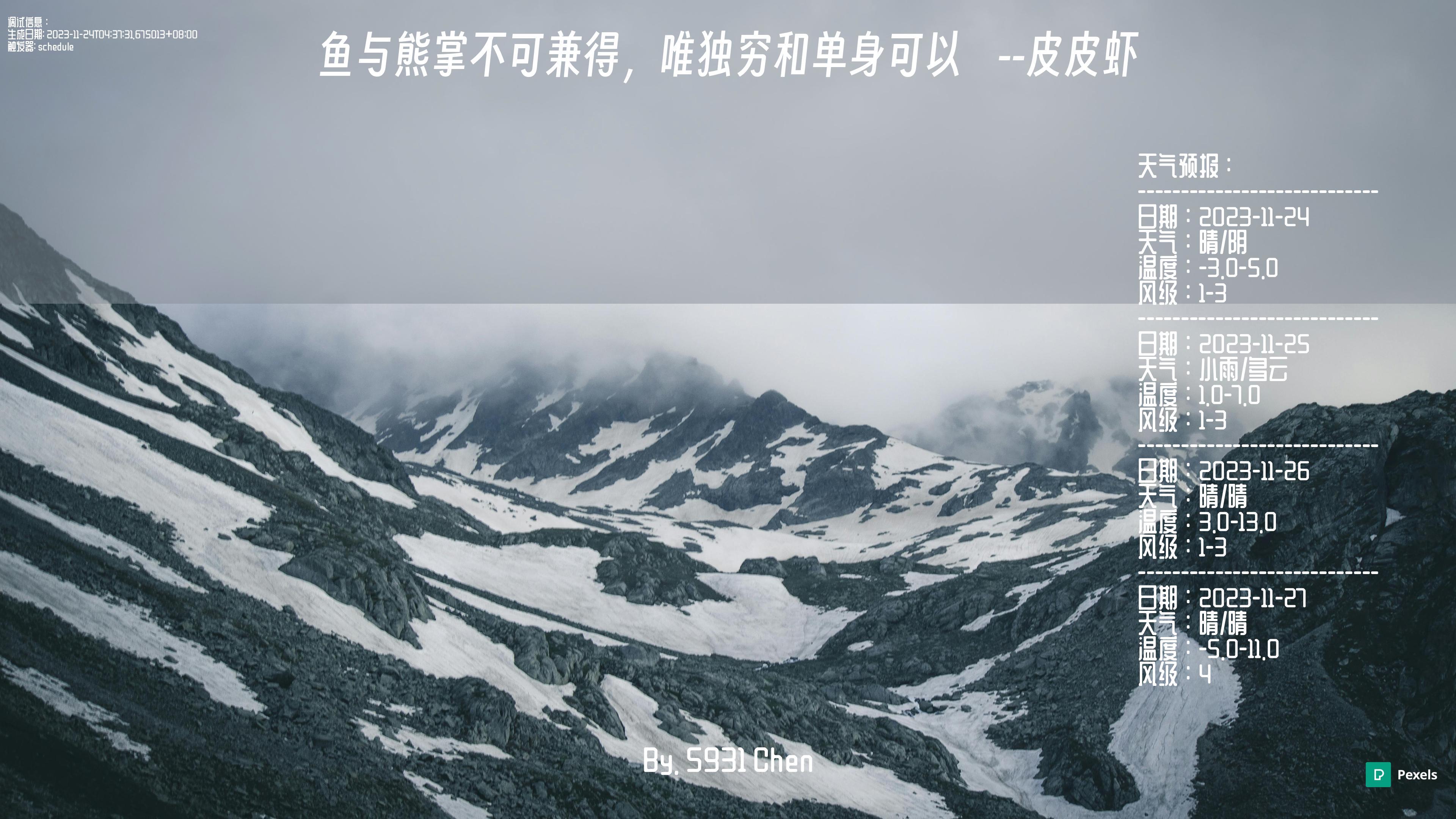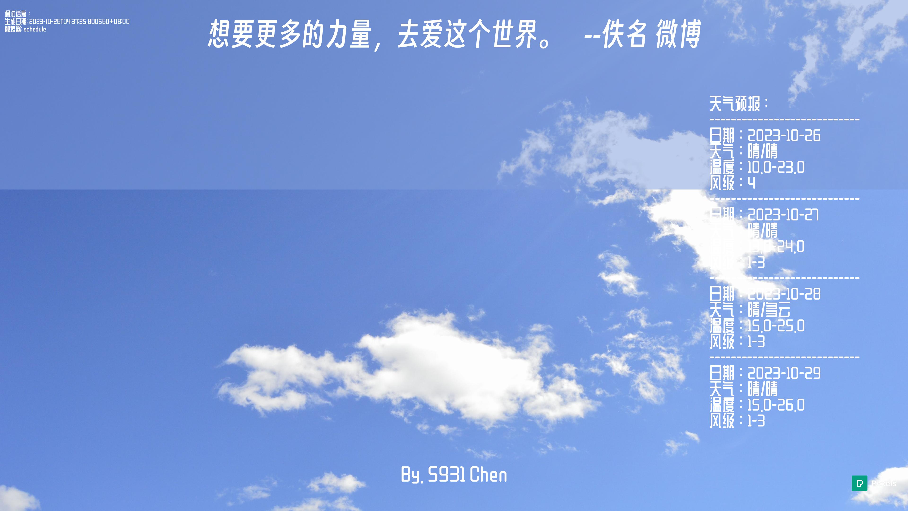 | 2023-06-23 | 1073078 | 为众人抱薪者,不可使其冻毙于风雪。 | 图片链接 | schedule |