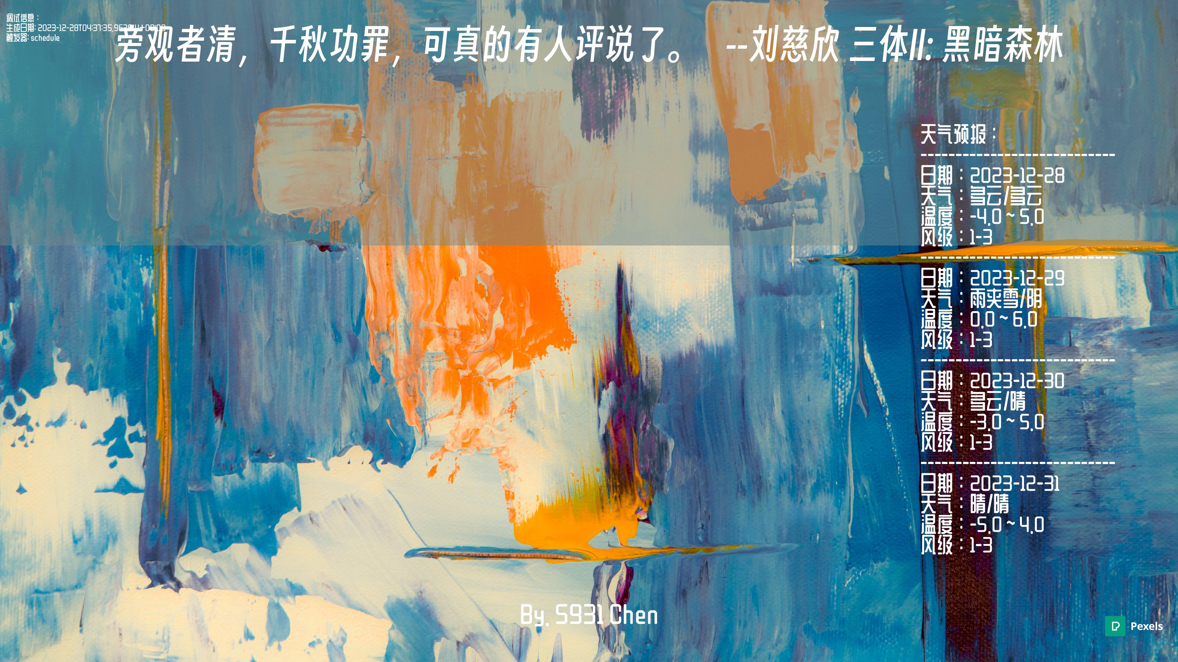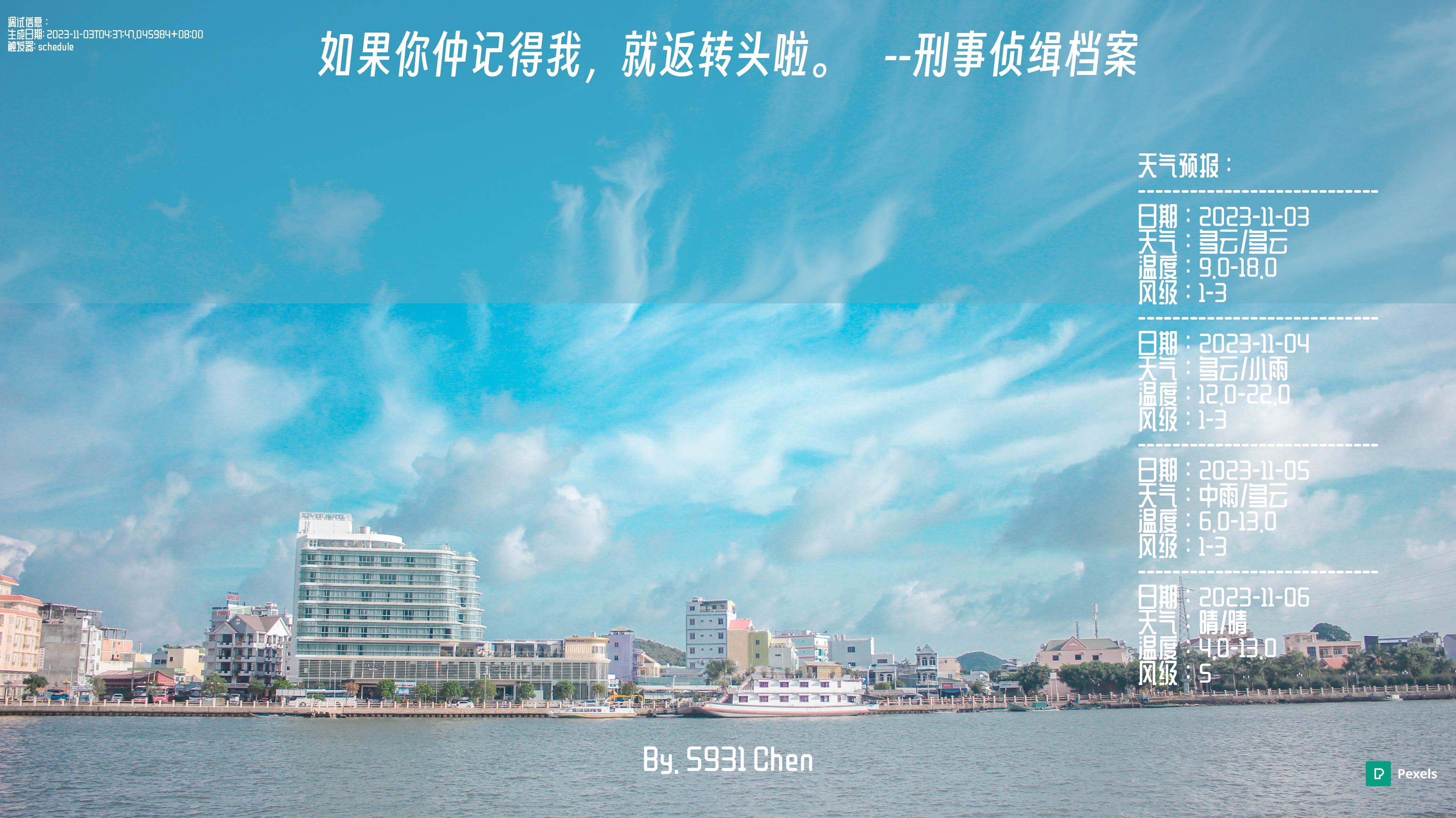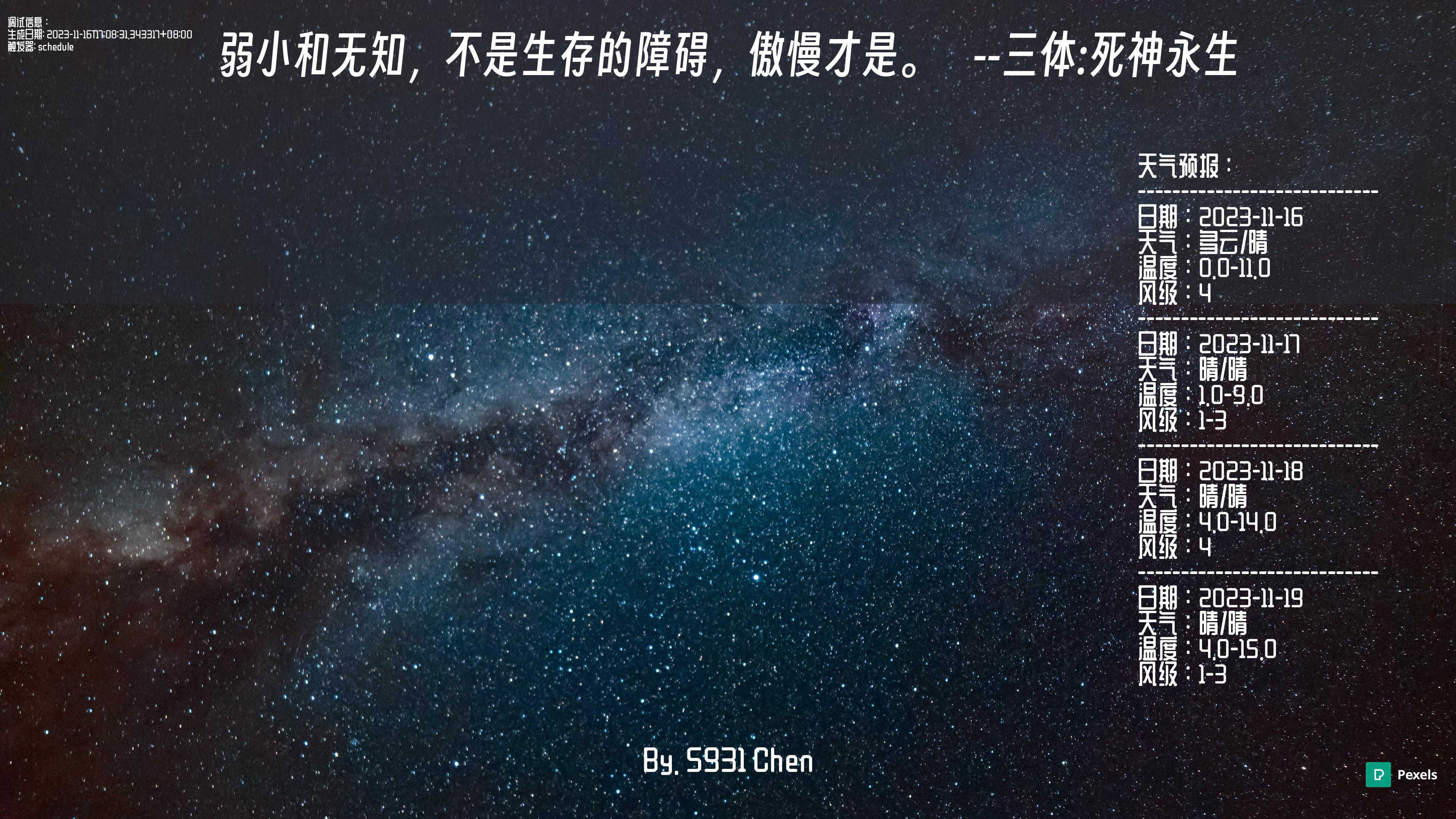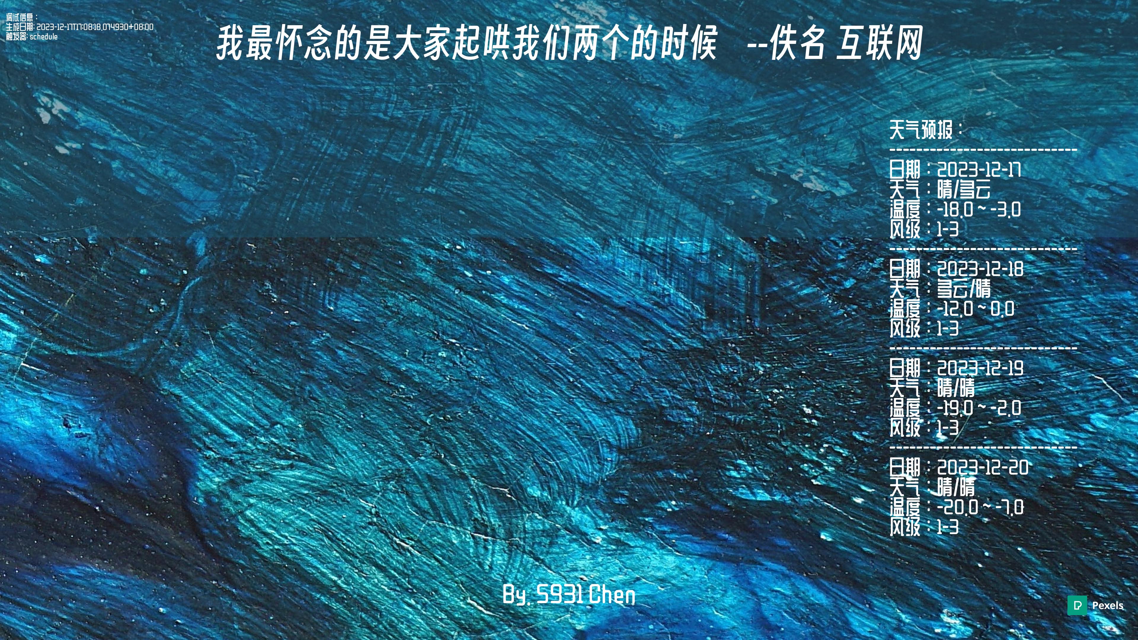 | 2023-06-23 | 1073078 | 为众人抱薪者,不可使其冻毙于风雪。 | 图片链接 | schedule |