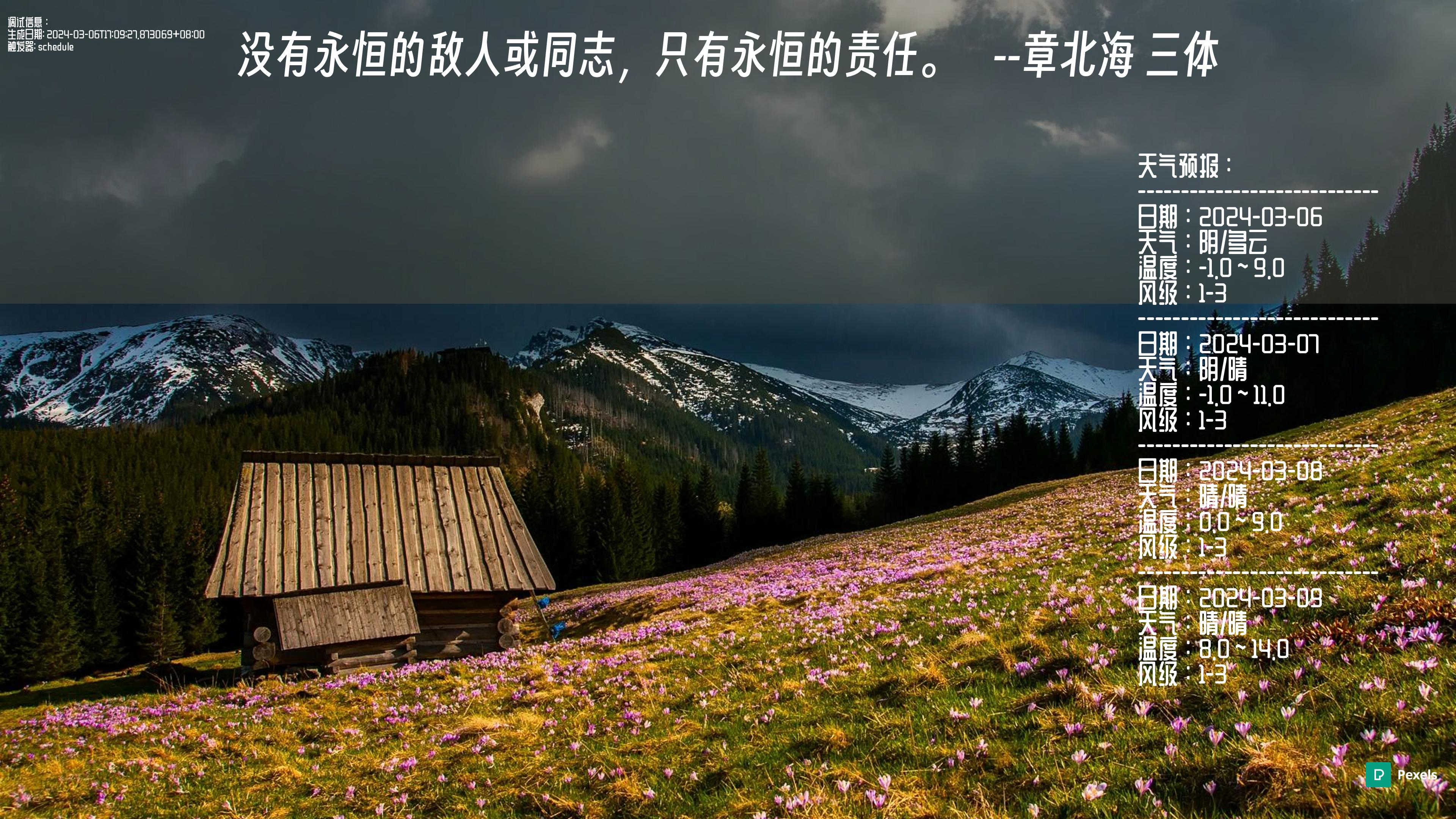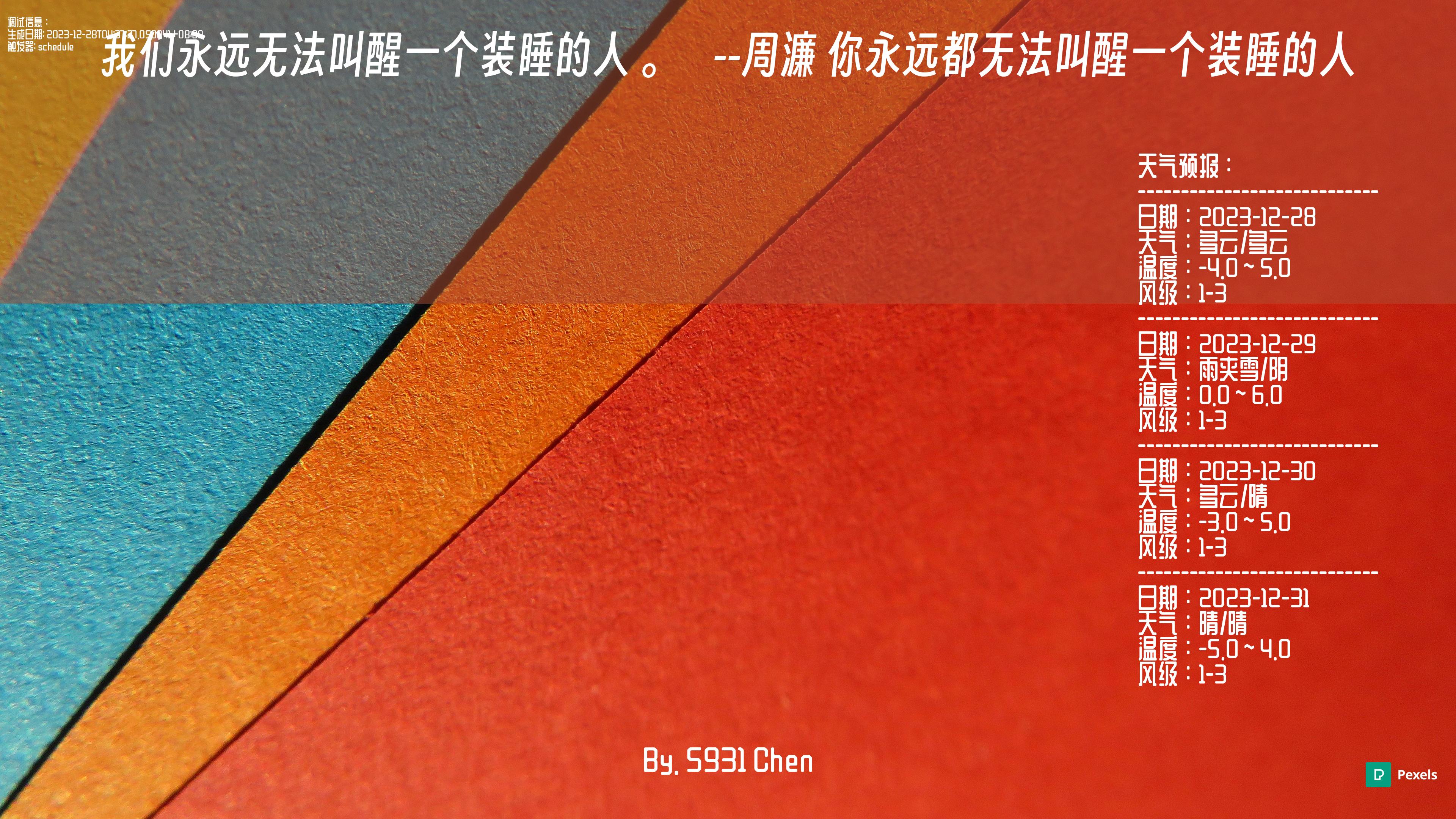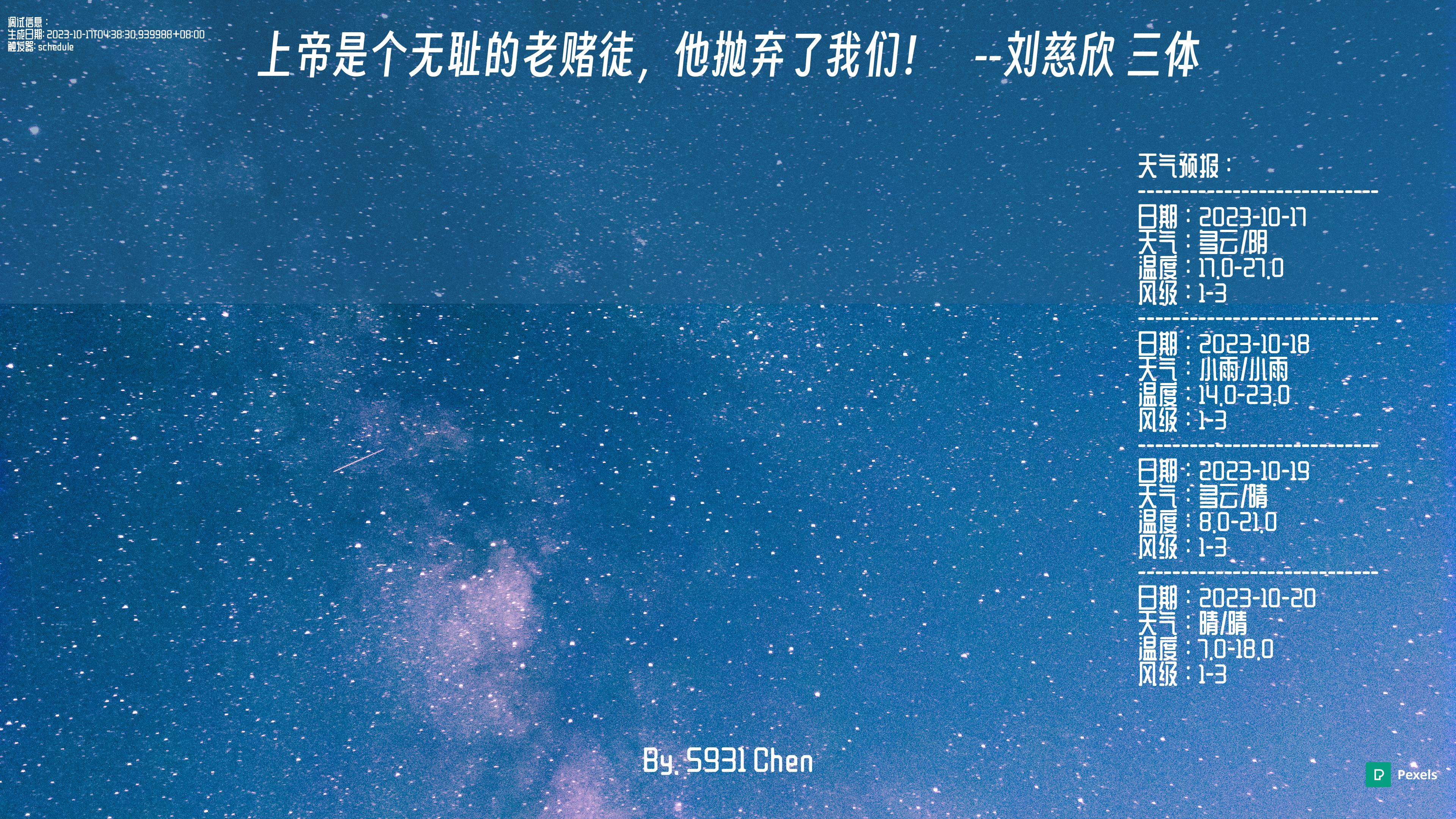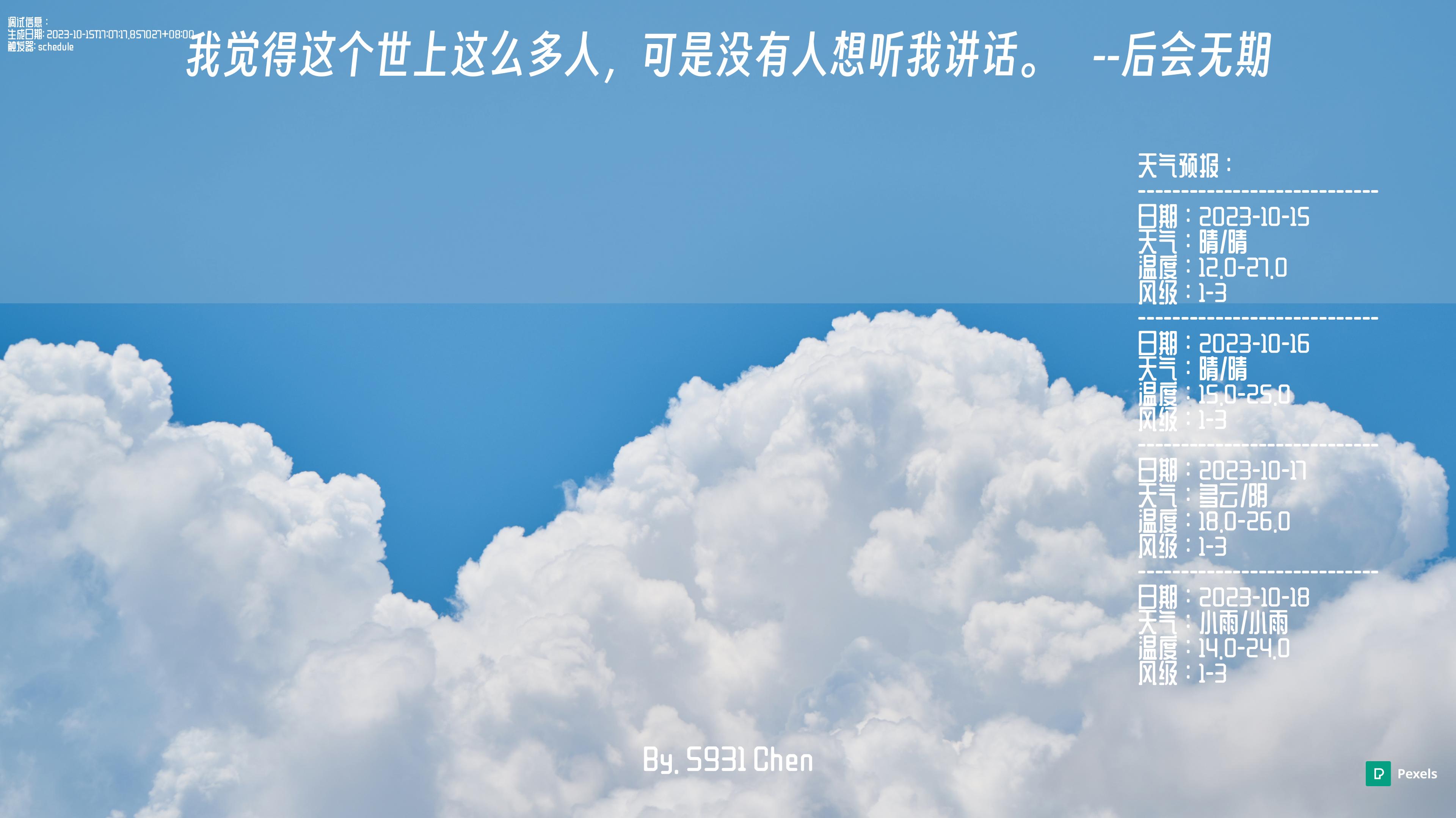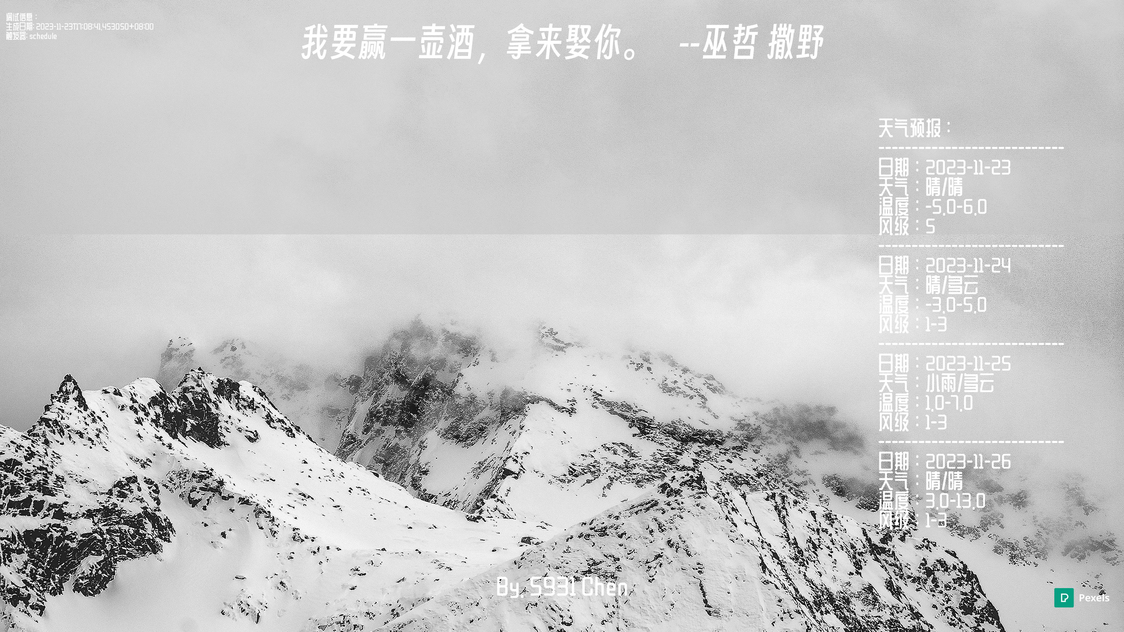 | 2023-06-23 | 1073078 | 为众人抱薪者,不可使其冻毙于风雪。 | 图片链接 | schedule |