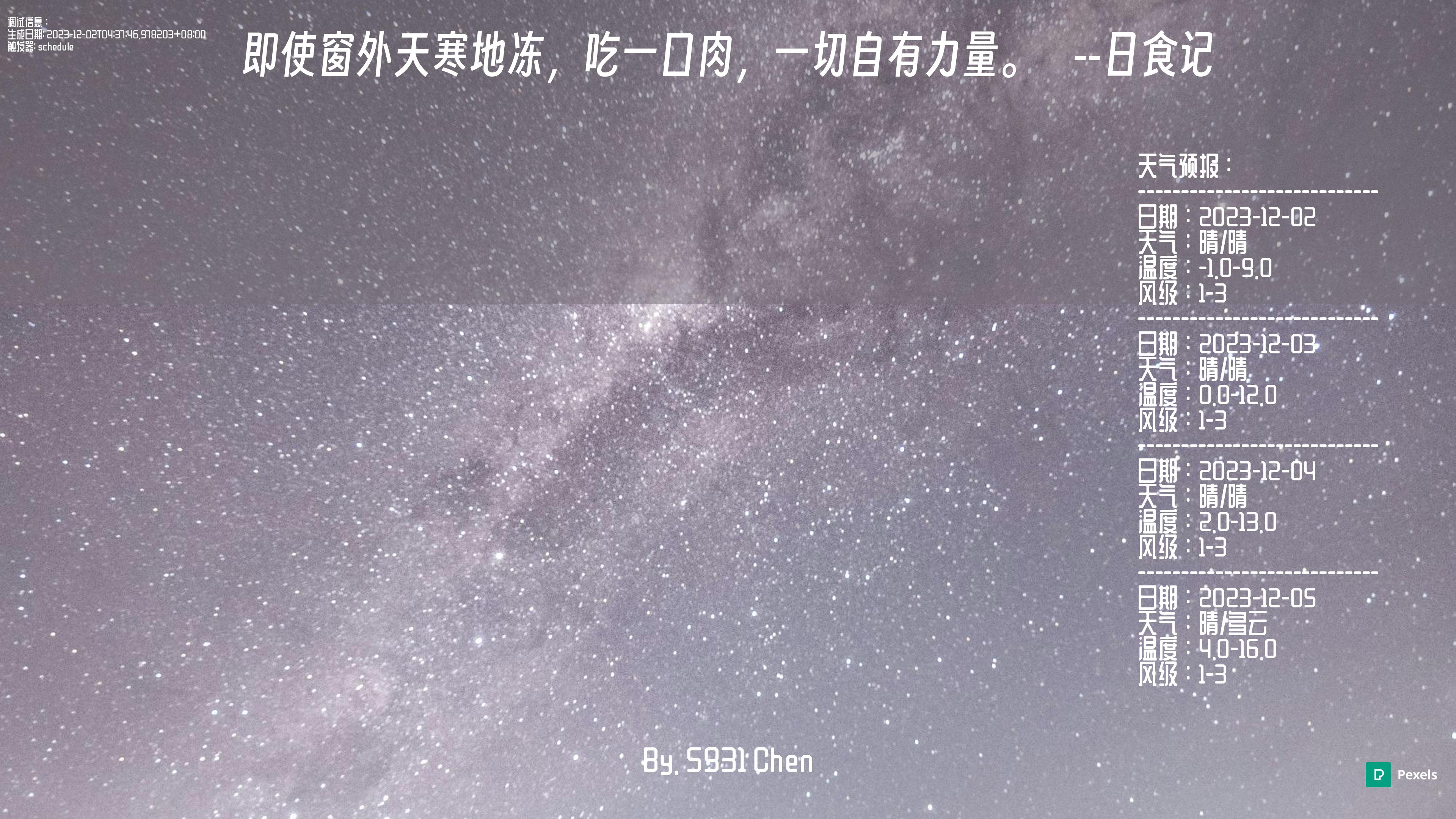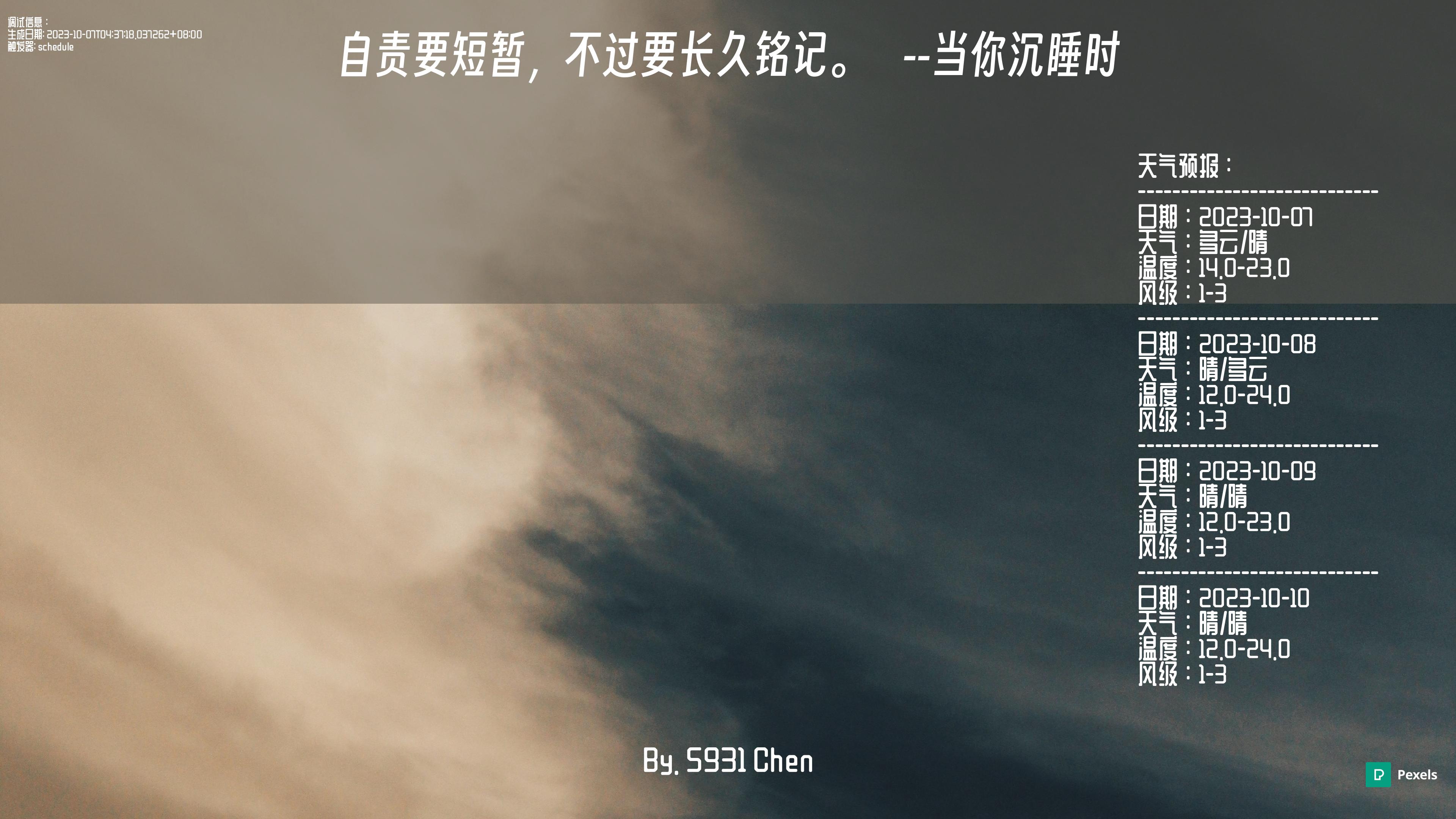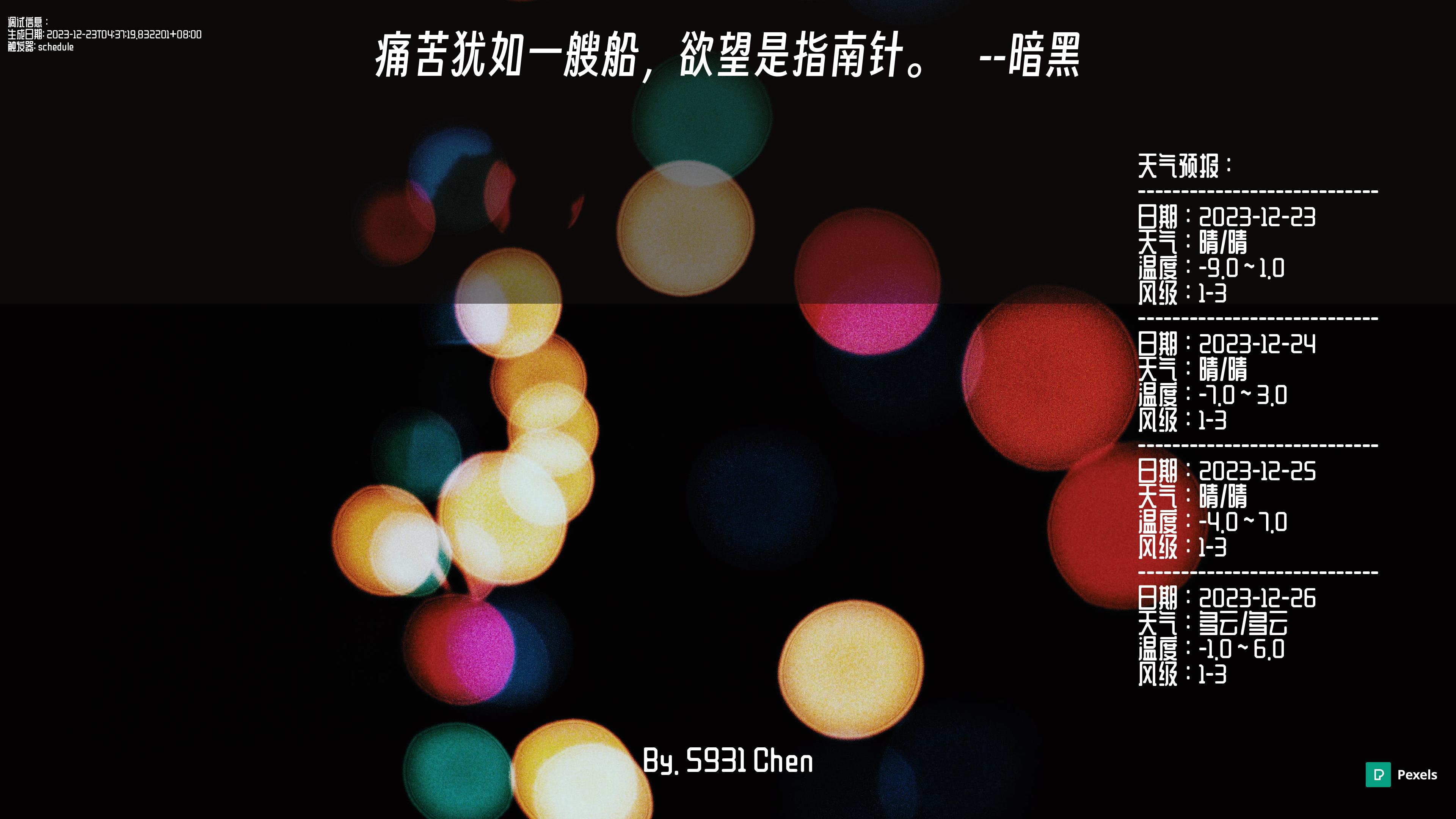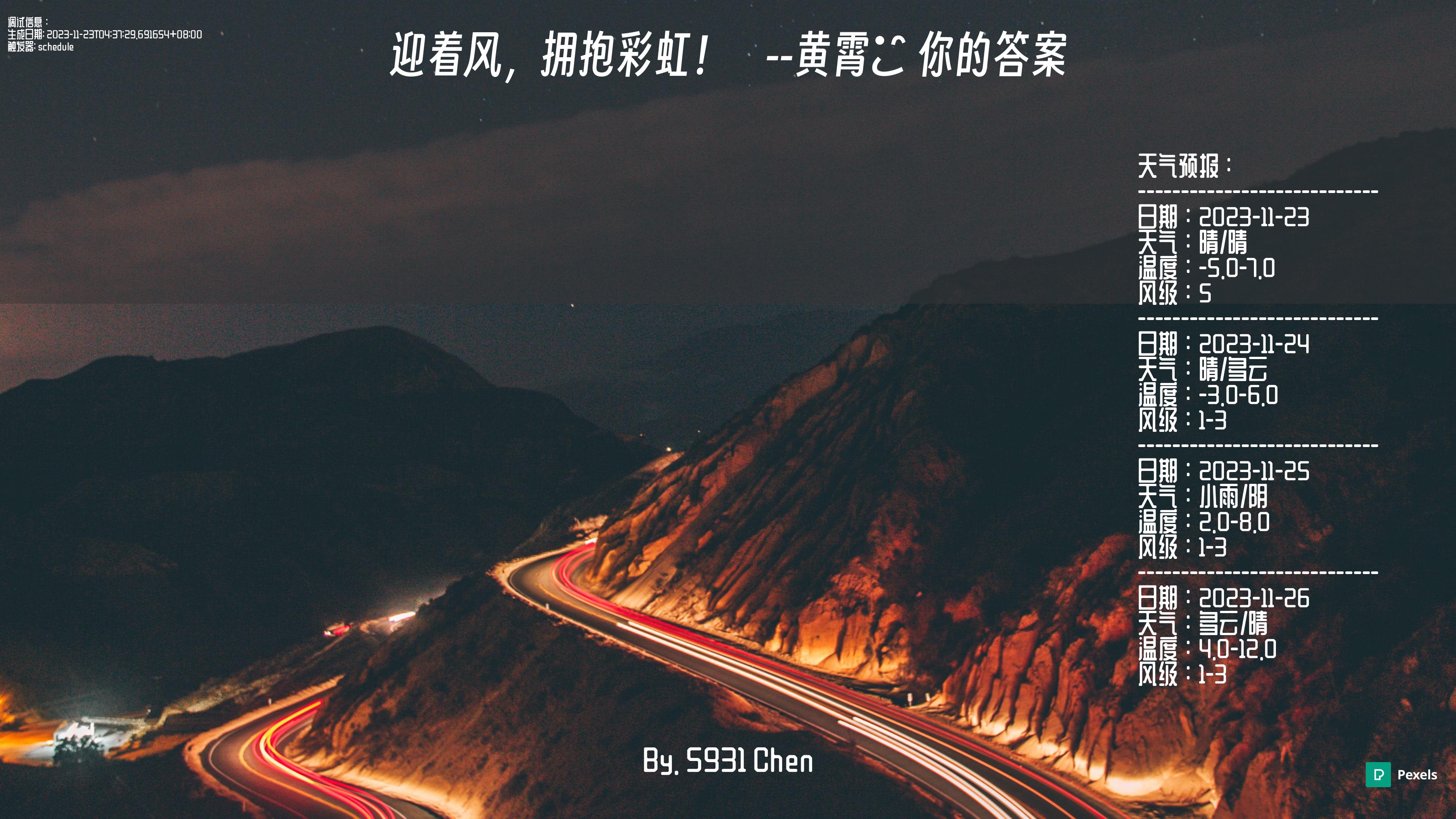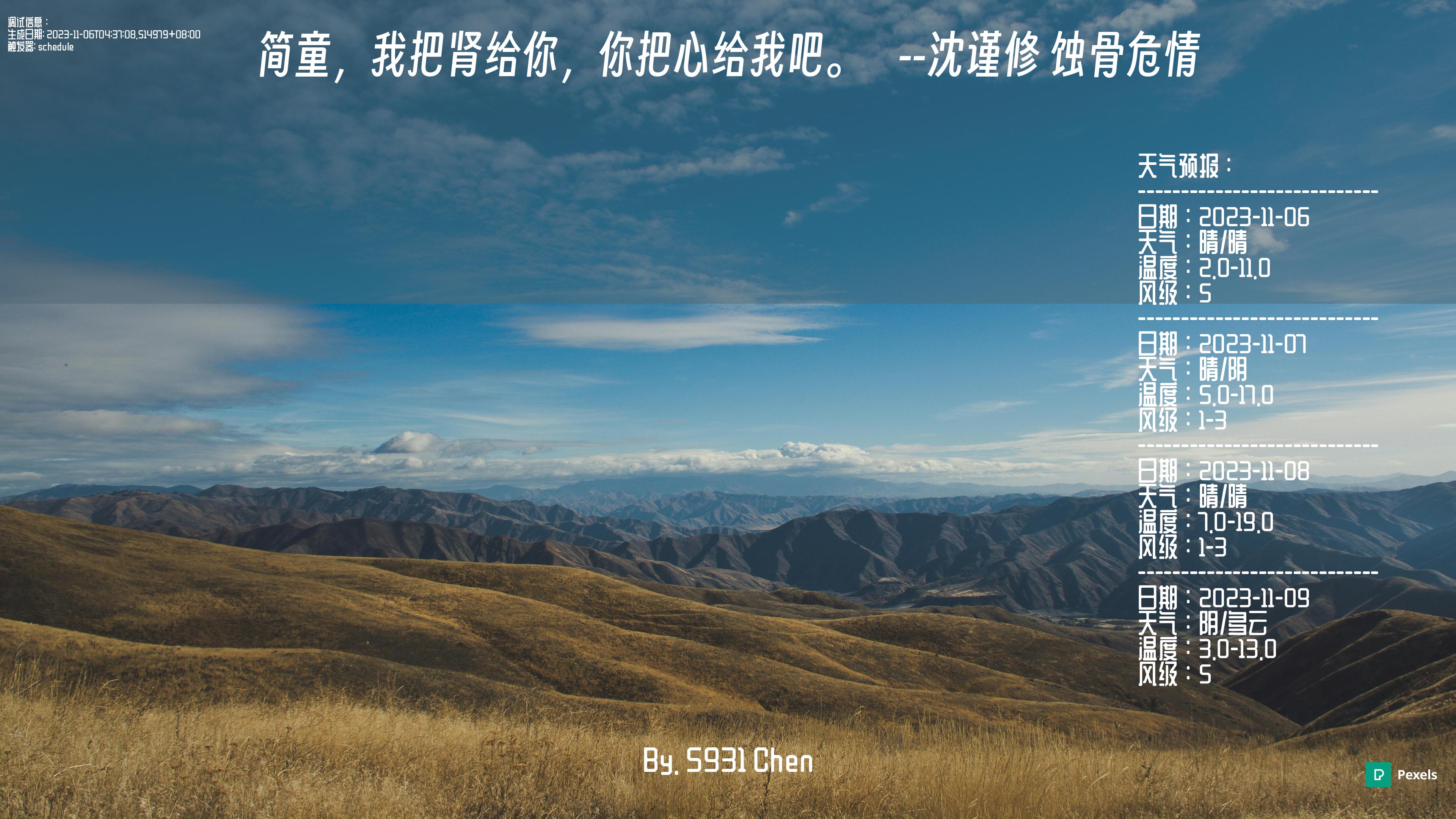 | 2023-06-23 | 1073078 | 为众人抱薪者,不可使其冻毙于风雪。 | 图片链接 | schedule |
