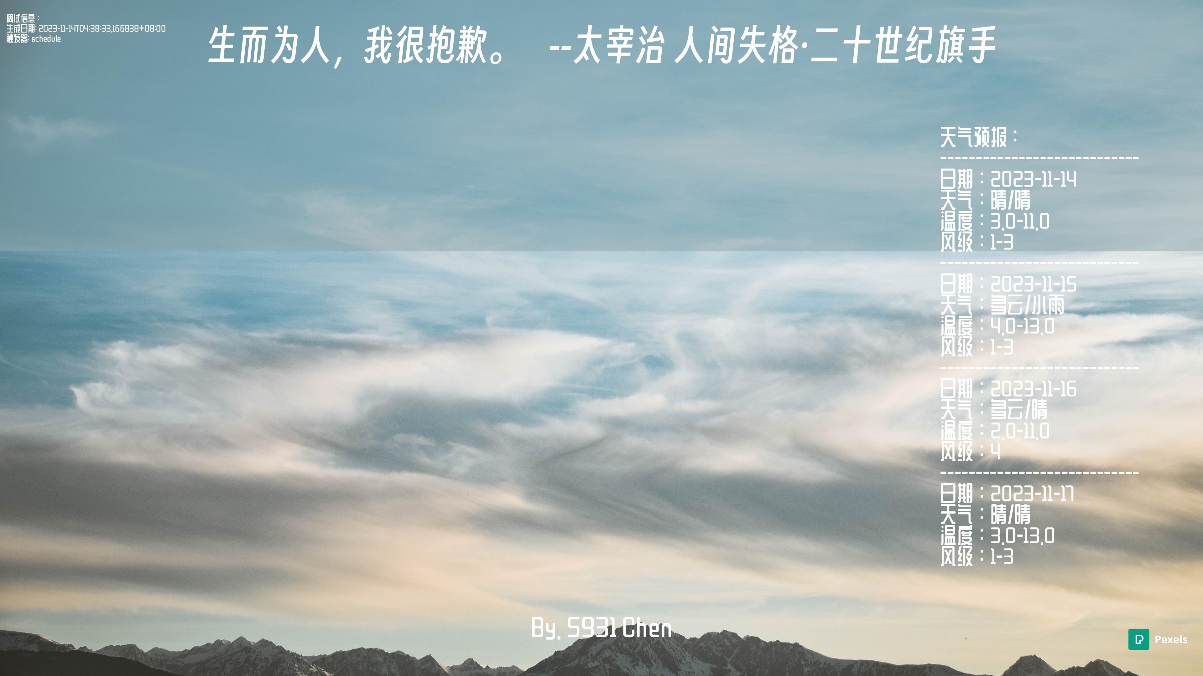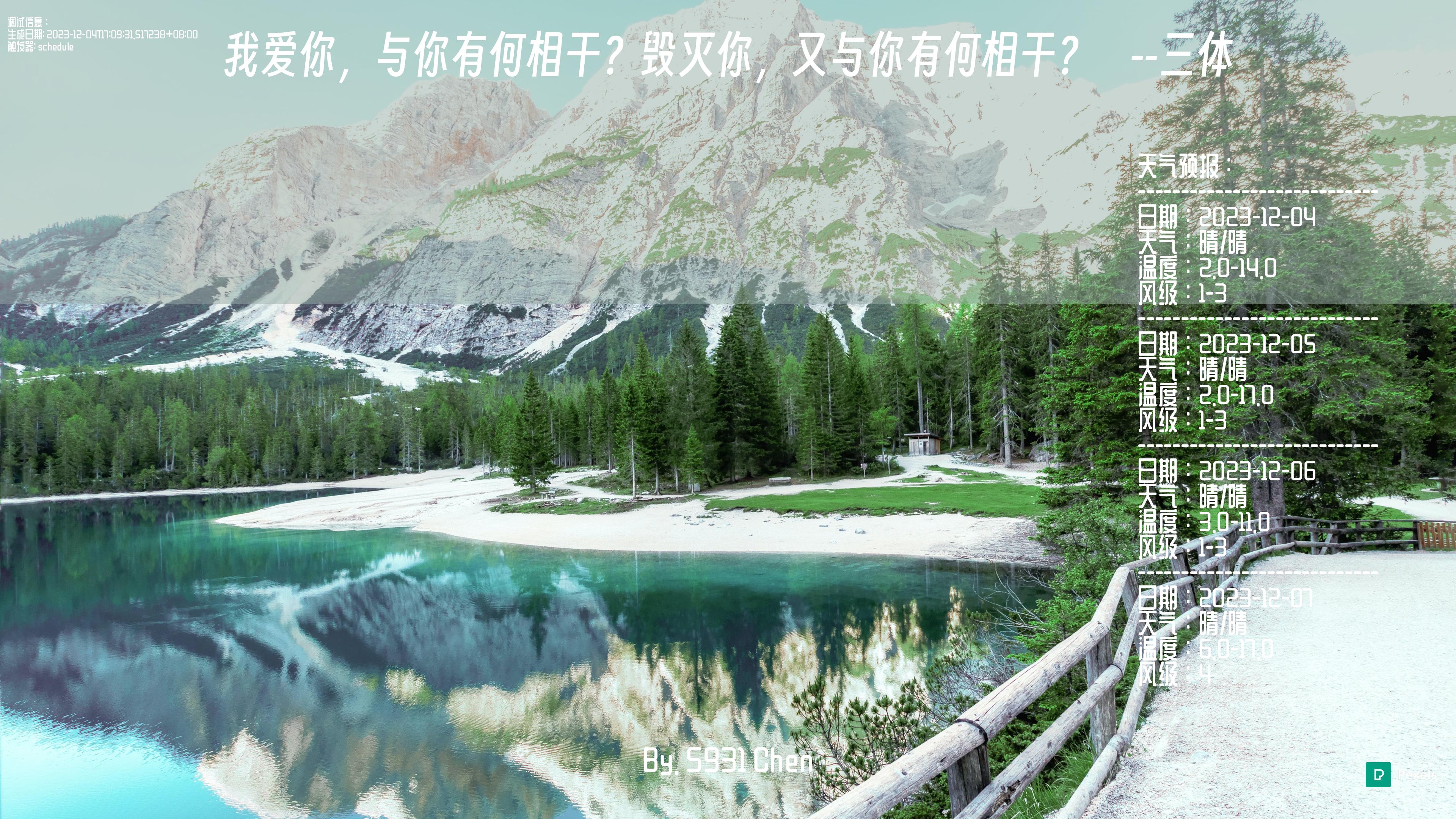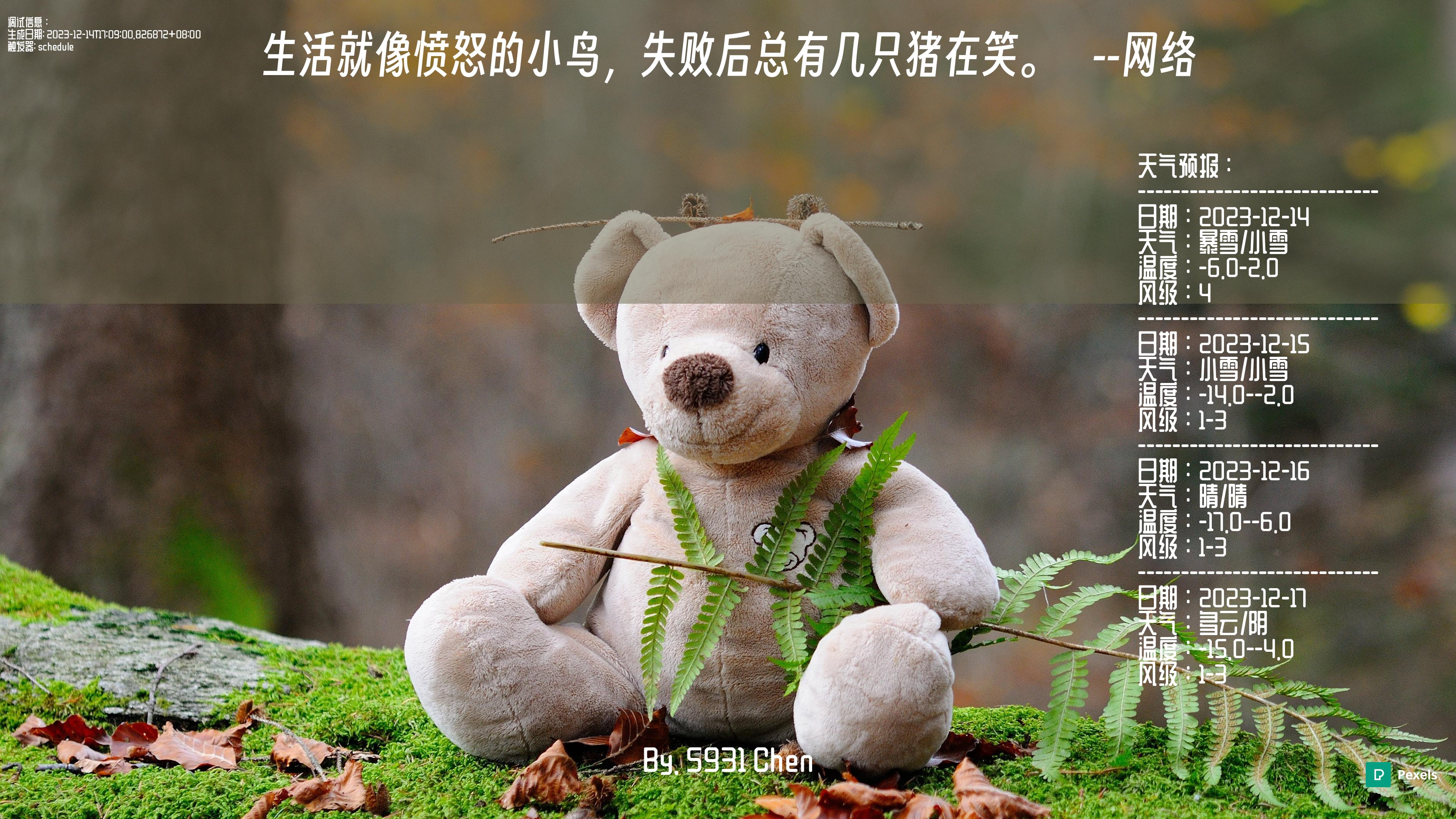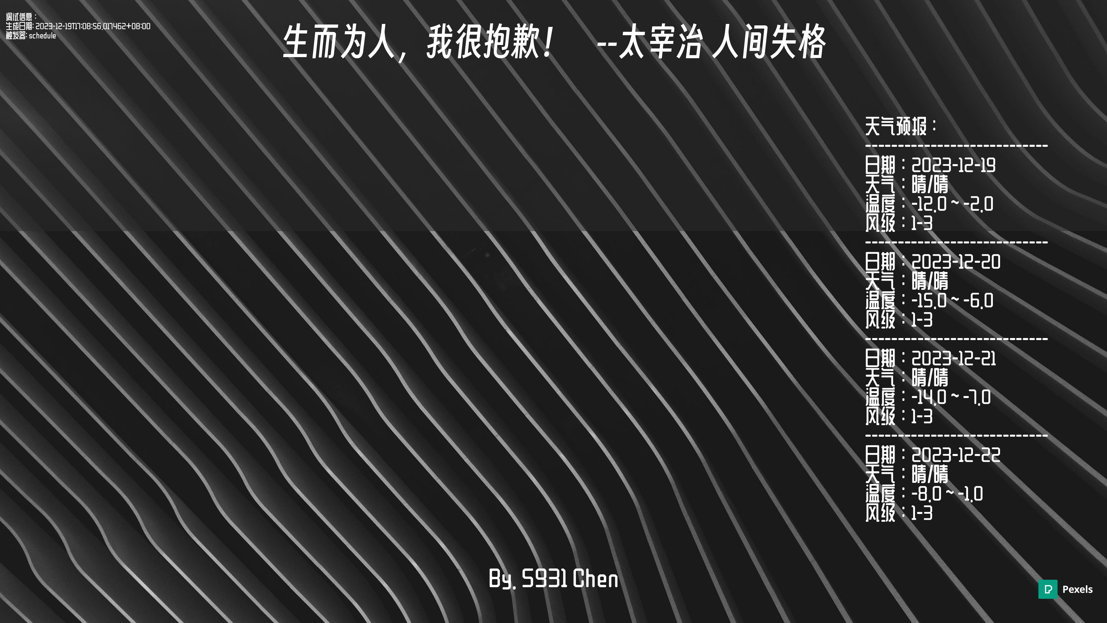 | 2023-06-23 | 1073078 | 为众人抱薪者,不可使其冻毙于风雪。 | 图片链接 | schedule |