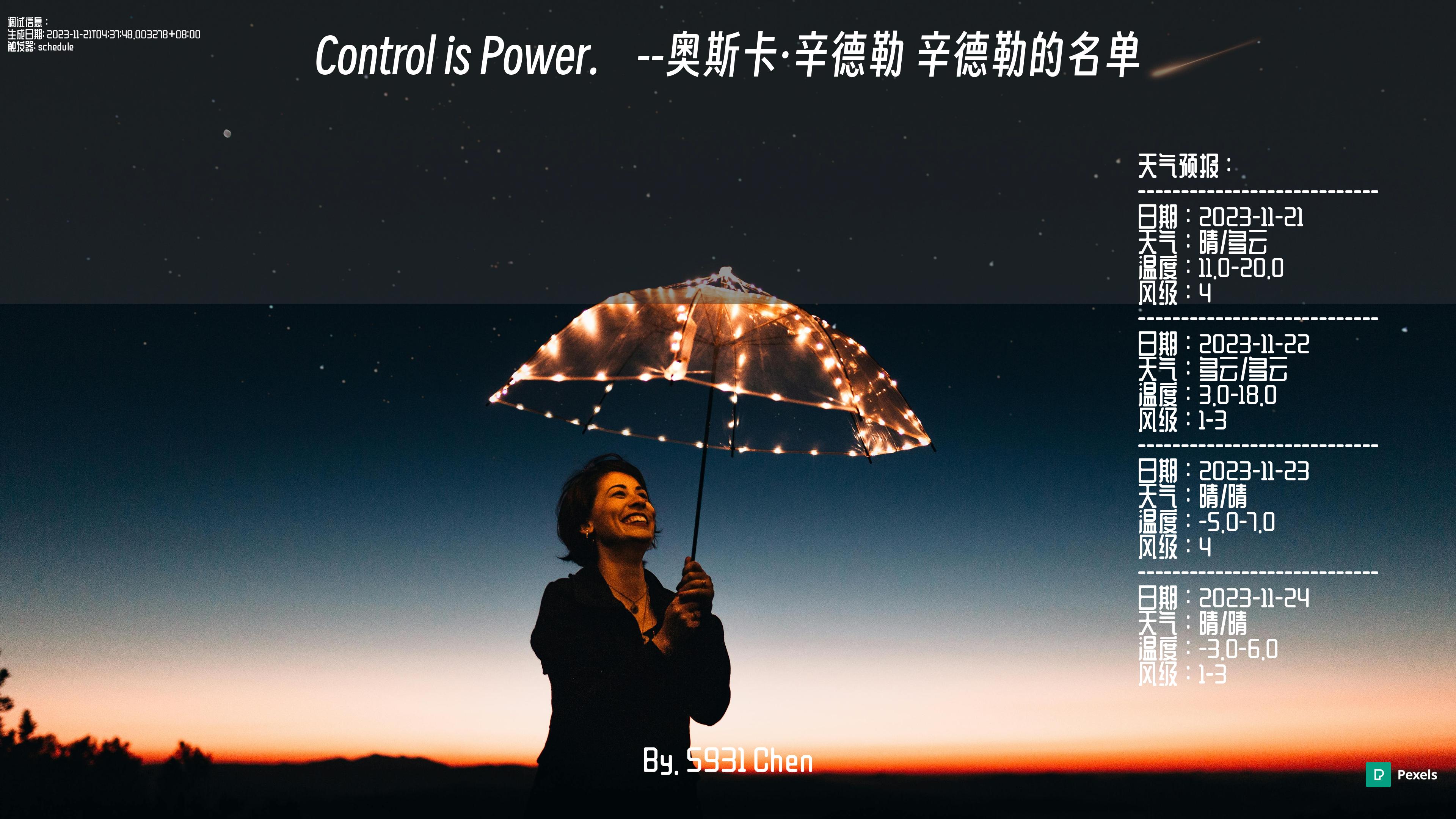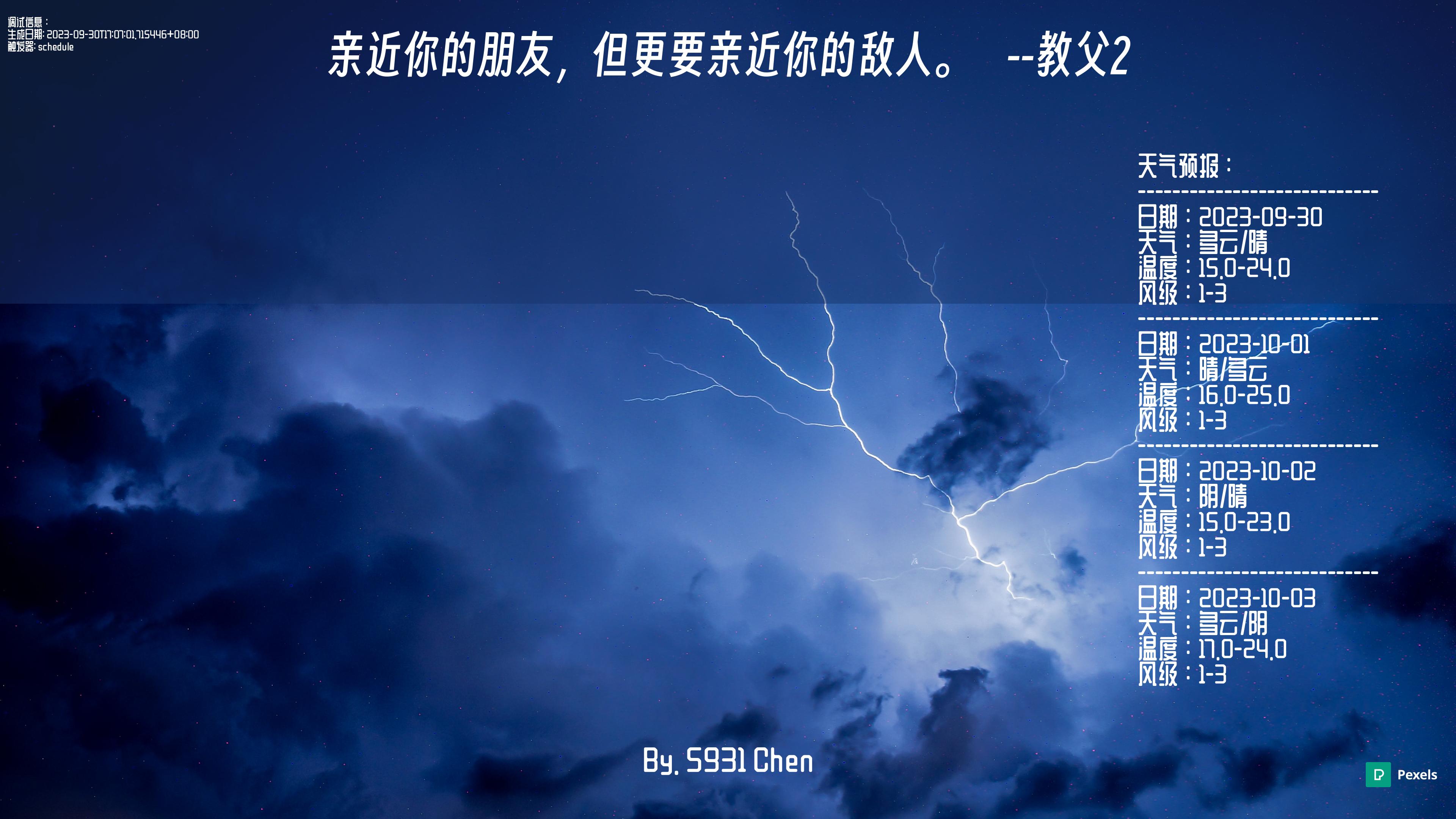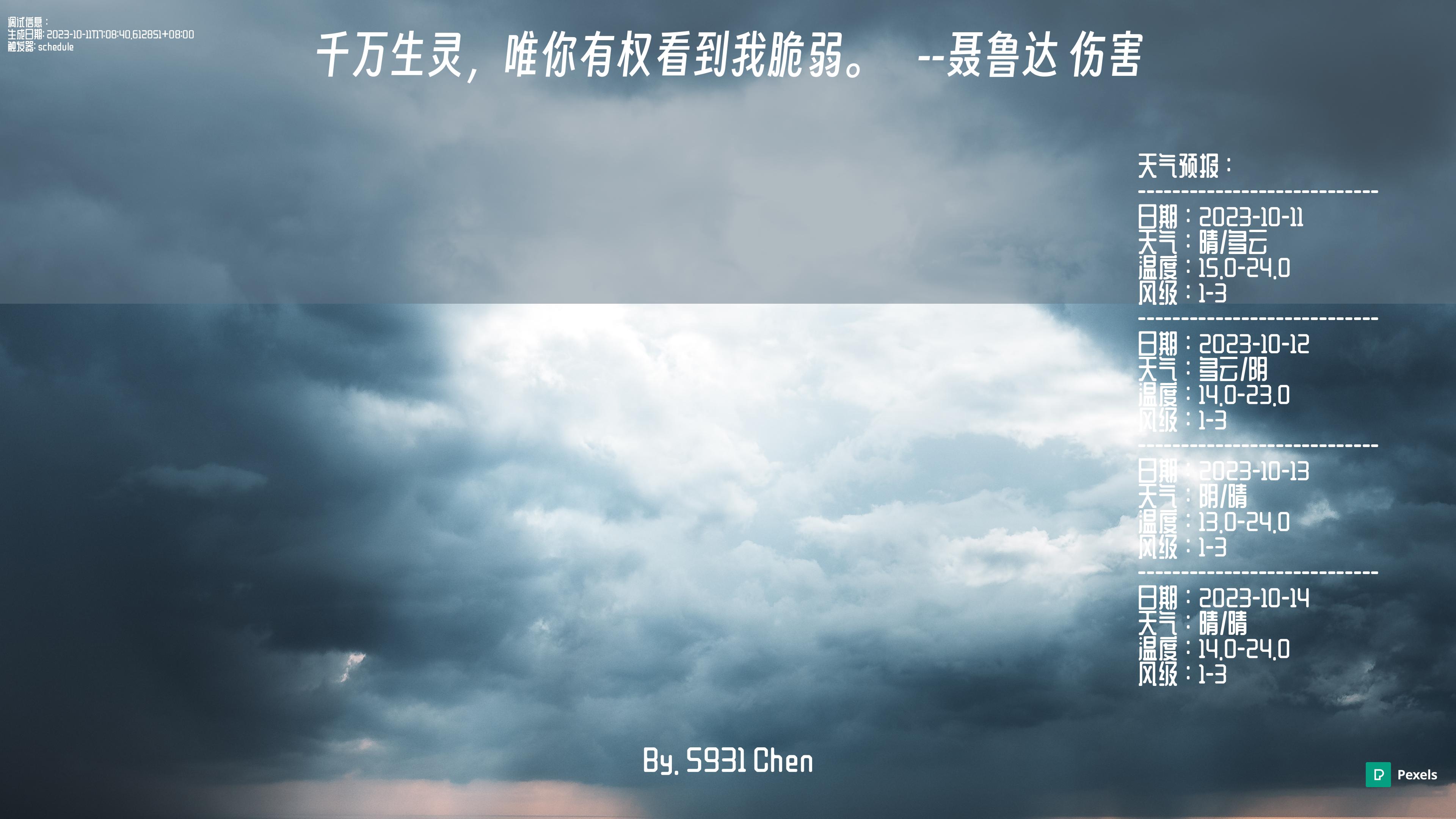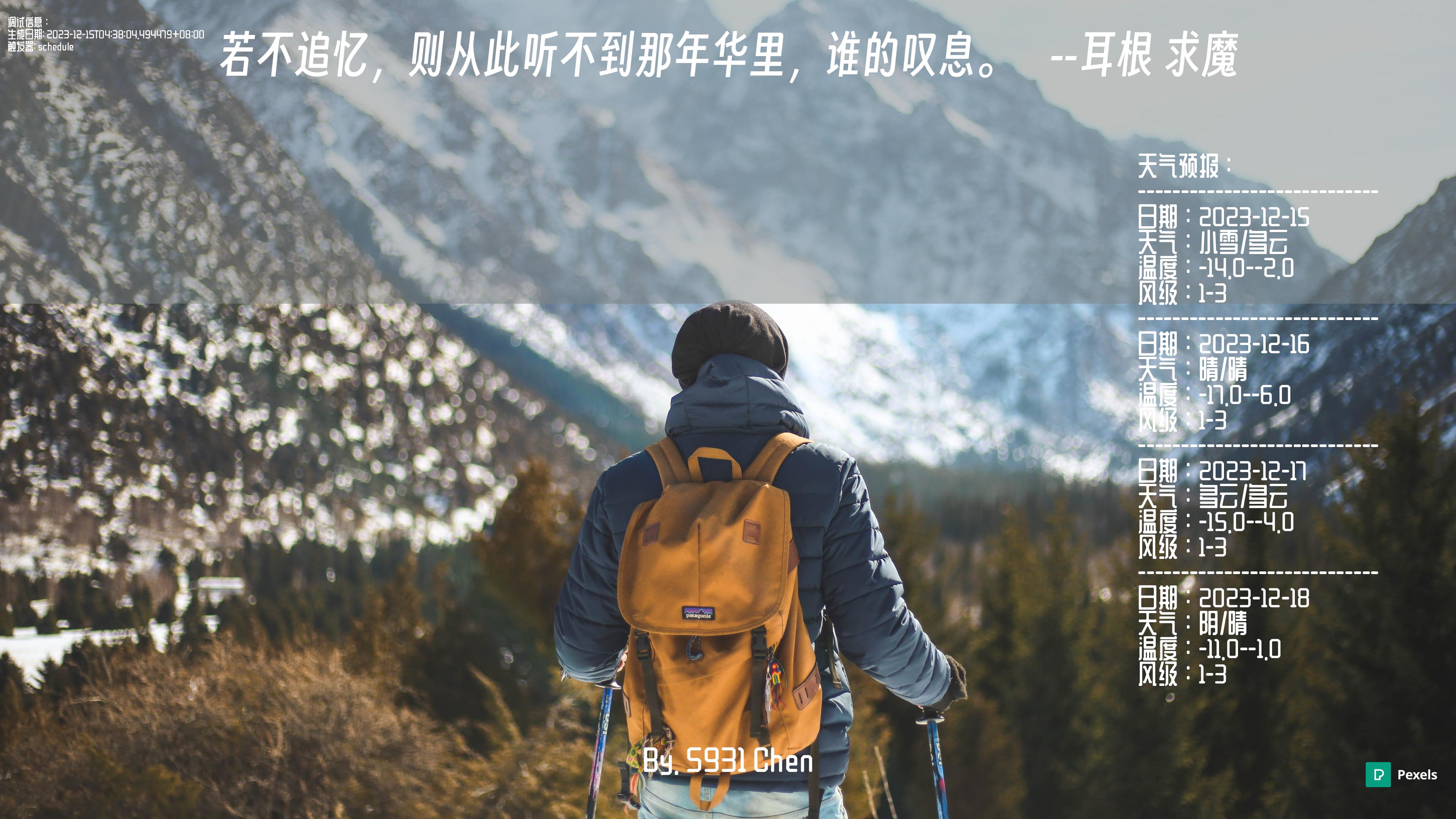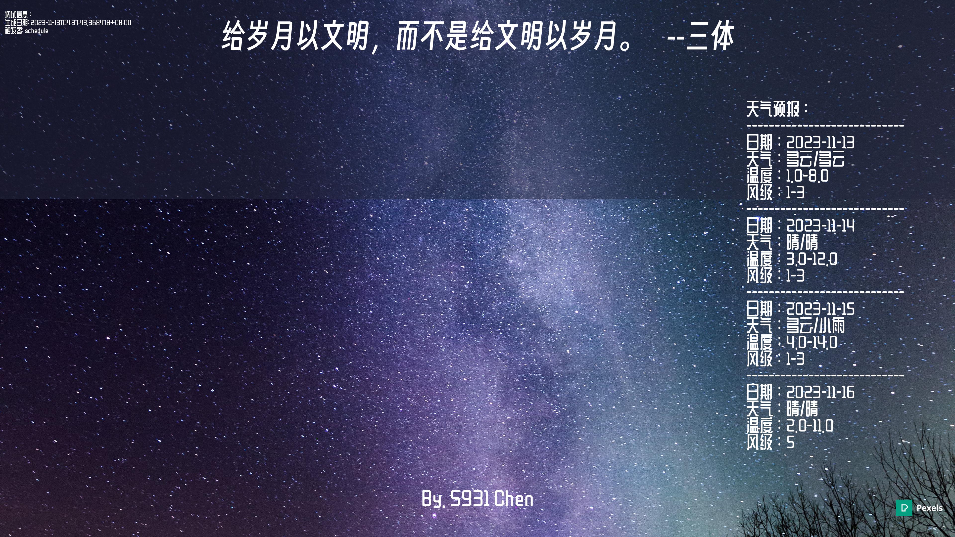 | 2023-06-23 | 1073078 | 为众人抱薪者,不可使其冻毙于风雪。 | 图片链接 | schedule |