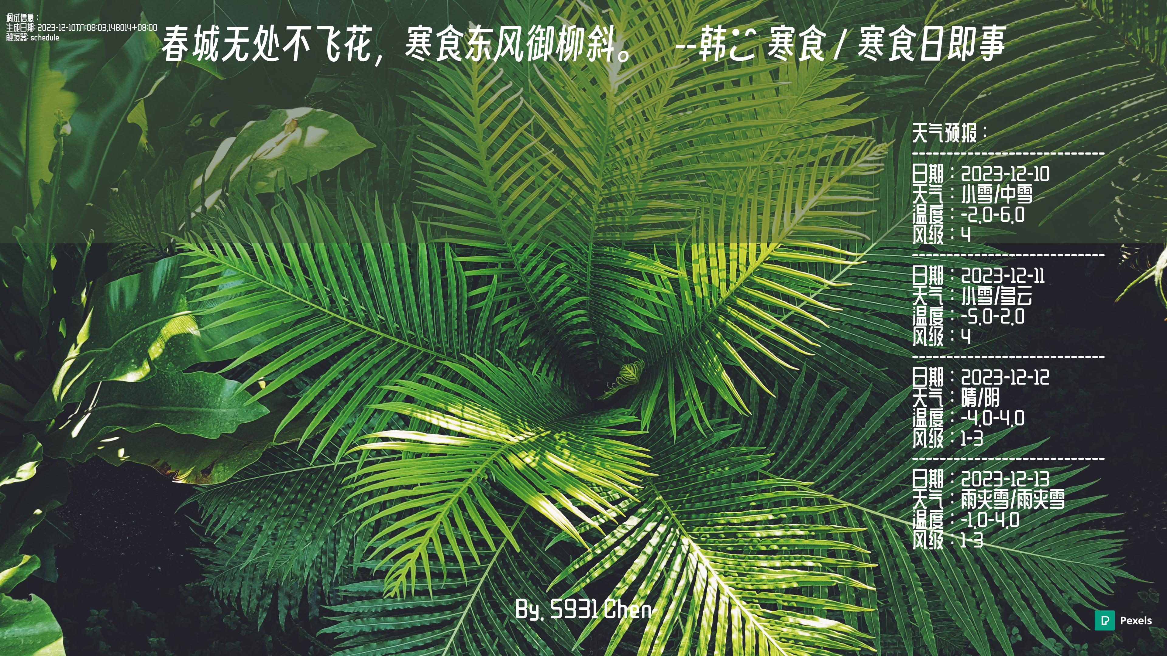 | 2023-06-29 | 1118866 | 好雨知时节,当春乃发生。 | 图片链接 | schedule |