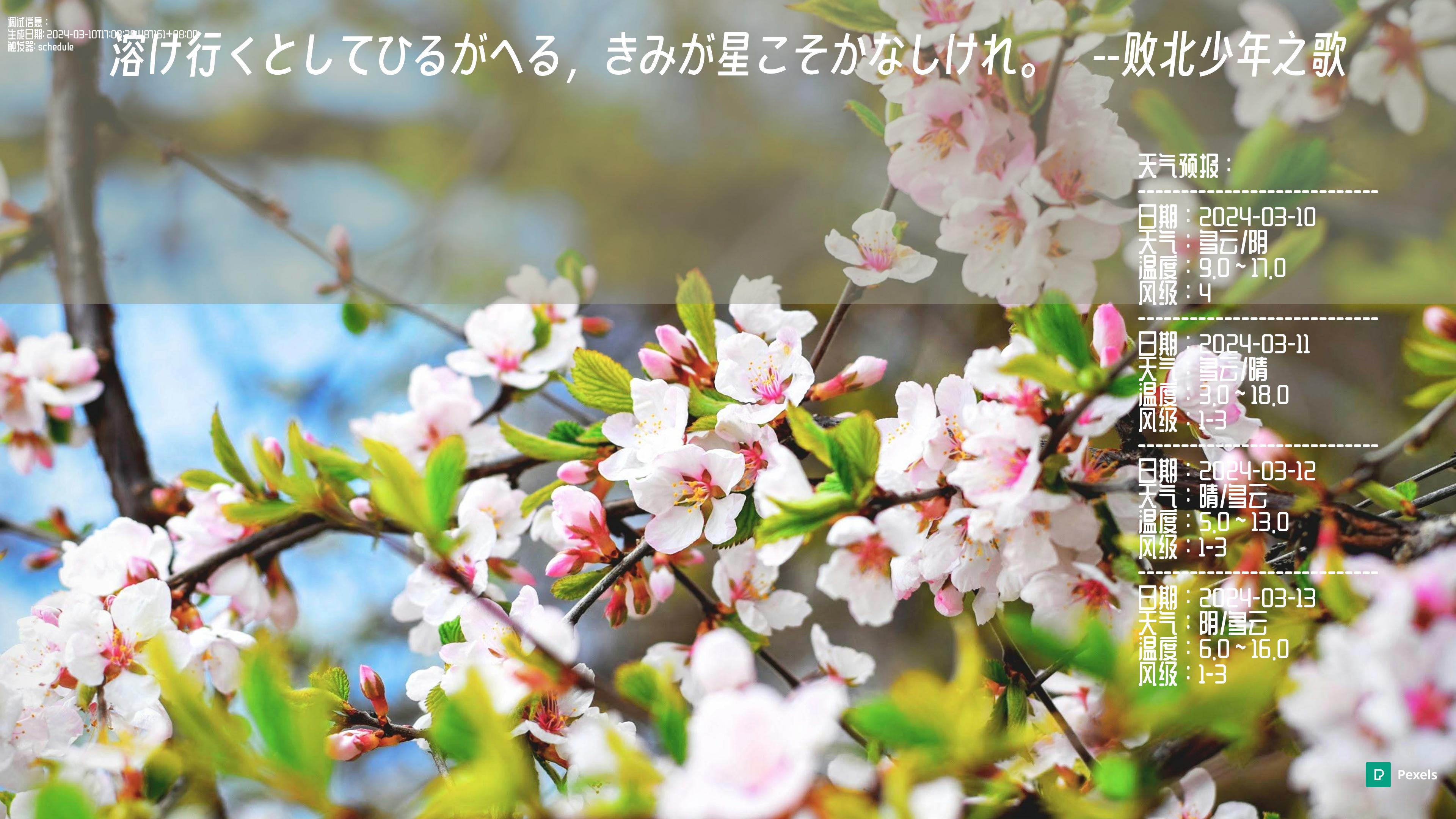 | 2023-07-02 | 216798 | 桃李春风一杯酒,江湖夜雨十年灯。 | 图片链接 | schedule |