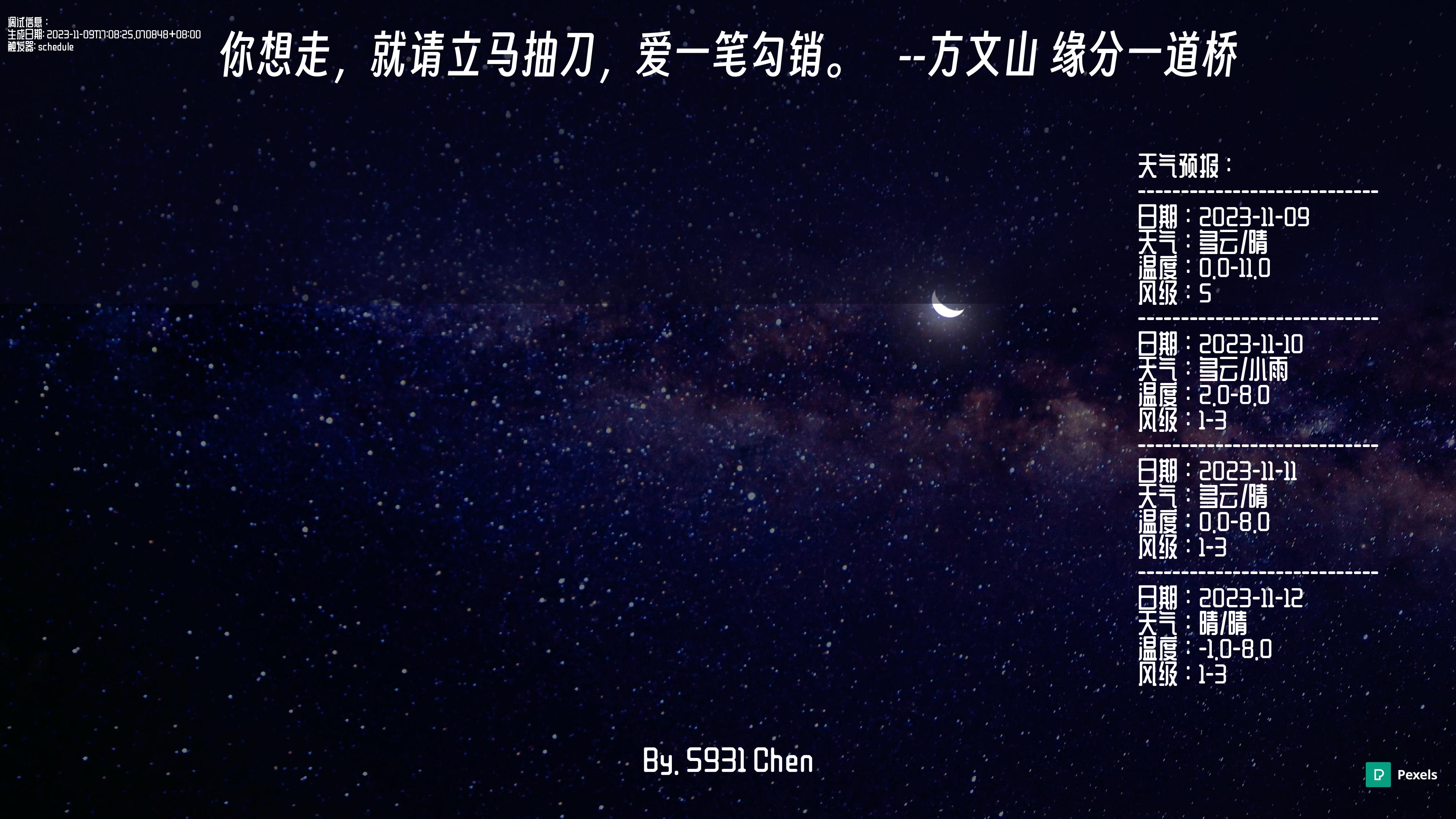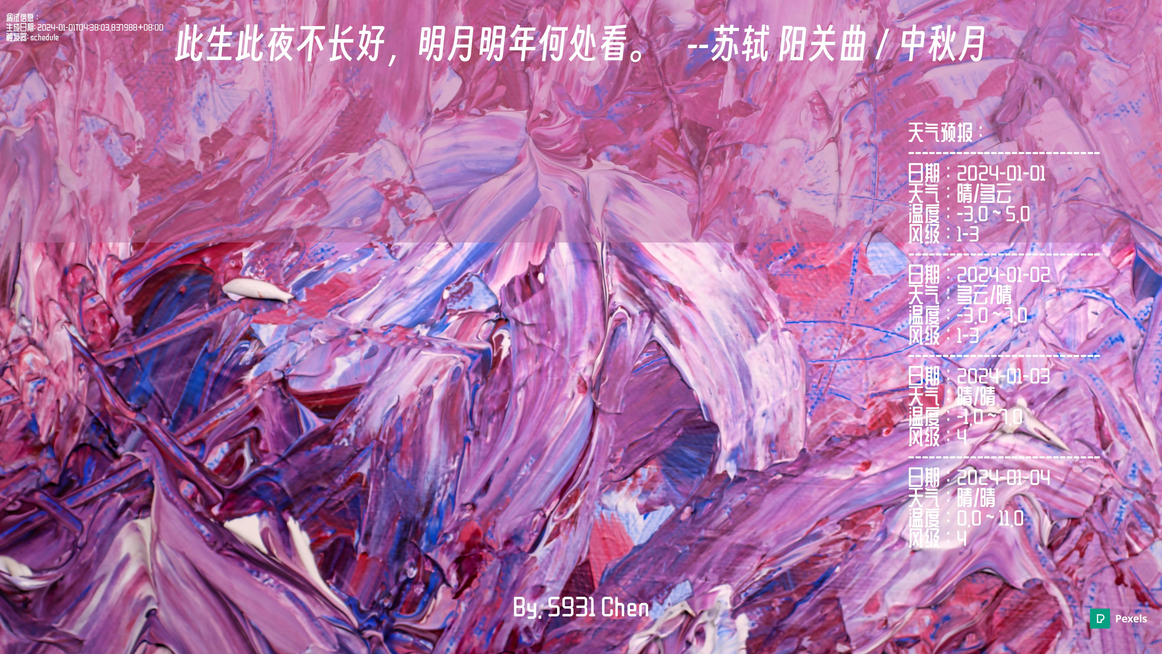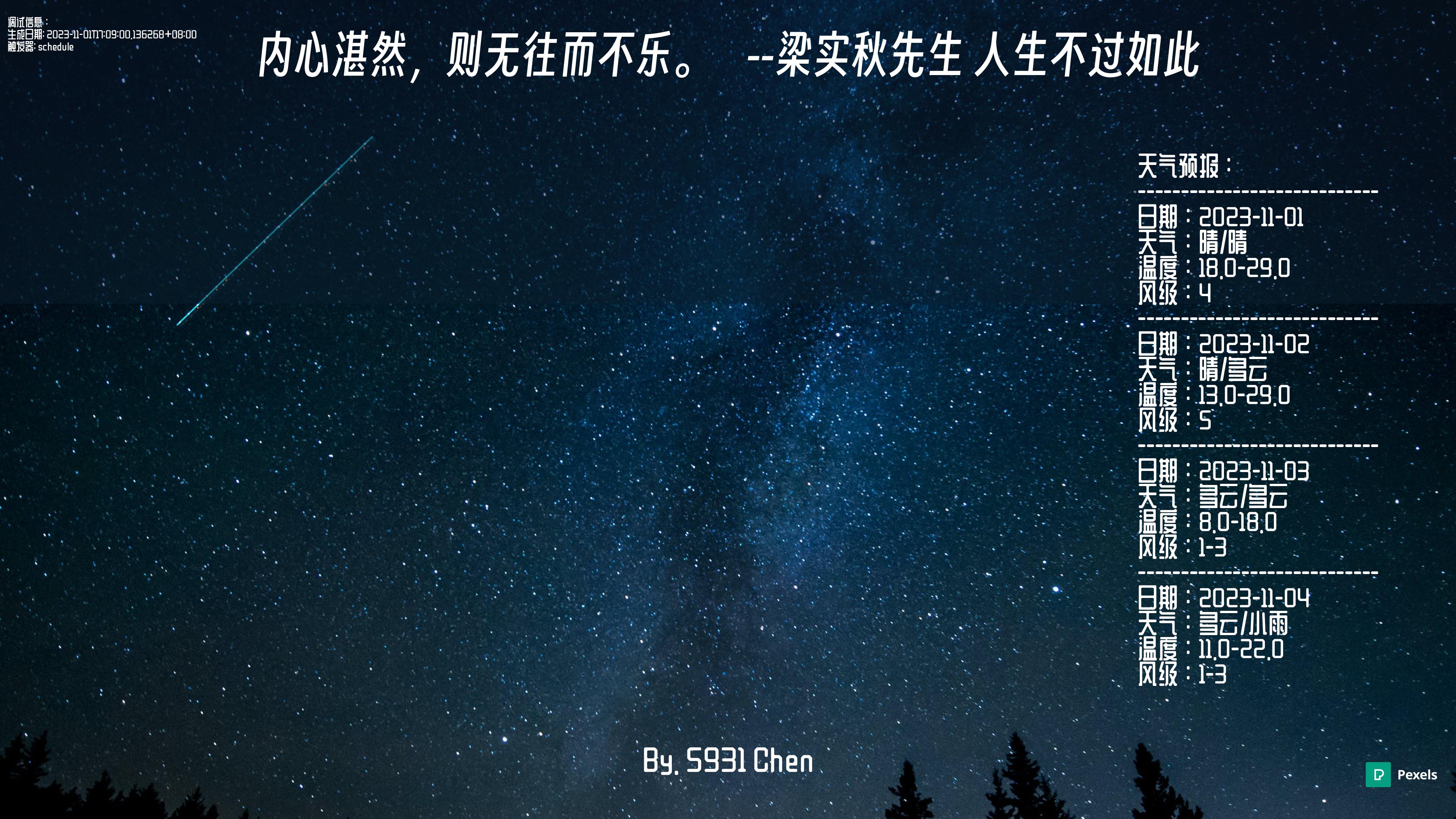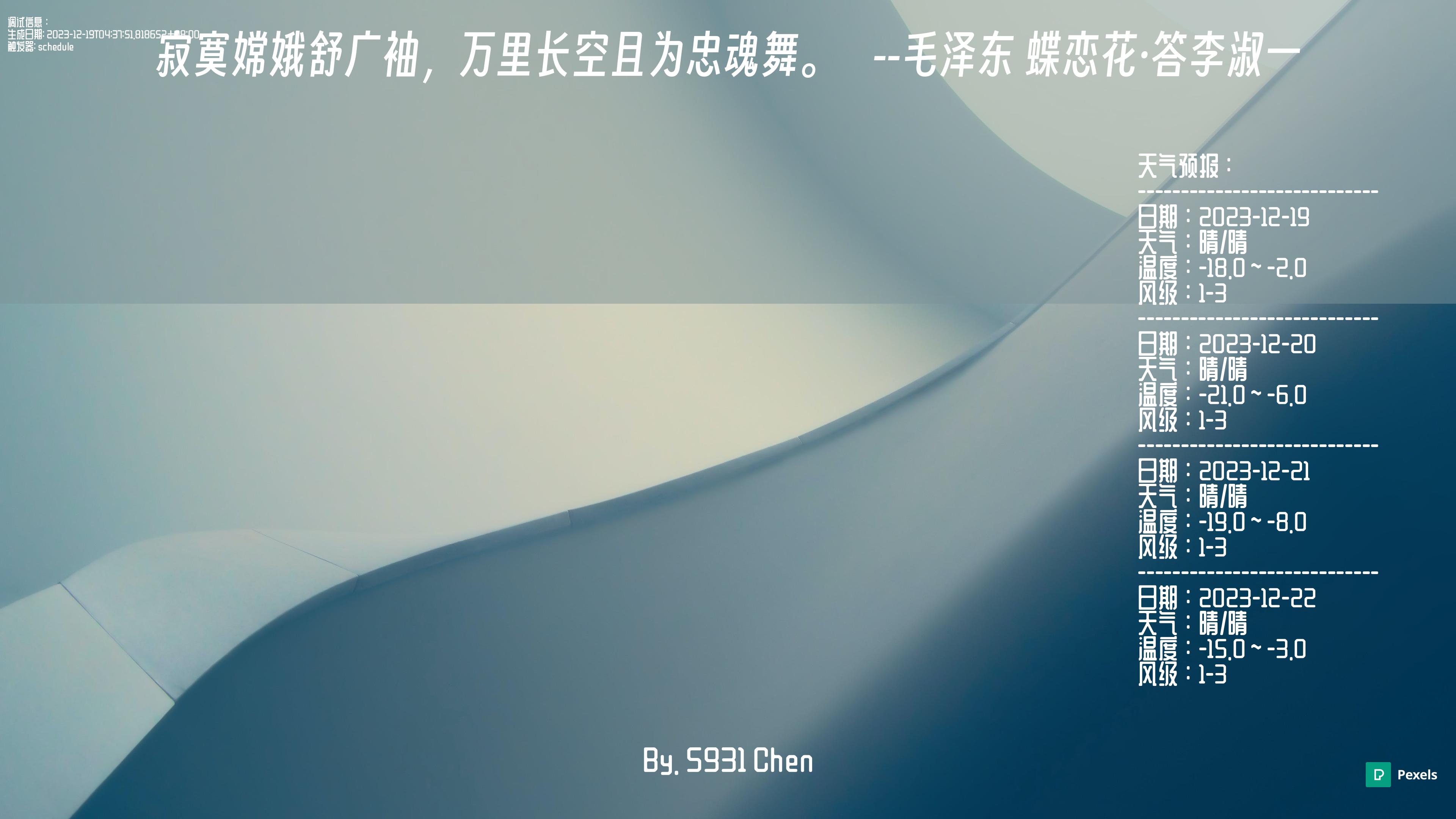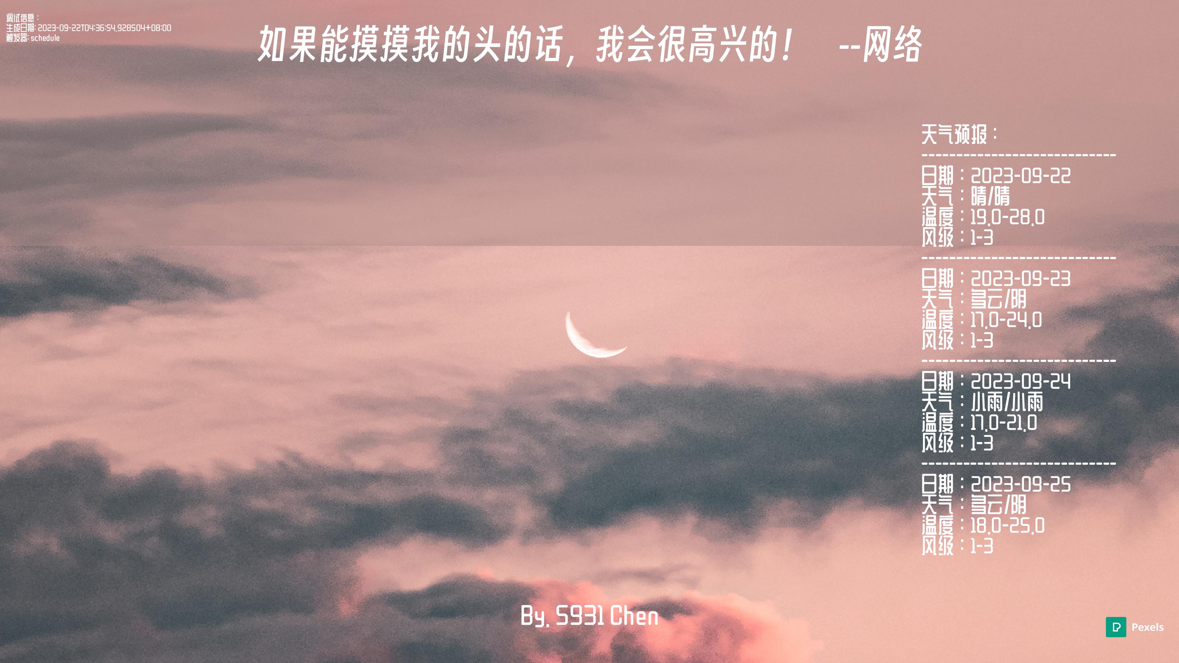 | 2023-06-27 | 1314186 | 云母屏风烛影深,长河渐落晓星沉。 | 图片链接 | schedule |