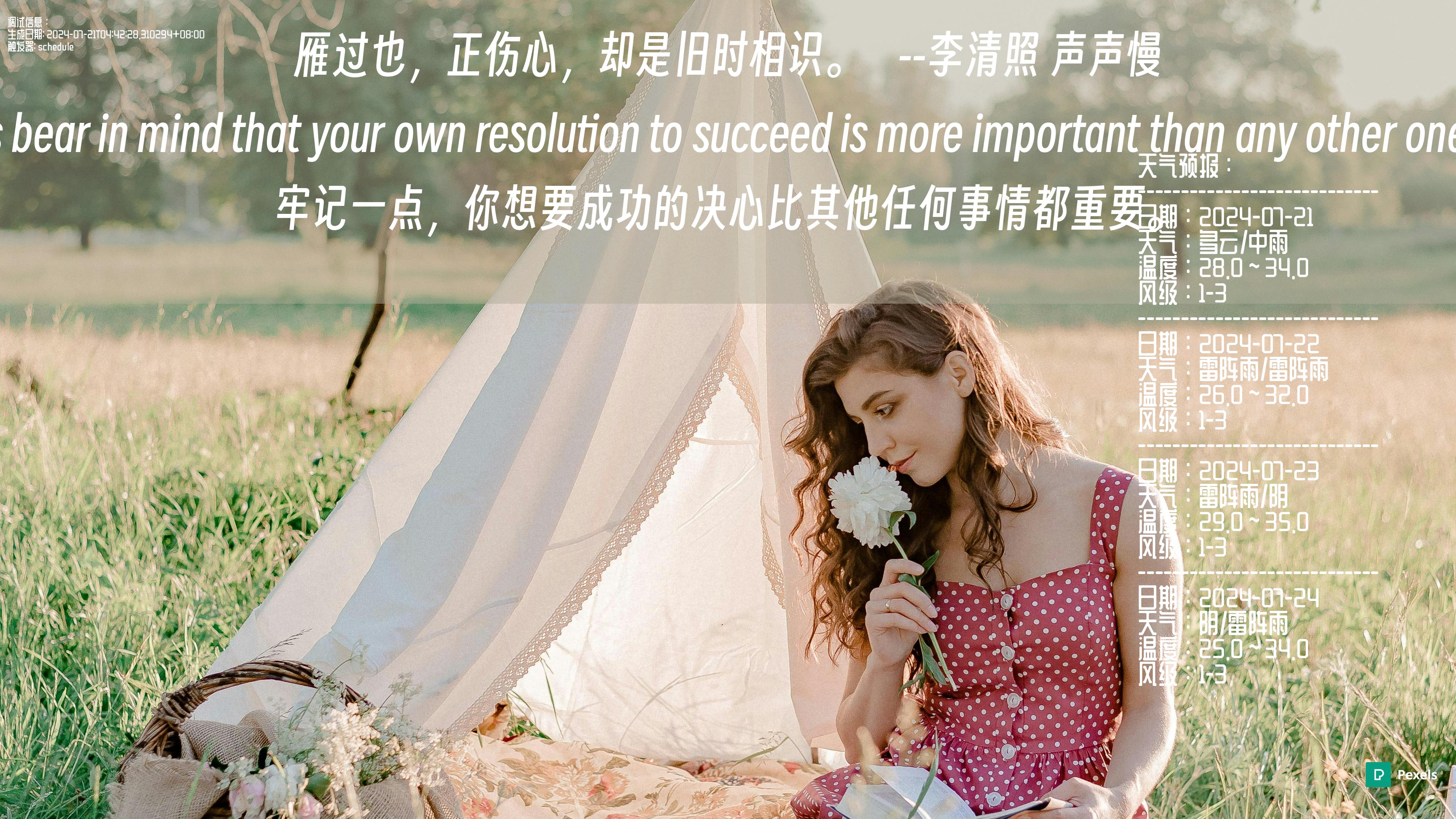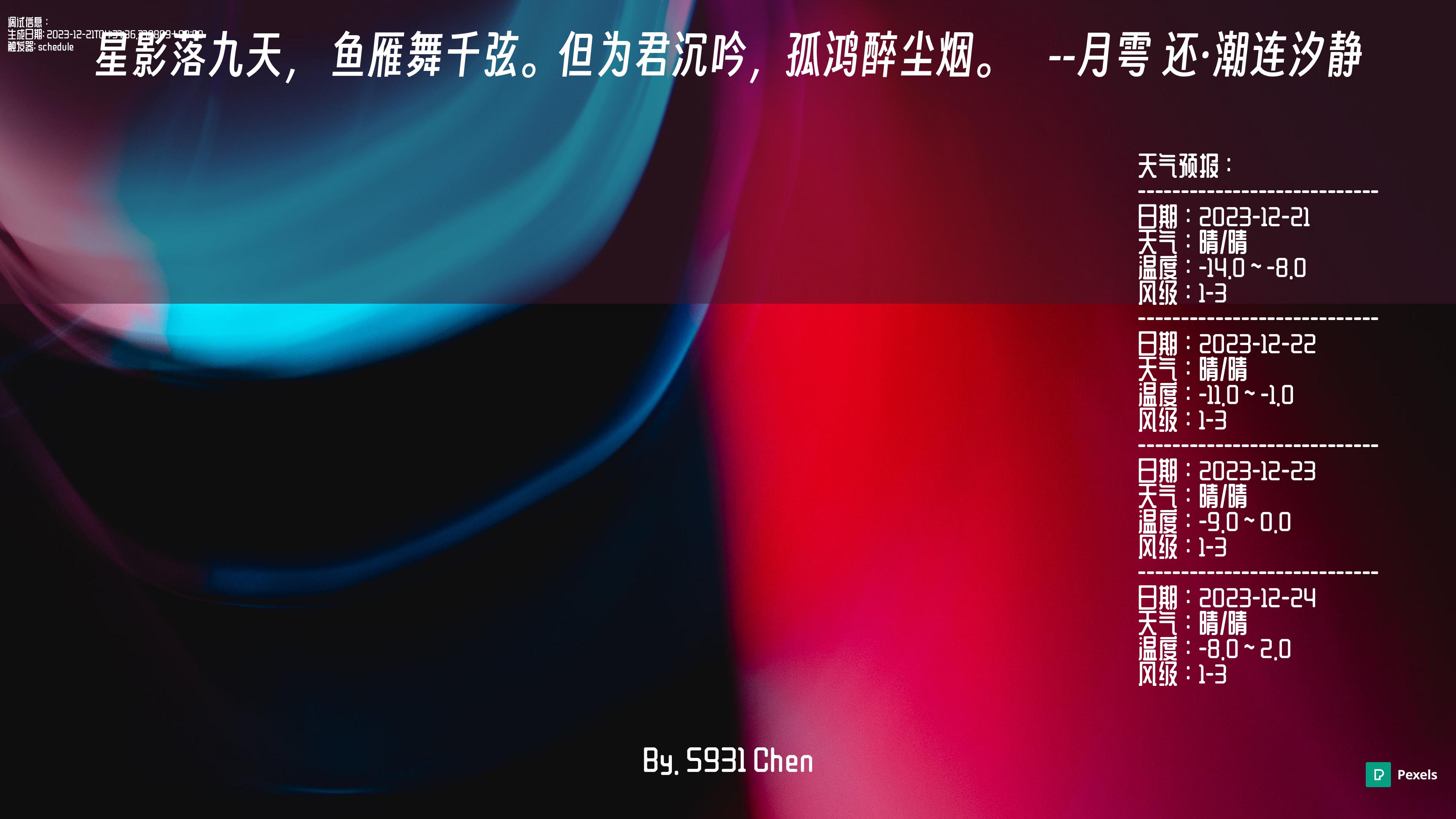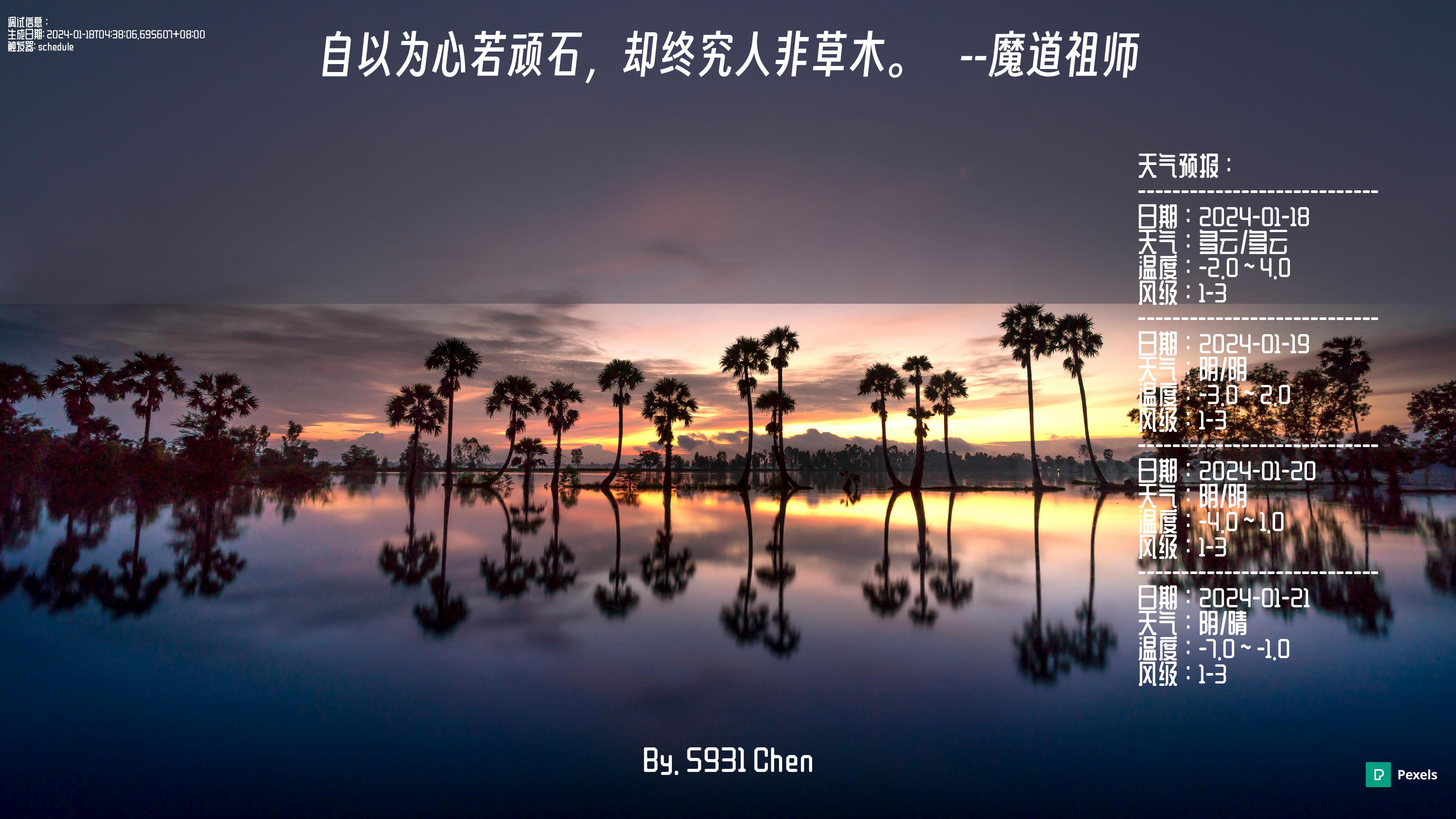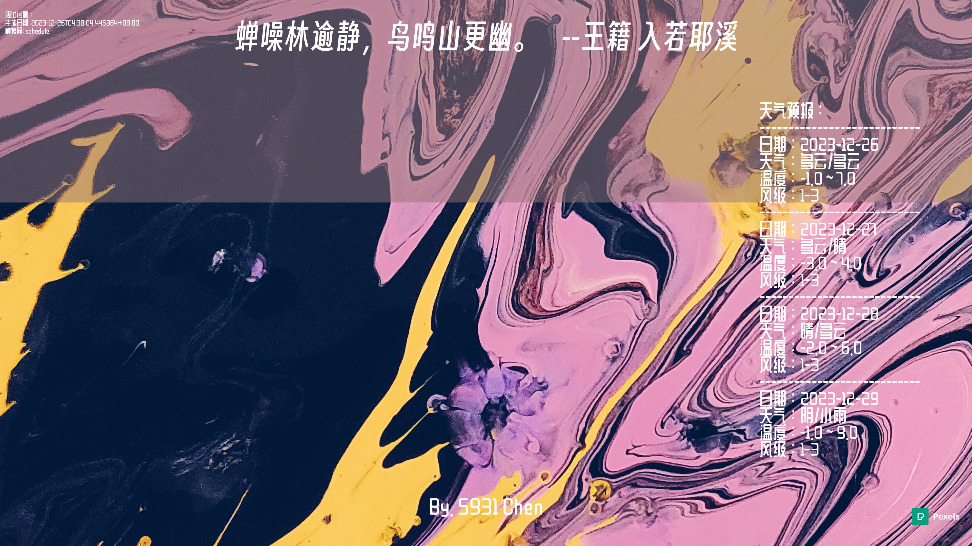 | 2023-06-27 | 1314186 | 云母屏风烛影深,长河渐落晓星沉。 | 图片链接 | schedule |