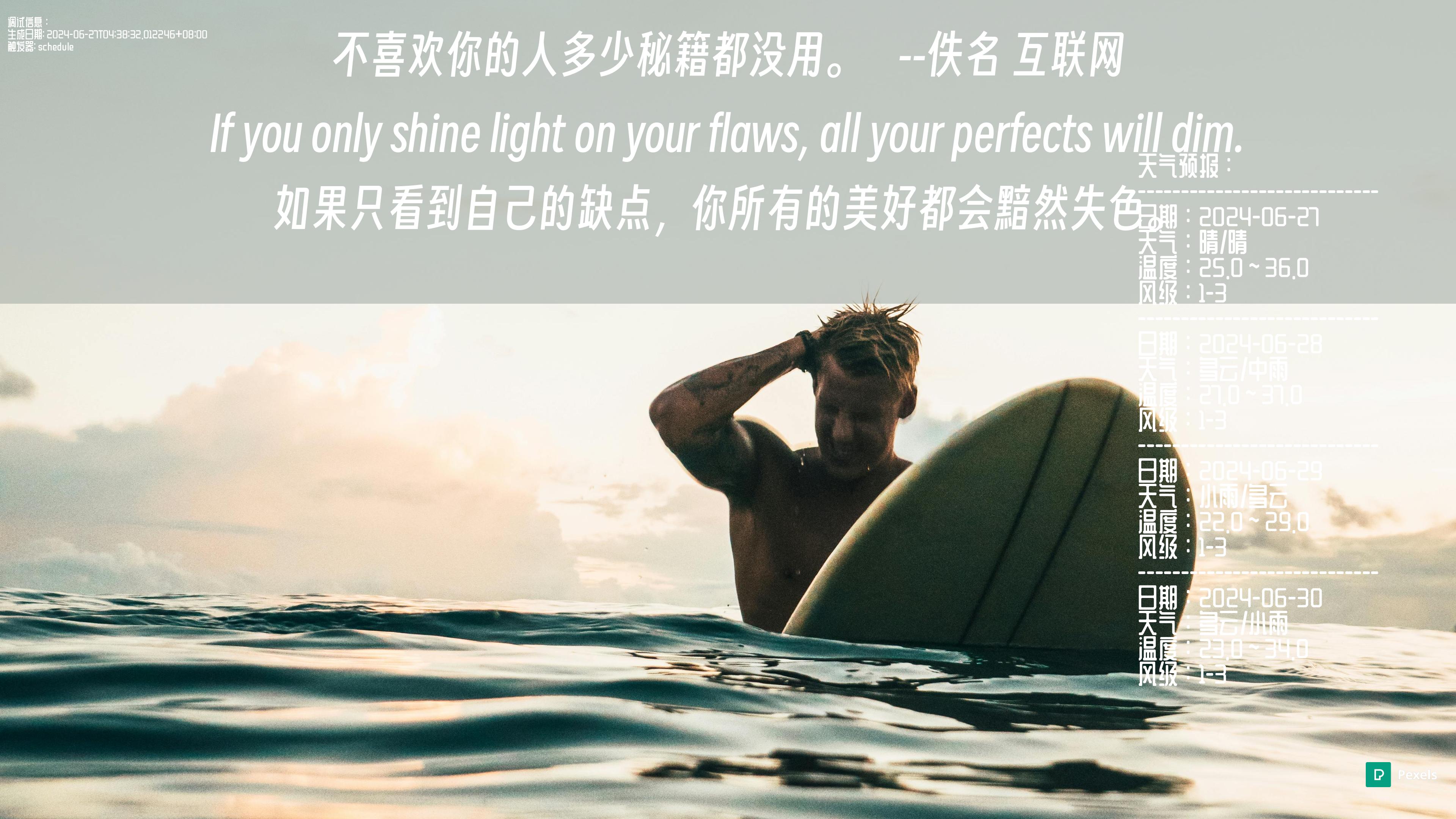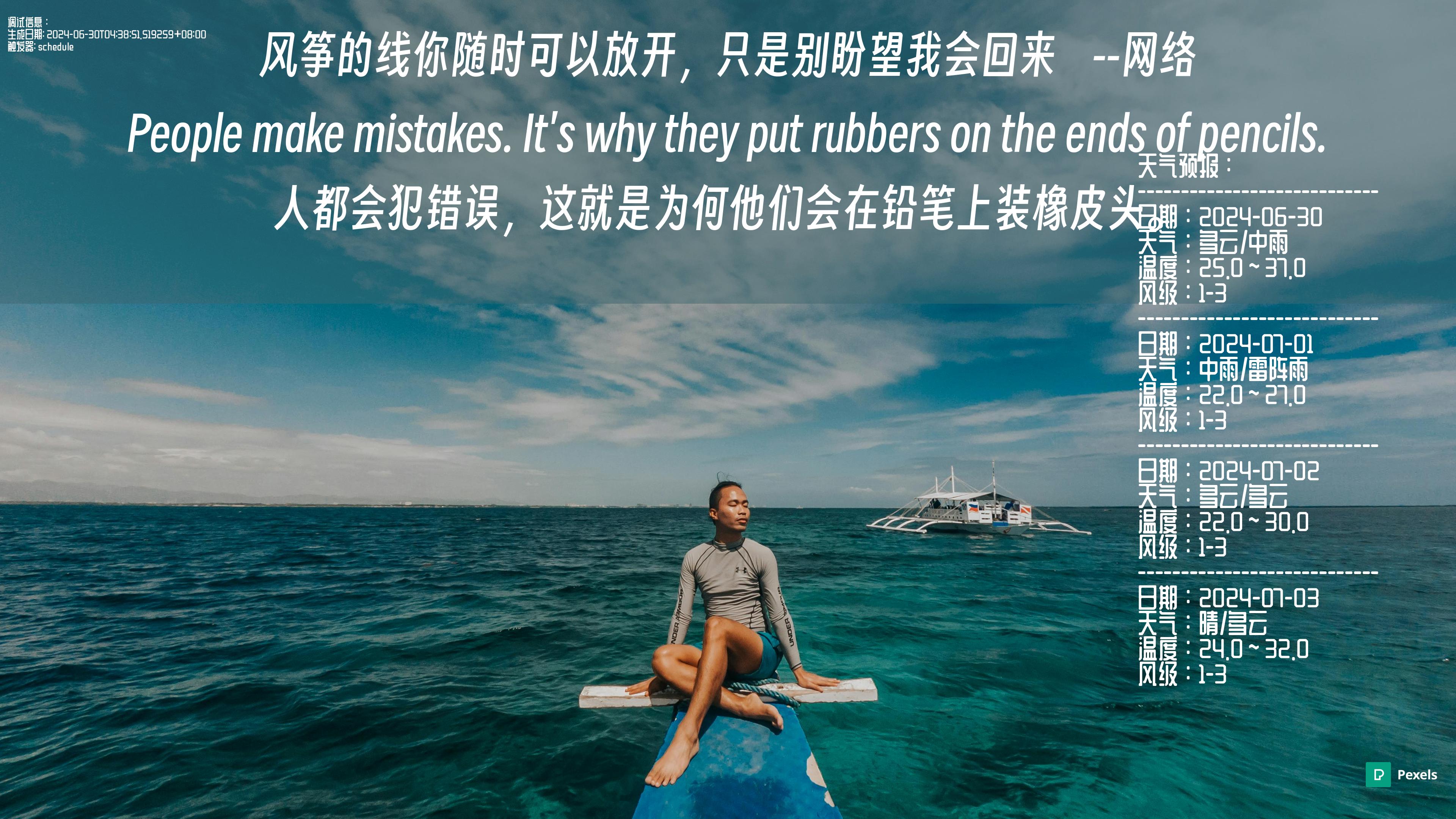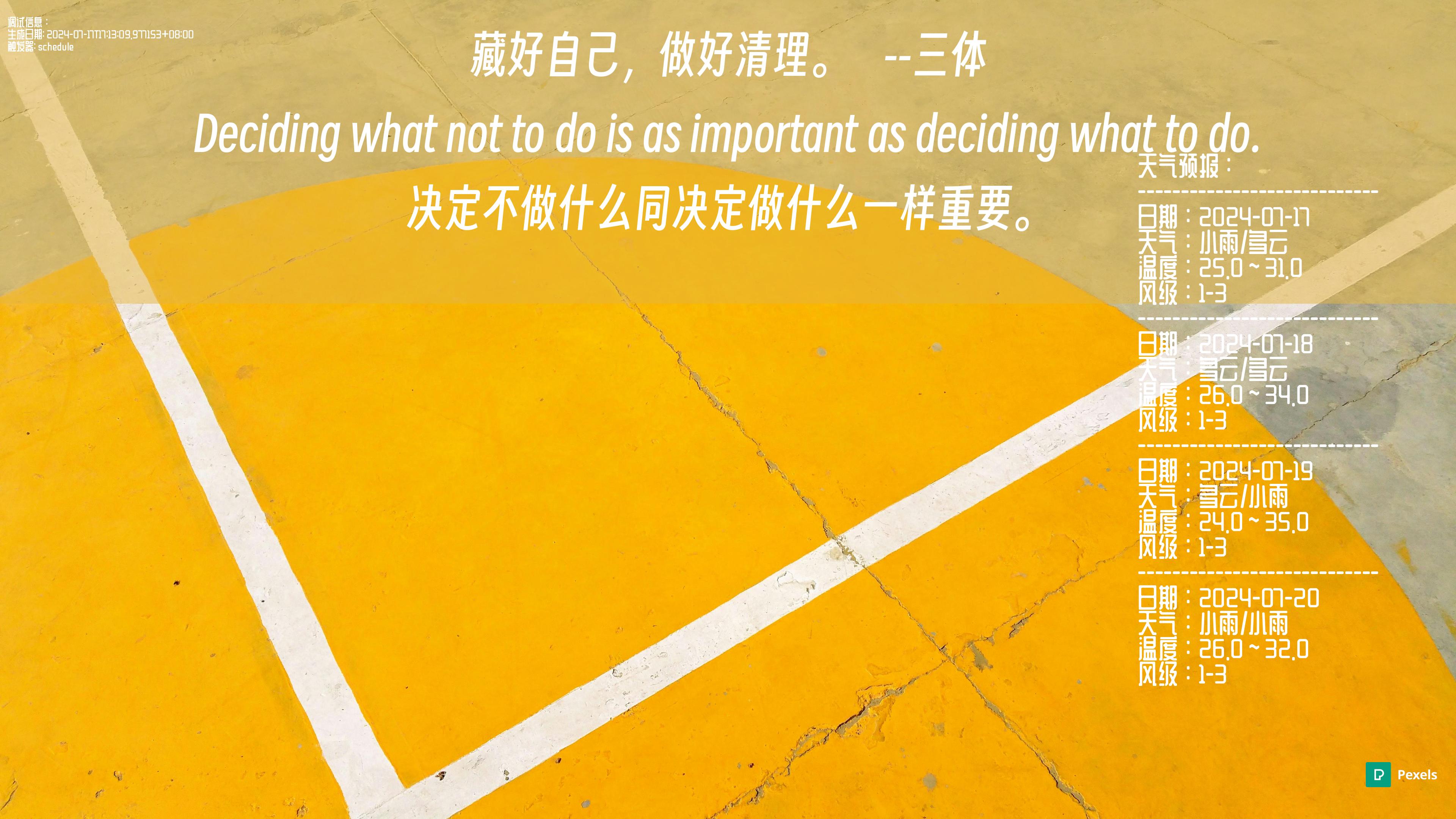 | 2023-06-29 | 957039 | 快乐的时候不要想以后,痛苦的时候多想想将来。 | 图片链接 | schedule |