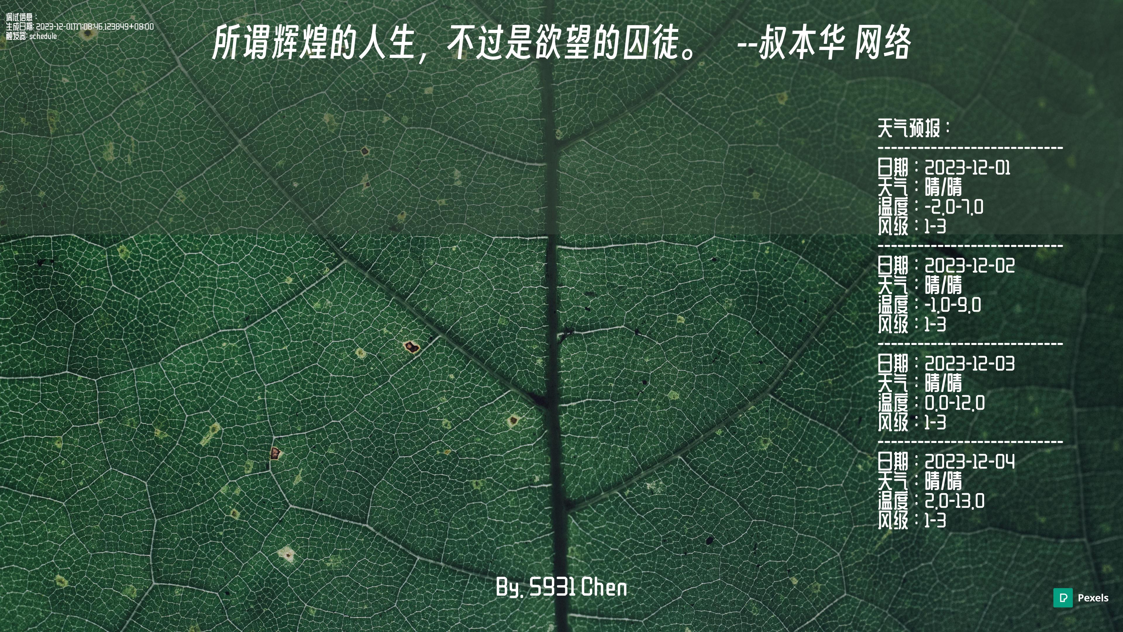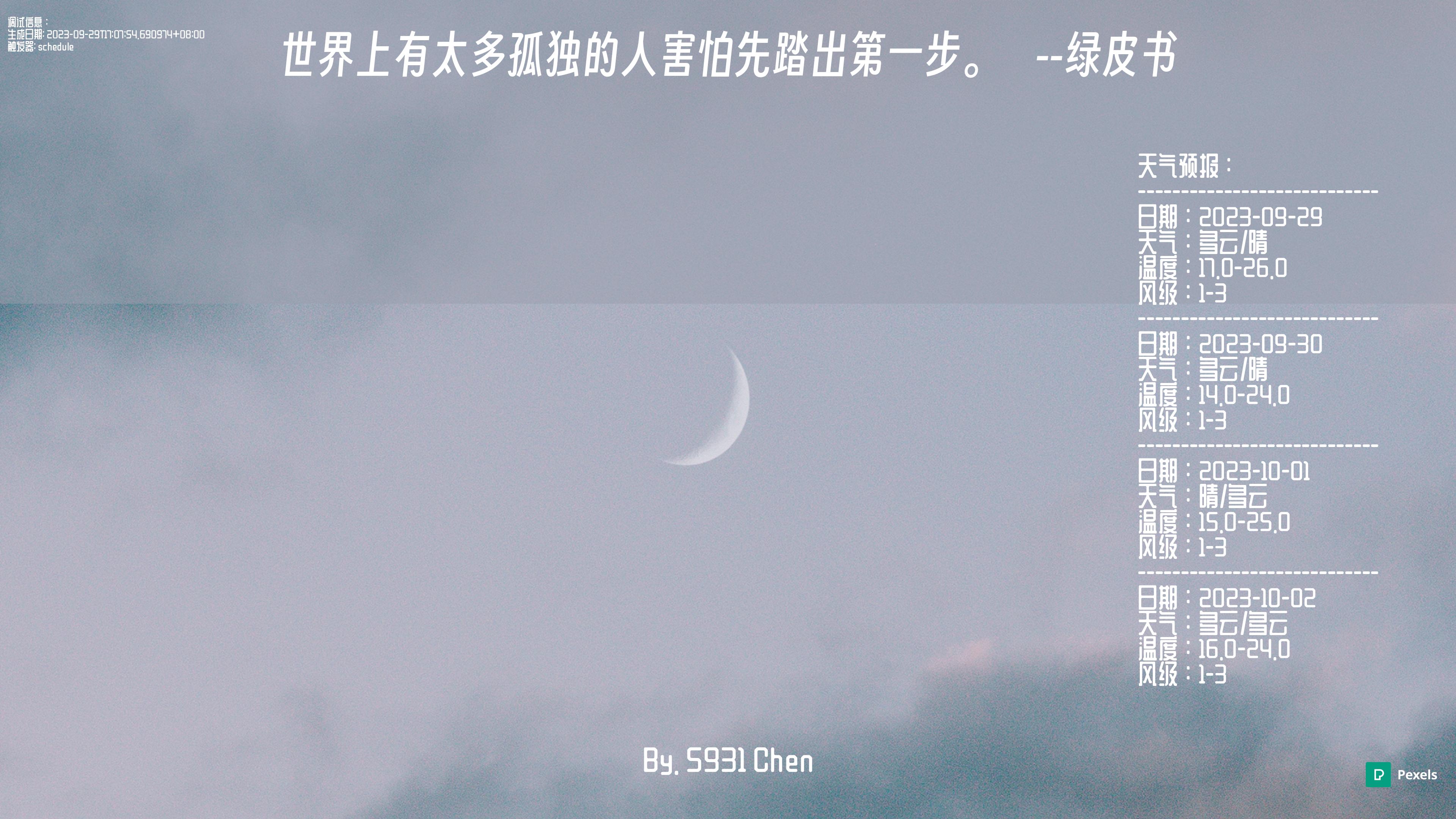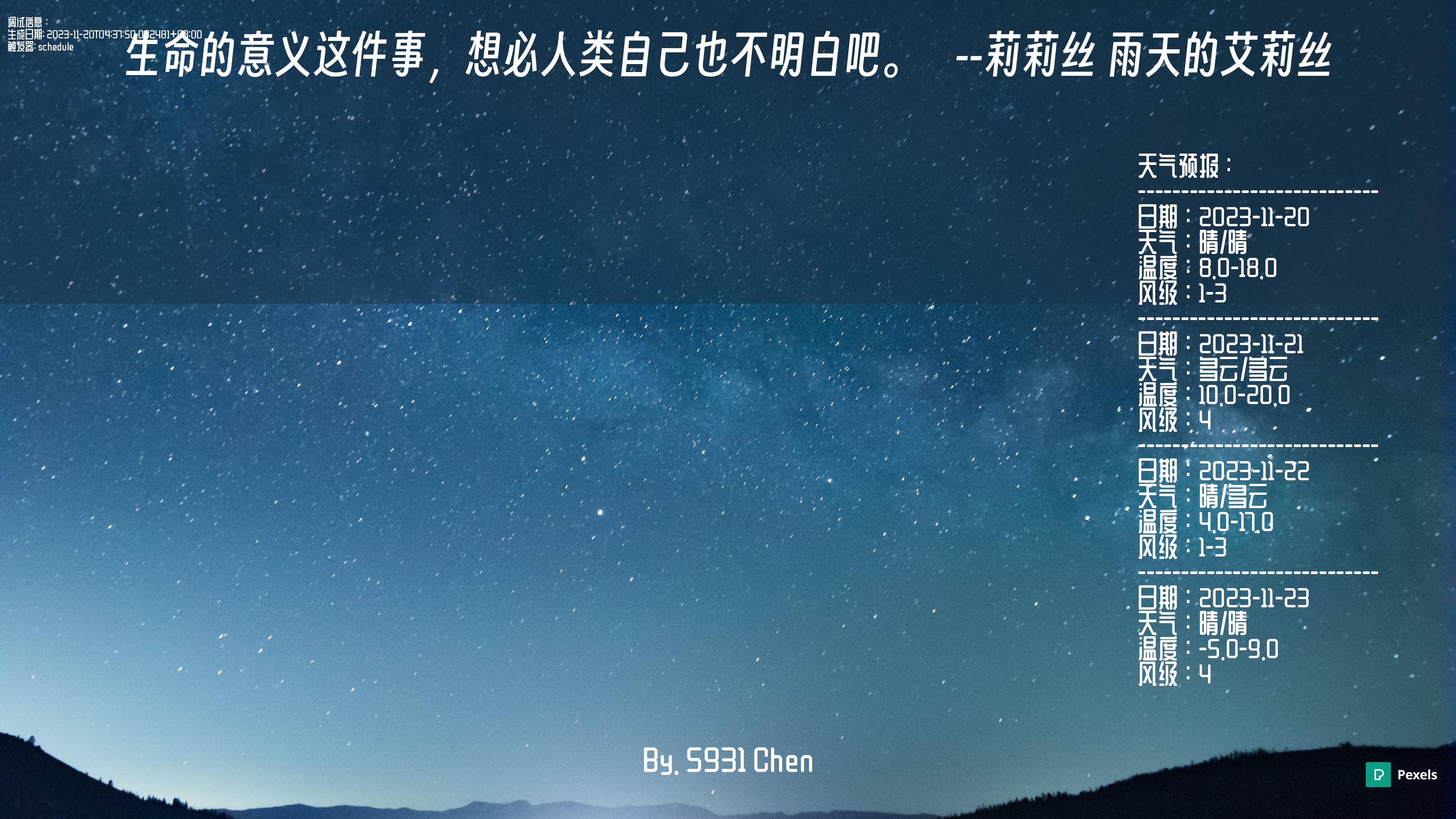 | 2023-06-26 | 2236602 | 生活既危险又稍纵即逝。 | 图片链接 | schedule |