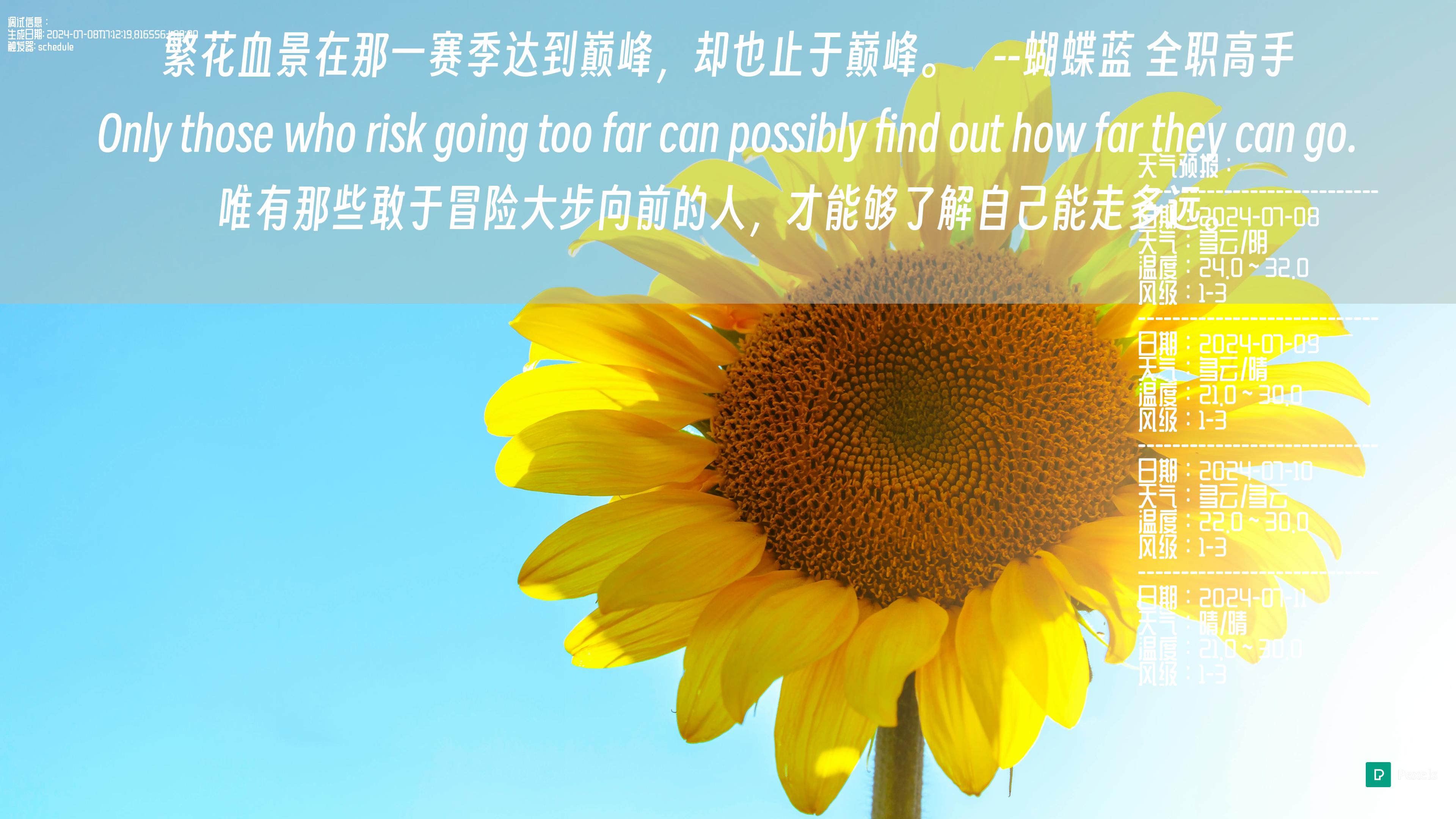 | 2023-07-03 | 731423 | 如果有来生,希望每次相遇,都能化为永恒。 | 图片链接 | schedule |