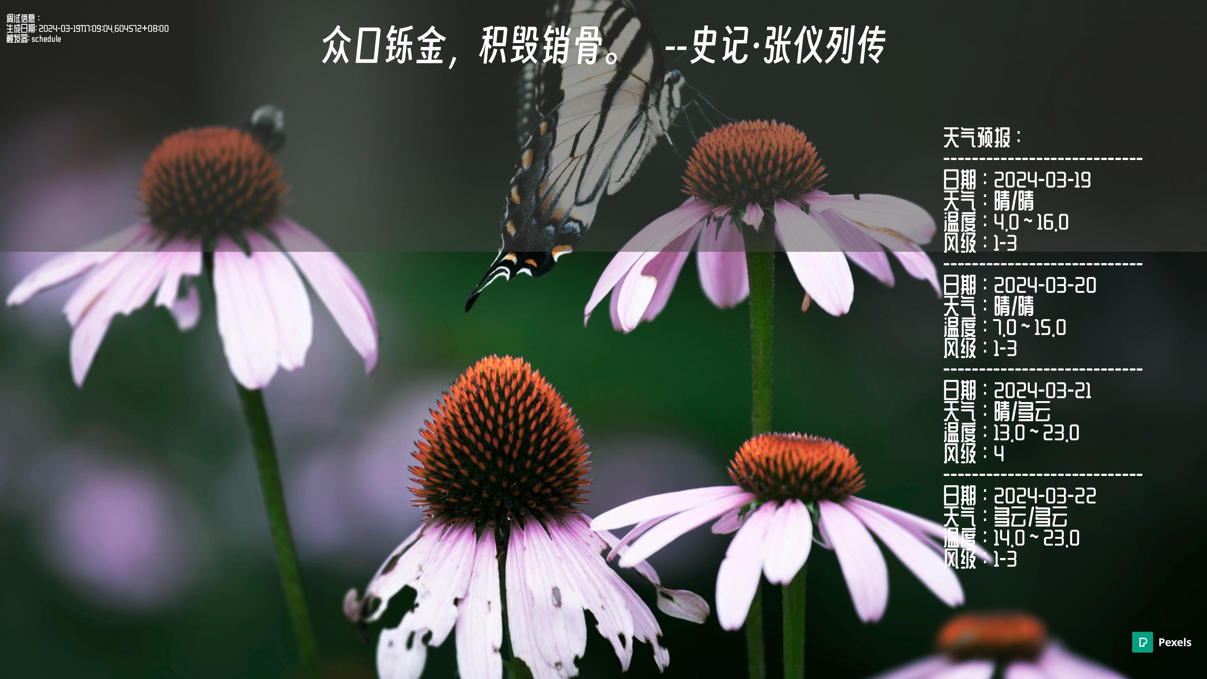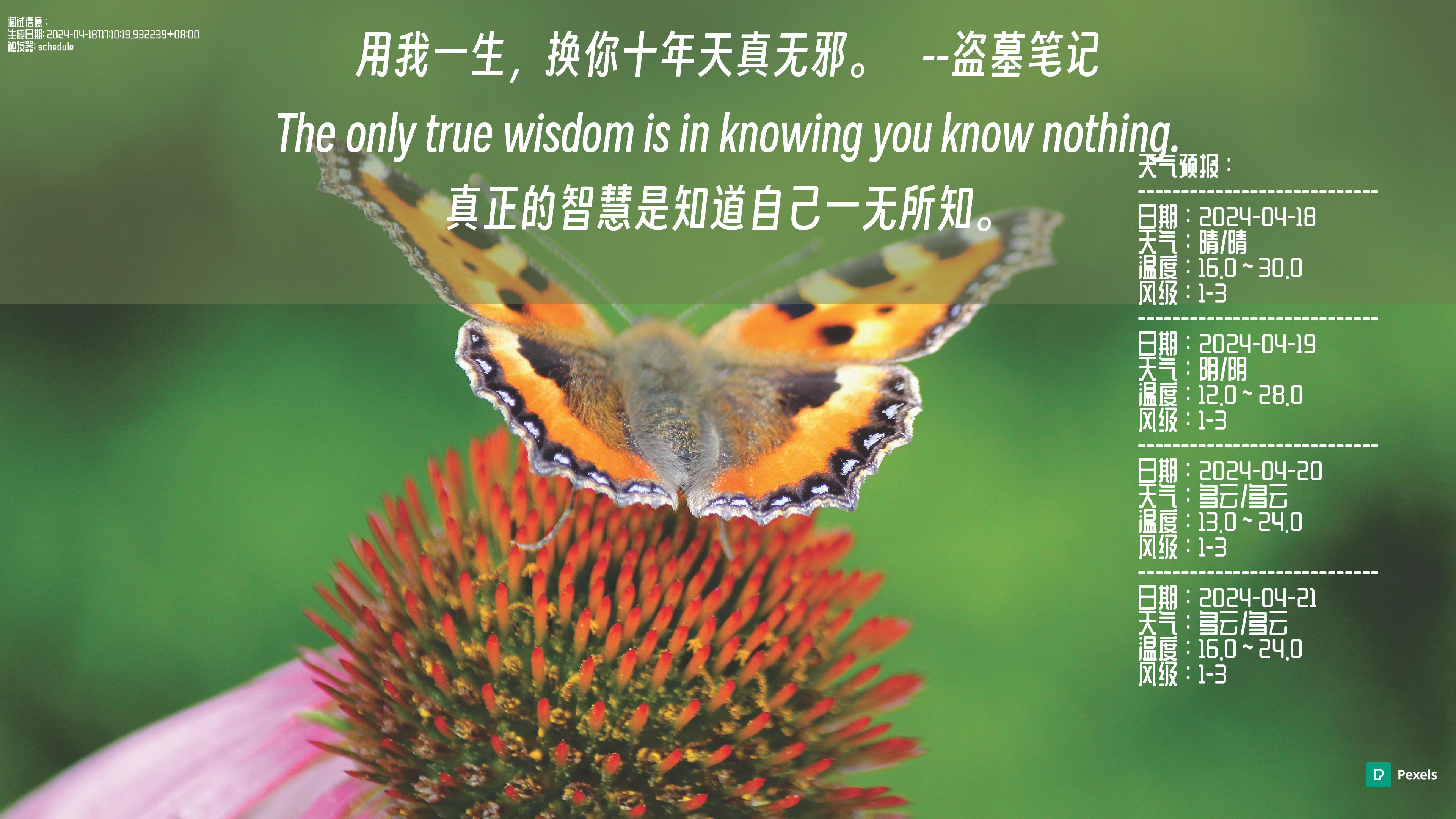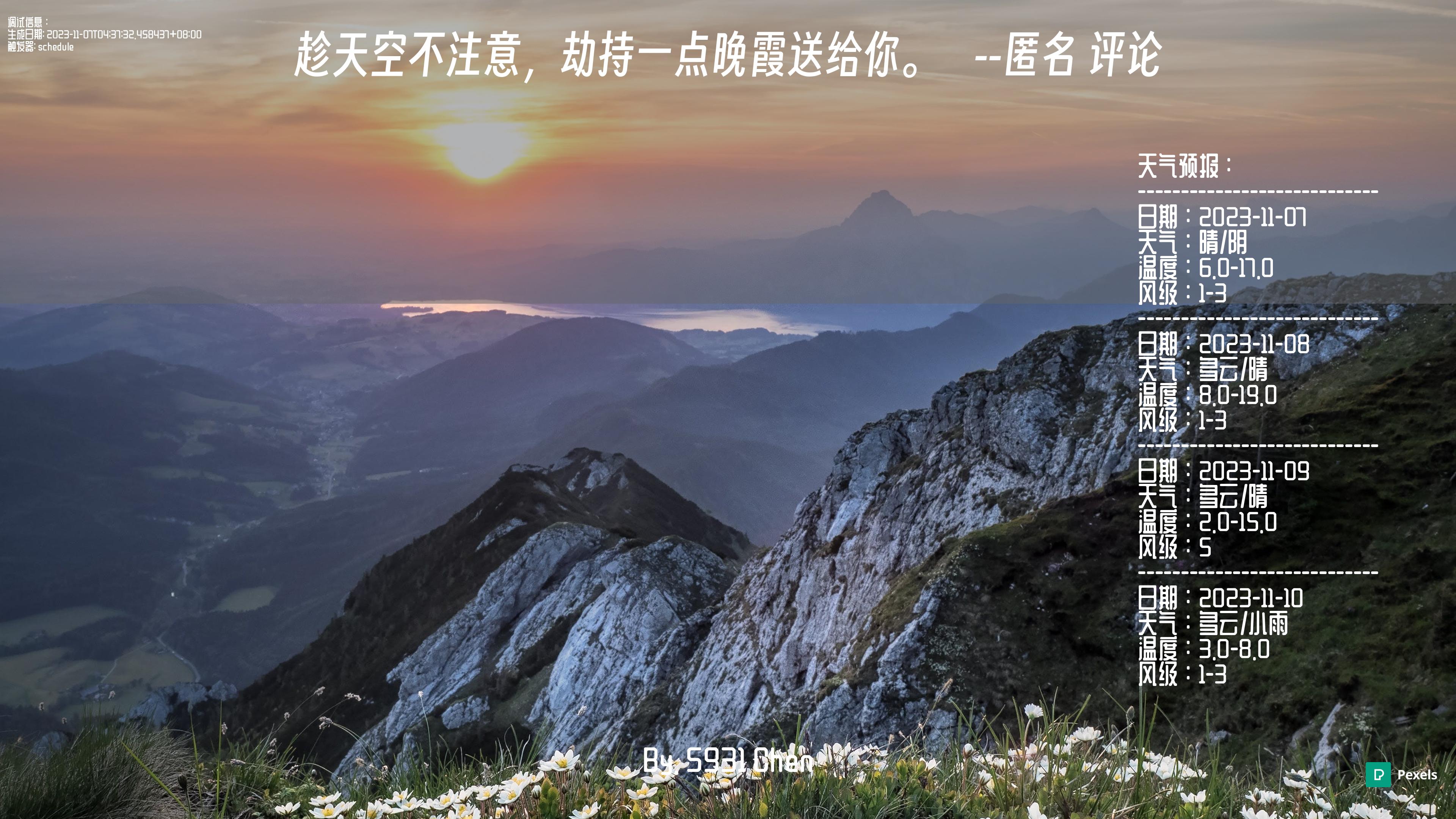 | 2023-07-03 | 2832074 | 承诺常常很像蝴蝶,美丽的盘旋后就不见了。 | 图片链接 | schedule |