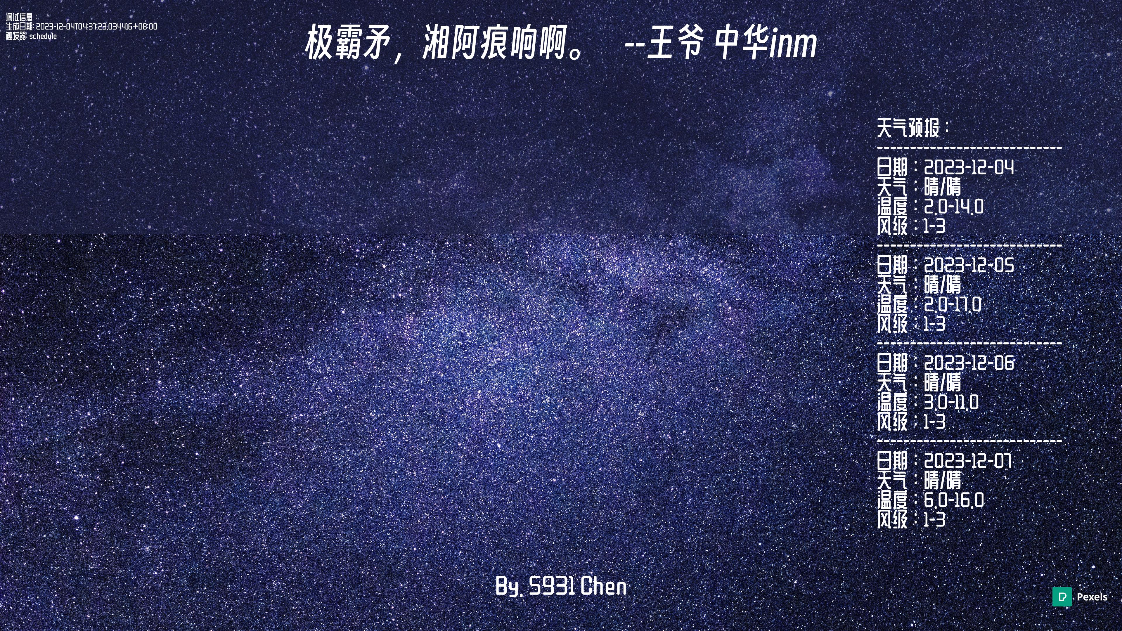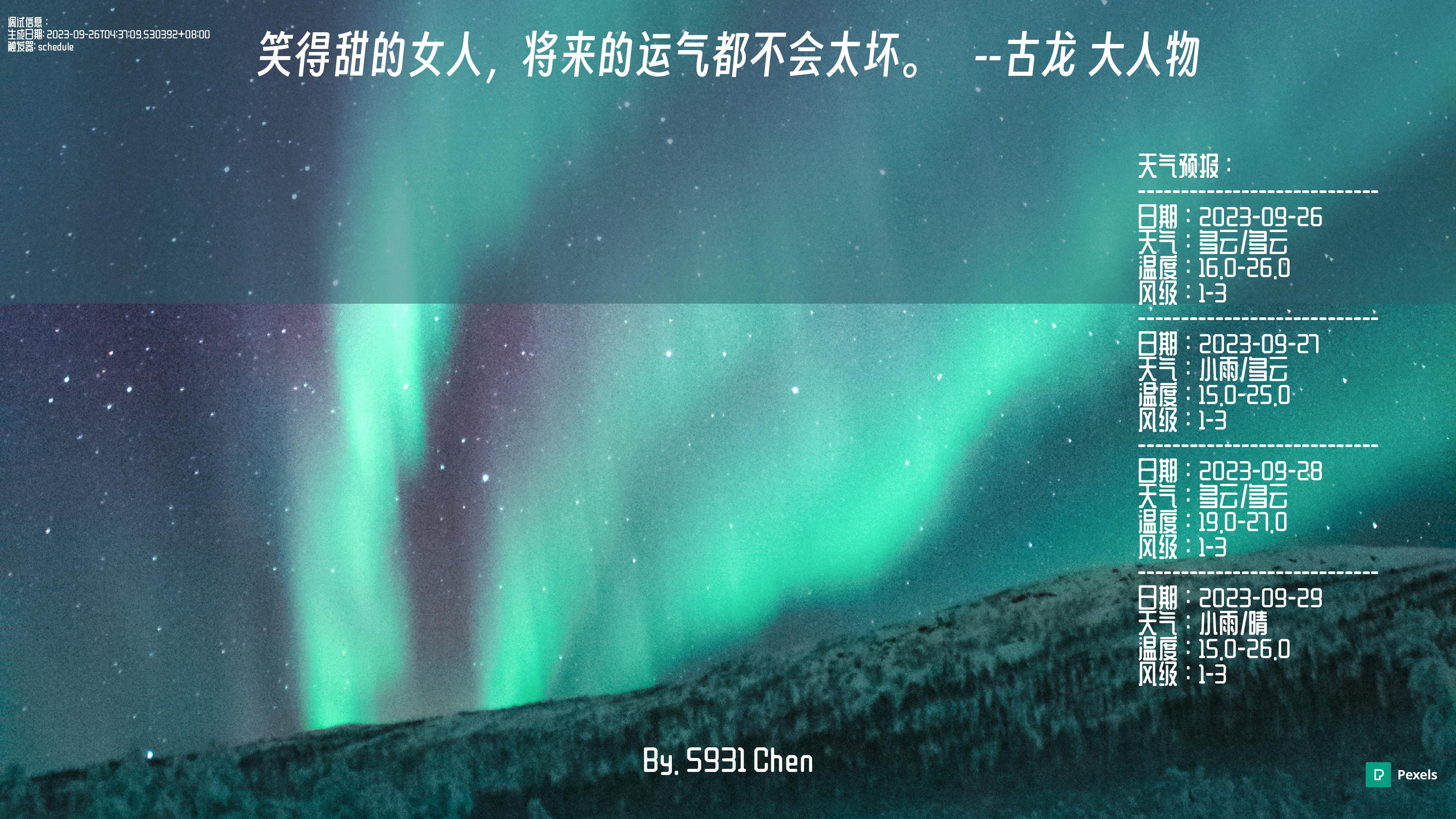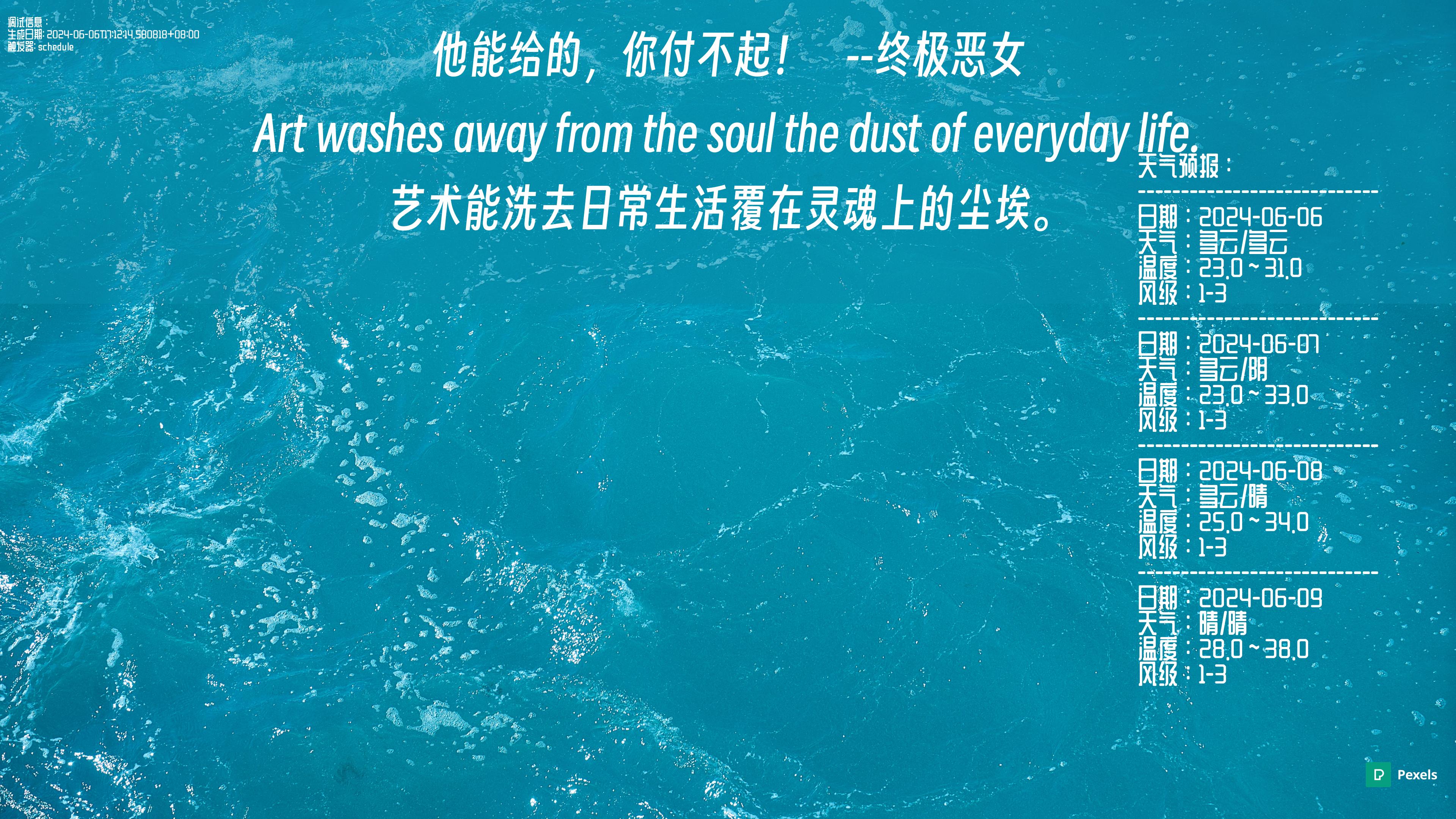 | 2023-06-26 | 920534 | 手握日月摘星辰,世间无我这般人。 | 图片链接 | schedule |