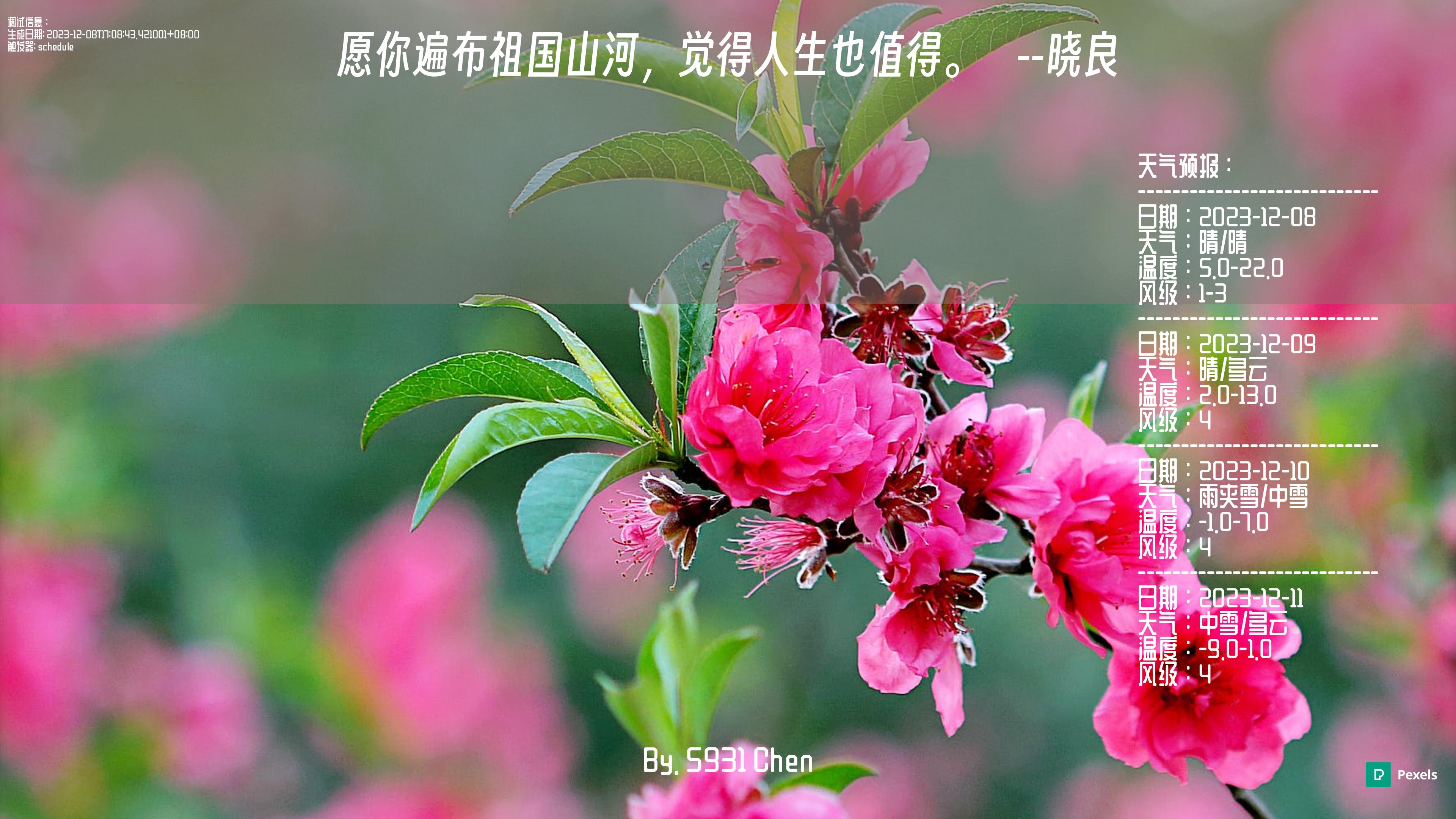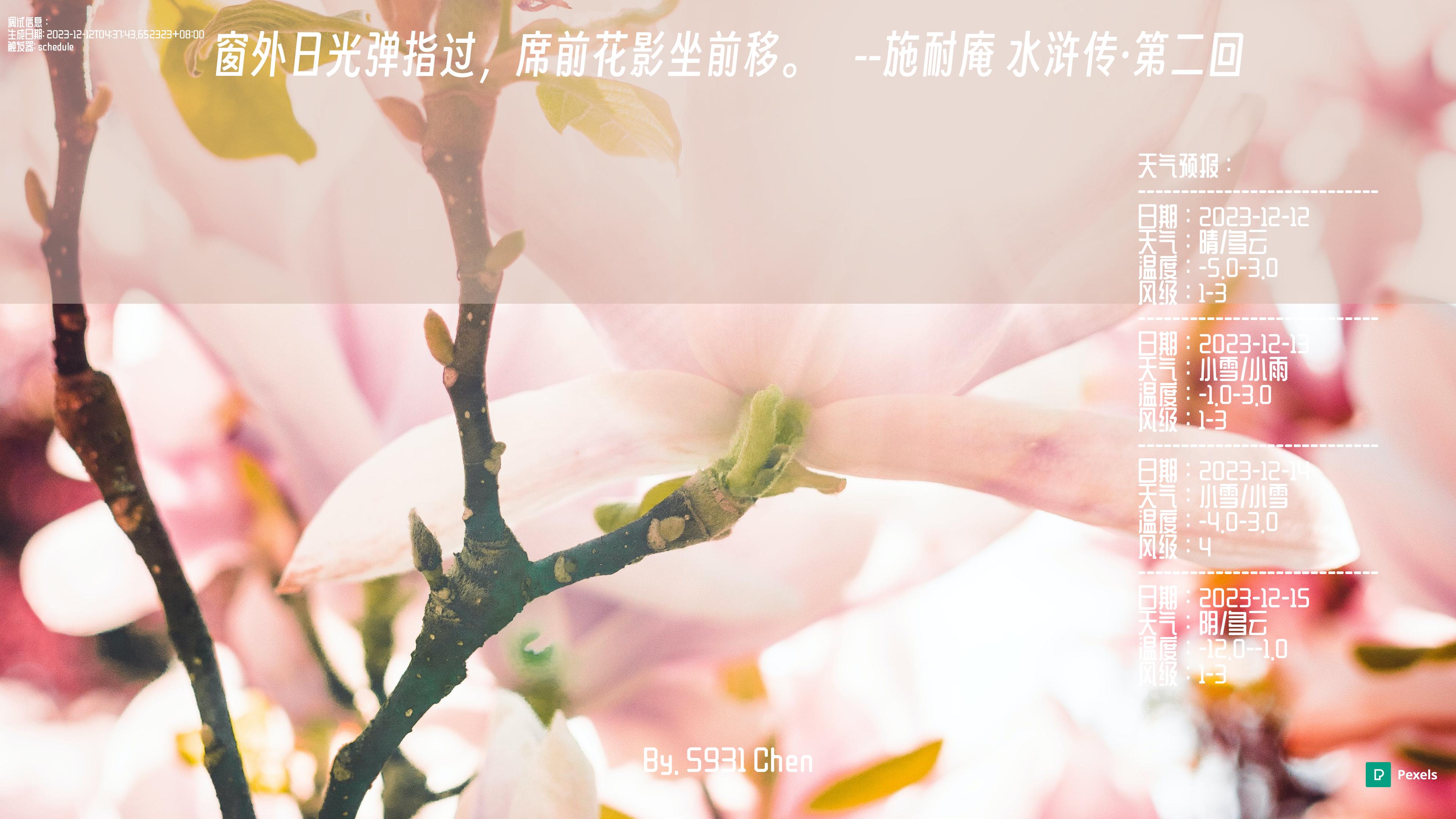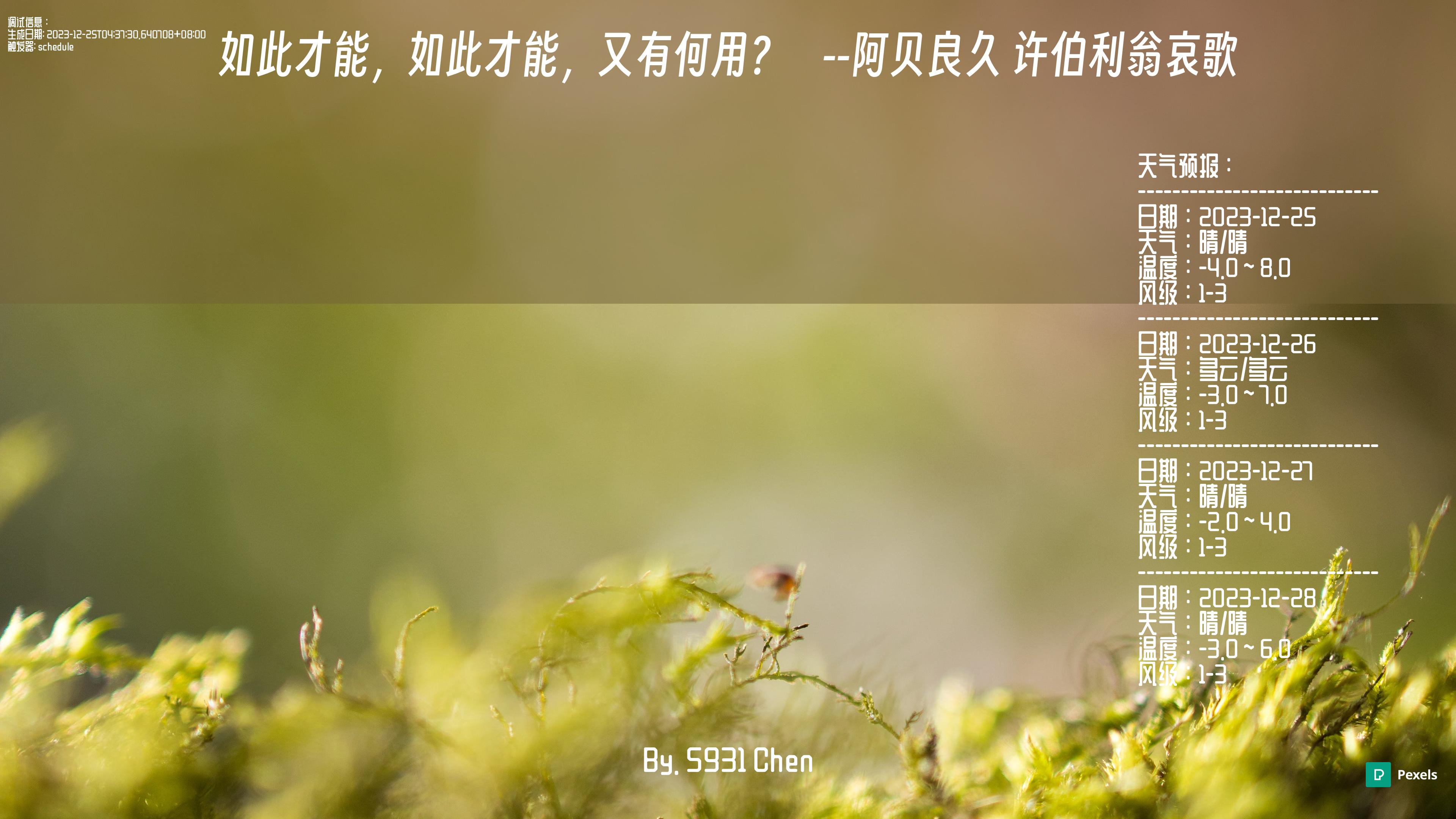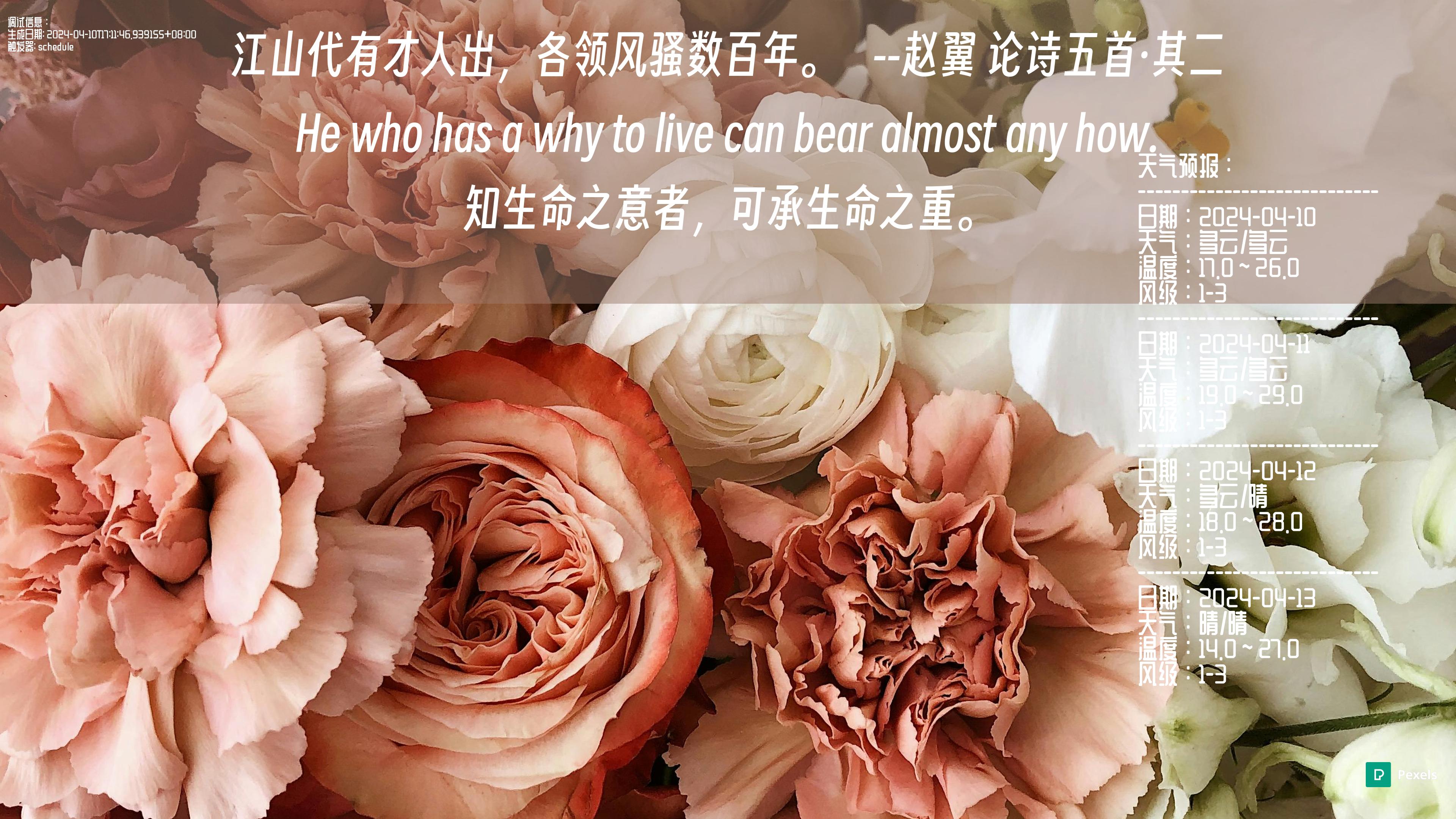 | 2023-06-23 | 2877375 | 春蚕到死丝方尽,蜡炬成灰泪始干。 | 图片链接 | schedule |
